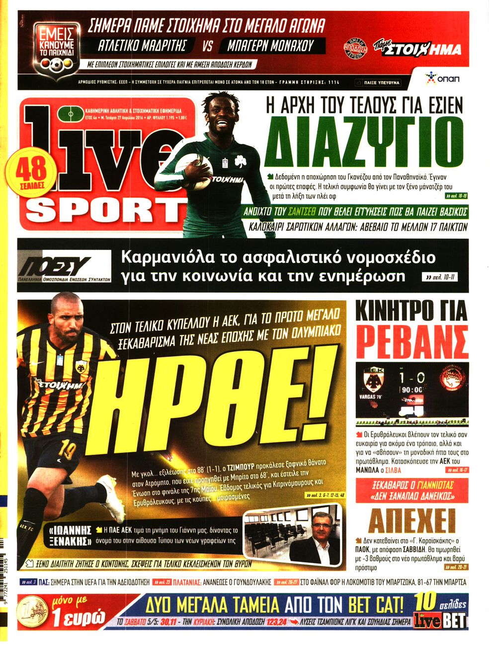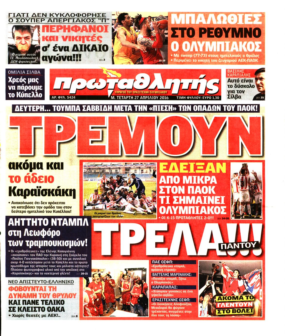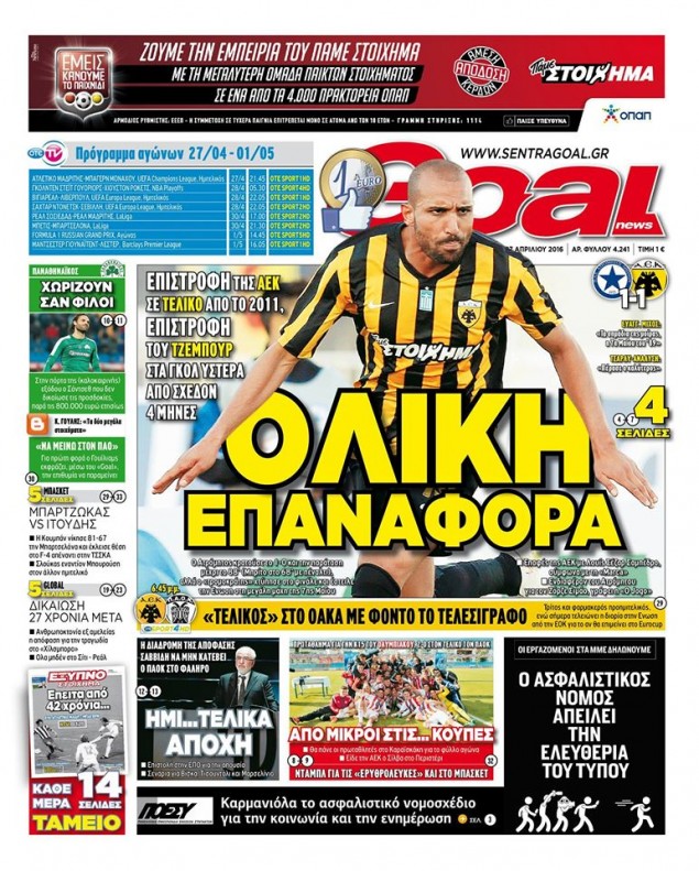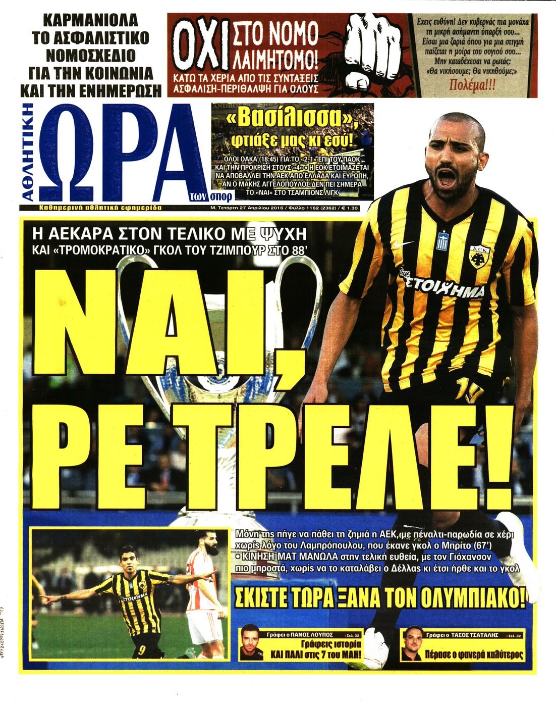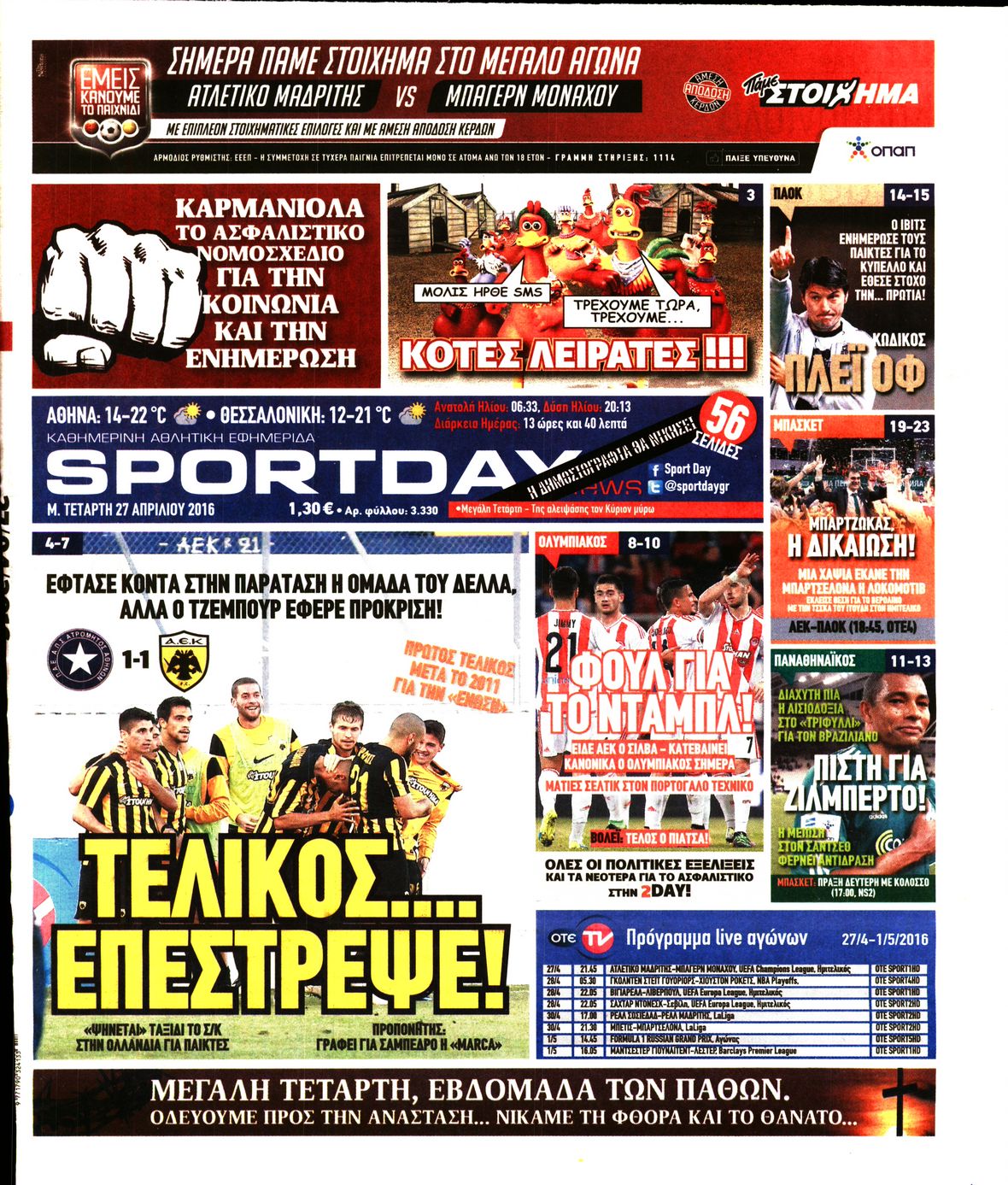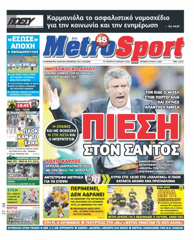Οι αθλητικές εφημερίδες 27/4/2016 Enikos Newsroom 04:58, Τετάρτη 27 Απριλίου 2016 Media Διαβάστε τα σημερινά πρωτοσέλιδα των αθλητικών εφημερίδων: ΑΘΛΗΤΙΚΕΣ ΕΦΗΜΕΡΙΔΕΣ ΠΡΩΤΟΣΕΛΙΔΑ Μοιράσου το: σχολίασε κι εσύ (0 σχόλια) Ακολουθήστε το enikos.gr στο Google News και μάθετε πρώτοι όλες τις ειδήσεις Δείτε όλες τις τελευταίες ειδήσεις από την Ελλάδα και τον Κόσμο στο enikos.gr Ειδήσεις Ροή Ειδήσεων 7 ώρες πριν Χριστούγεννα στα μπλόκα: Επιμένουν στις κινητοποιήσεις τους οι αγρότες – Ανοίγουν τα διόδια το Σαββατοκύριακο 7 ώρες πριν Ουκρανία: Η άνευ προηγουμένου επίθεση σε ρωσικό τάνκερ στη Μεσόγειο και το μήνυμα προς στον Πούτιν – Το «μακρύ χέρι» του Κιέβου 7 ώρες πριν Πούτιν: Τα μηνύματα σε Ευρώπη και ΝΑΤΟ από το μαραθώνιο «σόου» του – Η απαίτηση για «σεβασμό» και η ειρήνη «με τους όρους» της Μόσχας 7 ώρες πριν Τραμπ: Δεν αποκλείει την πιθανότητα ενός πολέμου στη Βενεζουέλα – «Ο Μαδούρο ξέρει καλύτερα από τον καθένα τι ακριβώς θέλω» 8 ώρες πριν Συνεχίζει να προκαλεί ο Μίτσκοσκι: «Για μένα το όνομα Μακεδονία είναι ιερό» 5 λεπτά πριν Τα ζώδια σήμερα, Σάββατο 20 Δεκεμβρίου: Παρθένοι, το σύμπαν σας δίνει το κλειδί 7 ώρες πριν Ανακαλύφθηκαν αρχαία χρυσά νομίσματα 2.200 ετών που απεικονίζουν τον θεό Απόλλωνα – Η άγνωστη σύνδεση με τον Φίλιππο Β΄ της Μακεδονίας 8 ώρες πριν Ύπνος: Μια κρυφή κατάσταση του εγκεφάλου πριν από τον ύπνο μπορεί να είναι το “κλειδί” για υψηλή ευφυΐα και δημιουργικότητα 9 ώρες πριν Αριθμολογία: Οι άνθρωποι που έχουν γεννηθεί αυτές τις 4 ημερομηνίες, συχνά παρεξηγούνται – «Η καλοσύνη τους κρύβει τεράστια δύναμη» 5 λεπτά πριν Τα ζώδια σήμερα, Σάββατο 20 Δεκεμβρίου: Παρθένοι, το σύμπαν σας δίνει το κλειδί 10 λεπτά πριν Παιανία: Δυο αυτοκίνητα τυλίχτηκαν στις φλόγες – Συναγερμός στην Πυροσβεστική 14 λεπτά πριν Εφημερεύοντα φαρμακεία σε Αθήνα και Θεσσαλονίκη (20/12) 20 λεπτά πριν Γιώργος Μπαρτζώκας: «Για εμένα σημαίνει πάρα πολλά να ακούω το όνομά μου από τον κόσμο του Ολυμπιακού» 30 λεπτά πριν ΟΗΕ: Το Συμβούλιο Ασφαλείας παρατείνει για έναν χρόνο την εντολή της ειρηνευτικής δύναμης στο Κονγκό ENIKOS NETWORK Το ΕΚΑΒ τιμήθηκε από την Ακαδημία Αθηνών για τα 40 χρόνια προσφοράς του Έχετε πραγματικά μεγάλη καρδιά; 10 χαρακτηριστικά όσων έχουν καλοσύνη Αναστολή μέτρων αναγκαστικής εκτέλεσης για κτηνοτρόφους που πλήττονται από την ευλογιά των αιγοπροβάτων Πλήρης επάρκεια προϊόντων στις λαϊκές της Αττικής, παρά τις αγροτικές κινητοποιήσεις – Τι απαντούν οι πωλητές Χαρτογραφώντας το «σημείο χωρίς επιστροφή»: Για πρώτη φορά αποκαλύπτεται με λεπτομέρεια το ακανθώδες όριο της ατμόσφαιρας τ... Η Google καταργεί τη λειτουργία «dark web report» – Πώς θα μπορούν οι χρήστες να διαγράφουν τα δεδομένα τους περισσότερα 04:20 , Σάββατο 20 Δεκεμβρίου 2025 Αγγελική Νικολούλη: Τα συλλυπητήρια για την απώλεια της Ειρήνης Μαρινάκη Τα συλληπητήρια στον πρόεδρο του Mega, τον Βαγγέλη Μαρινάκη, για την απώλεια της μητέρας του Ε... 02:50 , Σάββατο 20 Δεκεμβρίου 2025 GNTM: Η Ξένια Τσίρκοβα αναδείχθηκε μεγάλη νικήτρια και πήρε τις 50.000 ευρώ – Ποιος βρέθηκε σε απόσταση αναπνοής; Με φαντασμαγορικό τρόπο ολοκληρώθηκε το βράδυ της Παρασκευής ο μεγάλος τελικός του GNTM, μέσα ... 22:42 , Παρασκευή 19 Δεκεμβρίου 2025 Γιώργος Γιαννόπουλος για “Το σόι σου”: “Είναι ευτυχία και ευλογία αυτή η σειρά” «Είναι ευτυχία και ευλογία η συγκυρία αυτής της σειράς», θα πει ο Γιώργος Γιαννόπουλος -ο αγαπ... 20:37 , Παρασκευή 19 Δεκεμβρίου 2025 Don’t Forget The Lyrics: Η Έλλη Κοκ