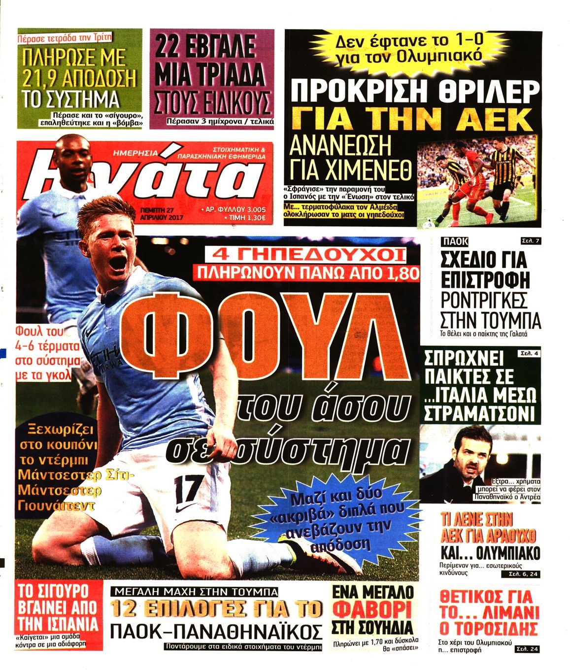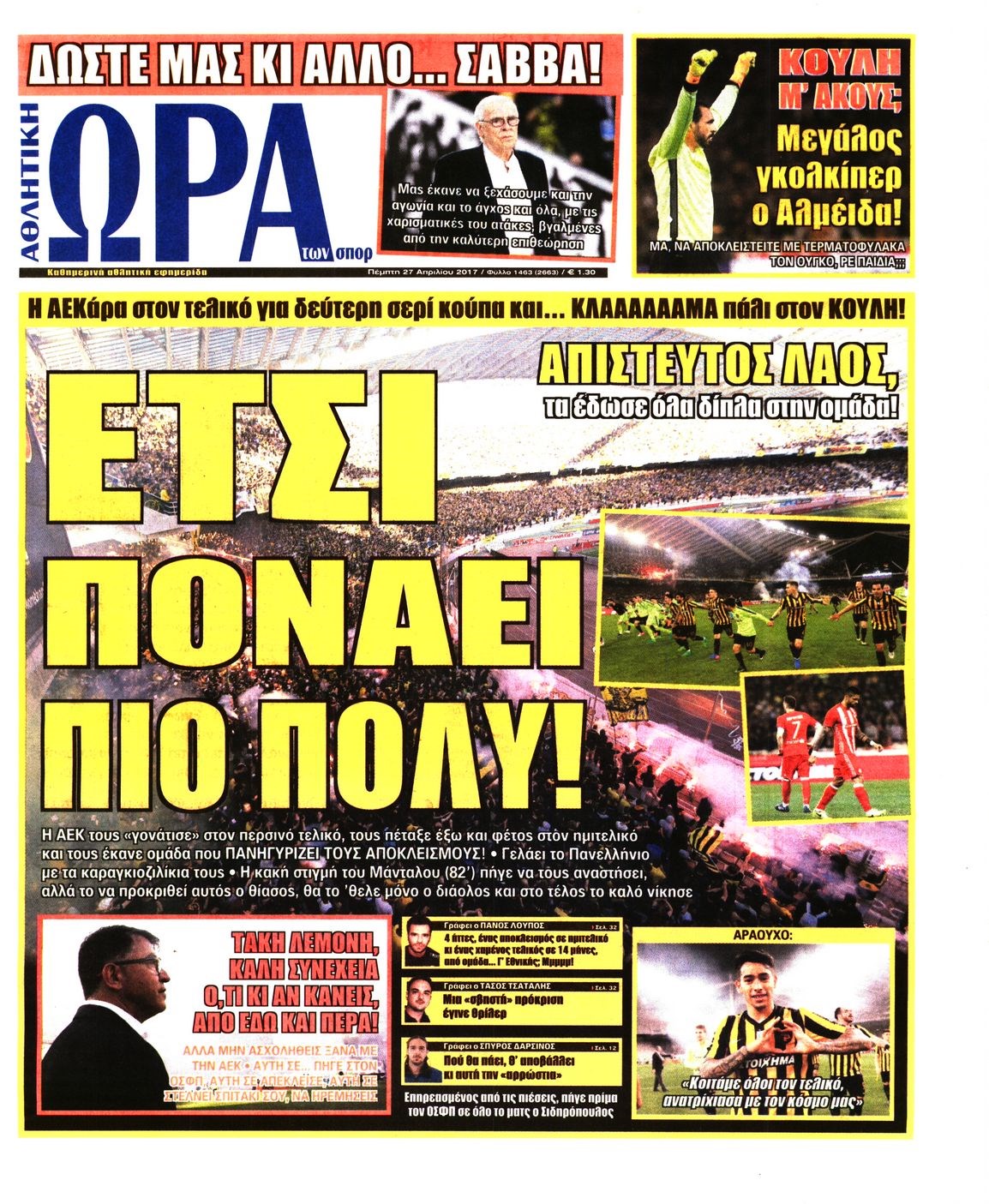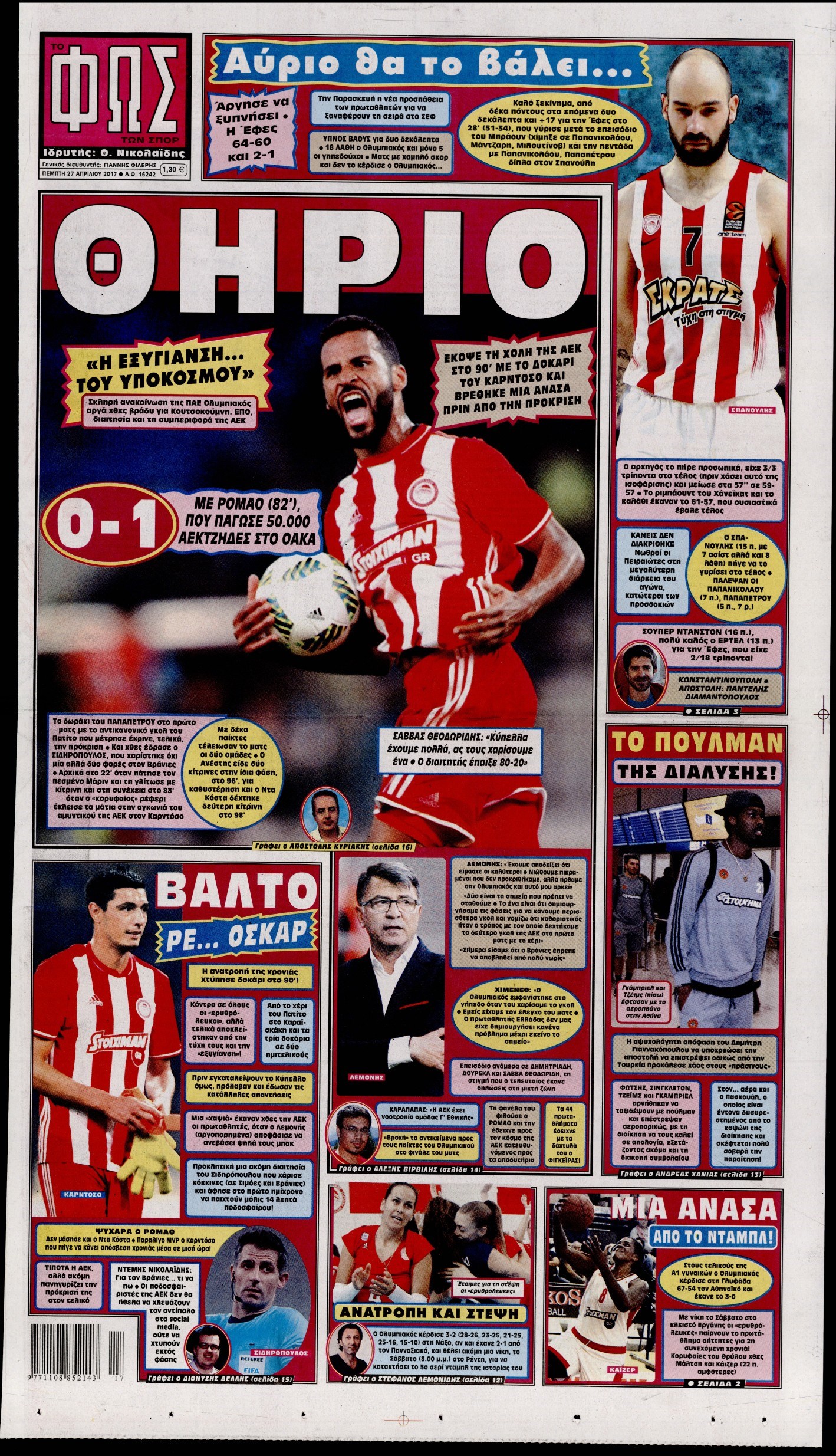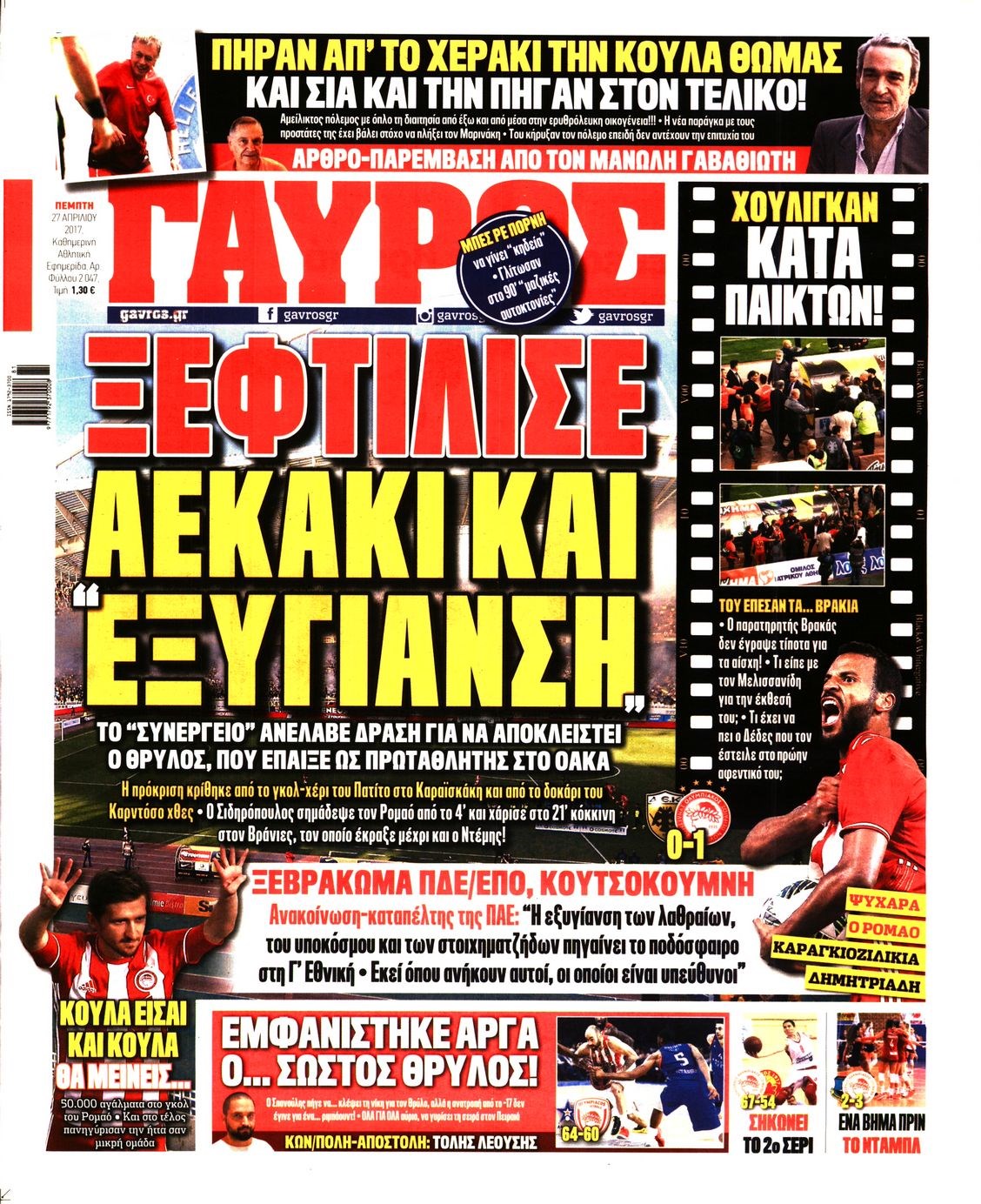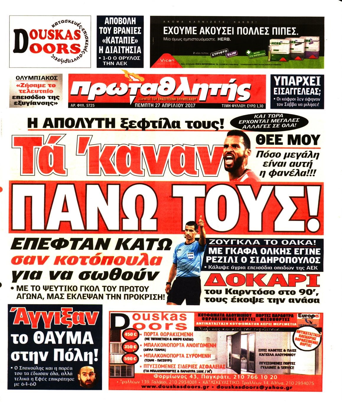 Οι αθλητικές εφημερίδες 27/4/2017