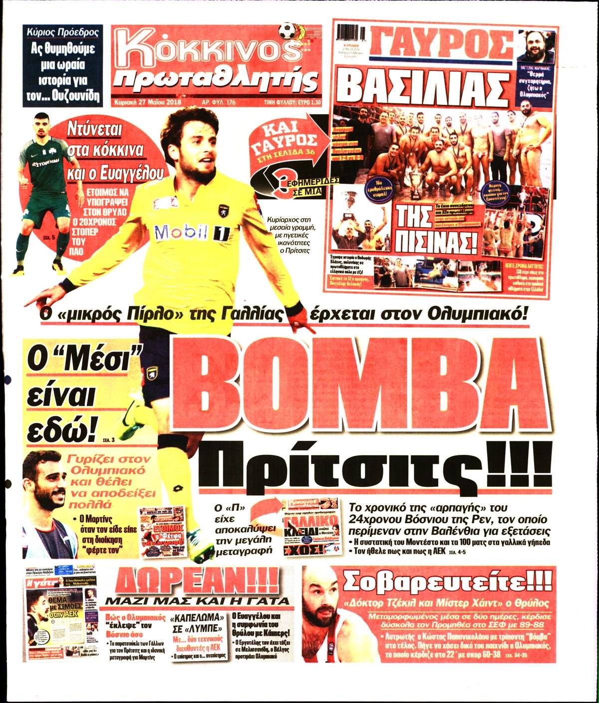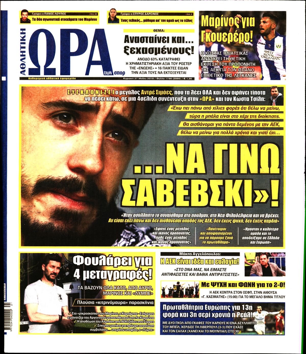 Οι αθλητικές εφημερίδες 27/5/2018 Enikos Newsroom 07:02, Κυριακή 27 Μαΐου 2018 Media Διαβάστε τα σημερινά πρωτοσέλιδα των αθλητικών εφημερίδων ΑΘΛΗΤΙΚΕΣ ΕΦΗΜΕΡΙΔΕΣ Μοιράσου το: σχολίασε κι εσύ (0 σχόλια) Ακολουθήστε το enikos.gr στο Google News και μάθετε πρώτοι όλες τις ειδήσεις Δείτε όλες τις τελευταίες ειδήσεις από την Ελλάδα και τον Κόσμο στο enikos.gr Ειδήσεις Ροή Ειδήσεων 8 ώρες πριν Χριστούγεννα στα μπλόκα: Επιμένουν στις κινητοποιήσεις τους οι αγρότες – Ανοίγουν τα διόδια το Σαββατοκύριακο 8 ώρες πριν Ουκρανία: Η άνευ προηγουμένου επίθεση σε ρωσικό τάνκερ στη Μεσόγειο και το μήνυμα προς στον Πούτιν – Το «μακρύ χέρι» του Κιέβου 8 ώρες πριν Πούτιν: Τα μηνύματα σε Ευρώπη και ΝΑΤΟ από το μαραθώνιο «σόου» του – Η απαίτηση για «σεβασμό» και η ειρήνη «με τους όρους» της Μόσχας 7 ώρες πριν ΗΠΑ: Η κυβέρνηση του Ντόναλντ Τραμπ άρχισε να δημοσιοποιεί τα αρχεία Έπσταϊν 7 ώρες πριν Άνω Λιόσια: Πυροβολισμοί σε επιχείρηση με χαλιά – Εντοπίστηκαν 10 κάλυκες 36 λεπτά πριν Αυγά: Πόσα μπορείτε να τρώτε την ημέρα με ασφάλεια για μέγιστη πρόσληψη πρωτεΐνης 1 ώρα πριν Τα ζώδια σήμερα, Σάββατο 20 Δεκεμβρίου: Παρθένοι, το σύμπαν σας δίνει το κλειδί 8 ώρες πριν Ανακαλύφθηκαν αρχαία χρυσά νομίσματα 2.200 ετών που απεικονίζουν τον θεό Απόλλωνα – Η άγνωστη σύνδεση με τον Φίλιππο Β΄ της Μακεδονίας 9 ώρες πριν Ύπνος: Μια κρυφή κατάσταση του εγκεφάλου πριν από τον ύπνο μπορεί να είναι το “κλειδί” για υψηλή ευφυΐα και δημιουργικότητα 4 λεπτά πριν ΔΕΔΔΗΕ: Διακοπές ρεύματος σήμερα (20/12) στην Αθήνα και σε άλλες 7 περιοχές της Αττικής 13 λεπτά πριν Κολομβία: Είκοσι χρόνια κάθειρξη σε πρώην ανώτερο αξιωματικό για 72 εκτελέσεις αμάχων 21 λεπτά πριν Οπτική ψευδαίσθηση: Μόνο αν είσαι ο Σέρλοκ Χολμς θα βρεις τον αριθμό «87» σε 7 δευτερόλεπτα 28 λεπτά πριν Σαρωτικοί οι έλεγχοι στους δρόμους ενόψει εορτών – Μπλόκα της τροχαίας σε κεντρικές αρτηρίες της Αττικής 36 λεπτά πριν Αυγά: Πόσα μπορείτε να τρώτε την ημέρα με ασφάλεια για μέγιστη πρόσληψη πρωτεΐνης ENIKOS NETWORK Το ΕΚΑΒ τιμήθηκε από την Ακαδημία Αθηνών για τα 40 χρόνια προσφοράς του Έχετε πραγματικά μεγάλη καρδιά; 10 χαρακτηριστικά όσων έχουν καλοσύνη Αναστολή μέτρων αναγκαστικής εκτέλεσης για κτηνοτρόφους που πλήττονται από την ευλογιά των αιγοπροβάτων Πλήρης επάρκεια προϊόντων στις λαϊκές της Αττικής, παρά τις αγροτικές κινητοποιήσεις – Τι απαντούν οι πωλητές Χαρτογραφώντας το «σημείο χωρίς επιστροφή»: Για πρώτη φορά αποκαλύπτεται με λεπτομέρεια το ακανθώδες όριο της ατμόσφαιρας τ... Η Google καταργεί τη λειτουργία «dark web report» – Πώς θα μπορούν οι χρήστες να διαγράφουν τα δεδομένα τους περισσότερα 05:48 , Σάββατο 20 Δεκεμβρίου 2025 Οι οικονομικές εφημερίδες 20/12/2025 Διαβάστε τα πρωτοσέλιδα από τις οικονομικές εφημερίδες, σήμερα 20/12/2025. 05:43 , Σάββατο 20 Δεκεμβρίου 2025 Οι αθλητικές εφημερίδες 20/12/2025 Διαβάστε τα πρωτοσέλιδα από τις αθλητικές εφημερίδες, σήμερα 20/12/2025. 05:38 , Σάββατο 20 Δεκεμβρίου 2025 Οι πολιτικές εφημερίδες 20/12/2025 Διαβάστε τα πρωτοσέλιδα από τις πολιτικές εφημερίδες, σήμερα 20/12/2025. 04:20 , Σάββατο 20 Δεκεμβρίου 2025 Αγγελική Νικολούλη: Τα συλλυπητήρια για την απώλεια της Ειρήνης Μαρινάκη Τα συλληπητήρια στον πρόεδρο του Mega, τον Βαγγέλη Μαρινάκη, για την απώλεια της μητέρας του Ε... ΤΕΛΕΥΤΑΙΕΣ ΕΙΔΗΣΕΙΣ 13 λεπτά πριν Κολομβία: Είκοσι χρόνια κάθειρξη σε πρώην ανώτερο... 21 λεπτά πριν Οπτική ψευδαίσθηση: Μόνο αν είσαι ο Σέρλοκ Χολμς θα... 28 λεπτά πριν Σαρωτικοί οι έλεγχοι στους δρό