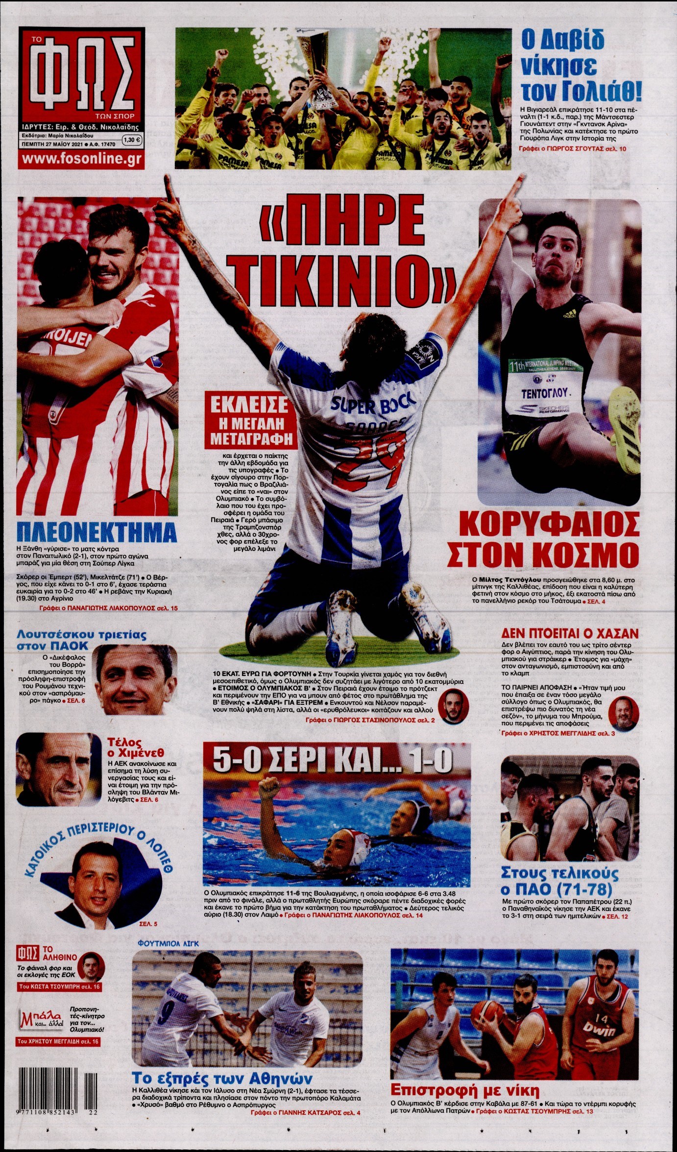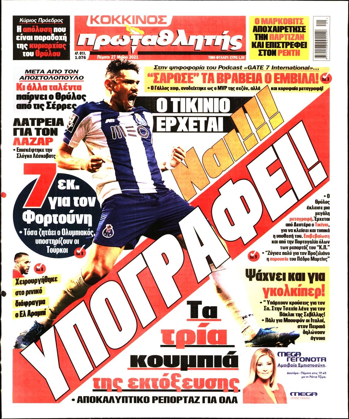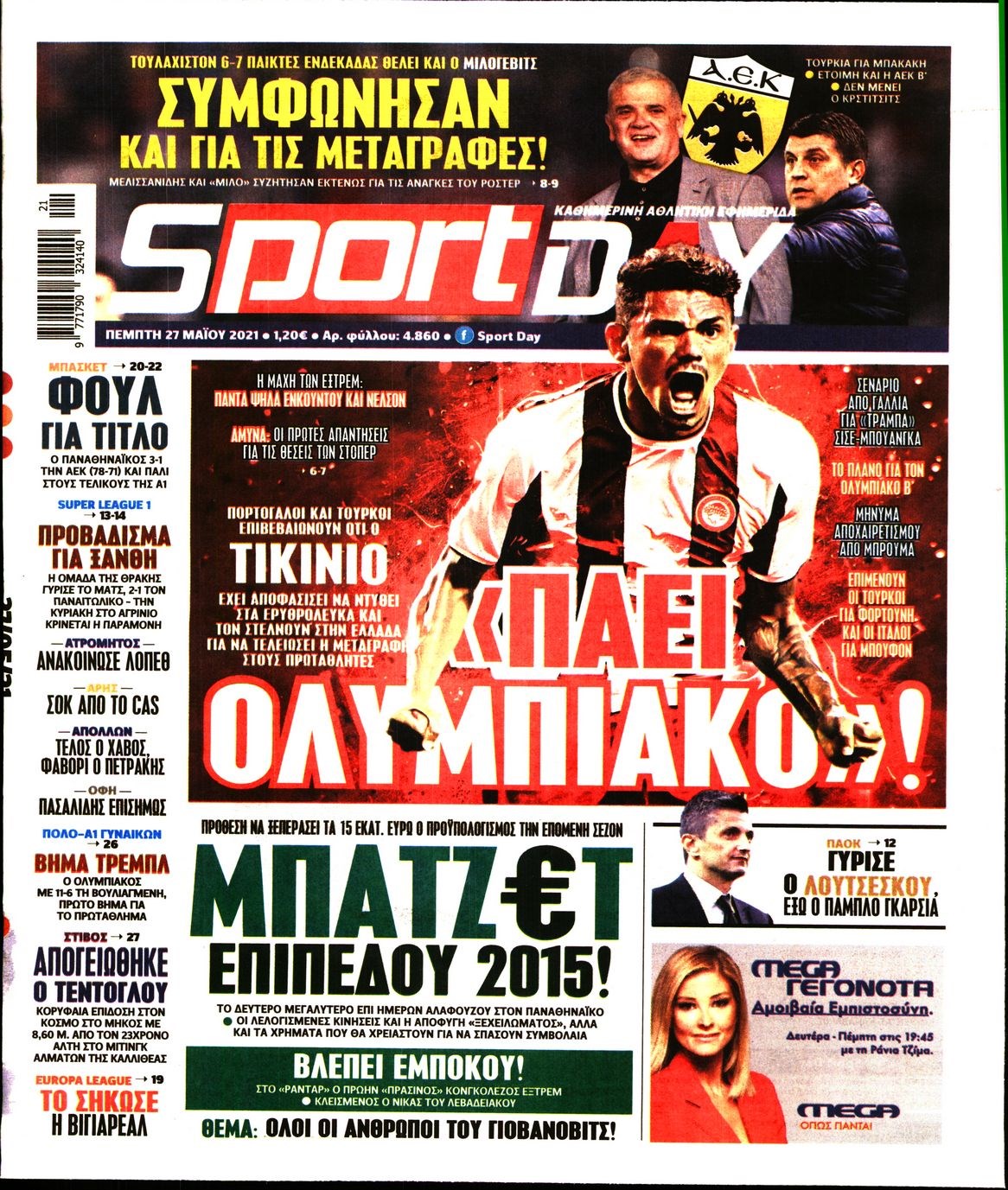 Οι αθλητικές εφημερίδες 27/5/2021 Διονύσης Νίκκας 06:50, Πέμπτη 27 Μαΐου 2021 Media Διαβάστε τα πρωτοσέλιδα των αθλητικών εφημερίδων… ΑΘΛΗΤΙΚΕΣ ΕΦΗΜΕΡΙΔΕΣ Μοιράσου το: σχολίασε κι εσύ (0 σχόλια) Ακολουθήστε το enikos.gr στο Google News και μάθετε πρώτοι όλες τις ειδήσεις Δείτε όλες τις τελευταίες ειδήσεις από την Ελλάδα και τον Κόσμο στο enikos.gr Ειδήσεις Ροή Ειδήσεων 4 ώρες πριν Από το Ορμένιο ως τα Μάλγαρα κι από τη Σιάτιστα μέχρι τη Νίκαια: Μπλόκα σε όλη την Ελλάδα – Το Σάββατο ανοίγουν τα διόδια οι αγρότες 1 ώρα πριν Εμπλοκή και αερομαχίες με οπλισμένα τουρκικά F-16 στο Αιγαίο 3 ώρες πριν Αττική: Θρίλερ με νεκρό βρέφος 5 μηνών – Κοιμόταν στο ίδιο κρεβάτι με τους γονείς του 59 λεπτά πριν Πούτιν: «Ναι, είμαι ερωτευμένος» – Βίντεο από τη σπάνια προσωπική παραδοχή του 3 ώρες πριν Μεσόγειος: Η διαδρομή του ρωσικού τάνκερ «Qendil» και η στοχευμένη επίθεση της Ουκρανίας με drone – Ο Πούτιν προειδοποίησε για αντίποινα 5 ώρες πριν Τα 5 ζώδια που ευνοούνται στην ερωτική ζωή τους την επόμενη εβδομάδα – «Η ενέργεια του Αιγόκερου φέρνει αγάπη και σταθερότητα» 6 ώρες πριν Αυτό το έξυπνο μαθηματικό κόλπο θα μπορούσε να αλλάξει τον τρόπο με τον οποίο οι επιστήμονες μελετούν τους σεισμούς 2 ώρες πριν Μήπως έχετε χάσει τον εαυτό σας στη σχέση σας; 7 «αθόρυβες» υποχωρήσεις που μάλλον κάνατε, χωρίς να το συνειδητοποιήσετε 4 ώρες πριν Κουίζ για την παλιά Αθήνα: Αναγνωρίζετε την περιοχή; Έχετε περάσει 100% από εκεί 6 λεπτά πριν Μπαράκ Ομπάμα: Τα βιβλία, οι ταινίες και τα τραγούδια που ξεχώρισε το 2025 – Πλήρης λίστα 11 λεπτά πριν Don’t Forget The Lyrics: Η Έλλη Κοκκίνου υποδέχεται 4 παίκτες που θα κάνουν τα πάντα για να μη χάσουν ούτε… μισή λέξη από τους στίχους 17 λεπτά πριν Πλεύρης στον ΑΝΤ1: Η βασική πολιτική που ψηφίστηκε από τους υπουργούς Μετανάστευσης είναι η δημιουργία κέντρων κράτησης μεταναστών στην Αφρική – ΒΙΝΤΕΟ 22 λεπτά πριν Η εξομολόγηση της Νίκης Σερέτη: «Δεν κρύβω ότι ήταν πάρα πολύ δύσκολο όλο αυτό που βίωσα» 27 λεπτά πριν Αγρότες: Κλειστό ξανά το ρεύμα εισόδου στα Μάλγαρα – Άνοιξαν τον κόμβο της Χαλκηδόνας ENIKOS NETWORK Έχετε πραγματικά μεγάλη καρδιά; 10 χαρακτηριστικά όσων έχουν καλοσύνη «Η σούπερ» γρίπη εξαπλώνεται στην Ευρώπη-Στοιχεία από το ECDC για την αποτελεσματικότητα του εμβολίου Επίδομα παιδιού: Πότε ανοίγει ξανά η πλατφόρμα για τις αιτήσεις Προκήρυξη ΑΣΕΠ για 397 μόνιμες προσλήψεις στο Δημόσιο: Βγήκαν τα προσωρινά αποτελέσματα – Πότε αρχίζει η υποβολή ενστάσεων Χαρτογραφώντας το «σημείο χωρίς επιστροφή»: Για πρώτη φορά αποκαλύπτεται με λεπτομέρεια το ακανθώδες όριο της ατμόσφαιρας τ... Η Google καταργεί τη λειτουργία «dark web report» – Πώς θα μπορούν οι χρήστες να διαγράφουν τα δεδομένα τους περισσότερα 20:37 , Παρασκευή 19 Δεκεμβρίου 2025 Don’t Forget The Lyrics: Η Έλλη Κοκκίνου υποδέχεται 4 παίκτες που θα κάνουν τα πάντα για να μη χάσουν ούτε… μισή λέξη από τους στίχους Το «Don’t Forget The Lyrics» επιστρέφει απόψε, Παρασκευή 19 Δεκεμβρίου, στις 21:00 με νέο επει... 19:31 , Παρασκευή 19 Δεκεμβρίου 2025 GNTM: Απόψε ο μεγάλος τελικός για τους 4 φιναλίστ Έπειτα από μήνες γεμάτους μόδα, δημιουργία και έντονες αναμετρήσεις, το GNTM 2025 κορυφώνεται,... 18:11 , Παρασκευή 19 Δεκεμβρίου 2025 Το σόι σου: Ο Άρης έρχεται στην Ελλάδα για τις γιορτές των Χριστουγέννων – Τι θα δούμε στο αποψινό εορταστικό επεισόδιο Ένα απολαυστικό, εορταστικό επεισόδιο της σειράς “Το σόι σου”, γεμάτο ευτράπελα αλ... 15:15 , Παρασκευή 19 Δεκεμβρίου 2025 Την Κυριακή με τη Realnews: Ό,τ