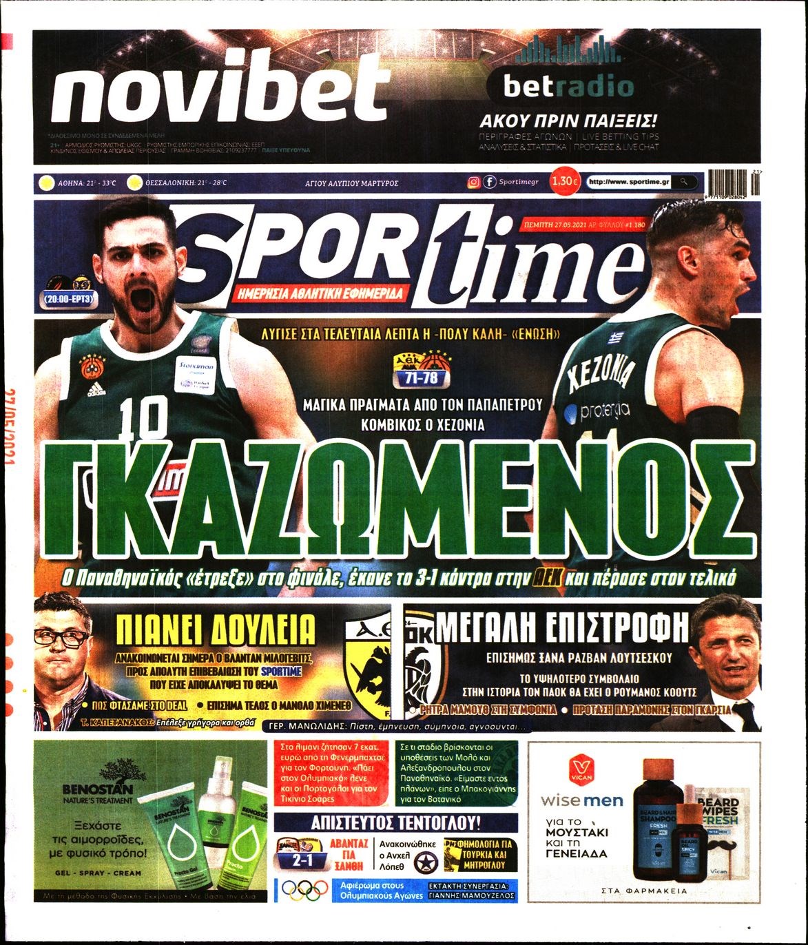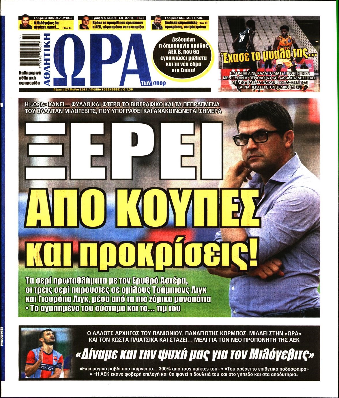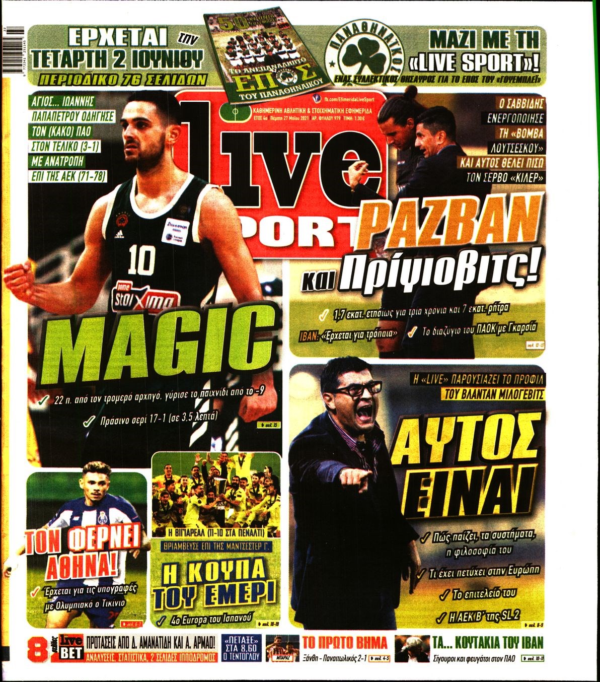 Οι αθλητικές εφημερίδες 27/5/2021 Διονύσης Νίκκας 06:50, Πέμπτη 27 Μαΐου 2021 Media Διαβάστε τα πρωτοσέλιδα των αθλητικών εφημερίδων… ΑΘΛΗΤΙΚΕΣ ΕΦΗΜΕΡΙΔΕΣ Μοιράσου το: σχολίασε κι εσύ (0 σχόλια) Ακολουθήστε το enikos.gr στο Google News και μάθετε πρώτοι όλες τις ειδήσεις Δείτε όλες τις τελευταίες ειδήσεις από την Ελλάδα και τον Κόσμο στο enikos.gr Ειδήσεις Ροή Ειδήσεων 4 ώρες πριν Από το Ορμένιο ως τα Μάλγαρα κι από τη Σιάτιστα μέχρι τη Νίκαια: Μπλόκα σε όλη την Ελλάδα – Το Σάββατο ανοίγουν τα διόδια οι αγρότες 1 ώρα πριν Εμπλοκή και αερομαχίες με οπλισμένα τουρκικά F-16 στο Αιγαίο 3 ώρες πριν Αττική: Θρίλερ με νεκρό βρέφος 5 μηνών – Κοιμόταν στο ίδιο κρεβάτι με τους γονείς του 59 λεπτά πριν Πούτιν: «Ναι, είμαι ερωτευμένος» – Βίντεο από τη σπάνια προσωπική παραδοχή του 3 ώρες πριν Μεσόγειος: Η διαδρομή του ρωσικού τάνκερ «Qendil» και η στοχευμένη επίθεση της Ουκρανίας με drone – Ο Πούτιν προειδοποίησε για αντίποινα 5 ώρες πριν Τα 5 ζώδια που ευνοούνται στην ερωτική ζωή τους την επόμενη εβδομάδα – «Η ενέργεια του Αιγόκερου φέρνει αγάπη και σταθερότητα» 6 ώρες πριν Αυτό το έξυπνο μαθηματικό κόλπο θα μπορούσε να αλλάξει τον τρόπο με τον οποίο οι επιστήμονες μελετούν τους σεισμούς 2 ώρες πριν Μήπως έχετε χάσει τον εαυτό σας στη σχέση σας; 7 «αθόρυβες» υποχωρήσεις που μάλλον κάνατε, χωρίς να το συνειδητοποιήσετε 4 ώρες πριν Κουίζ για την παλιά Αθήνα: Αναγνωρίζετε την περιοχή; Έχετε περάσει 100% από εκεί 6 λεπτά πριν Μπαράκ Ομπάμα: Τα βιβλία, οι ταινίες και τα τραγούδια που ξεχώρισε το 2025 – Πλήρης λίστα 11 λεπτά πριν Don’t Forget The Lyrics: Η Έλλη Κοκκίνου υποδέχεται 4 παίκτες που θα κάνουν τα πάντα για να μη χάσουν ούτε… μισή λέξη από τους στίχους 17 λεπτά πριν Πλεύρης στον ΑΝΤ1: Η βασική πολιτική που ψηφίστηκε από τους υπουργούς Μετανάστευσης είναι η δημιουργία κέντρων κράτησης μεταναστών στην Αφρική – ΒΙΝΤΕΟ 22 λεπτά πριν Η εξομολόγηση της Νίκης Σερέτη: «Δεν κρύβω ότι ήταν πάρα πολύ δύσκολο όλο αυτό που βίωσα» 27 λεπτά πριν Αγρότες: Κλειστό ξανά το ρεύμα εισόδου στα Μάλγαρα – Άνοιξαν τον κόμβο της Χαλκηδόνας ENIKOS NETWORK Έχετε πραγματικά μεγάλη καρδιά; 10 χαρακτηριστικά όσων έχουν καλοσύνη «Η σούπερ» γρίπη εξαπλώνεται στην Ευρώπη-Στοιχεία από το ECDC για την αποτελεσματικότητα του εμβολίου Επίδομα παιδιού: Πότε ανοίγει ξανά η πλατφόρμα για τις αιτήσεις Προκήρυξη ΑΣΕΠ για 397 μόνιμες προσλήψεις στο Δημόσιο: Βγήκαν τα προσωρινά αποτελέσματα – Πότε αρχίζει η υποβολή ενστάσεων Χαρτογραφώντας το «σημείο χωρίς επιστροφή»: Για πρώτη φορά αποκαλύπτεται με λεπτομέρεια το ακανθώδες όριο της ατμόσφαιρας τ... Η Google καταργεί τη λειτουργία «dark web report» – Πώς θα μπορούν οι χρήστες να διαγράφουν τα δεδομένα τους περισσότερα 20:37 , Παρασκευή 19 Δεκεμβρίου 2025 Don’t Forget The Lyrics: Η Έλλη Κοκκίνου υποδέχεται 4 παίκτες που θα κάνουν τα πάντα για να μη χάσουν ούτε… μισή λέξη από τους στίχους Το «Don’t Forget The Lyrics» επιστρέφει απόψε, Παρασκευή 19 Δεκεμβρίου, στις 21:00 με νέο επει... 19:31 , Παρασκευή 19 Δεκεμβρίου 2025 GNTM: Απόψε ο μεγάλος τελικός για τους 4 φιναλίστ Έπειτα από μήνες γεμάτους μόδα, δημιουργία και έντονες αναμετρήσεις, το GNTM 2025 κορυφώνεται,... 18:11 , Παρασκευή 19 Δεκεμβρίου 2025 Το σόι σου: Ο Άρης έρχεται στην Ελλάδα για τις γιορτές των Χριστουγέννων – Τι θα δούμε στο αποψινό εορταστικό επεισόδιο Ένα απολαυστικό, εορταστικό επεισόδιο της σειράς “Το σόι σου”, γεμάτο ευτράπελα αλ... 15:15 , Παρασκευή 19 Δεκεμβρίου 2025 Την Κυριακή με τη Realnews: Ό,τ