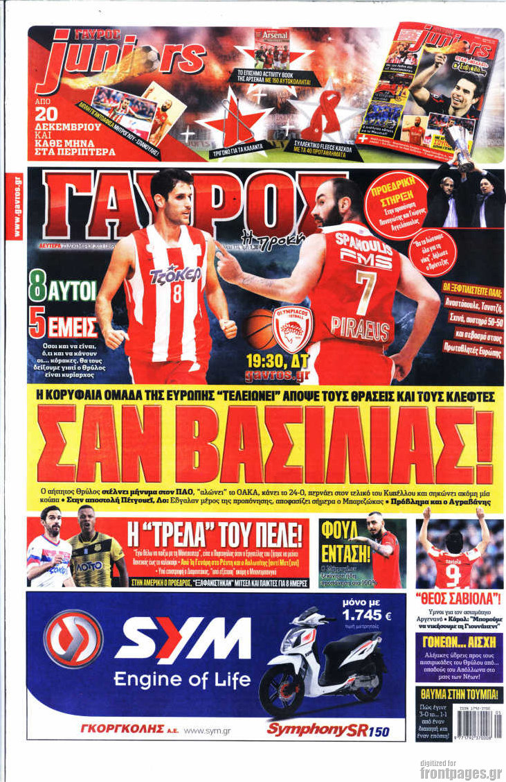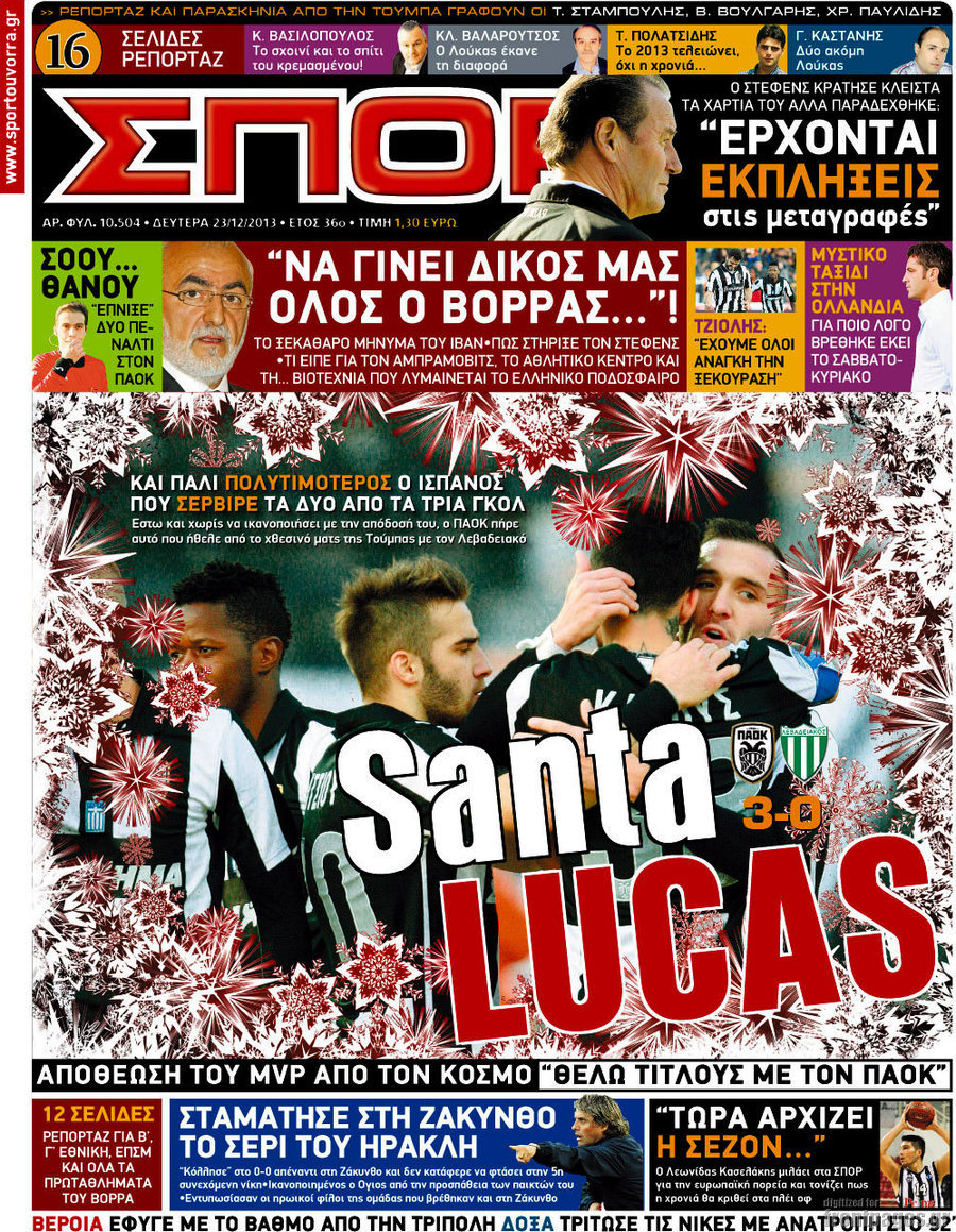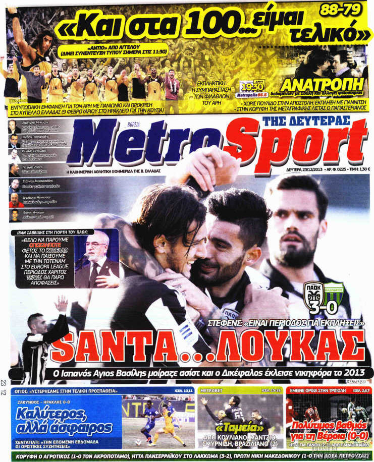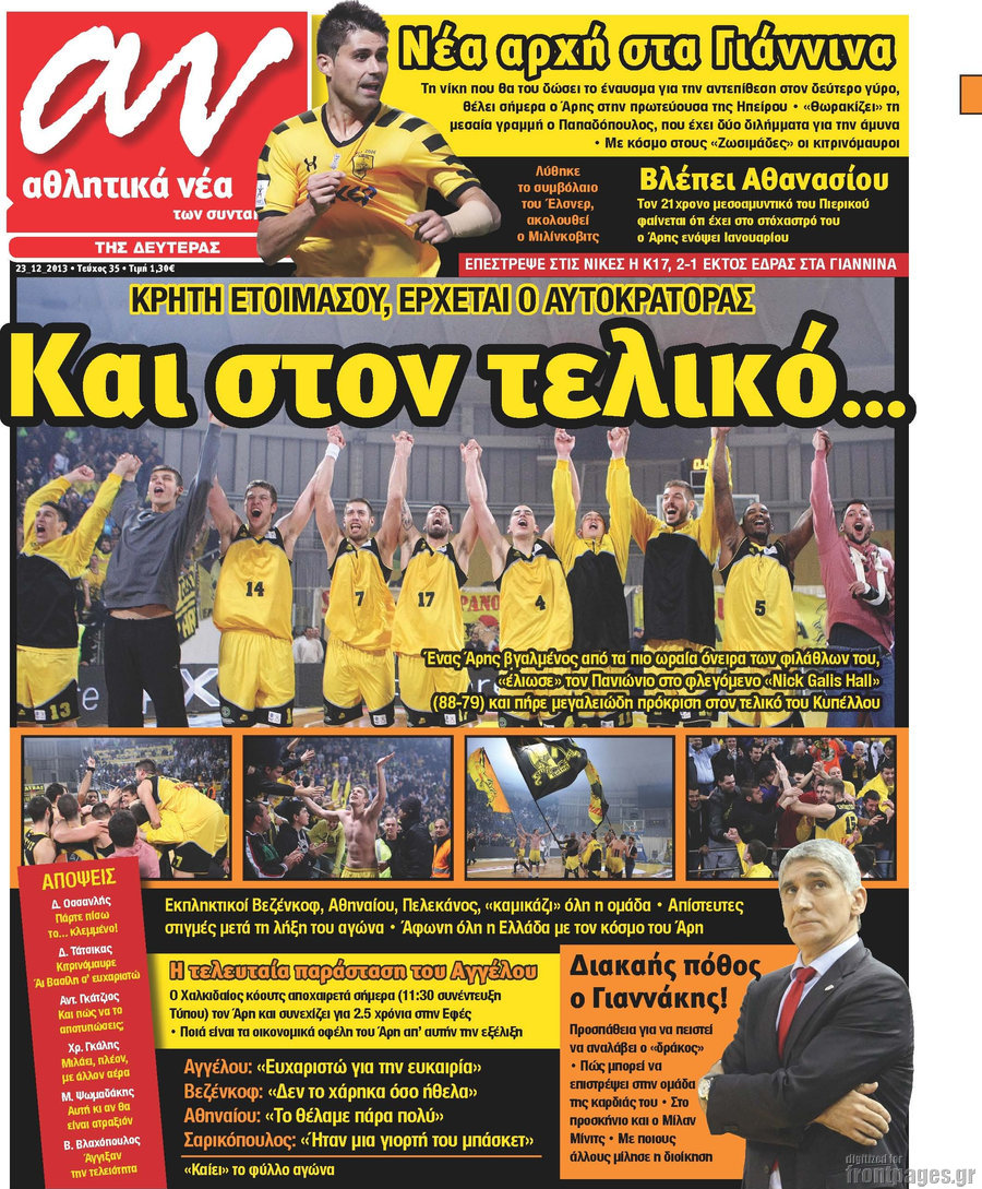 Οι αθλητικές εφημερίδες Enikos Newsroom 08:40, Δευτέρα 23 Δεκεμβρίου 2013 Media Οι αθλητικές εφημερίδες ΑΘΛΗΤΙΚΕΣ ΕΦΗΜΕΡΙΔΕΣ Μοιράσου το: σχολίασε κι εσύ (0 σχόλια) Ακολουθήστε το enikos.gr στο Google News και μάθετε πρώτοι όλες τις ειδήσεις Δείτε όλες τις τελευταίες ειδήσεις από την Ελλάδα και τον Κόσμο στο enikos.gr Ειδήσεις Ροή Ειδήσεων 1 ώρα πριν Εκτός ευρωομάδας ΣΥΡΙΖΑ ο Νίκος Παππάς μετά την επίθεση στον δημοσιογράφο Νίκο Γιαννόπουλο – Η μήνυση και οι νέες δηλώσεις 2 ώρες πριν «Αγριεύουν» οι αγρότες: «Δεν συντρέχει λόγος συνάντησης με τον πρωθυπουργό» – Ώρα αποφάσεων στη σύσκεψη της Πέμπτης 2 ώρες πριν Κυψέλη: Χωρίς την οικογένειά της δίπλα της απολογήθηκε η 16χρονη – «Της είχε επιτεθεί κάποιος για να την βιάσει, φοβήθηκε και κυκλοφορούσε με μαχαίρι» 1 ώρα πριν Politico: Το πρόβλημα της Ευρώπης δεν είναι το Βέλγιο αλλά ο Ντόναλντ Τραμπ 3 ώρες πριν Αλεξανδρούπολη: Πολυοργανική ανεπάρκεια λόγω υποσιτισμού η αιτία θανάτου του 3χρονου αγοριού 2 ώρες πριν Μυστήριο με τεράστιες κυκλικές πέτρες 200 κιλών – Ανακαλύφθηκαν τυχαία κατά τη διάρκεια οδικών έργων και κανείς δεν ξέρει από πού προέρχονται 3 ώρες πριν Ύπνος: Ειδικός εξηγεί τον πραγματικό λόγο που ξυπνάτε στις 4 τα ξημερώματα – Ο ρόλος των ορμονών και του κιρκάδιου ρυθμού 4 ώρες πριν Αριθμολογία: Οι άνθρωποι που έχουν γεννηθεί αυτές τις 4 ημερομηνίες, είναι τρυφεροί και αγαπούν ανιδιοτελώς 15 ώρες πριν 20 χρόνια τα Χριστούγεννα ξεκινούν στα Public με μεγάλη ποικιλία σε δώρα! 6 λεπτά πριν Βέλγους πολιτικούς και επικεφαλής χρηματοπιστωτικών ιδρυμάτων στοχοποιεί η Μόσχα για τα κατασχεθέντα περιουσιακά στοιχεία 21 λεπτά πριν ΗΠΑ: Αναζητείται δεύτερος ύποπτος για την επίθεση στο πανεπιστήμιο Μπράουν 36 λεπτά πριν Λεωφόρος Αλεξάνδρας: Δεν εντοπίστηκε βόμβα έξω από το κολλέγιο – Προσήχθη άνδρας για το προειδοποιητικό σημείωμα 53 λεπτά πριν Ελένη Κρίτα για το reunion του «Παρά Πέντε»: «Ήταν πραγματικά σαν να μην είχαμε χαθεί ποτέ» 1 ώρα πριν Κύπελλο Ελλάδας: Αυτά είναι τα ζευγάρια στα νοκ-άουτ, οι διασταυρώσεις στους «8» κι ο δρόμος προς τον τελικό ENIKOS NETWORK Αϋπνία: Το κόλπο που θα σας βοηθήσει να κοιμηθείτε απόψε – Είναι απλό και έχει αποτέλεσμα 2,6 εκατομμύρια πολίτες έχουν ήδη εμβολιαστεί κατά της γρίπης ΕΛΣΤΑΤ: Τι δείχνουν τα νέα στοιχεία για τις ηλεκτρονικές παραγγελίες των επιχειρήσεων ΚΕΠΕ: Οι 3 διακριτές συμβολές των ΜμΕ και της μεταποίησης στην ελληνική οικονομία Χαρτογραφώντας το «σημείο χωρίς επιστροφή»: Για πρώτη φορά αποκαλύπτεται με λεπτομέρεια το ακανθώδες όριο της ατμόσφαιρας τ... Η Google καταργεί τη λειτουργία «dark web report» – Πώς θα μπορούν οι χρήστες να διαγράφουν τα δεδομένα τους περισσότερα 22:24 , Τετάρτη 17 Δεκεμβρίου 2025 Το Σπίτι Δίπλα Στο Ποτάμι: Σε κίνδυνο η υγεία του Απόστολου – Τι θα δούμε απόψε “Το Σπίτι Δίπλα στο Ποτάμι” ξετυλίγει το νήμα της ζωής των πέντε αδελφών με καταισ... 21:14 , Τετάρτη 17 Δεκεμβρίου 2025 Παιχνίδια Εκδίκησης: Θα καταφέρει ο Χρήστος να κλονίσει την εμπιστοσύνη της Μάγιας απέναντι στον Άγη; Τα «Παιχνίδια Εκδίκησης» έρχονται απόψε στις 22:30, στον Αντ1, με το τελευταίο επεισόδιο της χ... 20:57 , Τετάρτη 17 Δεκεμβρίου 2025 Άγιος Έρωτας: Η Χλόη καταθέτει εναντίον του πατέρα της και ο Χάρης αποκαλύπτει στον Κλεάνθη ότι δεν είναι ο βιολογικός του πατέρας. Γεμάτο αποκαλύψεις είναι το νέο επεισόδιο της σειράς “Άγιος Έρωτας” απόψε στις 21:... 20:15 , Τετάρτη 17 Δεκεμβρίου 2025 Η ανακοίνωση της ΕΣΗΕΑ για την επίθεση του Ευρω