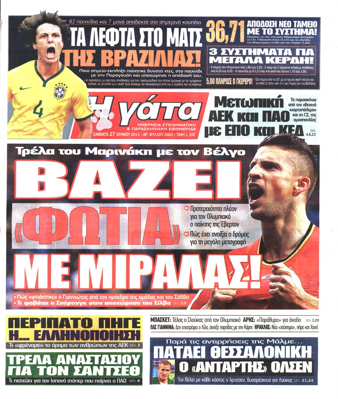 Οι αθλητικές εφημερίδες 27/6/2015 Enikos Newsroom 07:58, Σάββατο 27 Ιουνίου 2015 Media Διαβάστε τα σημερινά πρωτοσέλιδα των αθλητικών εφημερίδων: ΑΘΛΗΤΙΚΕΣ ΕΦΗΜΕΡΙΔΕΣ ΠΡΩΤΟΣΕΛΙΔΑ Μοιράσου το: σχολίασε κι εσύ (0 σχόλια) Ακολουθήστε το enikos.gr στο Google News και μάθετε πρώτοι όλες τις ειδήσεις Δείτε όλες τις τελευταίες ειδήσεις από την Ελλάδα και τον Κόσμο στο enikos.gr Ειδήσεις Ροή Ειδήσεων 22 λεπτά πριν «Έλληνας Εσκομπάρ»: Φωτογραφίες με τους 4 τόνους κοκαΐνης που κατασχέθηκαν από το σκάφος «Ουρανία» 3 ώρες πριν Η Ουκρανία χτύπησε τάνκερ του σκιώδους στόλου της Ρωσίας στη Μεσόγειο – Έπλεε νότια της Κρήτης 2 ώρες πριν Πούτιν: Σαρκαστικά μηνύματα, παράπονα και απρόοπτα στη συνέντευξη Τύπου – Η πρόταση γάμου on air και οι ερωτήσεις για τα αγγούρια και τους… εξωγήινους 2 ώρες πριν Η απάντηση της κυβέρνησης στα αιτήματα των αγροτών: 16+4 υλοποιούνται ή βρίσκονται υπό επεξεργασία για να βρεθεί λύση – 7 δεν μπορούν να επιλυθούν 3 ώρες πριν Εξώδικο επιχειρηματία στον Γιώργο Μαζωνάκη – Τι απαντά στις καταγγελίες του τραγουδιστή 1 ώρα πριν Τα 5 ζώδια που ευνοούνται στην ερωτική ζωή τους την επόμενη εβδομάδα – «Η ενέργεια του Αιγόκερου φέρνει αγάπη και σταθερότητα» 6 ώρες πριν Γεμάτος νεροχύτης; 5 σοβαρές ευθύνες που «φοβίζουν» όσους αφήνουν άπλυτα πιάτα 5 ώρες πριν Ειδικός μοιράζεται 6 κόλπα για να διατηρείστε σε φόρμα με πάνω από 40 ώρες εργασίας την εβδομάδα: «Προπονηθείτε πριν από τη δουλειά, όχι μετά» 2 ημέρες πριν 20 χρόνια τα Χριστούγεννα ξεκινούν στα Public με μεγάλη ποικιλία σε δώρα! 3 λεπτά πριν Γαλλία: Ξαφνική «επίσκεψη» των αγροτών στο σπίτι του Μακρόν – Πέταξαν κοπριά, λάχανα, λάστιχα και άφησαν ένα φέρετρο – ΒΙΝΤΕΟ 9 λεπτά πριν Από το Ορμένιο ως τα Μάλγαρα κι από τη Σιάτιστα μέχρι τη Νίκαια: Μπλόκα σε όλη την Ελλάδα – Το Σάββατο ανοίγουν τα διόδια οι αγρότες 10 λεπτά πριν Ταϊβάν: 3 νεκροί έπειτα από επίθεση άνδρα με μαχαίρι – Ο δράστης σκοτώθηκε σε αστυνομική καταδίωξη – ΒΙΝΤΕΟ 13 λεπτά πριν Άρης Μουγκοπέτρος για τα προσθετικά μέλη: «Οι κόρες μου ήρθαν, μου χαϊδέψαν το χέρι και μου είπαν “μπαμπά το μιμί πέρασε”» 18 λεπτά πριν Πούτιν: «Δεν είμαι υπεύθυνος» για τους θανάτους στην Ουκρανία – Σχέδιο για κατάπαυση του πυρός αν ο Ζελένσκι κάνει εκλογές ENIKOS NETWORK ΕΛΣΤΑΤ: Αύξηση κατά 1,7% των επαγγελματιών υγείας το 2024 Τάξη στις ιατρικές διαφημίσεις για την προστασία των πολιτών βάζει ο ΙΣΑ Μετρό: Ενισχύονται τα δρομολόγια – Δείτε ποιες ημέρες Παπαθανάσης για νέο Εθνικό Πρόγραμμα Ανάπτυξης 2026-2030: Είναι υπερδιπλάσιο από αυτό της προηγούμενης προγραμματικής περιό... Χαρτογραφώντας το «σημείο χωρίς επιστροφή»: Για πρώτη φορά αποκαλύπτεται με λεπτομέρεια το ακανθώδες όριο της ατμόσφαιρας τ... Η Google καταργεί τη λειτουργία «dark web report» – Πώς θα μπορούν οι χρήστες να διαγράφουν τα δεδομένα τους περισσότερα 15:15 , Παρασκευή 19 Δεκεμβρίου 2025 Την Κυριακή με τη Realnews: Ό,τι και αν αγοράσεις, σκανάρεις και κερδίζεις! Την Κυριακή με τη Realnews: Ό,τι και αν αγοράσεις, σκανάρεις και κερδίζεις! Με το PADU app, το... 08:00 , Παρασκευή 19 Δεκεμβρίου 2025 Την Κυριακή με τη Realnews: Δωροεπιταγή 10€ Δωροεπιταγή αξίας 10€ για αγορές άνω των 60€ από τα πολυκαταστήματα FactoryOutlet H προσφορά ι... 05:48 , Παρασκευή 19 Δεκεμβρίου 2025 Οι οικονομικές εφημερίδες 19/12/2025 Διαβάστε τα πρωτοσέλιδα από τις οικονομικές εφημερίδες, σήμερα 19/12/2025. 05:43 , Παρασκευή 19 Δεκεμβρίου 2025 Οι αθλητικές εφημερίδες 19/12/2025 Διαβάστε τα πρωτοσέλιδα από τις αθλητικές εφημερίδες, σ