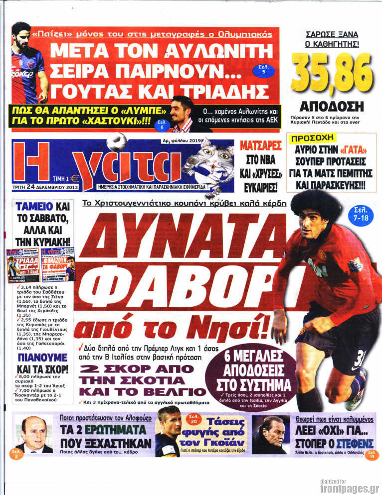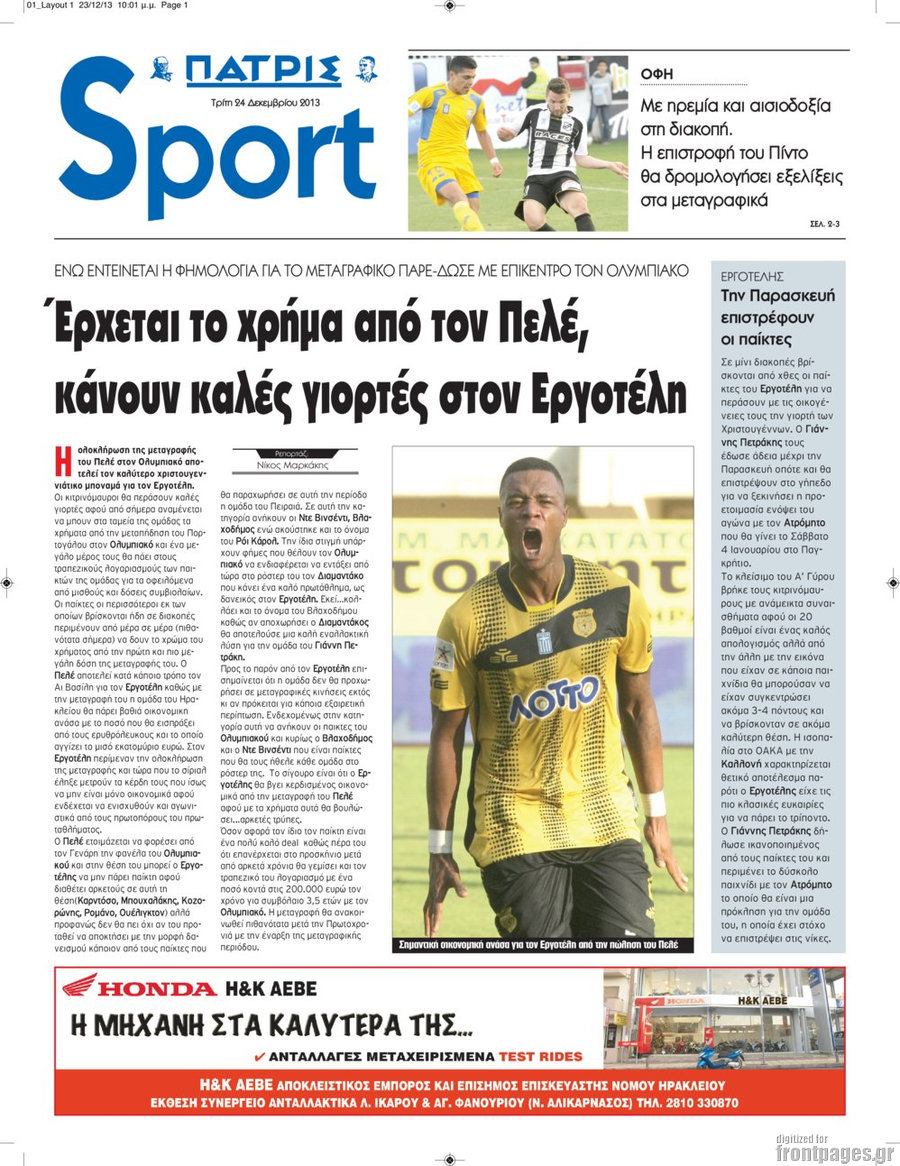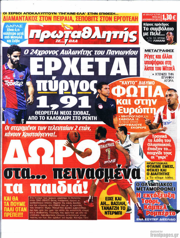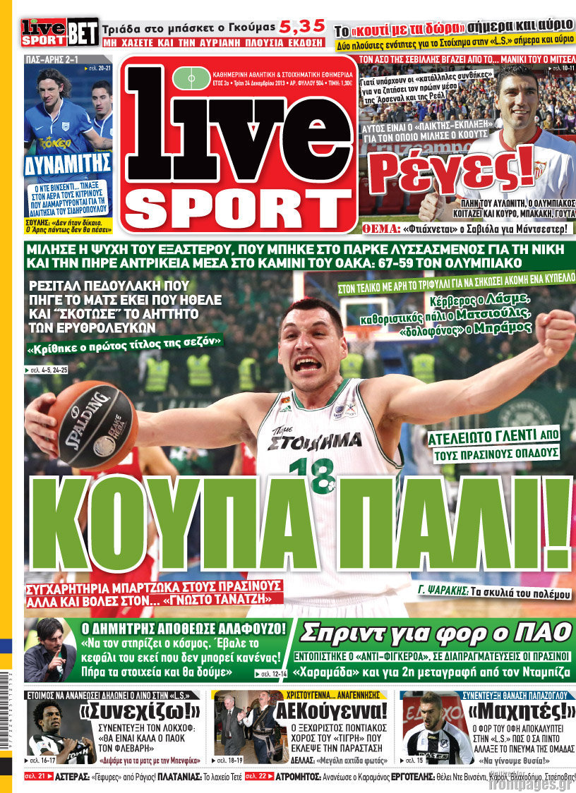 Οι αθλητικές εφημερίδες Enikos Newsroom 08:09, Τρίτη 24 Δεκεμβρίου 2013 Media Οι αθλητικές εφημερίδες ΑΘΛΗΤΙΚΕΣ ΕΦΗΜΕΡΙΔΕΣ ΕΦΗΜΕΡΙΔΕΣ Μοιράσου το: σχολίασε κι εσύ (0 σχόλια) Ακολουθήστε το enikos.gr στο Google News και μάθετε πρώτοι όλες τις ειδήσεις Δείτε όλες τις τελευταίες ειδήσεις από την Ελλάδα και τον Κόσμο στο enikos.gr Ειδήσεις Ροή Ειδήσεων 32 λεπτά πριν Νίκος Παππάς: Το παρασκήνιο της αποπομπής του – Οι μπουνιές, τα μηνύματα μετά την επίθεση και η διαγραφή από τον ΣΥΡΙΖΑ 2 ώρες πριν Φοροδιαφυγή: Ποιοι φορολογούμενοι κινδυνεύουν να πληρώσουν «τσουχτερά» πρόστιμα 58 λεπτά πριν Φοινικούντα: Παραδόθηκε 30χρονος στην Καλαμάτα για τη διπλή δολοφονία 1 ώρα πριν Αγρότες: Ανυποχώρητοι στα μπλόκα – Στις Σέρρες σήμερα η κρίσιμη συνεδρίαση της Πανελλαδικής Επιτροπής 1 ώρα πριν Τα επίσημα χρονοδιαγράμματα που η Τουρκία θα παραλάβει τα Eurofighter 3 ώρες πριν Καούρα: Το μπαχαρικό που είναι «εξίσου αποτελεσματικό» με την ομεπραζόλη, σύμφωνα με ειδικούς 3 ώρες πριν Τα ζώδια σήμερα, Πέμπτη 18 Δεκεμβρίου: Λέοντες, η καρδιά σας θέλει να εκφραστεί 3 ώρες πριν Οπτική ψευδαίσθηση: Μόνο οι πιο έξυπνοι άνθρωποι θα βρουν 7 ξωτικά 15 δευτερόλεπτα 24 ώρες πριν 20 χρόνια τα Χριστούγεννα ξεκινούν στα Public με μεγάλη ποικιλία σε δώρα! 4 λεπτά πριν Άστατος ο καιρός τα Χριστούγεννα: Βαρομετρικό χαμηλό από τον κόλπο της Σύρτης «ξεκλειδώνει» κακοκαιρίες – Πώς θα εξελιχθεί έως την Πρωτοχρονιά 7 λεπτά πριν Γρίπη: Η υπουργός Υγείας της Γαλλίας καλεί τους πολίτες να ξαναφορέσουν τις μάσκες τους 15 λεπτά πριν Μαρία Αλιφέρη: «Καλή σου ξεκούραση ακριβέ μου φίλε και αδελφέ» – Η συγκινητική ανάρτηση για τον Αλμπέρτο Εσκενάζυ 20 λεπτά πριν Οφειλές προς το Δημόσιο: Τι απαντά το υπουργείο στα σενάρια για νέα ρύθμιση 25 λεπτά πριν Συνταγή του Gordon Ramsay για σπιτικές πατάτες φούρνου ENIKOS NETWORK 5 ασκήσεις που εξαφανίζουν το «σωσίβιο» πιο γρήγορα από τους κοιλιακούς μετά τα 50 «Έκανα χρόνια μανικιούρ με τζελ μέχρι που κινδύνευσαν να πέσουν» – Πώς ήταν το σημάδι στο νύχι που την προειδοποίησε Οφειλές προς το Δημόσιο: «Φρένο» στα σενάρια για νέα ρύθμιση – Τι απαντά το υπουργείο Εθνικής Οικονομίας και Οικονομικών Φοροδιαφυγή: Ποιοι φορολογούμενοι κινδυνεύουν να πληρώσουν «τσουχτερά» πρόστιμα Χαρτογραφώντας το «σημείο χωρίς επιστροφή»: Για πρώτη φορά αποκαλύπτεται με λεπτομέρεια το ακανθώδες όριο της ατμόσφαιρας τ... Η Google καταργεί τη λειτουργία «dark web report» – Πώς θα μπορούν οι χρήστες να διαγράφουν τα δεδομένα τους περισσότερα 08:00 , Πέμπτη 18 Δεκεμβρίου 2025 Την Κυριακή με τη Realnews: Δωροεπιταγή 10€ Δωροεπιταγή αξίας 10€ για αγορές άνω των 60€ από τα πολυκαταστήματα FactoryOutlet H προσφορά ι... 07:50 , Πέμπτη 18 Δεκεμβρίου 2025 «Το σόι σου»: Backstage στα γυρίσματα για το εορταστικό επεισόδιο «Το σόι σου» φορά τα γιορτινά του για τα Χριστούγεννα και η Όλγα Λαφαζάνη, με την κάμερα του «... 07:36 , Πέμπτη 18 Δεκεμβρίου 2025 Οι αθλητικές μεταδόσεις 18/12/2025 – Πού θα δείτε τον αγώνα της ΑΕΚ με την Κραϊόβα για το Conference League Τα ματς ΑΕΚ – Ουνιβερσιτάτεα Κραϊόβα για το Conference League και Παναθηναϊκός – Χάποελ Τελ Αβ... 05:48 , Πέμπτη 18 Δεκεμβρίου 2025 Οι οικονομικές εφημερίδες 18/12/2025 Διαβάστε τα πρωτοσέλιδα από τις οικονομικές εφημερίδες, σήμερα 18/12/2025. ΤΕΛΕΥΤΑΙΕΣ ΕΙΔΗΣΕΙΣ 4 λεπτά πριν Άστατος ο καιρός τα Χριστούγεννα: Βαρομετρικό χαμηλό... 7 λεπτά πριν Γρίπη: Η υπουργός Υγείας της Γαλλίας καλεί τους... 15 λεπτά πριν Μαρία Αλιφέρη: «Καλή σου ξεκούραση ακριβέ μου φίλε και... 20 λεπτά πριν Ο