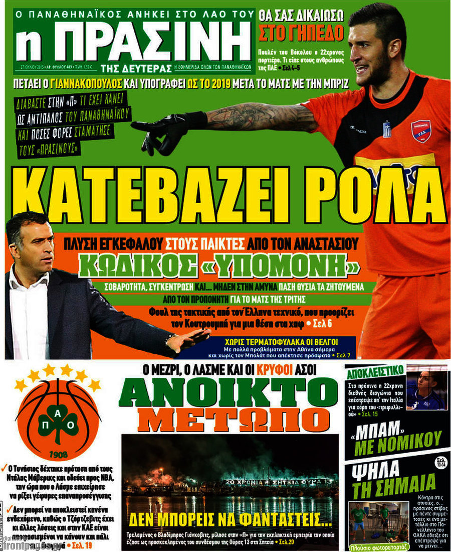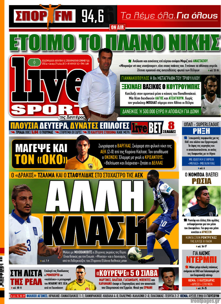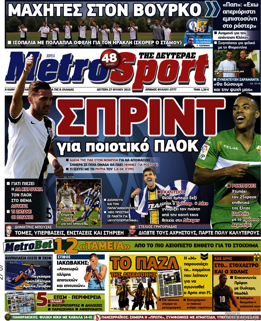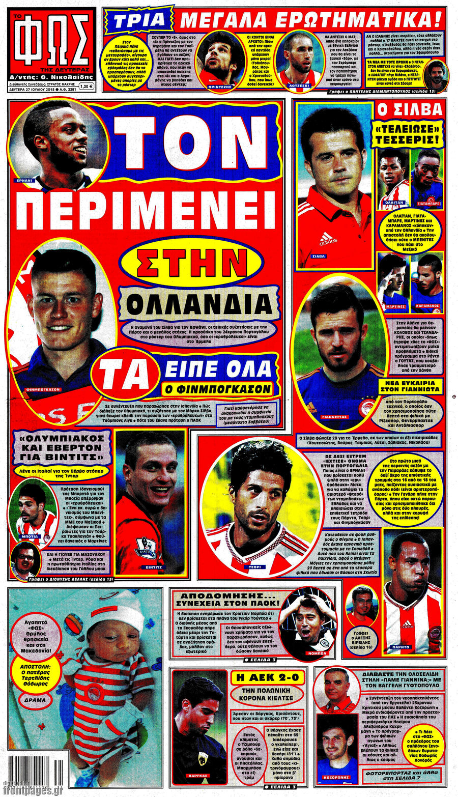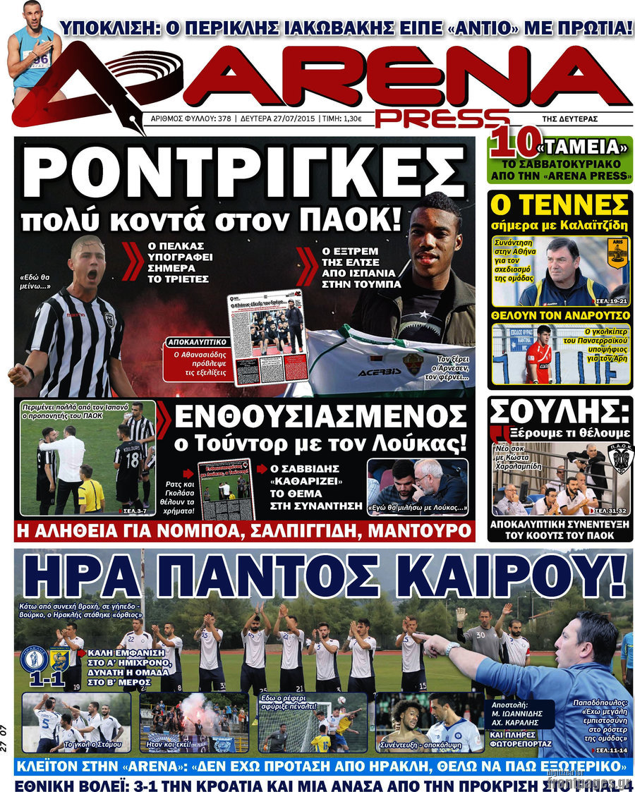 Οι αθλητικές εφημερίδες 27/7/2015 Enikos Newsroom 07:53, Δευτέρα 27 Ιουλίου 2015 Media Διαβάστε τα σημερινά πρωτοσέλιδα των αθλητικών εφημερίδων. ΑΘΛΗΤΙΚΕΣ ΕΦΗΜΕΡΙΔΕΣ ΕΦΗΜΕΡΙΔΕΣ ΠΡΩΤΟΣΕΛΙΔΑ Μοιράσου το: σχολίασε κι εσύ (0 σχόλια) Ακολουθήστε το enikos.gr στο Google News και μάθετε πρώτοι όλες τις ειδήσεις Δείτε όλες τις τελευταίες ειδήσεις από την Ελλάδα και τον Κόσμο στο enikos.gr Ειδήσεις Ροή Ειδήσεων 4 ώρες πριν Χριστούγεννα στα μπλόκα: Επιμένουν στις κινητοποιήσεις τους οι αγρότες – Ανοίγουν τα διόδια το Σαββατοκύριακο 5 ώρες πριν Ουκρανία: Η άνευ προηγουμένου επίθεση σε ρωσικό τάνκερ στη Μεσόγειο και το μήνυμα προς στον Πούτιν – Το «μακρύ χέρι» του Κιέβου 4 ώρες πριν Πούτιν: Τα μηνύματα σε Ευρώπη και ΝΑΤΟ από το μαραθώνιο «σόου» του – Η απαίτηση για «σεβασμό» και η ειρήνη «με τους όρους» της Μόσχας 5 ώρες πριν Τραμπ: Δεν αποκλείει την πιθανότητα ενός πολέμου στη Βενεζουέλα – «Ο Μαδούρο ξέρει καλύτερα από τον καθένα τι ακριβώς θέλω» 5 ώρες πριν Συνεχίζει να προκαλεί ο Μίτσκοσκι: «Για μένα το όνομα Μακεδονία είναι ιερό» 4 ώρες πριν Ανακαλύφθηκαν αρχαία χρυσά νομίσματα 2.200 ετών που απεικονίζουν τον θεό Απόλλωνα – Η άγνωστη σύνδεση με τον Φίλιππο Β΄ της Μακεδονίας 5 ώρες πριν Ύπνος: Μια κρυφή κατάσταση του εγκεφάλου πριν από τον ύπνο μπορεί να είναι το “κλειδί” για υψηλή ευφυΐα και δημιουργικότητα 6 ώρες πριν Αριθμολογία: Οι άνθρωποι που έχουν γεννηθεί αυτές τις 4 ημερομηνίες, συχνά παρεξηγούνται – «Η καλοσύνη τους κρύβει τεράστια δύναμη» 7 ώρες πριν Ξεχάστε το καθάρισμα το Σαββατοκύριακο: Ο «κανόνας των 20 λεπτών» που θα σας λύσει τα χέρια 23 λεπτά πριν Θεσσαλονίκη: Εξαφανίστηκε 13χρονος από χώρο φιλοξενίας ασυνόδευτων ανηλίκων στο Ωραιόκαστρο 33 λεπτά πριν Ντόναλντ Τραμπ: «Πολύ βαριά αντίποινα» στη Συρία – «Πλήττουμε πολύ δυνατά οχυρά του Ισλαμικού Κράτους» 48 λεπτά πριν Εξάρχεια: Ένταση με μολότοφ, χημικά και κρότου λάμψης 1 ώρα πριν ΗΠΑ: Τραγωδία στην Αλαμπάμα – Σκότωσε την δημοσιογράφο σύζυγό του και αυτοκτόνησε μπροστά στον 3χρονο γιο τους 1 ώρα πριν Πρόταση γάμου στο ΣΕΦ κατά την διάρκεια του αγώνα Ολυμπιακός-Βιλερμπάν – Δείτε βίντεο ENIKOS NETWORK Το ΕΚΑΒ τιμήθηκε από την Ακαδημία Αθηνών για τα 40 χρόνια προσφοράς του Έχετε πραγματικά μεγάλη καρδιά; 10 χαρακτηριστικά όσων έχουν καλοσύνη Αναστολή μέτρων αναγκαστικής εκτέλεσης για κτηνοτρόφους που πλήττονται από την ευλογιά των αιγοπροβάτων Πλήρης επάρκεια προϊόντων στις λαϊκές της Αττικής, παρά τις αγροτικές κινητοποιήσεις – Τι απαντούν οι πωλητές Χαρτογραφώντας το «σημείο χωρίς επιστροφή»: Για πρώτη φορά αποκαλύπτεται με λεπτομέρεια το ακανθώδες όριο της ατμόσφαιρας τ... Η Google καταργεί τη λειτουργία «dark web report» – Πώς θα μπορούν οι χρήστες να διαγράφουν τα δεδομένα τους περισσότερα 22:42 , Παρασκευή 19 Δεκεμβρίου 2025 Γιώργος Γιαννόπουλος για “Το σόι σου”: “Είναι ευτυχία και ευλογία αυτή η σειρά” «Είναι ευτυχία και ευλογία η συγκυρία αυτής της σειράς», θα πει ο Γιώργος Γιαννόπουλος -ο αγαπ... 20:37 , Παρασκευή 19 Δεκεμβρίου 2025 Don’t Forget The Lyrics: Η Έλλη Κοκκίνου υποδέχεται 4 παίκτες που θα κάνουν τα πάντα για να μη χάσουν ούτε… μισή λέξη από τους στίχους Το «Don’t Forget The Lyrics» επιστρέφει απόψε, Παρασκευή 19 Δεκεμβρίου, στις 21:00 με νέο επει... 19:31 , Παρασκευή 19 Δεκεμβρίου 2025 GNTM: Απόψε ο μεγάλος τελικός για τους 4 φιναλίστ Έπειτα από μήνες γεμάτους μόδα, δημιουργία και έντονες αναμετρήσεις, το GNTM 2025 κορυφώνεται,... 18:11 , Παρασκευή 19 Δεκεμβρί