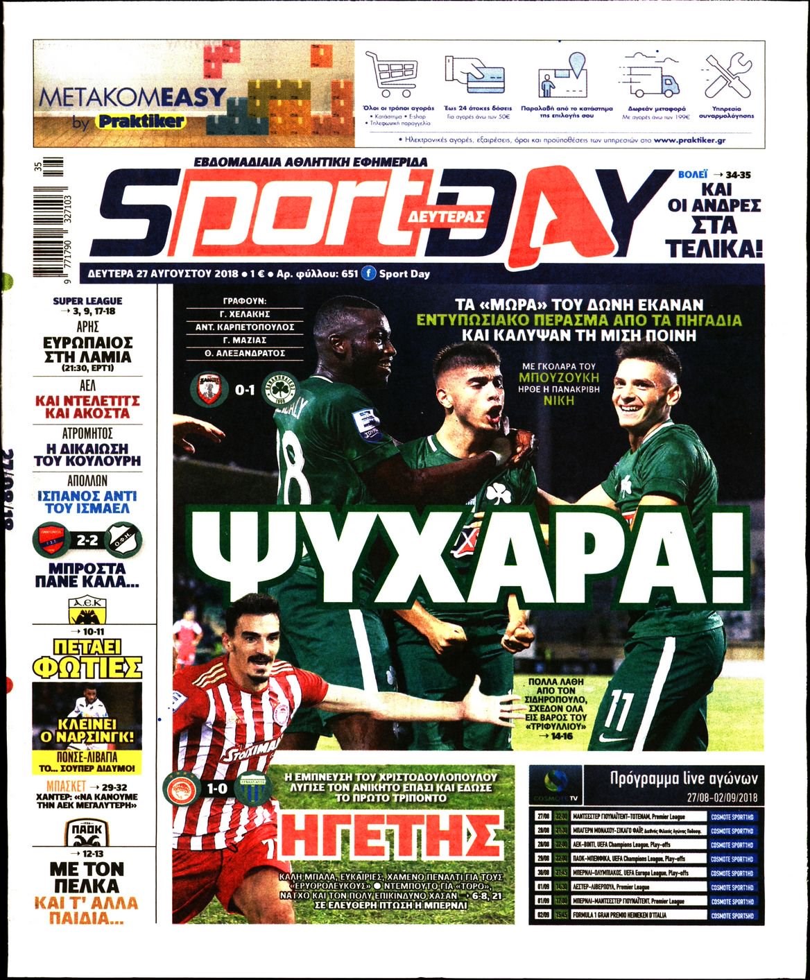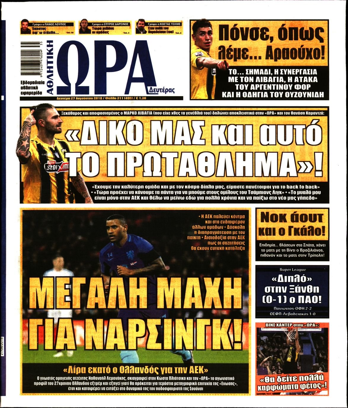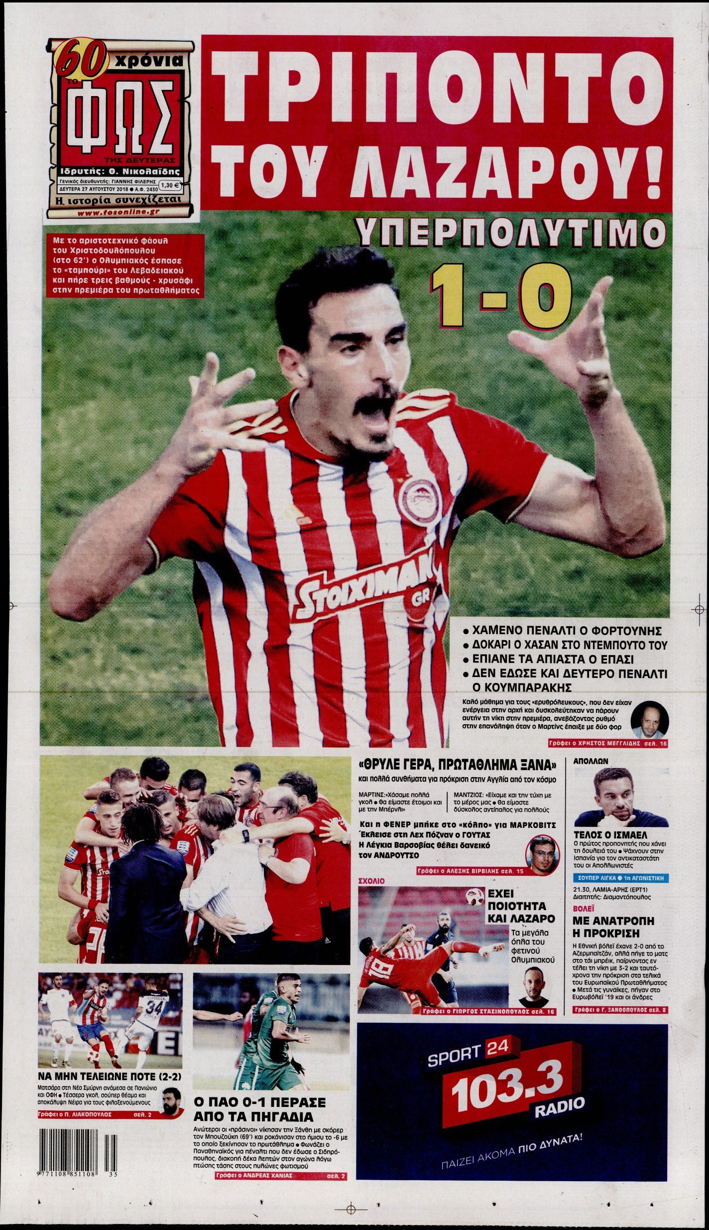 Οι αθλητικές εφημερίδες 27/8/18 Enikos Newsroom 06:55, Δευτέρα 27 Αυγούστου 2018 Media Διαβάστε τα πρωτοσέλιδα των αθλητικών εφημερίδων. ΑΘΛΗΤΙΚΕΣ ΕΦΗΜΕΡΙΔΕΣ ΠΡΩΤΟΣΕΛΙΔΑ Μοιράσου το: σχολίασε κι εσύ (0 σχόλια) Ακολουθήστε το enikos.gr στο Google News και μάθετε πρώτοι όλες τις ειδήσεις Δείτε όλες τις τελευταίες ειδήσεις από την Ελλάδα και τον Κόσμο στο enikos.gr Ειδήσεις Ροή Ειδήσεων 4 ώρες πριν Από το Ορμένιο ως τα Μάλγαρα κι από τη Σιάτιστα μέχρι τη Νίκαια: Μπλόκα σε όλη την Ελλάδα – Το Σάββατο ανοίγουν τα διόδια οι αγρότες 1 ώρα πριν Εμπλοκή και αερομαχίες με οπλισμένα τουρκικά F-16 στο Αιγαίο 3 ώρες πριν Αττική: Θρίλερ με νεκρό βρέφος 5 μηνών – Κοιμόταν στο ίδιο κρεβάτι με τους γονείς του 59 λεπτά πριν Πούτιν: «Ναι, είμαι ερωτευμένος» – Βίντεο από τη σπάνια προσωπική παραδοχή του 3 ώρες πριν Μεσόγειος: Η διαδρομή του ρωσικού τάνκερ «Qendil» και η στοχευμένη επίθεση της Ουκρανίας με drone – Ο Πούτιν προειδοποίησε για αντίποινα 5 ώρες πριν Τα 5 ζώδια που ευνοούνται στην ερωτική ζωή τους την επόμενη εβδομάδα – «Η ενέργεια του Αιγόκερου φέρνει αγάπη και σταθερότητα» 6 ώρες πριν Αυτό το έξυπνο μαθηματικό κόλπο θα μπορούσε να αλλάξει τον τρόπο με τον οποίο οι επιστήμονες μελετούν τους σεισμούς 2 ώρες πριν Μήπως έχετε χάσει τον εαυτό σας στη σχέση σας; 7 «αθόρυβες» υποχωρήσεις που μάλλον κάνατε, χωρίς να το συνειδητοποιήσετε 4 ώρες πριν Κουίζ για την παλιά Αθήνα: Αναγνωρίζετε την περιοχή; Έχετε περάσει 100% από εκεί 5 λεπτά πριν Μπαράκ Ομπάμα: Τα βιβλία, οι ταινίες και τα τραγούδια που ξεχώρισε το 2025 – Πλήρης λίστα 10 λεπτά πριν Don’t Forget The Lyrics: Η Έλλη Κοκκίνου υποδέχεται 4 παίκτες που θα κάνουν τα πάντα για να μη χάσουν ούτε… μισή λέξη από τους στίχους 16 λεπτά πριν Πλεύρης στον ΑΝΤ1: Η βασική πολιτική που ψηφίστηκε από τους υπουργούς Μετανάστευσης είναι η δημιουργία κέντρων κράτησης μεταναστών στην Αφρική – ΒΙΝΤΕΟ 21 λεπτά πριν Η εξομολόγηση της Νίκης Σερέτη: «Δεν κρύβω ότι ήταν πάρα πολύ δύσκολο όλο αυτό που βίωσα» 26 λεπτά πριν Αγρότες: Κλειστό ξανά το ρεύμα εισόδου στα Μάλγαρα – Άνοιξαν τον κόμβο της Χαλκηδόνας ENIKOS NETWORK Έχετε πραγματικά μεγάλη καρδιά; 10 χαρακτηριστικά όσων έχουν καλοσύνη «Η σούπερ» γρίπη εξαπλώνεται στην Ευρώπη-Στοιχεία από το ECDC για την αποτελεσματικότητα του εμβολίου Επίδομα παιδιού: Πότε ανοίγει ξανά η πλατφόρμα για τις αιτήσεις Προκήρυξη ΑΣΕΠ για 397 μόνιμες προσλήψεις στο Δημόσιο: Βγήκαν τα προσωρινά αποτελέσματα – Πότε αρχίζει η υποβολή ενστάσεων Χαρτογραφώντας το «σημείο χωρίς επιστροφή»: Για πρώτη φορά αποκαλύπτεται με λεπτομέρεια το ακανθώδες όριο της ατμόσφαιρας τ... Η Google καταργεί τη λειτουργία «dark web report» – Πώς θα μπορούν οι χρήστες να διαγράφουν τα δεδομένα τους περισσότερα 20:37 , Παρασκευή 19 Δεκεμβρίου 2025 Don’t Forget The Lyrics: Η Έλλη Κοκκίνου υποδέχεται 4 παίκτες που θα κάνουν τα πάντα για να μη χάσουν ούτε… μισή λέξη από τους στίχους Το «Don’t Forget The Lyrics» επιστρέφει απόψε, Παρασκευή 19 Δεκεμβρίου, στις 21:00 με νέο επει... 19:31 , Παρασκευή 19 Δεκεμβρίου 2025 GNTM: Απόψε ο μεγάλος τελικός για τους 4 φιναλίστ Έπειτα από μήνες γεμάτους μόδα, δημιουργία και έντονες αναμετρήσεις, το GNTM 2025 κορυφώνεται,... 18:11 , Παρασκευή 19 Δεκεμβρίου 2025 Το σόι σου: Ο Άρης έρχεται στην Ελλάδα για τις γιορτές των Χριστουγέννων – Τι θα δούμε στο αποψινό εορταστικό επεισόδιο Ένα απολαυστικό, εορταστικό επεισόδιο της σειράς “Το σόι σου”, γεμάτο ευτράπελα αλ... 15:15 , Παρασκευή 19 Δεκεμβρίου 2025 Την Κυριακή με τη R