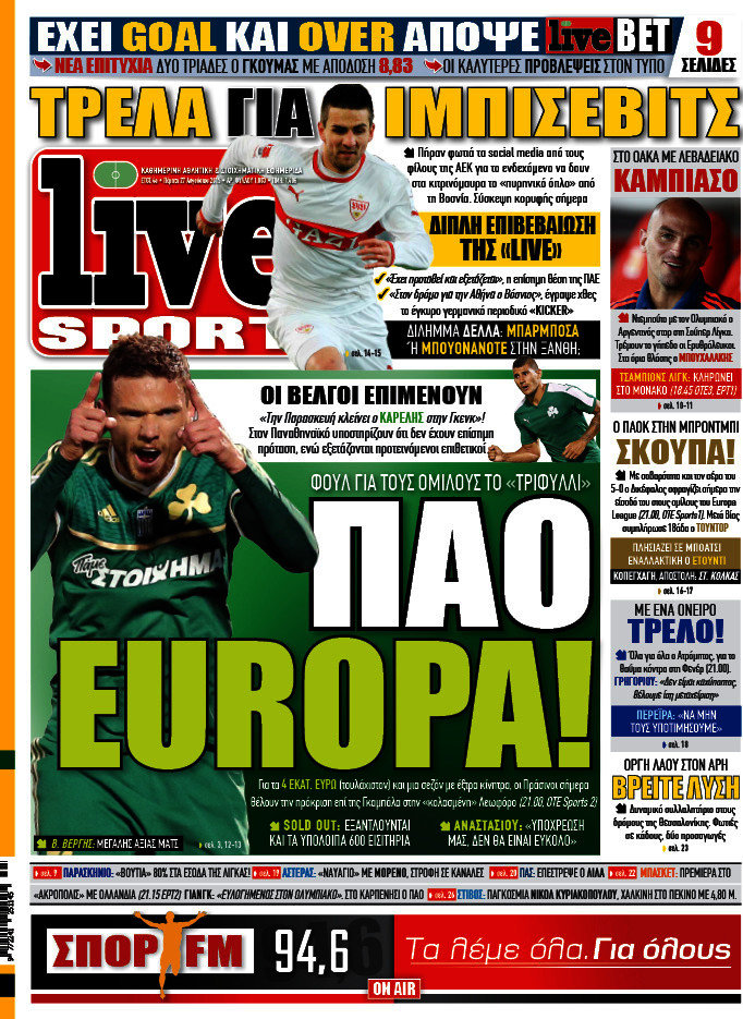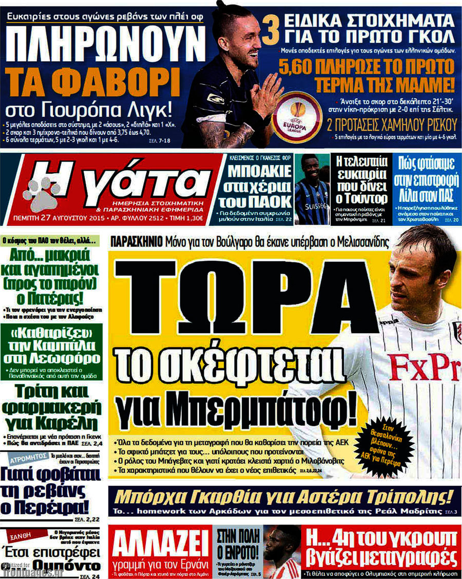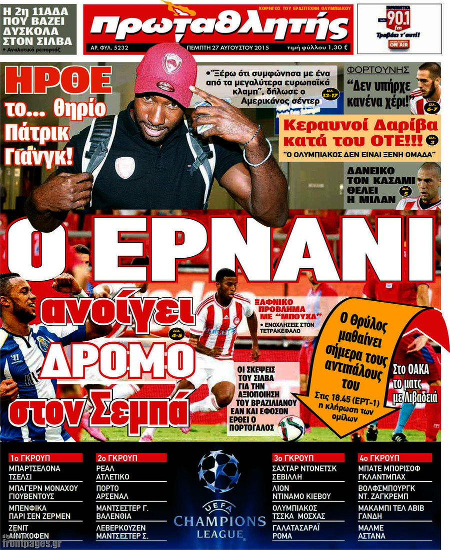 Οι αθλητικές εφημερίδες 27/8/2015 Enikos Newsroom 07:38, Πέμπτη 27 Αυγούστου 2015 Media Διαβάστε τα σημερινά πρωτοσέλιδα των αθλητικών εφημερίδων: ΑΘΛΗΤΙΚΕΣ ΕΦΗΜΕΡΙΔΕΣ ΠΡΩΤΟΣΕΛΙΔΑ Μοιράσου το: σχολίασε κι εσύ (0 σχόλια) Ακολουθήστε το enikos.gr στο Google News και μάθετε πρώτοι όλες τις ειδήσεις Δείτε όλες τις τελευταίες ειδήσεις από την Ελλάδα και τον Κόσμο στο enikos.gr Ειδήσεις Ροή Ειδήσεων 2 ώρες πριν Η Ουκρανία χτύπησε τάνκερ του σκιώδους στόλου της Ρωσίας στη Μεσόγειο – Έπλεε νότια της Κρήτης 4 ώρες πριν Πούτιν: Η Ουκρανία δεν είναι έτοιμη για ειρηνευτικές συνομιλίες – Ο ρωσικός στρατός προελαύνει σε όλα τα μέτωπα 41 λεπτά πριν Θεσσαλονίκη: Στη φυλακή ο 44χρονος που κατηγορείται ότι προσπάθησε να πνίξει με κορδόνι την 34χρονη σύντροφό του 59 λεπτά πριν Εξώδικο επιχειρηματία στον Γιώργο Μαζωνάκη – Τι απαντά στις καταγγελίες του τραγουδιστή 2 ώρες πριν Βουλή: Υπερψηφίστηκε το νομοσχέδιο για την ένταξη του ΟΠΕΚΕΠΕ στην ΑΑΔΕ 6 ώρες πριν Αλλαγή σελίδας για 3 ζώδια – «Μία δύσκολη περίοδος φτάνει στο τέλος της» 2 ημέρες πριν 20 χρόνια τα Χριστούγεννα ξεκινούν στα Public με μεγάλη ποικιλία σε δώρα! 5 ώρες πριν Γεμάτος νεροχύτης; 5 σοβαρές ευθύνες που «φοβίζουν» όσους αφήνουν άπλυτα πιάτα 4 ώρες πριν Ειδικός μοιράζεται 6 κόλπα για να διατηρείστε σε φόρμα με πάνω από 40 ώρες εργασίας την εβδομάδα: «Προπονηθείτε πριν από τη δουλειά, όχι μετά» 4 λεπτά πριν Πούτιν: Σαρκαστικά μηνύματα, παράπονα και απρόοπτα στη συνέντευξη Τύπου – Η πρόταση γάμου on air και οι ερωτήσεις για τα αγγούρια και τους… εξωγήινους 11 λεπτά πριν Κρήτη: Ένοχος ο 54χρονος «ερευνητής» για απάτη στην υπόθεση του 33χρονου γιατρού που αγνοείται 12 λεπτά πριν Νίκος Κούρκουλος: Αυτός ο αλύγιστος και ασυμβίβαστος «Αστραπόγιαννος» 17 λεπτά πριν Παναθηναϊκός: Θα προτείνει στη Λάτσιο 4 εκατ. ευρώ και συνιδιοκτησία για τον Μανδά 23 λεπτά πριν Η απάντηση της κυβέρνησης στα αιτήματα των αγροτών: 16+4 υλοποιούνται ή βρίσκονται υπό επεξεργασία για να βρεθεί λύση – 7 δεν μπορούν να επιλυθούν ENIKOS NETWORK Τάξη στις ιατρικές διαφημίσεις για την προστασία των πολιτών βάζει ο ΙΣΑ Μακροζωία: Τι παίζει πιο σημαντικό ρόλο ακόμα και από την διατροφή και την άσκηση, σύμφωνα με μελέτη Βουλή: Υπερψηφίστηκε το νομοσχέδιο για τη μετάβαση του ΟΠΕΚΕΠΕ στην ΑΑΔΕ ΕΥΔΑΠ: Οδηγός για τις αλλαγές στα τιμολόγια του νερού – 17 ερωτήσεις και απαντήσεις Χαρτογραφώντας το «σημείο χωρίς επιστροφή»: Για πρώτη φορά αποκαλύπτεται με λεπτομέρεια το ακανθώδες όριο της ατμόσφαιρας τ... Η Google καταργεί τη λειτουργία «dark web report» – Πώς θα μπορούν οι χρήστες να διαγράφουν τα δεδομένα τους περισσότερα 15:15 , Παρασκευή 19 Δεκεμβρίου 2025 Την Κυριακή με τη Realnews: Ό,τι και αν αγοράσεις, σκανάρεις και κερδίζεις! Την Κυριακή με τη Realnews: Ό,τι και αν αγοράσεις, σκανάρεις και κερδίζεις! Με το PADU app, το... 08:00 , Παρασκευή 19 Δεκεμβρίου 2025 Την Κυριακή με τη Realnews: Δωροεπιταγή 10€ Δωροεπιταγή αξίας 10€ για αγορές άνω των 60€ από τα πολυκαταστήματα FactoryOutlet H προσφορά ι... 05:48 , Παρασκευή 19 Δεκεμβρίου 2025 Οι οικονομικές εφημερίδες 19/12/2025 Διαβάστε τα πρωτοσέλιδα από τις οικονομικές εφημερίδες, σήμερα 19/12/2025. 05:43 , Παρασκευή 19 Δεκεμβρίου 2025 Οι αθλητικές εφημερίδες 19/12/2025 Διαβάστε τα πρωτοσέλιδα από τις αθλητικές εφημερίδες, σήμερα 19/12/2025. ΤΕΛΕΥΤΑΙΕΣ ΕΙΔΗΣΕΙΣ 4 λεπτά πριν Πούτιν: Σαρκαστικά μηνύματα, παράπονα και απρόοπτα... 11 λεπτά πριν Κρήτη: Ένοχος ο 54χρονος «ερευνητής» για απάτη στην... 12 λεπτά πριν Νίκος Κούρκουλος: 