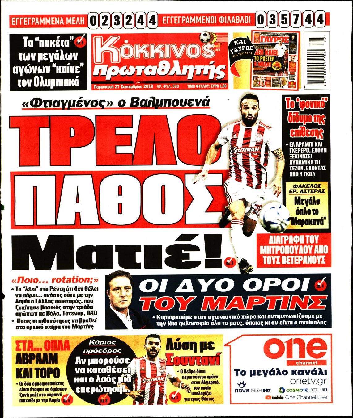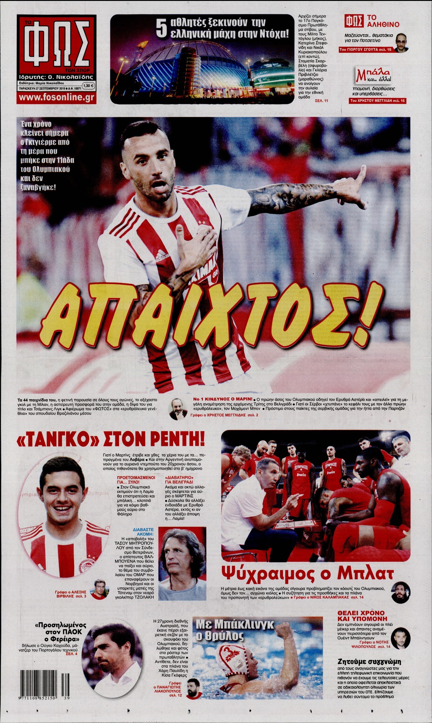Οι αθλητικές εφημερίδες 27/9/2019 Διονύσης Νίκκας 06:40, Παρασκευή 27 Σεπτεμβρίου 2019 Media Διαβάστε τα πρωτοσέλιδα των αθλητικών εφημερίδων… ΑΘΛΗΤΙΚΕΣ ΕΦΗΜΕΡΙΔΕΣ Μοιράσου το: σχολίασε κι εσύ (0 σχόλια) Ακολουθήστε το enikos.gr στο Google News και μάθετε πρώτοι όλες τις ειδήσεις Δείτε όλες τις τελευταίες ειδήσεις από την Ελλάδα και τον Κόσμο στο enikos.gr Ειδήσεις Ροή Ειδήσεων 29 λεπτά πριν Εκτός ευρωομάδας ΣΥΡΙΖΑ ο Νίκος Παππάς μετά την επίθεση στον δημοσιογράφο Νίκο Γιαννόπουλο – Η μήνυση και οι νέες δηλώσεις 57 λεπτά πριν «Αγριεύουν» οι αγρότες: «Δεν συντρέχει λόγος συνάντησης με τον πρωθυπουργό» – Ώρα αποφάσεων στη σύσκεψη της Πέμπτης 52 λεπτά πριν Κυψέλη: Χωρίς την οικογένειά της δίπλα της απολογήθηκε η 16χρονη – «Της είχε επιτεθεί κάποιος για να την βιάσει, φοβήθηκε και κυκλοφορούσε με μαχαίρι» 23 λεπτά πριν Politico: Το πρόβλημα της Ευρώπης δεν είναι το Βέλγιο αλλά ο Ντόναλντ Τραμπ 2 ώρες πριν Αλεξανδρούπολη: Πολυοργανική ανεπάρκεια λόγω υποσιτισμού η αιτία θανάτου του 3χρονου αγοριού 42 λεπτά πριν Μυστήριο με τεράστιες κυκλικές πέτρες 200 κιλών – Ανακαλύφθηκαν τυχαία κατά τη διάρκεια οδικών έργων και κανείς δεν ξέρει από πού προέρχονται 2 ώρες πριν Ύπνος: Ειδικός εξηγεί τον πραγματικό λόγο που ξυπνάτε στις 4 τα ξημερώματα – Ο ρόλος των ορμονών και του κιρκάδιου ρυθμού 3 ώρες πριν Αριθμολογία: Οι άνθρωποι που έχουν γεννηθεί αυτές τις 4 ημερομηνίες, είναι τρυφεροί και αγαπούν ανιδιοτελώς 14 ώρες πριν 20 χρόνια τα Χριστούγεννα ξεκινούν στα Public με μεγάλη ποικιλία σε δώρα! 23 λεπτά πριν Politico: Το πρόβλημα της Ευρώπης δεν είναι το Βέλγιο αλλά ο Ντόναλντ Τραμπ 29 λεπτά πριν Εκτός ευρωομάδας ΣΥΡΙΖΑ ο Νίκος Παππάς μετά την επίθεση στον δημοσιογράφο Νίκο Γιαννόπουλο – Η μήνυση και οι νέες δηλώσεις 29 λεπτά πριν Κύπελλο Ελλάδας: Η Μαρκό έστειλε τον ΠΑΟΚ στον Ολυμπιακό… μέσω Ατρόμητου 32 λεπτά πριν Άκης Σκέρτσος: Μήνυση και αγωγή κατά της Ζωής Κωνσταντοπούλου θα καταθέσει ο υπουργός Επικρατείας 42 λεπτά πριν Μυστήριο με τεράστιες κυκλικές πέτρες 200 κιλών – Ανακαλύφθηκαν τυχαία κατά τη διάρκεια οδικών έργων και κανείς δεν ξέρει από πού προέρχονται ENIKOS NETWORK Αϋπνία: Το κόλπο που θα σας βοηθήσει να κοιμηθείτε απόψε – Είναι απλό και έχει αποτέλεσμα 2,6 εκατομμύρια πολίτες έχουν ήδη εμβολιαστεί κατά της γρίπης ΕΛΣΤΑΤ: Τι δείχνουν τα νέα στοιχεία για τις ηλεκτρονικές παραγγελίες των επιχειρήσεων ΚΕΠΕ: Οι 3 διακριτές συμβολές των ΜμΕ και της μεταποίησης στην ελληνική οικονομία Χαρτογραφώντας το «σημείο χωρίς επιστροφή»: Για πρώτη φορά αποκαλύπτεται με λεπτομέρεια το ακανθώδες όριο της ατμόσφαιρας τ... Η Google καταργεί τη λειτουργία «dark web report» – Πώς θα μπορούν οι χρήστες να διαγράφουν τα δεδομένα τους περισσότερα 22:24 , Τετάρτη 17 Δεκεμβρίου 2025 Το Σπίτι Δίπλα Στο Ποτάμι: Σε κίνδυνο η υγεία του Απόστολου – Τι θα δούμε απόψε “Το Σπίτι Δίπλα στο Ποτάμι” ξετυλίγει το νήμα της ζωής των πέντε αδελφών με καταισ... 21:14 , Τετάρτη 17 Δεκεμβρίου 2025 Παιχνίδια Εκδίκησης: Θα καταφέρει ο Χρήστος να κλονίσει την εμπιστοσύνη της Μάγιας απέναντι στον Άγη; Τα «Παιχνίδια Εκδίκησης» έρχονται απόψε στις 22:30, στον Αντ1, με το τελευταίο επεισόδιο της χ... 20:57 , Τετάρτη 17 Δεκεμβρίου 2025 Άγιος Έρωτας: Η Χλόη καταθέτει εναντίον του πατέρα της και ο Χάρης αποκαλύπτει στον Κλεάνθη ότι δεν είναι ο βιολογικός του πατέρας. Γεμάτο αποκαλύψεις είναι το νέο επεισόδιο της σειράς “Άγιος Έρωτας” απόψε στις 21:... 20:15 , Τετάρτη 17 Δεκε