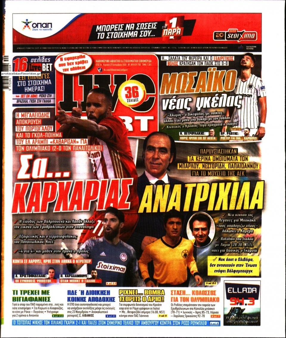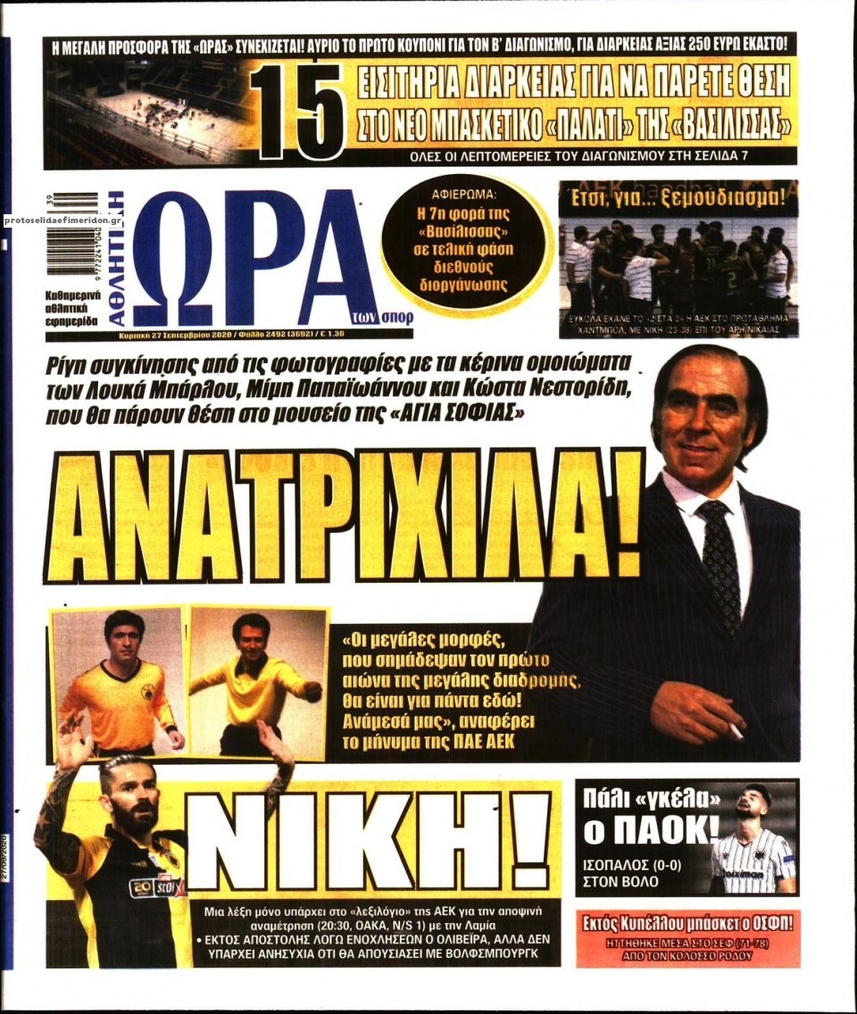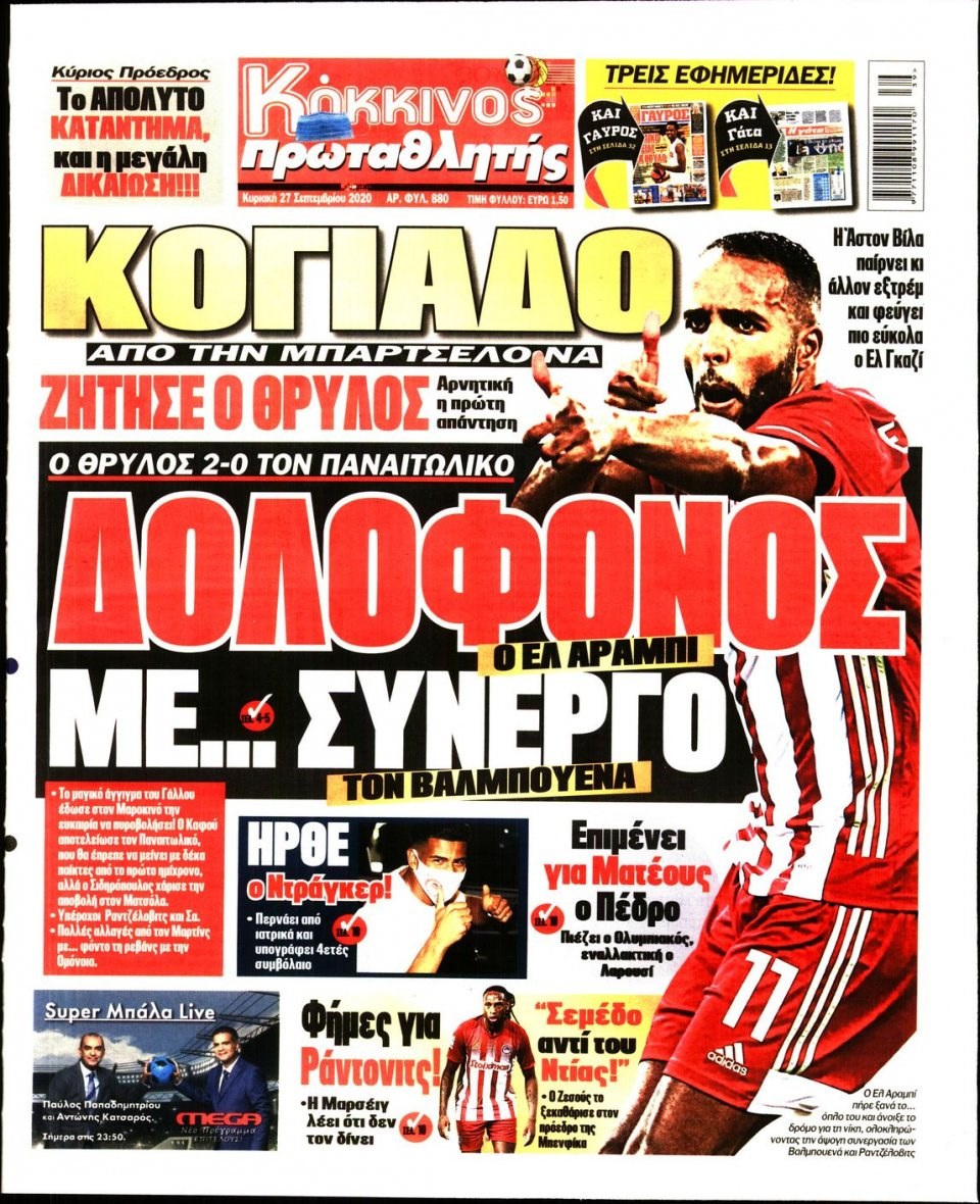Οι αθλητικές εφημερίδες 27/9/2020 Σήφης Γαρυφαλάκης 07:51, Κυριακή 27 Σεπτεμβρίου 2020 Media Διαβάστε τα πρωτοσέλιδα των αθλητικών εφημερίδων… ΑΘΛΗΤΙΚΕΣ ΕΦΗΜΕΡΙΔΕΣ ΕΦΗΜΕΡΙΔΕΣ ΠΡΩΤΟΣΕΛΙΔΑ ΠΡΩΤΟΣΕΛΙΔΑ ΕΦΗΜΕΡΙΔΩΝ Μοιράσου το: σχολίασε κι εσύ (0 σχόλια) Ακολουθήστε το enikos.gr στο Google News και μάθετε πρώτοι όλες τις ειδήσεις Δείτε όλες τις τελευταίες ειδήσεις από την Ελλάδα και τον Κόσμο στο enikos.gr Ειδήσεις Ροή Ειδήσεων 5 ώρες πριν Μητσοτάκης: Αναγκαία η μεταρρύθμιση του πρωτογενούς τομέα – Τα 6 νέα μέτρα για το στεγαστικό και οι αναφορές σε «Ιθάκη» και «πολιτικούς του καναπέ» 4 ώρες πριν Δάνεια σε ελβετικό φράγκο: Τα βασικά σημεία της ρύθμισης – ανάσας για 40.000 δανειολήπτες – Αναλυτικός οδηγός με ερωτήσεις και απαντήσεις 4 ώρες πριν Κυψέλη: Εξιτήριο πήρε η 14χρονη μαθήτρια που μαχαιρώθηκε από την 16χρονη σε σχολείο – «Θέλω να βοηθήσω το παιδί, έχει μπλέξει με κακές παρέες» 3 ώρες πριν Τραμπ: Γιατί κατέθεσε τώρα την αγωγή κατά του BBC – Πώς η κίνησή του εξυπηρετεί το νέο δόγμα του για «αντίσταση» στην Ευρώπη, υπέρ των συντηρητικών 4 ώρες πριν ΟΠΕΚΕΠΕ – Παράνομες επιδοτήσεις: Ελεύθεροι με περιοριστικούς όρους και οι 7 κατηγορούμενοι που απολογήθηκαν σήμερα 4 ώρες πριν Ανακαλύφθηκε βυθισμένη πέτρινη κατασκευή ανοιχτά της Κριμαίας – Αποτελεί μέρος αρχαίας ελληνικής αποικίας 5 ώρες πριν Ύπνος: Αυτό μπορεί να είναι το χειρότερο λάθος για το βιολογικό ρολόι σας, σύμφωνα με ειδικό 6 ώρες πριν Αριθμολογία: Οι άνθρωποι που έχουν γεννηθεί αυτές τις 3 ημερομηνίες, προσελκύουν μεγάλη τύχη πριν από το τέλος του 2025 8 ώρες πριν Οι 7 συμπεριφορές που μαρτυρούν ότι ένας άνδρας επενδύει μακροπρόθεσμα σε μια σχέση 13 λεπτά πριν ΗΠΑ: Στην αγορά δύο Boeing 747-8 προχωρά η Πολεμική Αεροπορία για την υποστήριξη του προεδρικού στόλου 28 λεπτά πριν Ιταλία: Λεωφορείο έπεσε πάνω σε βιτρίνα καταστήματος στο Τορίνο – Τρεις τραυματίες 43 λεπτά πριν Χαλάνδρι: Καθηγητής έπιασε με κόφτη τα δάχτυλα μαθητή σε κατάληψη – «Μου έχεις πιάσει το χέρι» 58 λεπτά πριν Ουκρανία: Εκρήξεις στο Κίεβο ύστερα από προειδοποίηση για επιδρομή drones 1 ώρα πριν Ορφέας Αυγουστίδης: Η επική ατάκα του γιου του για τα «Φαντάσματα» – «Του λέω “δεν ντρέπεσαι να το λες στον πατέρα σου αυτό;”» ENIKOS NETWORK Αίτημα ΙΣΑ για την εξαίρεση των προσωπικών γιατρών από τις κατ’ οίκον επισκέψεις Η σκανδιναβική μέθοδος στον ύπνο που μπορεί να σώσει έναν γάμο Πιερρακάκης: Ο προϋπολογισμός συμβάλλει ουσιαστικά στην ενίσχυση της αγοραστικής δύναμης της πλειονότητας των εργαζομένων e-ΕΦΚΑ: Παρατείνεται η προθεσμία για την υποβολή ΑΠΔ – Ποιους αφορά Σύγχρονος Νοστράδαμος: Προειδοποιεί για «μεγάλο γεγονός» τους επόμενους μήνες που θα συγκλονίσει τη Βρετανία και τον κόσμο Τεστ παρατηρητικότητας: Μπορείτε να βρείτε τις 3 διαφορές στις εικόνες με έναν πιγκουίνο σε 14 δευτερόλεπτα περισσότερα 20:06 , Τρίτη 16 Δεκεμβρίου 2025 Ο ΣΚΑΙ καταγγέλλει τον ΕΚΚΟΜΕΔ Επιστολή με την οποία καταγράφει την έντονη διαμαρτυρία του προς τον διευθύνοντα σύμβουλο του... 17:40 , Τρίτη 16 Δεκεμβρίου 2025 Eurovision: Στις 4 Ιανουαρίου αποκαλύπτονται τα 28 τραγούδια του ελληνικού τελικού Η αγωνία τελειώνει, η γιορτή της Eurovision αρχίζει στην ΕΡΤ από τις πρώτες ημέρες της νέας χρ... 17:09 , Τρίτη 16 Δεκεμβρίου 2025 Alter Ego Media: Βαθύτατη θλίψη και ειλικρινή συλλυπητήρια για την απώλεια της Ειρήνης Μαρινάκη Τη βαθύτατη θλίψη και τα ειλικρινή συλλυπητήριά της εκφράζει η Alter Ego Media για τον θάνατο ... 13:00 , Τρίτη 