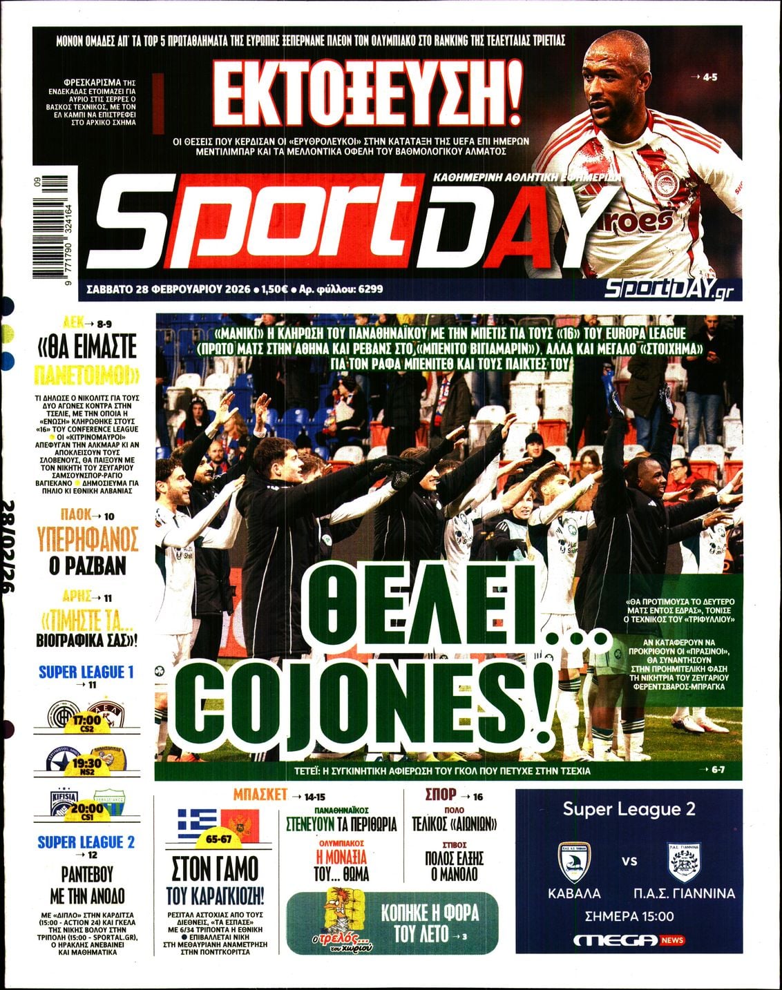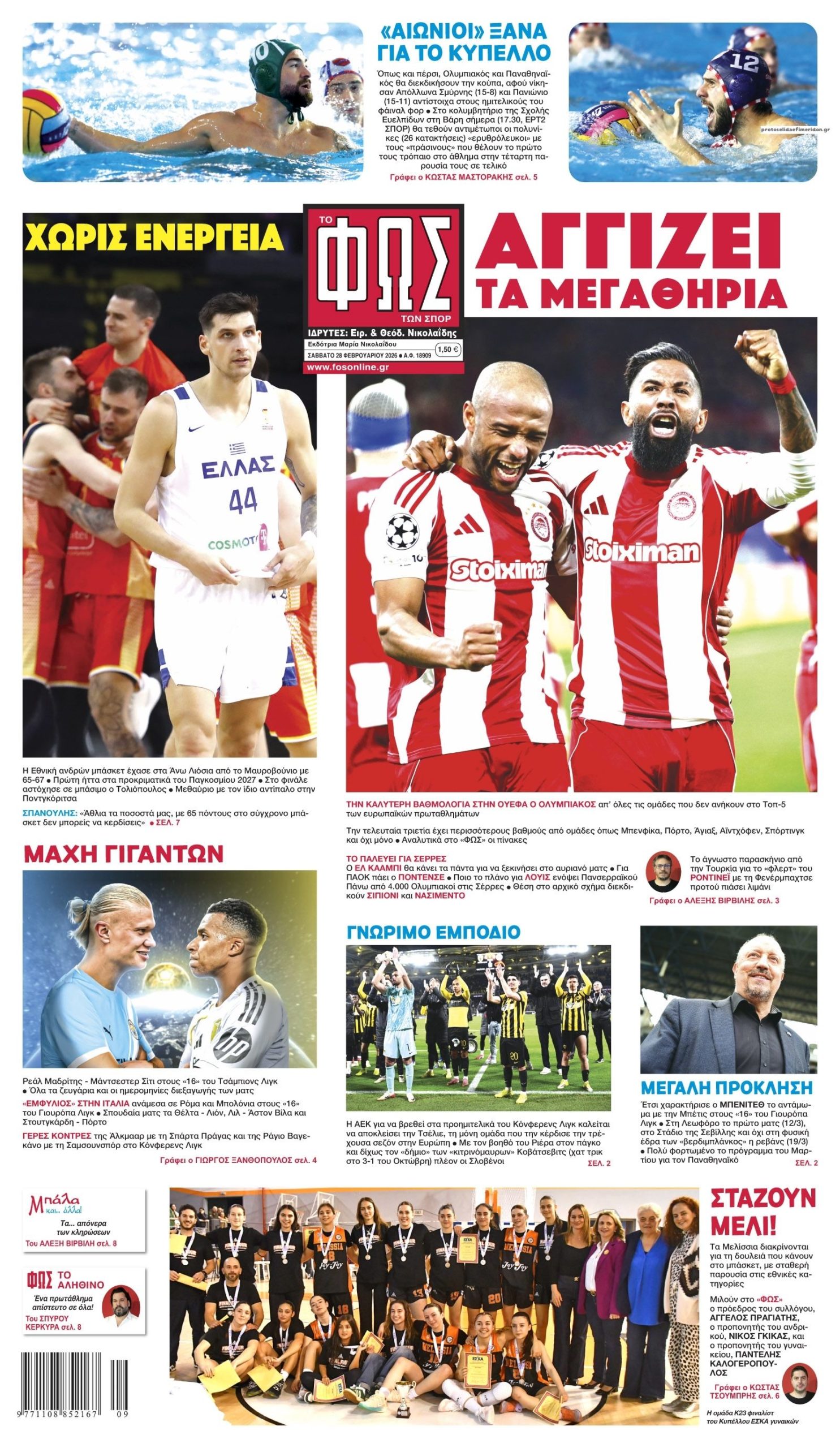 Οι αθλητικές εφημερίδες 28/2/2026 Enikos Newsroom 05:43, Σάββατο 28 Φεβρουαρίου 2026 Media Διαβάστε τα πρωτοσέλιδα από τις αθλητικές εφημερίδες, σήμερα 28/2/2026. ΑΘΛΗΤΙΚΕΣ ΕΦΗΜΕΡΙΔΕΣ ΕΦΗΜΕΡΙΔΕΣ ΠΡΩΤΟΣΕΛΙΔΑ Μοιράσου το: Premier League: «Βόμβα» απ’ τη Γουλβς, νίκησε 2-0 την Άστον Βίλα Πέθανε ο θρύλος του ροκ εν ρολ Νιλ Σεντάκα Τρία χρόνια από την τραγωδία στα Τέμπη: Συλλαλητήρια το Σάββατο σε όλη τη χώρα – Ποιοι απεργούν, πώς θα κινηθούν τα Μέσα Μεταφοράς σχολίασε κι εσύ (0 σχόλια) Ακολουθήστε το enikos.gr στο Google News και μάθετε πρώτοι όλες τις ειδήσεις Δείτε όλες τις τελευταίες ειδήσεις από την Ελλάδα και τον Κόσμο στο enikos.gr Ειδήσεις Ροή Ειδήσεων 30 λεπτά πριν Τρία χρόνια από την τραγωδία στα Τέμπη: Συγκεντρώσεις σήμερα σε Ελλάδα και εξωτερικό – Ποιοι συμμετέχουν, πώς θα κινηθούν τα Μέσα Μεταφοράς 9 ώρες πριν Λουτράκι: Για ασήμαντη αφορμή η αιματηρή συμπλοκή με θύμα τον 17χρονο – «Εγώ το έκανα» είπε ο δράστης στους αστυνομικούς πριν παραδοθεί 10 ώρες πριν Δυστύχημα στο «Ελ. Βενιζέλος»: Ποια ήταν η «αγωνίστρια της προσφοράς» Μαρία Λαδά που έχασε τη ζωή της – Πώς έγινε η τραγωδία 3 ώρες πριν Ο Ντοναλντ Τραμπ προειδοποιεί ότι επίκειται «μεγάλη απόφαση» για το Ιράν – Αποχωρήσεις από πρεσβείες και διακοπή πτήσεων 5 ώρες πριν Βολιβία: Συντριβή μεταγωγικού αεροσκάφους της πολεμικής αεροπορίας με τουλάχιστον 15 νεκρούς – Απόπειρα λεηλασίας των χαρτονομισμάτων που μετέφερε – Δείτε φώτο και βίντεο 1 ώρα πριν Οπτική ψευδαίσθηση: Μόνο όσοι έχουν τέλεια όραση μπορούν να εντοπίσουν το δαχτυλίδι μέσα σε 12 δευτερόλεπτα 1 ώρα πριν Καρκίνος: Οι τροφές που μπορούν να μειώσουν τον κίνδυνο εμφάνισης 6 τύπων της νόσου, σύμφωνα με μελέτη 4 ώρες πριν Ζώδια 28/2: Ημερήσιες προβλέψεις – Λέοντες, οι σχέσεις σας γίνονται πιο σοβαρές τώρα 9 ώρες πριν Η συνήθεια πριν από τον ύπνο που βελτιώνει θεαματικά την ξεκούρασή σας, σύμφωνα με ειδικούς 17 δευτερόλεπτα πριν Οι αθλητικές μεταδόσεις του Σαββάτου (28/2) 6 λεπτά πριν Εορτολόγιο: Ποιοι γιορτάζουν σήμερα 28 Φεβρουαρίου 30 λεπτά πριν Τρία χρόνια από την τραγωδία στα Τέμπη: Συγκεντρώσεις σήμερα σε Ελλάδα και εξωτερικό – Ποιοι συμμετέχουν, πώς θα κινηθούν τα Μέσα Μεταφοράς 46 λεπτά πριν ΔΕΔΔΗΕ: Διακοπές ρεύματος σήμερα (28/2) στην Αθήνα και σε άλλες 13 περιοχές της Αττικής 1 ώρα πριν Υπόθεση Επστάιν: Με αιχμές κατά του Ντόναλντ Τραμπ η κατάθεση του Μπιλ Κλίντον ENIKOS NETWORK Ο καλύτερος τρόπος για να αποθηκεύετε τις πατάτες – Δεν θα βγάζουν ρίζες Το όσπριο που δεν έτρωγε ποτέ ο Πυθαγόρας μπορεί να βοηθήσει με την απώλεια βάρους και να ενισχύσει τα οστά «Πασχαλινά» επιδόματα από τη ΔΥΠΑ: Όλες οι τελευταίες πληροφορίες για τις πληρωμές και τους δικαιούχους Το σχέδιο για ταχύτερη απονομή των εφάπαξ στο Δημόσιο – Οι 1.000 εκκρεμείς υποθέσεις και η ομάδα κρούσης που συγκροτείται Ευπάθεια στο moltbook ai αποκαλύπτει email, tokens σύνδεσης και api keys Αυτός είναι ο ρόλος της μικρής τρύπας στους νυχοκόπτες – «Είμαι ο μόνος που δεν το ήξερε;»» περισσότερα 07:20 , Σάββατο 28 Φεβρουαρίου 2026 Οι αθλητικές μεταδόσεις του Σαββάτου (28/2) Οι αγώνες της Premier League μεταξύ Λίβερπουλ – Γουέστ Χαμ, Νιούκαστλ – Έβερτον και Λιντς – Μά... 05:38 , Σάββατο 28 Φεβρουαρίου 2026 Οι πολιτικές εφημερίδες 28/2/2026 Διαβάστε τα πρωτοσέλιδα από τις πολιτικές εφημερίδες, σήμερα 28/2/2026. 04:35 , Σάββατο 28 Φεβρουαρίου 2026 Μαρία Μπακοδήμου για τον «Πιο αδύναμο κρίκο»: «Είναι παιχνίδι στρατηγικής όχι μόνο γνώσεων» Η Μαρία Μπακοδήμου ανυπομονεί για την