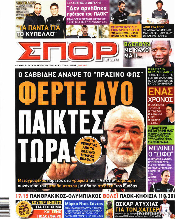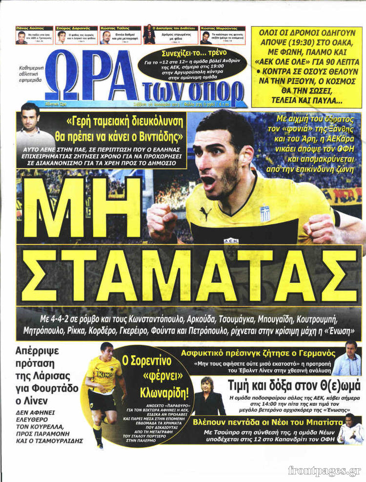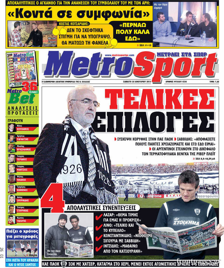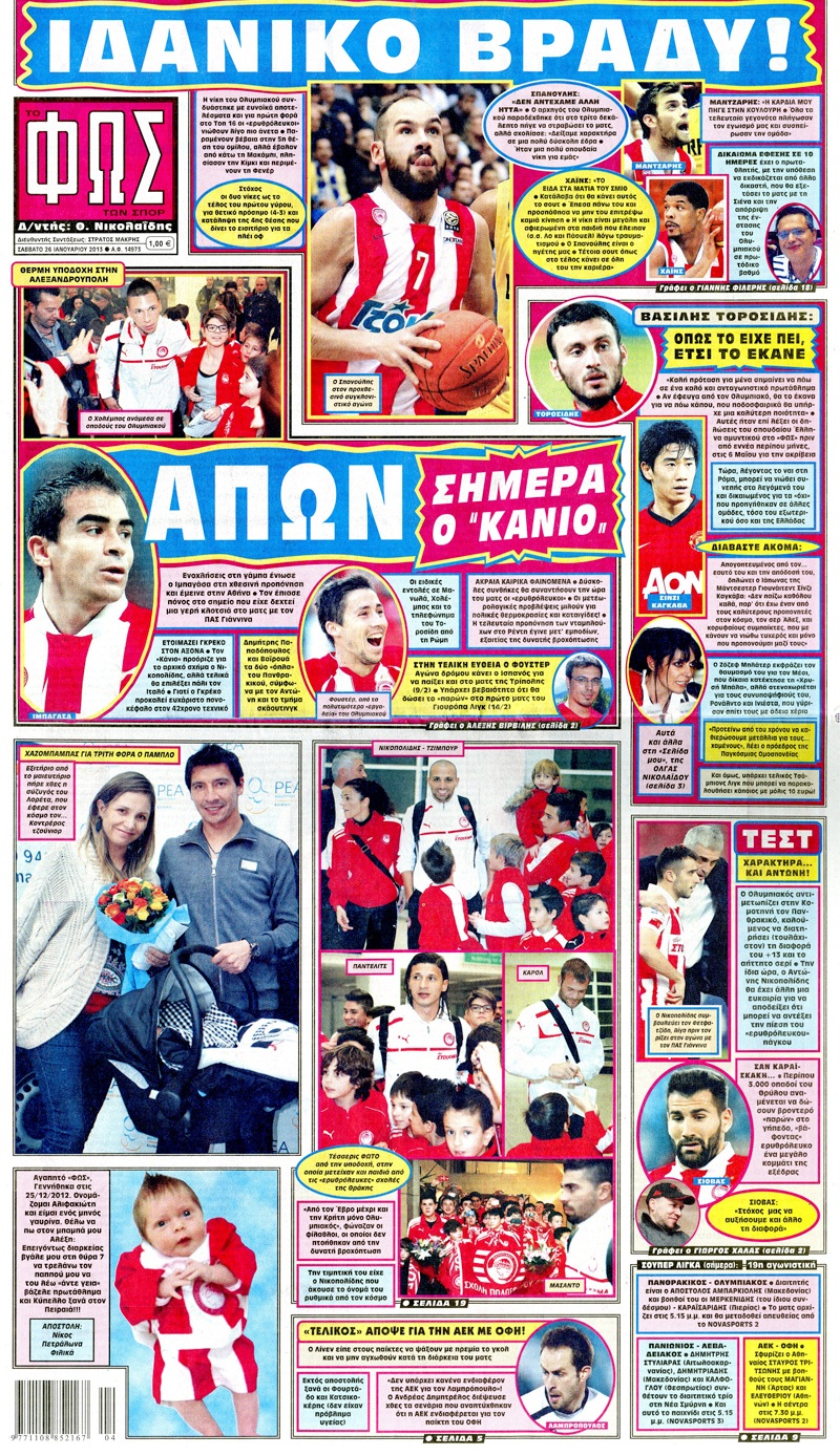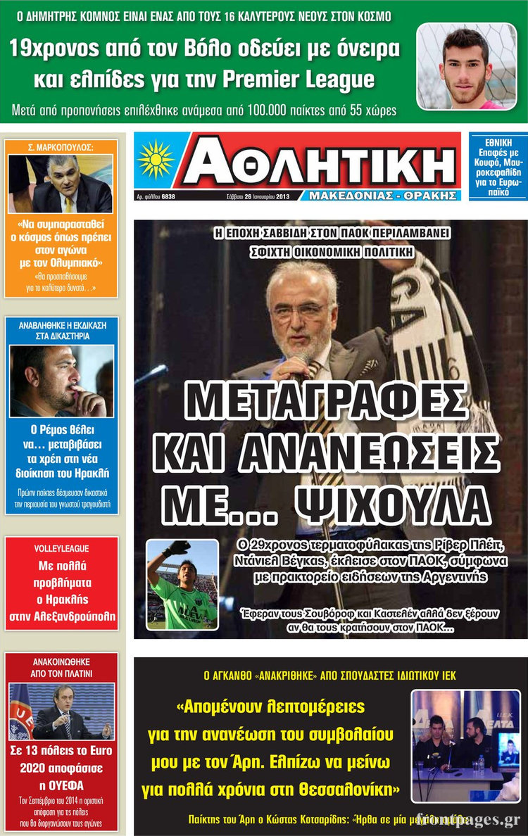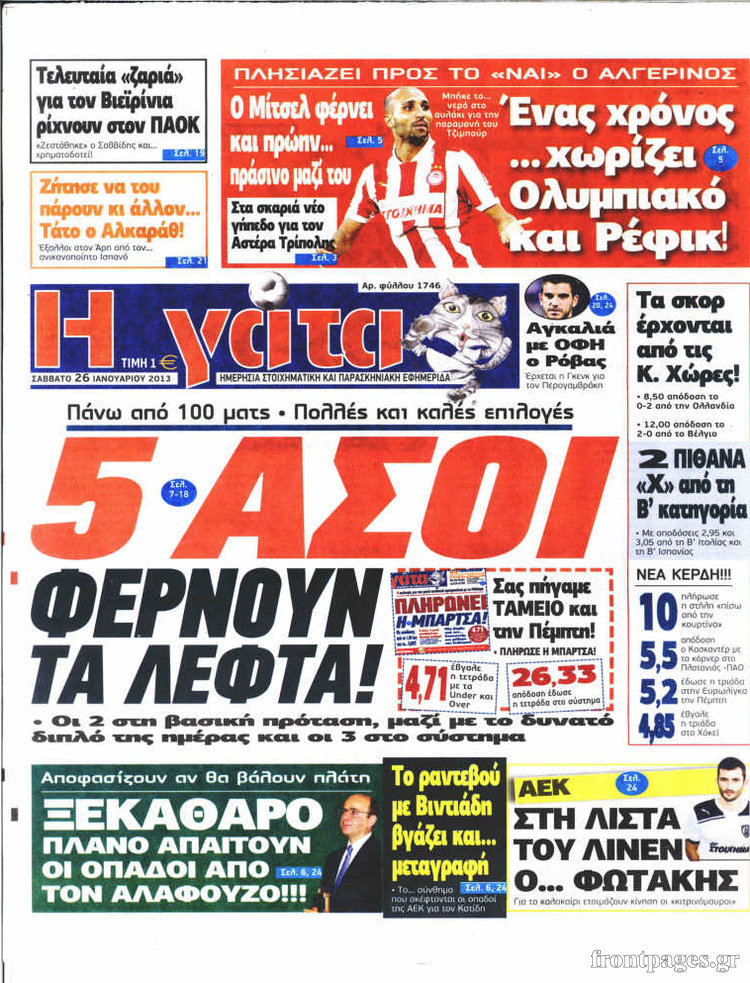 Οι αθλητικές εφημερίδες Enikos Newsroom 09:22, Σάββατο 26 Ιανουαρίου 2013 Media Οι αθλητικές εφημερίδες Δείτε τα πρωτοσέλιδα των αθλητικών εφημερίδων ΑΘΛΗΤΙΚΕΣ ΕΦΗΜΕΙΔΕΣ ΠΡΩΤΟΣΕΛΙΔΑ Μοιράσου το: σχολίασε κι εσύ (0 σχόλια) Ακολουθήστε το enikos.gr στο Google News και μάθετε πρώτοι όλες τις ειδήσεις Δείτε όλες τις τελευταίες ειδήσεις από την Ελλάδα και τον Κόσμο στο enikos.gr Ειδήσεις Ροή Ειδήσεων 1 ώρα πριν Ευρωπαϊκή Ένωση: Συμφωνία για δάνειο 90 δισ. ευρώ στην Ουκρανία τη διετία 2026-2027 6 ώρες πριν ΟΠΕΚΕΠΕ: Προφυλακιστέος ο φερόμενος αρχηγός και ο λογιστής της εγκληματικής οργάνωσης 7 ώρες πριν Αυξάνουν την πίεση προς την κυβέρνηση οι αγρότες: Κλείνουν παρακαμπτήριους και ανοίγουν διόδια – Τι θα γίνει τις γιορτές 7 ώρες πριν Φοινικούντα: Το Σάββατο απολογείται ο 30χρονος γιος γνωστού επιχειρηματία της Πλάκας που παραδόθηκε – Όσα είπε στους αστυνομικούς και ο ρόλος του στο έγκλημα 5 ώρες πριν ΑΕΚ – Κραϊόβα 3-2: Επική ανατροπή και πρόκριση στους «16» του Conference League η Ένωση 7 ώρες πριν Αρχαιολόγοι ανακάλυψαν ρωμαϊκά τεχνουργήματα από μια πόλη που δεν υπήρξε ποτέ – Τα τρία εντυπωσιακά κτίρια και ο αμφορέας με τις… σαρδέλες 8 ώρες πριν Ύπνος: Η απλή βραδινή ρουτίνα για να προστατεύσετε τα μαλλιά σας από το κρύο κατά τη διάρκεια του χειμώνα 9 ώρες πριν Manifesting: Πώς να συναντήσετε τον σύντροφο της ζωής σας, ανάλογα με τον μήνα γέννησής σας 2 ημέρες πριν 20 χρόνια τα Χριστούγεννα ξεκινούν στα Public με μεγάλη ποικιλία σε δώρα! 2 λεπτά πριν Τα ζώδια σήμερα, Παρασκευή 19 Δεκεμβρίου: Τοξότες, με τη Νέα Σελήνη έρχεται η προσωπική ανανέωσή σας 10 λεπτά πριν Εφημερεύοντα φαρμακεία σε Αθήνα και Θεσσαλονίκη (19/12) 17 λεπτά πριν Η TikTok στις ΗΠΑ πωλείται σε Oracle, Silver Lake και MGX – Οι λεπτομέρειες του «deal» 25 λεπτά πριν Αλεξάντερ Λουκασένκο: Η Λευκορωσία βρίσκεται κοντά στην αποκατάσταση των σχέσεών της με τις ΗΠΑ 40 λεπτά πριν Αυστραλία: Κήρυξε την Κυριακή (21/12) ημέρα εθνικού πένθους για τη φονική επίθεση στην παραλία Μπόνταϊ ENIKOS NETWORK Σε περίοδο αυξημένης δραστηριότητας η γρίπη στην Ελλάδα-Μέτρα προστασίας από τον ΕΟΔΥ Σκέφτεστε συνέχεια συζητήσεις που έχετε κάνει; Τι σημαίνει αυτό, σύμφωνα με ειδικό Στεγαστικό: Τι λέει η ΠΟΜΙΔΑ για τα νέα μέτρα που ανακοίνωσε ο Κυριάκος Μητσοτάκης Λαγκάρντ: Αισιόδοξη για την ανάπτυξη της Ευρωζώνης, αβέβαιη για τον πληθωρισμό Χαρτογραφώντας το «σημείο χωρίς επιστροφή»: Για πρώτη φορά αποκαλύπτεται με λεπτομέρεια το ακανθώδες όριο της ατμόσφαιρας τ... Η Google καταργεί τη λειτουργία «dark web report» – Πώς θα μπορούν οι χρήστες να διαγράφουν τα δεδομένα τους περισσότερα 02:50 , Παρασκευή 19 Δεκεμβρίου 2025 GNTM: «Κλείδωσαν» οι τέσσερις φιναλίστ – Μεγάλη ανατροπή στις τελευταίες αποχωρήσεις Για προτελευταία φορά εμφανίστηκαν στο πλατό του GNTM οι φιναλίστ του φετινού κύκλου, το βράδυ... 17:45 , Πέμπτη 18 Δεκεμβρίου 2025 ROUK ZOUK: Εορταστικό επεισόδιο με καλεσμένους τους πρωταγωνιστές του «Γιατί ρε πατέρα» Το Σάββατο 20 Δεκεμβρίου στις 21:00, η Ζέτα Μακρυπούλια υποδέχεται εκλεκτούς ηθοποιούς που όλο... 17:20 , Πέμπτη 18 Δεκεμβρίου 2025 Άγιος έρωτας: Η Χριστίνα εξομολογείται στον πατέρα Νικόλαο, απόψε στις 21:00 στον Alpha Η Νότα αποφασίζει να εκδικηθεί τον Πέτρο και τον Στέφανο, για χάρη του Λούη, όμως τα πράγματα ... 16:50 , Πέμπτη 18 Δεκεμβρίου 2025 Να μ’ αγαπάς: Ζωή και Φωτεινή συμφιλιώνονται ως μάνα με κόρη, απόψε στις 20:00 Η ταυτότητα του Άγγελου αποκαλύπτεται στο νέο επεισόδιο της σειράς “Να μ’ αγαπάς... ΤΕΛΕΥΤΑΙΕΣ ΕΙΔΗΣΕΙ