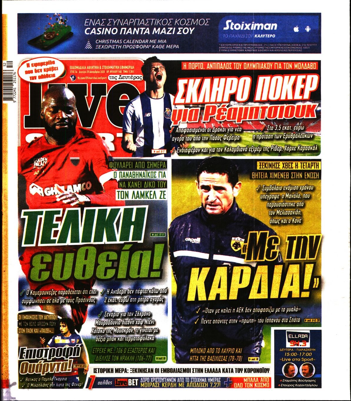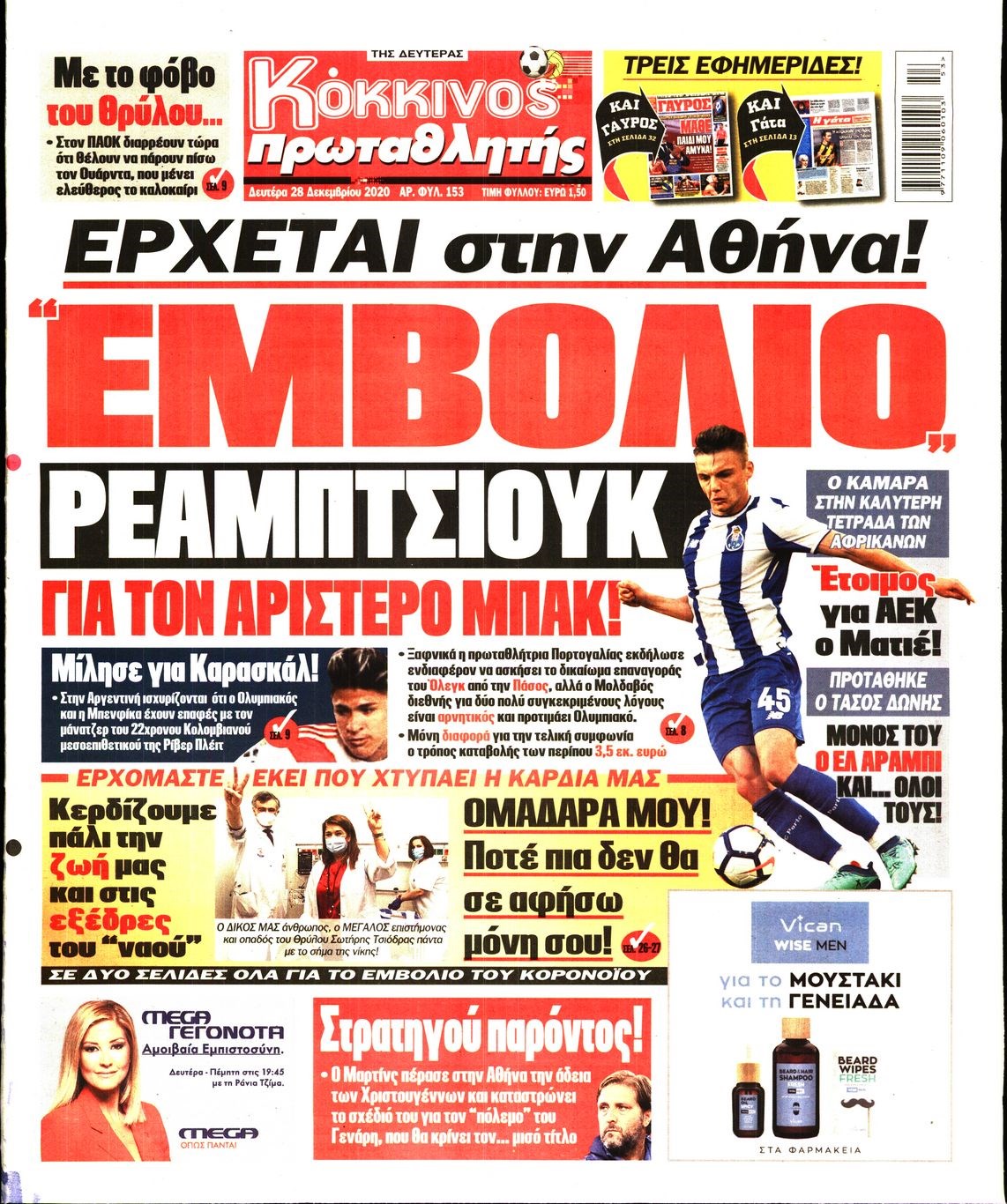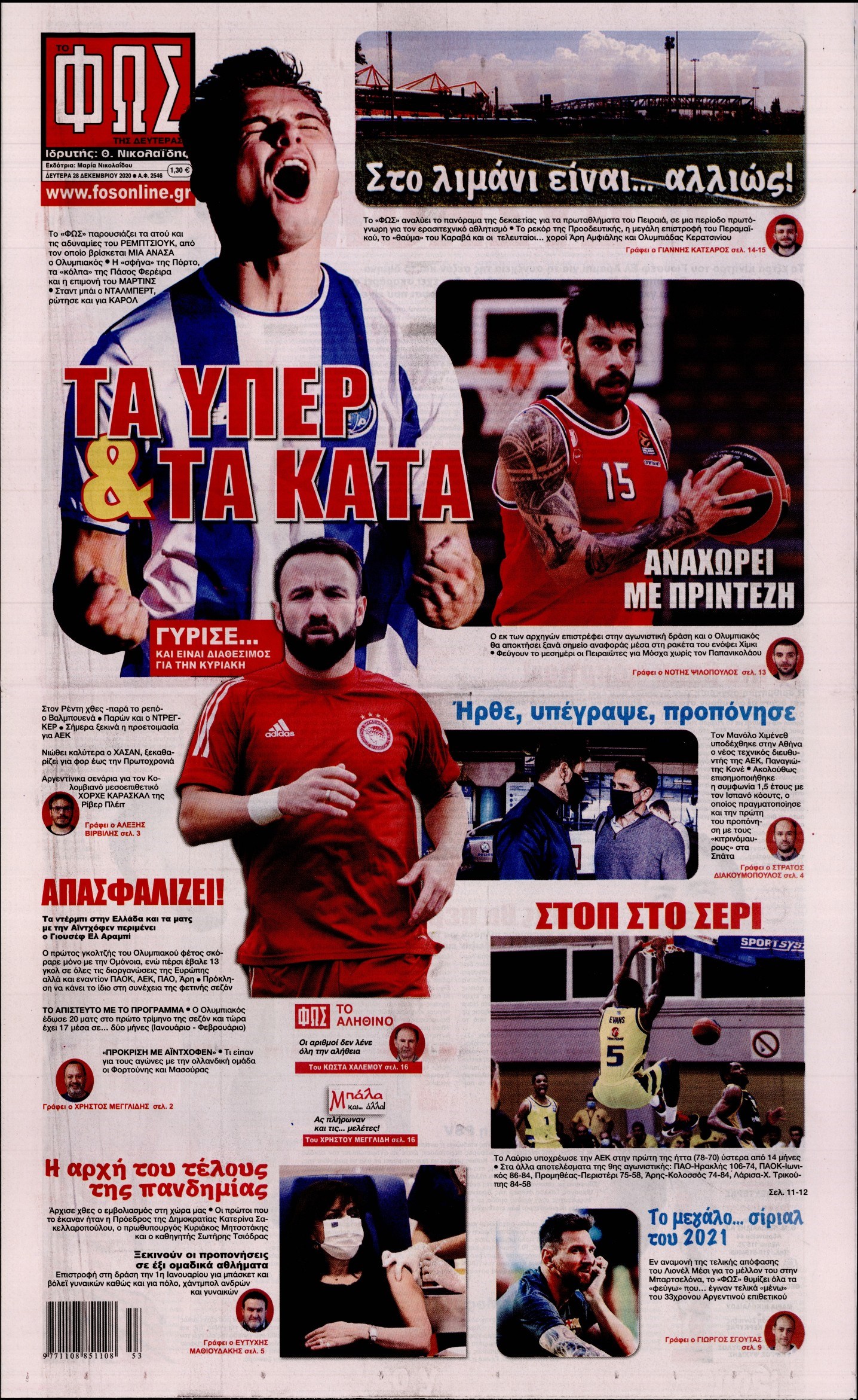 Οι αθλητικές εφημερίδες 28/12/2020 Διονύσης Νίκκας 06:31, Δευτέρα 28 Δεκεμβρίου 2020 Media Διαβάστε τα πρωτοσέλιδα των αθλητικών εφημερίδων… ΑΘΛΗΤΙΚΕΣ ΕΦΗΜΕΡΙΔΕΣ Μοιράσου το: σχολίασε κι εσύ (0 σχόλια) Ακολουθήστε το enikos.gr στο Google News και μάθετε πρώτοι όλες τις ειδήσεις Δείτε όλες τις τελευταίες ειδήσεις από την Ελλάδα και τον Κόσμο στο enikos.gr Ειδήσεις Ροή Ειδήσεων 5 ώρες πριν Χριστούγεννα στα μπλόκα: Επιμένουν στις κινητοποιήσεις τους οι αγρότες – Ανοίγουν τα διόδια το Σαββατοκύριακο 5 ώρες πριν Ουκρανία: Η άνευ προηγουμένου επίθεση σε ρωσικό τάνκερ στη Μεσόγειο και το μήνυμα προς στον Πούτιν – Το «μακρύ χέρι» του Κιέβου 4 ώρες πριν Πούτιν: Τα μηνύματα σε Ευρώπη και ΝΑΤΟ από το μαραθώνιο «σόου» του – Η απαίτηση για «σεβασμό» και η ειρήνη «με τους όρους» της Μόσχας 5 ώρες πριν Τραμπ: Δεν αποκλείει την πιθανότητα ενός πολέμου στη Βενεζουέλα – «Ο Μαδούρο ξέρει καλύτερα από τον καθένα τι ακριβώς θέλω» 6 ώρες πριν Συνεχίζει να προκαλεί ο Μίτσκοσκι: «Για μένα το όνομα Μακεδονία είναι ιερό» 4 ώρες πριν Ανακαλύφθηκαν αρχαία χρυσά νομίσματα 2.200 ετών που απεικονίζουν τον θεό Απόλλωνα – Η άγνωστη σύνδεση με τον Φίλιππο Β΄ της Μακεδονίας 5 ώρες πριν Ύπνος: Μια κρυφή κατάσταση του εγκεφάλου πριν από τον ύπνο μπορεί να είναι το “κλειδί” για υψηλή ευφυΐα και δημιουργικότητα 6 ώρες πριν Αριθμολογία: Οι άνθρωποι που έχουν γεννηθεί αυτές τις 4 ημερομηνίες, συχνά παρεξηγούνται – «Η καλοσύνη τους κρύβει τεράστια δύναμη» 7 ώρες πριν Ξεχάστε το καθάρισμα το Σαββατοκύριακο: Ο «κανόνας των 20 λεπτών» που θα σας λύσει τα χέρια 12 λεπτά πριν Η Ελλάδα προσχωρεί στη Διεθνή Επιτροπή Αποζημιώσεων για την Ουκρανία 27 λεπτά πριν GNTM: Η Ξένια Τσίρκοβα αναδείχθηκε μεγάλη νικήτρια και πήρε τις 50.000 ευρώ – Ποιος βρέθηκε σε απόσταση αναπνοής; 42 λεπτά πριν Θεσσαλονίκη: Εξαφανίστηκε 13χρονος από χώρο φιλοξενίας ασυνόδευτων ανηλίκων στο Ωραιόκαστρο 53 λεπτά πριν Ντόναλντ Τραμπ: «Πολύ βαριά αντίποινα» στη Συρία – «Πλήττουμε πολύ δυνατά οχυρά του Ισλαμικού Κράτους» 1 ώρα πριν Εξάρχεια: Ένταση με μολότοφ, χημικά και κρότου λάμψης ENIKOS NETWORK Το ΕΚΑΒ τιμήθηκε από την Ακαδημία Αθηνών για τα 40 χρόνια προσφοράς του Έχετε πραγματικά μεγάλη καρδιά; 10 χαρακτηριστικά όσων έχουν καλοσύνη Αναστολή μέτρων αναγκαστικής εκτέλεσης για κτηνοτρόφους που πλήττονται από την ευλογιά των αιγοπροβάτων Πλήρης επάρκεια προϊόντων στις λαϊκές της Αττικής, παρά τις αγροτικές κινητοποιήσεις – Τι απαντούν οι πωλητές Χαρτογραφώντας το «σημείο χωρίς επιστροφή»: Για πρώτη φορά αποκαλύπτεται με λεπτομέρεια το ακανθώδες όριο της ατμόσφαιρας τ... Η Google καταργεί τη λειτουργία «dark web report» – Πώς θα μπορούν οι χρήστες να διαγράφουν τα δεδομένα τους περισσότερα 02:50 , Σάββατο 20 Δεκεμβρίου 2025 GNTM: Η Ξένια Τσίρκοβα αναδείχθηκε μεγάλη νικήτρια και πήρε τις 50.000 ευρώ – Ποιος βρέθηκε σε απόσταση αναπνοής; Με φαντασμαγορικό τρόπο ολοκληρώθηκε το βράδυ της Παρασκευής ο μεγάλος τελικός του GNTM, μέσα ... 22:42 , Παρασκευή 19 Δεκεμβρίου 2025 Γιώργος Γιαννόπουλος για “Το σόι σου”: “Είναι ευτυχία και ευλογία αυτή η σειρά” «Είναι ευτυχία και ευλογία η συγκυρία αυτής της σειράς», θα πει ο Γιώργος Γιαννόπουλος -ο αγαπ... 20:37 , Παρασκευή 19 Δεκεμβρίου 2025 Don’t Forget The Lyrics: Η Έλλη Κοκκίνου υποδέχεται 4 παίκτες που θα κάνουν τα πάντα για να μη χάσουν ούτε… μισή λέξη από τους στίχους Το «Don’t Forget The Lyrics» επιστρέφει απόψε, Παρασκευή 19 Δεκεμβρίου, στις 21:00 με νέο επει... 1