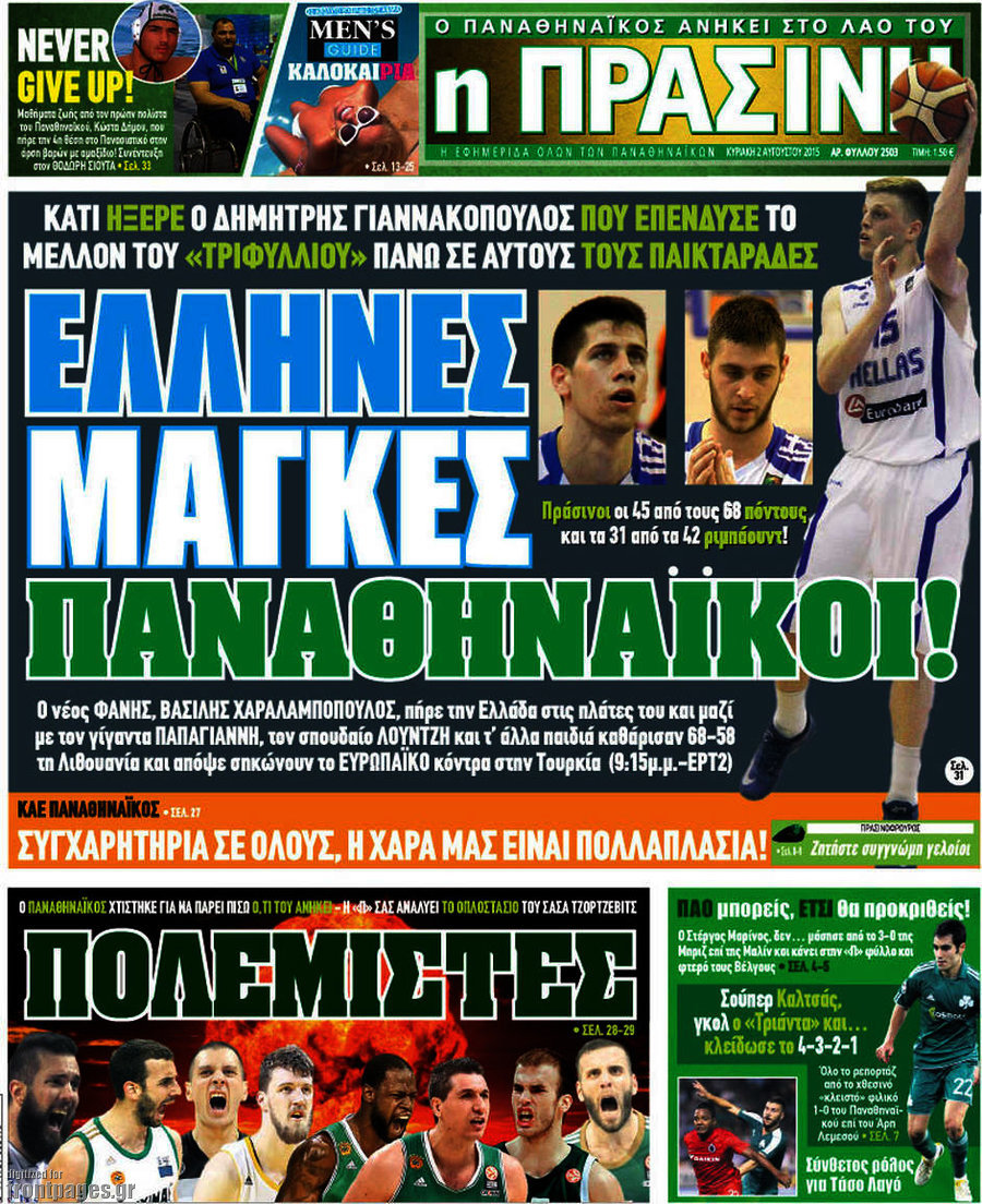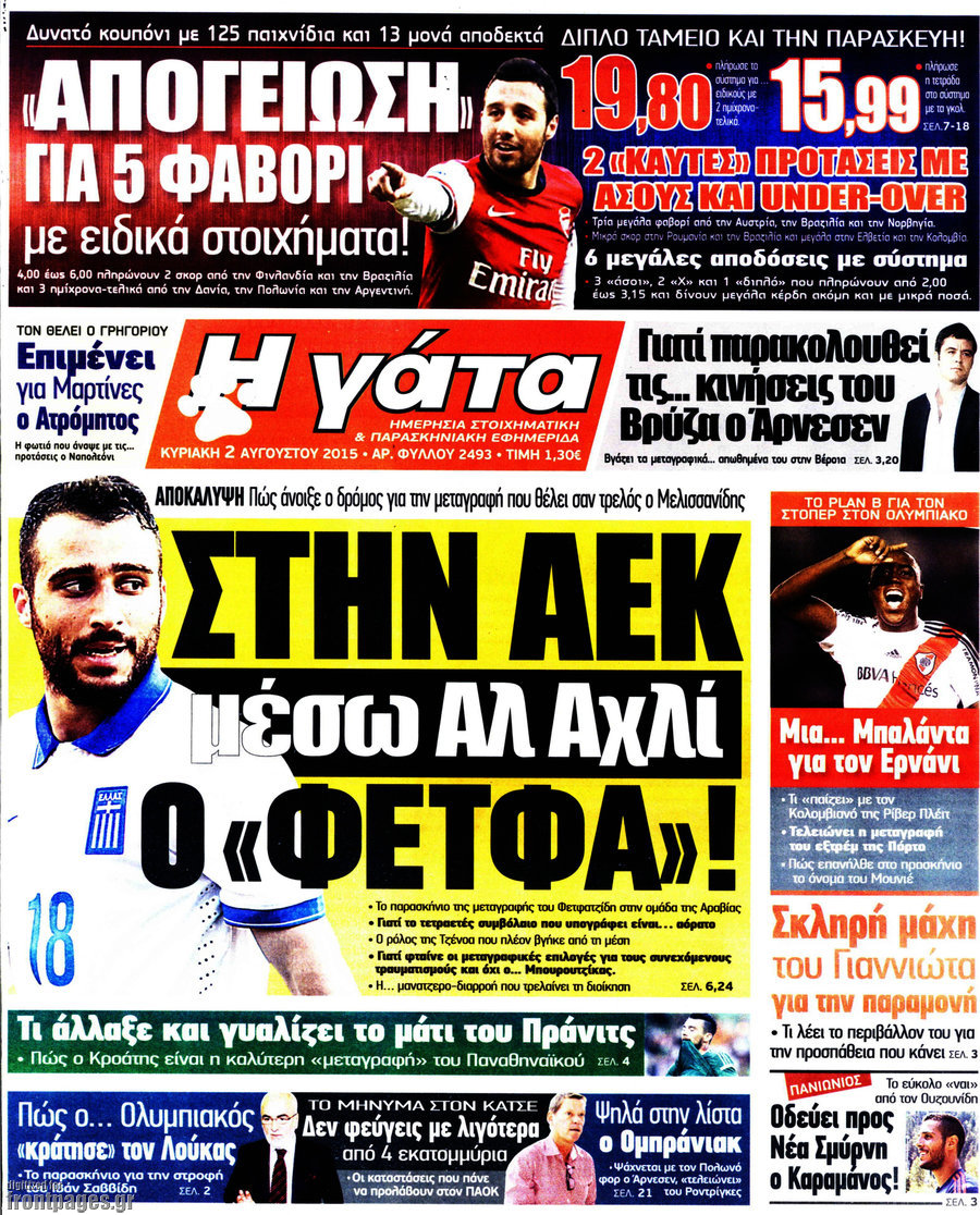 Οι αθλητικές εφημερίδες 2/8/2015 Enikos Newsroom 08:31, Κυριακή 02 Αυγούστου 2015 Media Διαβάστε τα σημερινά πρωτοσέλιδα των αθλητικών εφημερίδων. ΑΘΛΗΤΙΚΕΣ ΕΦΗΜΕΡΙΔΕΣ ΠΡΩΤΟΣΕΛΙΔΑ Μοιράσου το: σχολίασε κι εσύ (0 σχόλια) Ακολουθήστε το enikos.gr στο Google News και μάθετε πρώτοι όλες τις ειδήσεις Δείτε όλες τις τελευταίες ειδήσεις από την Ελλάδα και τον Κόσμο στο enikos.gr Ειδήσεις Ροή Ειδήσεων 4 ώρες πριν Μεσόγειος: Η διαδρομή του ρωσικού τάνκερ «Qendil» και η στοχευμένη επίθεση της Ουκρανίας με drone – Ο Πούτιν προειδοποίησε για αντίποινα 28 λεπτά πριν Αγρότες: Έκλεισαν για μία ώρα την παρακαμπτήρια της Ιόνιας Οδού στη θέση Χαλίκι 2 ώρες πριν Εμπλοκή και αερομαχίες με οπλισμένα τουρκικά F-16 στο Αιγαίο 2 ώρες πριν Πούτιν: «Ναι, είμαι ερωτευμένος» – Βίντεο από τη σπάνια προσωπική παραδοχή του 32 λεπτά πριν Ανδρέας Λυκουρέντζος: Υπέβαλε την παραίτησή του ο πρόεδρος του ΕΛΓΑ, αλλά δεν έγινε δεκτή – Όλο το παρασκήνιο 42 λεπτά πριν Αριθμολογία: Οι άνθρωποι που έχουν γεννηθεί αυτές τις 4 ημερομηνίες, συχνά παρεξηγούνται – «Η καλοσύνη τους κρύβει τεράστια δύναμη» 3 ώρες πριν Μήπως έχετε χάσει τον εαυτό σας στη σχέση σας; 7 «αθόρυβες» υποχωρήσεις που μάλλον κάνατε, χωρίς να το συνειδητοποιήσετε 2 ώρες πριν Ξεχάστε το καθάρισμα το Σαββατοκύριακο: Ο «κανόνας των 20 λεπτών» που θα σας λύσει τα χέρια 5 ώρες πριν Κουίζ για την παλιά Αθήνα: Αναγνωρίζετε την περιοχή; Έχετε περάσει 100% από εκεί 4 λεπτά πριν Ολυμπιακός – Βιλερμπάν: Μάτωσε στο πρόσωπο ο Παπανικολάου έπειτα από αγκωνιά του Βοτιέ – ΦΩΤΟ 12 λεπτά πριν Συνεχίζει να προκαλεί ο Μίτσκοσκι: «Για μένα το όνομα Μακεδονία είναι ιερό» 22 λεπτά πριν Ο Γιάννης Κακλέας σκηνοθετεί Βερόνικα Δαβάκη και Ιβάν Σβιτάιλο στη «Locandiera» 28 λεπτά πριν Αγρότες: Έκλεισαν για μία ώρα την παρακαμπτήρια της Ιόνιας Οδού στη θέση Χαλίκι 32 λεπτά πριν Ανδρέας Λυκουρέντζος: Υπέβαλε την παραίτησή του ο πρόεδρος του ΕΛΓΑ, αλλά δεν έγινε δεκτή – Όλο το παρασκήνιο ENIKOS NETWORK Το ΕΚΑΒ τιμήθηκε από την Ακαδημία Αθηνών για τα 40 χρόνια προσφοράς του Έχετε πραγματικά μεγάλη καρδιά; 10 χαρακτηριστικά όσων έχουν καλοσύνη Έρχονται νέες προσλήψεις σε Δήμο – Όλες οι λεπτομέρειες Επίδομα παιδιού: Πότε ανοίγει ξανά η πλατφόρμα για τις αιτήσεις Χαρτογραφώντας το «σημείο χωρίς επιστροφή»: Για πρώτη φορά αποκαλύπτεται με λεπτομέρεια το ακανθώδες όριο της ατμόσφαιρας τ... Η Google καταργεί τη λειτουργία «dark web report» – Πώς θα μπορούν οι χρήστες να διαγράφουν τα δεδομένα τους περισσότερα 20:37 , Παρασκευή 19 Δεκεμβρίου 2025 Don’t Forget The Lyrics: Η Έλλη Κοκκίνου υποδέχεται 4 παίκτες που θα κάνουν τα πάντα για να μη χάσουν ούτε… μισή λέξη από τους στίχους Το «Don’t Forget The Lyrics» επιστρέφει απόψε, Παρασκευή 19 Δεκεμβρίου, στις 21:00 με νέο επει... 19:31 , Παρασκευή 19 Δεκεμβρίου 2025 GNTM: Απόψε ο μεγάλος τελικός για τους 4 φιναλίστ Έπειτα από μήνες γεμάτους μόδα, δημιουργία και έντονες αναμετρήσεις, το GNTM 2025 κορυφώνεται,... 18:11 , Παρασκευή 19 Δεκεμβρίου 2025 Το σόι σου: Ο Άρης έρχεται στην Ελλάδα για τις γιορτές των Χριστουγέννων – Τι θα δούμε στο αποψινό εορταστικό επεισόδιο Ένα απολαυστικό, εορταστικό επεισόδιο της σειράς “Το σόι σου”, γεμάτο ευτράπελα αλ... 15:15 , Παρασκευή 19 Δεκεμβρίου 2025 Την Κυριακή με τη Realnews: Ό,τι και αν αγοράσεις, σκανάρεις και κερδίζεις! Την Κυριακή με τη Realnews: Ό,τι και αν αγοράσεις, σκανάρεις και κερδίζεις! Με το PADU app, το... ΤΕΛΕΥΤΑΙΕΣ ΕΙΔΗΣΕΙΣ 4 λεπτά πριν Ολυμπιακός – Βιλερμπάν: Μάτωσε στο πρόσωπο ο... 12 λεπτά πριν Συ