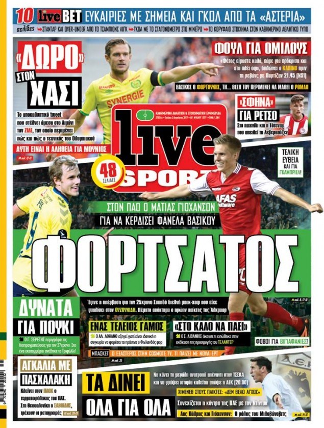 Οι αθλητικές εφημερίδες 2/8/2017 Κώστας Τεό 06:35, Τετάρτη 02 Αυγούστου 2017 Media Διαβάστε τα σημερινά πρωτοσέλιδα των αθλητικών εφημερίδων: ΑΘΛΗΤΙΚΕΣ ΕΦΗΜΕΡΙΔΕΣ ΠΡΩΤΟΣΕΛΙΔΑ Μοιράσου το: σχολίασε κι εσύ (0 σχόλια) Ακολουθήστε το enikos.gr στο Google News και μάθετε πρώτοι όλες τις ειδήσεις Δείτε όλες τις τελευταίες ειδήσεις από την Ελλάδα και τον Κόσμο στο enikos.gr Ειδήσεις Ροή Ειδήσεων 2 ώρες πριν Χριστούγεννα στα μπλόκα: Επιμένουν στις κινητοποιήσεις τους οι αγρότες – Ανοίγουν τα διόδια το Σαββατοκύριακο 2 ώρες πριν Ουκρανία: Η άνευ προηγουμένου επίθεση σε ρωσικό τάνκερ στη Μεσόγειο και το μήνυμα προς στον Πούτιν – Το «μακρύ χέρι» του Κιέβου 1 ώρα πριν Πούτιν: Τα μηνύματα σε Ευρώπη και ΝΑΤΟ από το μαραθώνιο «σόου» του – Η απαίτηση για «σεβασμό» και η ειρήνη «με τους όρους» της Μόσχας 2 ώρες πριν Τραμπ: Δεν αποκλείει την πιθανότητα ενός πολέμου στη Βενεζουέλα – «Ο Μαδούρο ξέρει καλύτερα από τον καθένα τι ακριβώς θέλω» 3 ώρες πριν Συνεχίζει να προκαλεί ο Μίτσκοσκι: «Για μένα το όνομα Μακεδονία είναι ιερό» 1 ώρα πριν Ανακαλύφθηκαν αρχαία χρυσά νομίσματα 2.200 ετών που απεικονίζουν τον θεό Απόλλωνα – Η άγνωστη σύνδεση με τον Φίλιππο Β΄ της Μακεδονίας 2 ώρες πριν Ύπνος: Μια κρυφή κατάσταση του εγκεφάλου πριν από τον ύπνο μπορεί να είναι το “κλειδί” για υψηλή ευφυΐα και δημιουργικότητα 3 ώρες πριν Αριθμολογία: Οι άνθρωποι που έχουν γεννηθεί αυτές τις 4 ημερομηνίες, συχνά παρεξηγούνται – «Η καλοσύνη τους κρύβει τεράστια δύναμη» 4 ώρες πριν Ξεχάστε το καθάρισμα το Σαββατοκύριακο: Ο «κανόνας των 20 λεπτών» που θα σας λύσει τα χέρια 8 λεπτά πριν Βασίλης Σπανούλης: Δεν εμφανίστηκε ούτε ένας δημοσιογράφος στην συνέντευξη Τύπου – «Καλησπέρα στον… κανέναν», δείτε βίντεο 19 λεπτά πριν Πόλεμος στην Ουκρανία: Εφτά νεκροί από ρωσική πυραυλική επίθεση στο λιμάνι της Οδησσού 23 λεπτά πριν ΗΠΑ: Η κυβέρνηση του Ντόναλντ Τραμπ άρχισε να δημοσιοποιεί τα αρχεία Έπσταϊν 34 λεπτά πριν Σάμος: Άνοιξε το μπλόκο των αγροτών στον κόμβο Κοκκαρίου – Σε νέα συνεδρίαση θα καθορίσουν την στάση τους 42 λεπτά πριν Άνω Λιόσια: Πυροβολισμοί σε επιχείρηση με χαλιά – Εντοπίστηκαν 10 κάλυκες ENIKOS NETWORK Το ΕΚΑΒ τιμήθηκε από την Ακαδημία Αθηνών για τα 40 χρόνια προσφοράς του Έχετε πραγματικά μεγάλη καρδιά; 10 χαρακτηριστικά όσων έχουν καλοσύνη Αναστολή μέτρων αναγκαστικής εκτέλεσης για κτηνοτρόφους που πλήττονται από την ευλογιά των αιγοπροβάτων Πλήρης επάρκεια προϊόντων στις λαϊκές της Αττικής, παρά τις αγροτικές κινητοποιήσεις – Τι απαντούν οι πωλητές Χαρτογραφώντας το «σημείο χωρίς επιστροφή»: Για πρώτη φορά αποκαλύπτεται με λεπτομέρεια το ακανθώδες όριο της ατμόσφαιρας τ... Η Google καταργεί τη λειτουργία «dark web report» – Πώς θα μπορούν οι χρήστες να διαγράφουν τα δεδομένα τους περισσότερα 22:42 , Παρασκευή 19 Δεκεμβρίου 2025 Γιώργος Γιαννόπουλος για “Το σόι σου”: “Είναι ευτυχία και ευλογία αυτή η σειρά” «Είναι ευτυχία και ευλογία η συγκυρία αυτής της σειράς», θα πει ο Γιώργος Γιαννόπουλος -ο αγαπ... 20:37 , Παρασκευή 19 Δεκεμβρίου 2025 Don’t Forget The Lyrics: Η Έλλη Κοκκίνου υποδέχεται 4 παίκτες που θα κάνουν τα πάντα για να μη χάσουν ούτε… μισή λέξη από τους στίχους Το «Don’t Forget The Lyrics» επιστρέφει απόψε, Παρασκευή 19 Δεκεμβρίου, στις 21:00 με νέο επει... 19:31 , Παρασκευή 19 Δεκεμβρίου 2025 GNTM: Απόψε ο μεγάλος τελικός για τους 4 φιναλίστ Έπειτα από μήνες γεμάτους μόδα, δημιουργία και έντονες αναμετρήσεις, το GNTM 2025 κορυφώνεται,... 18:11 , Παρασ