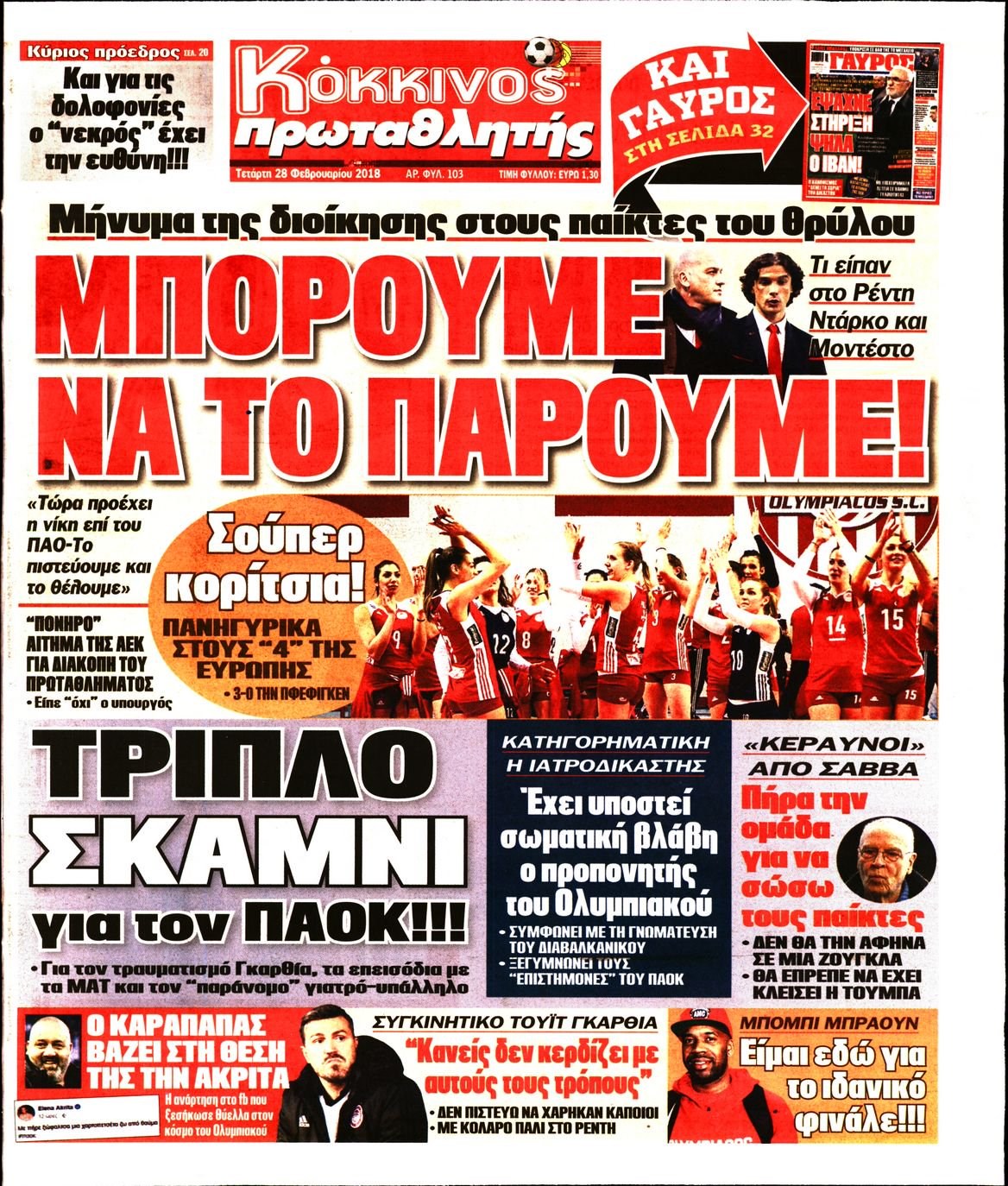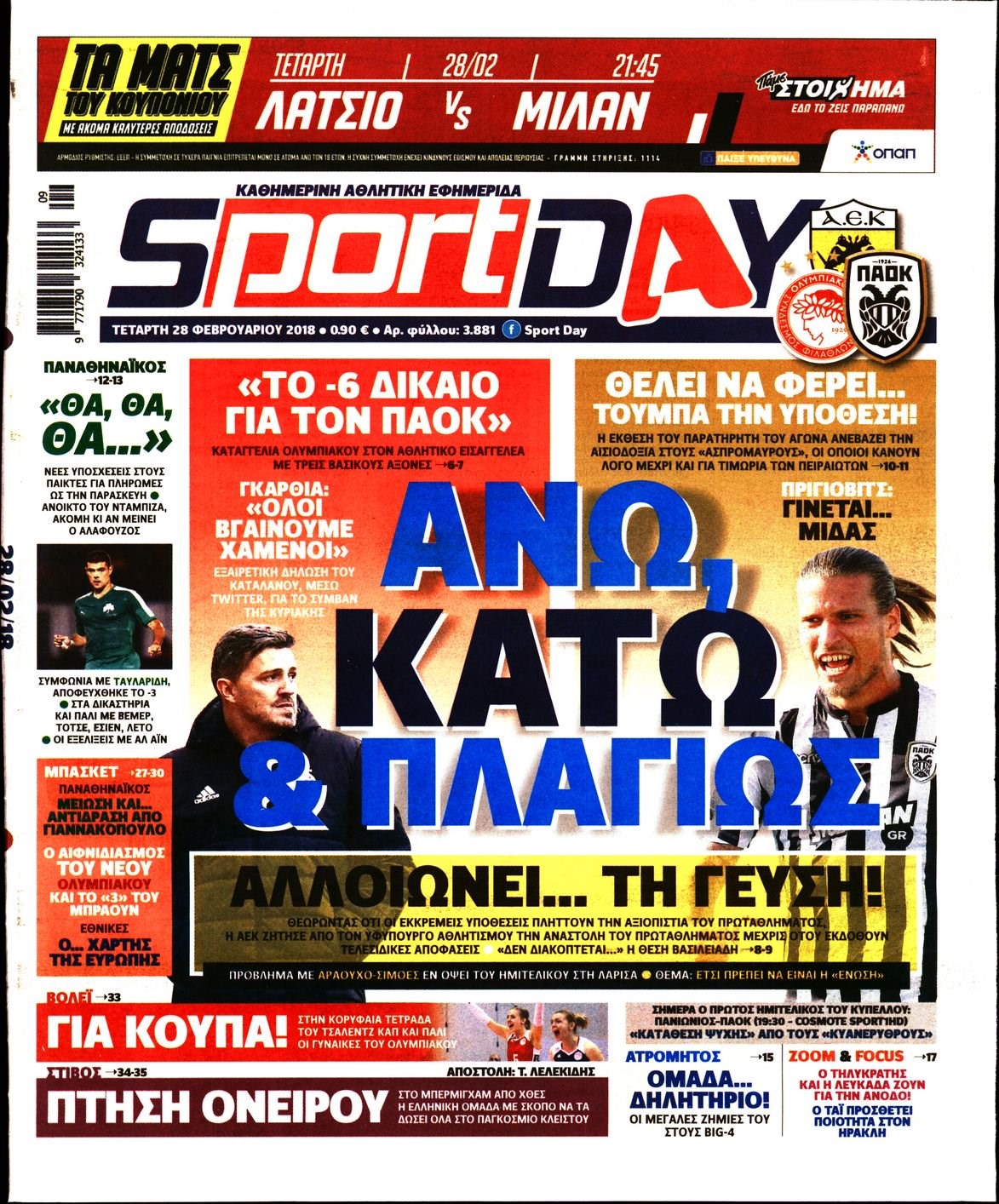 Οι αθλητικές εφημερίδες 28/2/2018 Enikos Newsroom 07:25, Τετάρτη 28 Φεβρουαρίου 2018 Media Διαβάστε τα σημερινά πρωτοσέλιδα των αθλητικών εφημερίδων: ΑΘΛΗΤΙΚΕΣ ΕΦΗΜΕΡΙΔΕΣ ΠΡΩΤΟΣΕΛΙΔΑ Μοιράσου το: σχολίασε κι εσύ (0 σχόλια) Ακολουθήστε το enikos.gr στο Google News και μάθετε πρώτοι όλες τις ειδήσεις Δείτε όλες τις τελευταίες ειδήσεις από την Ελλάδα και τον Κόσμο στο enikos.gr Ειδήσεις Ροή Ειδήσεων 1 ώρα πριν Η Ουκρανία χτύπησε τάνκερ του σκιώδους στόλου της Ρωσίας στη Μεσόγειο – Έπλεε νότια της Κρήτης 4 ώρες πριν Πούτιν: Η Ουκρανία δεν είναι έτοιμη για ειρηνευτικές συνομιλίες – Ο ρωσικός στρατός προελαύνει σε όλα τα μέτωπα 24 λεπτά πριν Θεσσαλονίκη: Στη φυλακή ο 44χρονος που κατηγορείται ότι προσπάθησε να πνίξει με κορδόνι την 34χρονη σύντροφό του 41 λεπτά πριν Εξώδικο επιχειρηματία στον Γιώργο Μαζωνάκη – Τι απαντά στις καταγγελίες του τραγουδιστή 1 ώρα πριν Βουλή: Υπερψηφίστηκε το νομοσχέδιο για την ένταξη του ΟΠΕΚΕΠΕ στην ΑΑΔΕ 5 ώρες πριν Αλλαγή σελίδας για 3 ζώδια – «Μία δύσκολη περίοδος φτάνει στο τέλος της» 2 ημέρες πριν 20 χρόνια τα Χριστούγεννα ξεκινούν στα Public με μεγάλη ποικιλία σε δώρα! 4 ώρες πριν Γεμάτος νεροχύτης; 5 σοβαρές ευθύνες που «φοβίζουν» όσους αφήνουν άπλυτα πιάτα 3 ώρες πριν Ειδικός μοιράζεται 6 κόλπα για να διατηρείστε σε φόρμα με πάνω από 40 ώρες εργασίας την εβδομάδα: «Προπονηθείτε πριν από τη δουλειά, όχι μετά» 5 λεπτά πριν Η απάντηση της κυβέρνησης στα αιτήματα των αγροτών: 16+4 υλοποιούνται ή βρίσκονται υπό επεξεργασία για να βρεθεί λύση – 7 δεν μπορούν να επιλυθούν 11 λεπτά πριν Την Κυριακή με τη Realnews: Ό,τι και αν αγοράσεις, σκανάρεις και κερδίζεις! 18 λεπτά πριν ΝΒΑ: Η πρώτη… πεντάδα του Γιάννη Αντετοκούνμπο 20 λεπτά πριν Η Σάντυ Χατζηϊωάννου στο Game Time: Το παιδικό όνειρο με τον Αντώνη Νικοπολίδη και το ντουέτο με την Ευγενία Σαμαρά 24 λεπτά πριν Θεσσαλονίκη: Στη φυλακή ο 44χρονος που κατηγορείται ότι προσπάθησε να πνίξει με κορδόνι την 34χρονη σύντροφό του ENIKOS NETWORK Τάξη στις ιατρικές διαφημίσεις για την προστασία των πολιτών βάζει ο ΙΣΑ Μακροζωία: Τι παίζει πιο σημαντικό ρόλο ακόμα και από την διατροφή και την άσκηση, σύμφωνα με μελέτη Βουλή: Υπερψηφίστηκε το νομοσχέδιο για τη μετάβαση του ΟΠΕΚΕΠΕ στην ΑΑΔΕ ΕΥΔΑΠ: Οδηγός για τις αλλαγές στα τιμολόγια του νερού – 17 ερωτήσεις και απαντήσεις Χαρτογραφώντας το «σημείο χωρίς επιστροφή»: Για πρώτη φορά αποκαλύπτεται με λεπτομέρεια το ακανθώδες όριο της ατμόσφαιρας τ... Η Google καταργεί τη λειτουργία «dark web report» – Πώς θα μπορούν οι χρήστες να διαγράφουν τα δεδομένα τους περισσότερα 15:15 , Παρασκευή 19 Δεκεμβρίου 2025 Την Κυριακή με τη Realnews: Ό,τι και αν αγοράσεις, σκανάρεις και κερδίζεις! Την Κυριακή με τη Realnews: Ό,τι και αν αγοράσεις, σκανάρεις και κερδίζεις! Με το PADU app, το... 08:00 , Παρασκευή 19 Δεκεμβρίου 2025 Την Κυριακή με τη Realnews: Δωροεπιταγή 10€ Δωροεπιταγή αξίας 10€ για αγορές άνω των 60€ από τα πολυκαταστήματα FactoryOutlet H προσφορά ι... 05:48 , Παρασκευή 19 Δεκεμβρίου 2025 Οι οικονομικές εφημερίδες 19/12/2025 Διαβάστε τα πρωτοσέλιδα από τις οικονομικές εφημερίδες, σήμερα 19/12/2025. 05:43 , Παρασκευή 19 Δεκεμβρίου 2025 Οι αθλητικές εφημερίδες 19/12/2025 Διαβάστε τα πρωτοσέλιδα από τις αθλητικές εφημερίδες, σήμερα 19/12/2025. ΤΕΛΕΥΤΑΙΕΣ ΕΙΔΗΣΕΙΣ 5 λεπτά πριν Η απάντηση της κυβέρνησης στα αιτήματα των αγροτών: 16+4... 11 λεπτά πριν Την Κυριακή με τη Realnews: Ό,τι και αν αγοράσεις,... 18 λεπτά πριν ΝΒΑ: Η πρώτη… πεντάδα του Γιάννη Αντετοκούνμπο 20 λεπτά πριν Η Σάντυ Χατζηϊω