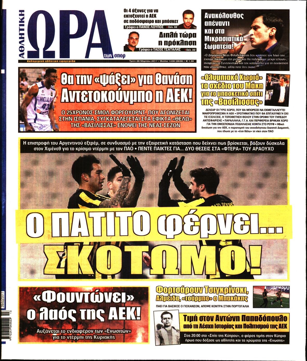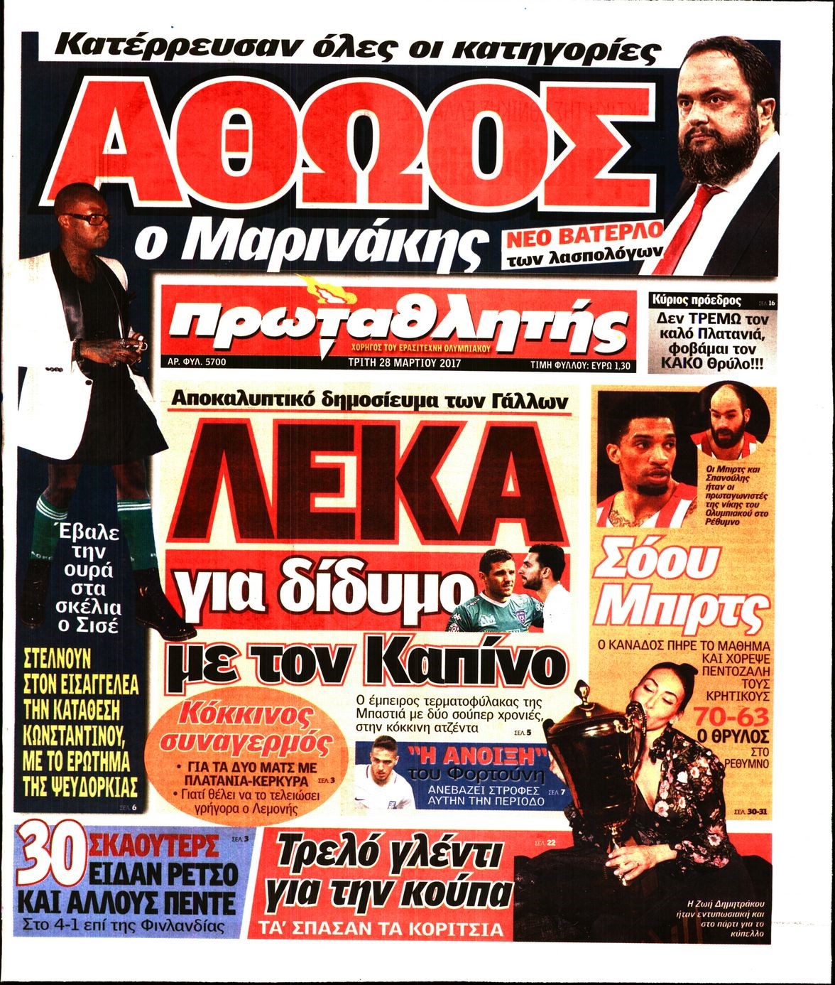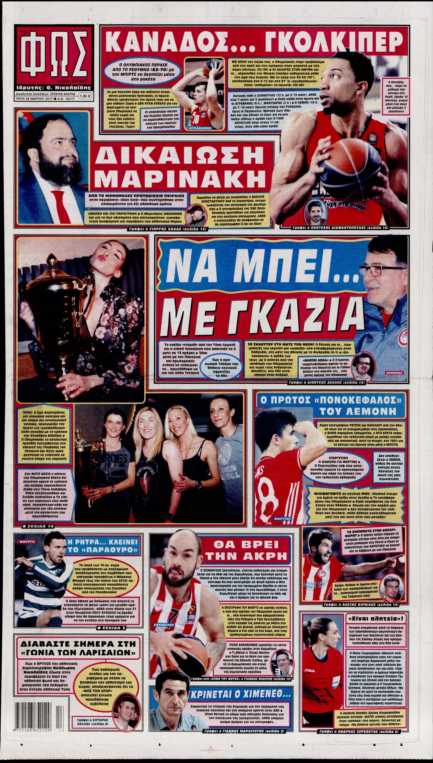 Οι αθλητικές εφημερίδες 28/3/2017 Enikos Newsroom 06:51, Τρίτη 28 Μαρτίου 2017 Media Διαβάστε τα σημερινά πρωτοσέλιδα των αθλητικών εφημερίδων: ΑΘΛΗΤΙΚΕΣ ΕΦΗΜΕΡΙΔΕΣ ΠΡΩΤΟΣΕΛΙΔΑ Μοιράσου το: σχολίασε κι εσύ (0 σχόλια) Ακολουθήστε το enikos.gr στο Google News και μάθετε πρώτοι όλες τις ειδήσεις Δείτε όλες τις τελευταίες ειδήσεις από την Ελλάδα και τον Κόσμο στο enikos.gr Ειδήσεις Ροή Ειδήσεων 22 λεπτά πριν Πώς στήθηκε η επιχείρηση «Ίπαλλος» που οδήγησε στη σύλληψη του «Έλληνα Εσκομπάρ» – «Ο πόλεμος ενάντια στους εμπόρους ναρκωτικών θα συνεχιστεί» 7 λεπτά πριν Δίκη Χρυσής Αυγής: Την ενοχή και των 42 κατηγορουμένων ζητά η εισαγγελέας 27 λεπτά πριν Κυψέλη: Στη φυλακή η 16χρονη που μαχαίρωσε συμμαθήτριά της 3 ώρες πριν Αμοργός: «Θα προσπαθήσω να το κάνω κάθε μέρα» – Ποιος είναι ο αγρότης που έστησε μόνος του το πρώτο μπλόκο στο νησί 1 ώρα πριν Τραγωδία στην Αλεξανδρούπολη: Παιδάκι 3 ετών μεταφέρθηκε νεκρό από τη μητέρα του στο νοσοκομείο 32 λεπτά πριν Τα 3 ζώδια που θα δουν τη ζωή τους να αλλάζει ριζικά το 2026 – «Όλα γίνονται καλύτερα σταδιακά» 6 ώρες πριν «Δεν είχα κλάψει από τότε που διαγνώστηκα με καρκίνο, ώσπου ένα τηλεφώνημα με έκανε να λυγίσω» – Η συγκλονιστική εξομολόγηση ενός άνδρα 1 ώρα πριν Ο σπάνιος σεισμός που έλυσε τα χέρια των επιστημόνων – Αποκάλυψε ακριβώς όσα αναζητούσαν 7 ώρες πριν 20 χρόνια τα Χριστούγεννα ξεκινούν στα Public με μεγάλη ποικιλία σε δώρα! 16 δευτερόλεπτα πριν Τραγωδία στην Αχαΐα: 48χρονος κατέρρευσε στο κυνήγι μπροστά στα μάτια του πατέρα του 7 λεπτά πριν Δίκη Χρυσής Αυγής: Την ενοχή και των 42 κατηγορουμένων ζητά η εισαγγελέας 8 λεπτά πριν Μαρκέλλα Γιαννάτου: «Είμαι κοντά στα 14 χρόνια σε ψυχανάλυση – Είχα αρχίσει να έχω κρίσεις άγχους, νόμιζα ότι θα πεθάνω» 15 λεπτά πριν Υπουργείο Αγροτικής Ανάπτυξης: Πώς θα γίνει η πληρωμή αγροτεμαχίων έως 20 στρέμματα παρά τα ζητήματα ΚΑΕΚ 22 λεπτά πριν Πώς στήθηκε η επιχείρηση «Ίπαλλος» που οδήγησε στη σύλληψη του «Έλληνα Εσκομπάρ» – «Ο πόλεμος ενάντια στους εμπόρους ναρκωτικών θα συνεχιστεί» ENIKOS NETWORK Σοβαροί κίνδυνοι από τη λάθος χορήγηση φαρμάκου για τις αιμορραγίες-Συστάσεις προς τους γιατρούς 5 πράγματα που αποφεύγει γαστρεντερολόγος για να μειώσει τον κίνδυνο καρκίνου του εντέρου Eurostat: Κάτω από την αρχική εκτίμηση της Υπηρεσίας ο πληθωρισμός στην Ελλάδα τον Νοέμβριο του 2025 – Tα στοιχεία για την ... Συντάξεις Ιανουαρίου 2026: Σε ποιους θα πιστωθούν την Πέμπτη τα χρήματα και τι αυξήσεις θα δοθούν – Δείτε αναλυτικά παραδεί... Χαρτογραφώντας το «σημείο χωρίς επιστροφή»: Για πρώτη φορά αποκαλύπτεται με λεπτομέρεια το ακανθώδες όριο της ατμόσφαιρας τ... Η Google καταργεί τη λειτουργία «dark web report» – Πώς θα μπορούν οι χρήστες να διαγράφουν τα δεδομένα τους περισσότερα 12:35 , Τετάρτη 17 Δεκεμβρίου 2025 Μίρκα Παπακωνσταντίνου: «Δεν ήμουν αισιόδοξη για τα νούμερα – Είμαι ρεαλίστρια» Στα γυρίσματα του εορταστικού επεισοδίου της αγαπημένης σειράς “Το Σόι Σου”, βρέθηκε η κάμερα ... 12:12 , Τετάρτη 17 Δεκεμβρίου 2025 Ακούστε την εκπομπή του Νίκου Χατζηνικολάου 17/12/2025 Ακούστε την εκπομπή του Νίκου Χατζηνικολάου στον ραδιοφωνικό σταθμό RealFm 97,8, την Τετάρτη 1... 11:35 , Τετάρτη 17 Δεκεμβρίου 2025 Home Alone: Το σπίτι της ταινίας θα ανακαινιστεί – Επιστροφή στην αισθητική της δεκαετίας του ’90 Οι νέοι ιδιοκτήτες του πραγματικού σπιτιού που παρουσιάζεται στην κλασική ταινία του 1990 «Hom... 11:25 , Τετάρτη 17 Δεκεμβρίου 2025 Grand Hotel: Απόψε το τελευταίο επεισόδιο της χρον