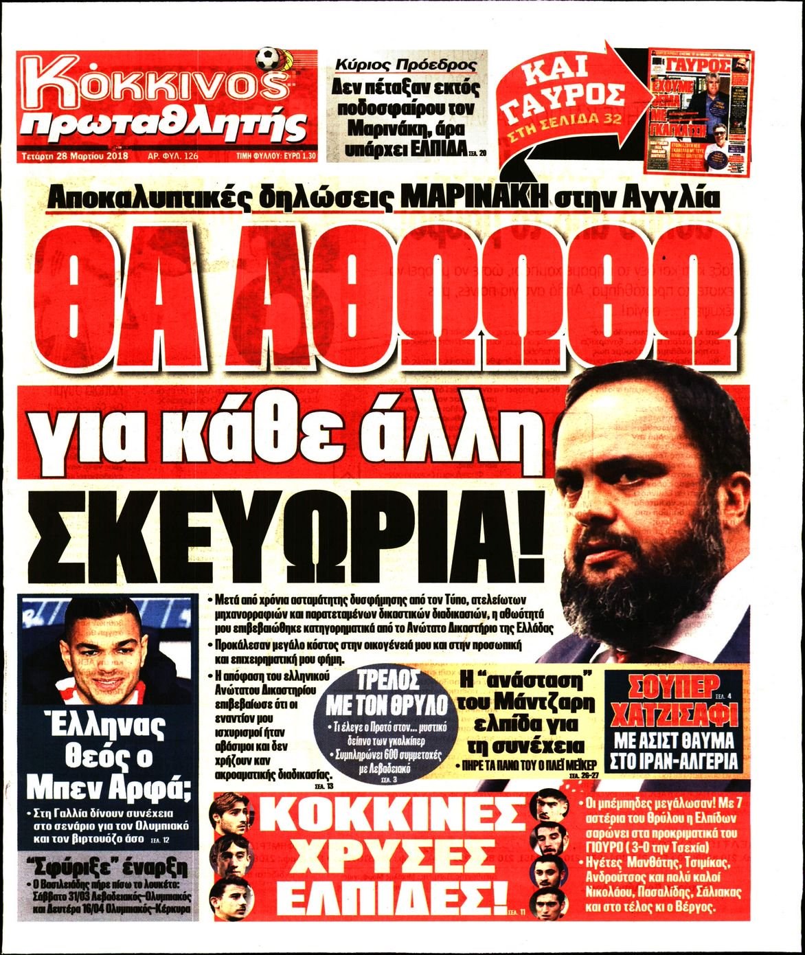 Οι αθλητικές εφημερίδες 28/3/2018 Enikos Newsroom 07:34, Τετάρτη 28 Μαρτίου 2018 Media Διαβάστε τα σημερινά πρωτοσέλιδα των αθλητικών εφημερίδων: ΑΘΛΗΤΙΚΕΣ ΕΦΗΜΕΡΙΔΕΣ ΠΡΩΤΟΣΕΛΙΔΑ Μοιράσου το: σχολίασε κι εσύ (0 σχόλια) Ακολουθήστε το enikos.gr στο Google News και μάθετε πρώτοι όλες τις ειδήσεις Δείτε όλες τις τελευταίες ειδήσεις από την Ελλάδα και τον Κόσμο στο enikos.gr Ειδήσεις Ροή Ειδήσεων 3 ώρες πριν Μεσόγειος: Η διαδρομή του ρωσικού τάνκερ «Qendil» και η στοχευμένη επίθεση της Ουκρανίας με drone – Ο Πούτιν προειδοποίησε για αντίποινα 4 λεπτά πριν Αγρότες: Έκλεισαν την παρακαμπτήρια της Ιόνιας Οδού στη θέση Χαλίκι 2 ώρες πριν Εμπλοκή και αερομαχίες με οπλισμένα τουρκικά F-16 στο Αιγαίο 3 ώρες πριν Αττική: Θρίλερ με νεκρό βρέφος 5 μηνών – Κοιμόταν στο ίδιο κρεβάτι με τους γονείς του 2 ώρες πριν Πούτιν: «Ναι, είμαι ερωτευμένος» – Βίντεο από τη σπάνια προσωπική παραδοχή του 18 λεπτά πριν Αριθμολογία: Οι άνθρωποι που έχουν γεννηθεί αυτές τις 4 ημερομηνίες, συχνά παρεξηγούνται – «Η καλοσύνη τους κρύβει τεράστια δύναμη» 2 ώρες πριν Μήπως έχετε χάσει τον εαυτό σας στη σχέση σας; 7 «αθόρυβες» υποχωρήσεις που μάλλον κάνατε, χωρίς να το συνειδητοποιήσετε 1 ώρα πριν Ξεχάστε το καθάρισμα το Σαββατοκύριακο: Ο «κανόνας των 20 λεπτών» που θα σας λύσει τα χέρια 4 ώρες πριν Κουίζ για την παλιά Αθήνα: Αναγνωρίζετε την περιοχή; Έχετε περάσει 100% από εκεί 4 λεπτά πριν Αγρότες: Έκλεισαν την παρακαμπτήρια της Ιόνιας Οδού στη θέση Χαλίκι 8 λεπτά πριν Ανδρέας Λυκουρέντζος: Υπέβαλε την παραίτησή του ο πρόεδρος του ΕΛΓΑ – Δεν έγινε δεκτή από την κυβέρνηση – ΒΙΝΤΕΟ 13 λεπτά πριν Ηράκλειο: «Ιπτάμενοι» Άγιοι Βασίληδες μοίρασαν δώρα και χαμόγελα στα παιδιά στο ΠΑΓΝΗ – Δείτε βίντεο 18 λεπτά πριν Αριθμολογία: Οι άνθρωποι που έχουν γεννηθεί αυτές τις 4 ημερομηνίες, συχνά παρεξηγούνται – «Η καλοσύνη τους κρύβει τεράστια δύναμη» 25 λεπτά πριν Ρύθμιση του ΥΠΑΑΤ για τους αγρότες που δεν έλαβαν τη βασική ενίσχυση λόγω εκκρεμοτήτων στο Κτηματολόγιο ENIKOS NETWORK Το ΕΚΑΒ τιμήθηκε από την Ακαδημία Αθηνών για τα 40 χρόνια προσφοράς του Έχετε πραγματικά μεγάλη καρδιά; 10 χαρακτηριστικά όσων έχουν καλοσύνη Έρχονται νέες προσλήψεις σε Δήμο – Όλες οι λεπτομέρειες Επίδομα παιδιού: Πότε ανοίγει ξανά η πλατφόρμα για τις αιτήσεις Χαρτογραφώντας το «σημείο χωρίς επιστροφή»: Για πρώτη φορά αποκαλύπτεται με λεπτομέρεια το ακανθώδες όριο της ατμόσφαιρας τ... Η Google καταργεί τη λειτουργία «dark web report» – Πώς θα μπορούν οι χρήστες να διαγράφουν τα δεδομένα τους περισσότερα 20:37 , Παρασκευή 19 Δεκεμβρίου 2025 Don’t Forget The Lyrics: Η Έλλη Κοκκίνου υποδέχεται 4 παίκτες που θα κάνουν τα πάντα για να μη χάσουν ούτε… μισή λέξη από τους στίχους Το «Don’t Forget The Lyrics» επιστρέφει απόψε, Παρασκευή 19 Δεκεμβρίου, στις 21:00 με νέο επει... 19:31 , Παρασκευή 19 Δεκεμβρίου 2025 GNTM: Απόψε ο μεγάλος τελικός για τους 4 φιναλίστ Έπειτα από μήνες γεμάτους μόδα, δημιουργία και έντονες αναμετρήσεις, το GNTM 2025 κορυφώνεται,... 18:11 , Παρασκευή 19 Δεκεμβρίου 2025 Το σόι σου: Ο Άρης έρχεται στην Ελλάδα για τις γιορτές των Χριστουγέννων – Τι θα δούμε στο αποψινό εορταστικό επεισόδιο Ένα απολαυστικό, εορταστικό επεισόδιο της σειράς “Το σόι σου”, γεμάτο ευτράπελα αλ... 15:15 , Παρασκευή 19 Δεκεμβρίου 2025 Την Κυριακή με τη Realnews: Ό,τι και αν αγοράσεις, σκανάρεις και κερδίζεις! Την Κυριακή με τη Realnews: Ό,τι και αν αγοράσεις, σκανάρεις και κερδίζεις! Με το PADU app, το... ΤΕΛΕΥΤΑΙΕΣ ΕΙΔΗΣΕΙΣ 4 λεπτά πριν Αγρότες: Έκλεισαν τ