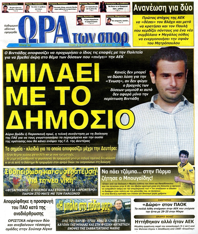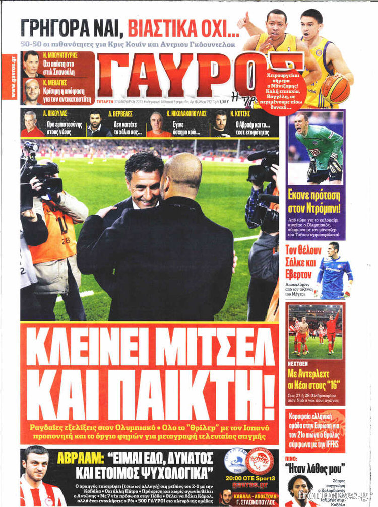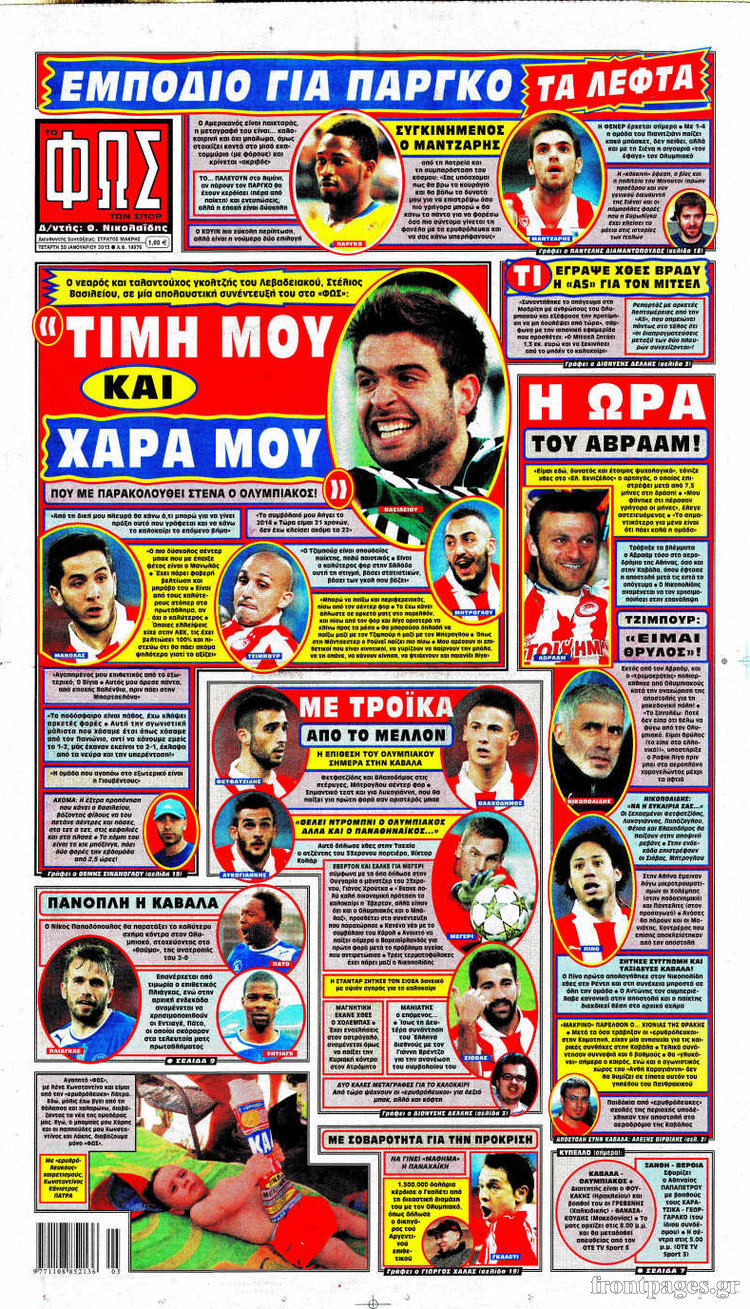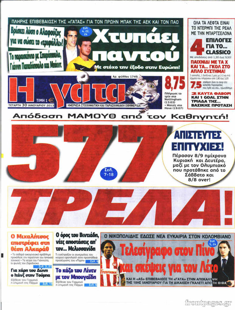 Οι αθλητικές εφημερίδες Enikos Newsroom 08:52, Τετάρτη 30 Ιανουαρίου 2013 Media Οι αθλητικές εφημερίδες ΑΘΛΗΤΙΚΑ ΕΦΗΜΕΡΙΔΕΣ ΠΡΩΤΟΣΕΛΙΔΑ Μοιράσου το: σχολίασε κι εσύ (0 σχόλια) Ακολουθήστε το enikos.gr στο Google News και μάθετε πρώτοι όλες τις ειδήσεις Δείτε όλες τις τελευταίες ειδήσεις από την Ελλάδα και τον Κόσμο στο enikos.gr Ειδήσεις Ροή Ειδήσεων 49 λεπτά πριν Εκτός ευρωομάδας ΣΥΡΙΖΑ ο Νίκος Παππάς μετά την επίθεση στον δημοσιογράφο Νίκο Γιαννόπουλο – Η μήνυση και οι νέες δηλώσεις 1 ώρα πριν «Αγριεύουν» οι αγρότες: «Δεν συντρέχει λόγος συνάντησης με τον πρωθυπουργό» – Ώρα αποφάσεων στη σύσκεψη της Πέμπτης 1 ώρα πριν Κυψέλη: Χωρίς την οικογένειά της δίπλα της απολογήθηκε η 16χρονη – «Της είχε επιτεθεί κάποιος για να την βιάσει, φοβήθηκε και κυκλοφορούσε με μαχαίρι» 43 λεπτά πριν Politico: Το πρόβλημα της Ευρώπης δεν είναι το Βέλγιο αλλά ο Ντόναλντ Τραμπ 2 ώρες πριν Αλεξανδρούπολη: Πολυοργανική ανεπάρκεια λόγω υποσιτισμού η αιτία θανάτου του 3χρονου αγοριού 1 ώρα πριν Μυστήριο με τεράστιες κυκλικές πέτρες 200 κιλών – Ανακαλύφθηκαν τυχαία κατά τη διάρκεια οδικών έργων και κανείς δεν ξέρει από πού προέρχονται 2 ώρες πριν Ύπνος: Ειδικός εξηγεί τον πραγματικό λόγο που ξυπνάτε στις 4 τα ξημερώματα – Ο ρόλος των ορμονών και του κιρκάδιου ρυθμού 3 ώρες πριν Αριθμολογία: Οι άνθρωποι που έχουν γεννηθεί αυτές τις 4 ημερομηνίες, είναι τρυφεροί και αγαπούν ανιδιοτελώς 15 ώρες πριν 20 χρόνια τα Χριστούγεννα ξεκινούν στα Public με μεγάλη ποικιλία σε δώρα! 14 λεπτά πριν Ελένη Κρίτα για το reunion του «Παρά Πέντε»: «Ήταν πραγματικά σαν να μην είχαμε χαθεί ποτέ» 28 λεπτά πριν Κύπελλο Ελλάδας: Αυτά είναι τα ζευγάρια στα νοκ-άουτ, οι διασταυρώσεις στους «8» κι ο δρόμος προς τον τελικό 43 λεπτά πριν Politico: Το πρόβλημα της Ευρώπης δεν είναι το Βέλγιο αλλά ο Ντόναλντ Τραμπ 49 λεπτά πριν Εκτός ευρωομάδας ΣΥΡΙΖΑ ο Νίκος Παππάς μετά την επίθεση στον δημοσιογράφο Νίκο Γιαννόπουλο – Η μήνυση και οι νέες δηλώσεις 49 λεπτά πριν Κύπελλο Ελλάδας: Η Μαρκό έστειλε τον ΠΑΟΚ στον Ολυμπιακό… μέσω Ατρόμητου ENIKOS NETWORK Αϋπνία: Το κόλπο που θα σας βοηθήσει να κοιμηθείτε απόψε – Είναι απλό και έχει αποτέλεσμα 2,6 εκατομμύρια πολίτες έχουν ήδη εμβολιαστεί κατά της γρίπης ΕΛΣΤΑΤ: Τι δείχνουν τα νέα στοιχεία για τις ηλεκτρονικές παραγγελίες των επιχειρήσεων ΚΕΠΕ: Οι 3 διακριτές συμβολές των ΜμΕ και της μεταποίησης στην ελληνική οικονομία Χαρτογραφώντας το «σημείο χωρίς επιστροφή»: Για πρώτη φορά αποκαλύπτεται με λεπτομέρεια το ακανθώδες όριο της ατμόσφαιρας τ... Η Google καταργεί τη λειτουργία «dark web report» – Πώς θα μπορούν οι χρήστες να διαγράφουν τα δεδομένα τους περισσότερα 22:24 , Τετάρτη 17 Δεκεμβρίου 2025 Το Σπίτι Δίπλα Στο Ποτάμι: Σε κίνδυνο η υγεία του Απόστολου – Τι θα δούμε απόψε “Το Σπίτι Δίπλα στο Ποτάμι” ξετυλίγει το νήμα της ζωής των πέντε αδελφών με καταισ... 21:14 , Τετάρτη 17 Δεκεμβρίου 2025 Παιχνίδια Εκδίκησης: Θα καταφέρει ο Χρήστος να κλονίσει την εμπιστοσύνη της Μάγιας απέναντι στον Άγη; Τα «Παιχνίδια Εκδίκησης» έρχονται απόψε στις 22:30, στον Αντ1, με το τελευταίο επεισόδιο της χ... 20:57 , Τετάρτη 17 Δεκεμβρίου 2025 Άγιος Έρωτας: Η Χλόη καταθέτει εναντίον του πατέρα της και ο Χάρης αποκαλύπτει στον Κλεάνθη ότι δεν είναι ο βιολογικός του πατέρας. Γεμάτο αποκαλύψεις είναι το νέο επεισόδιο της σειράς “Άγιος Έρωτας” απόψε στις 21:... 20:15 , Τετάρτη 17 Δεκεμβρίου 2025 Η ανακοίνωση της ΕΣΗΕΑ για την επίθεση του Ευρωβουλευτή Νίκου Παππά κατά του 