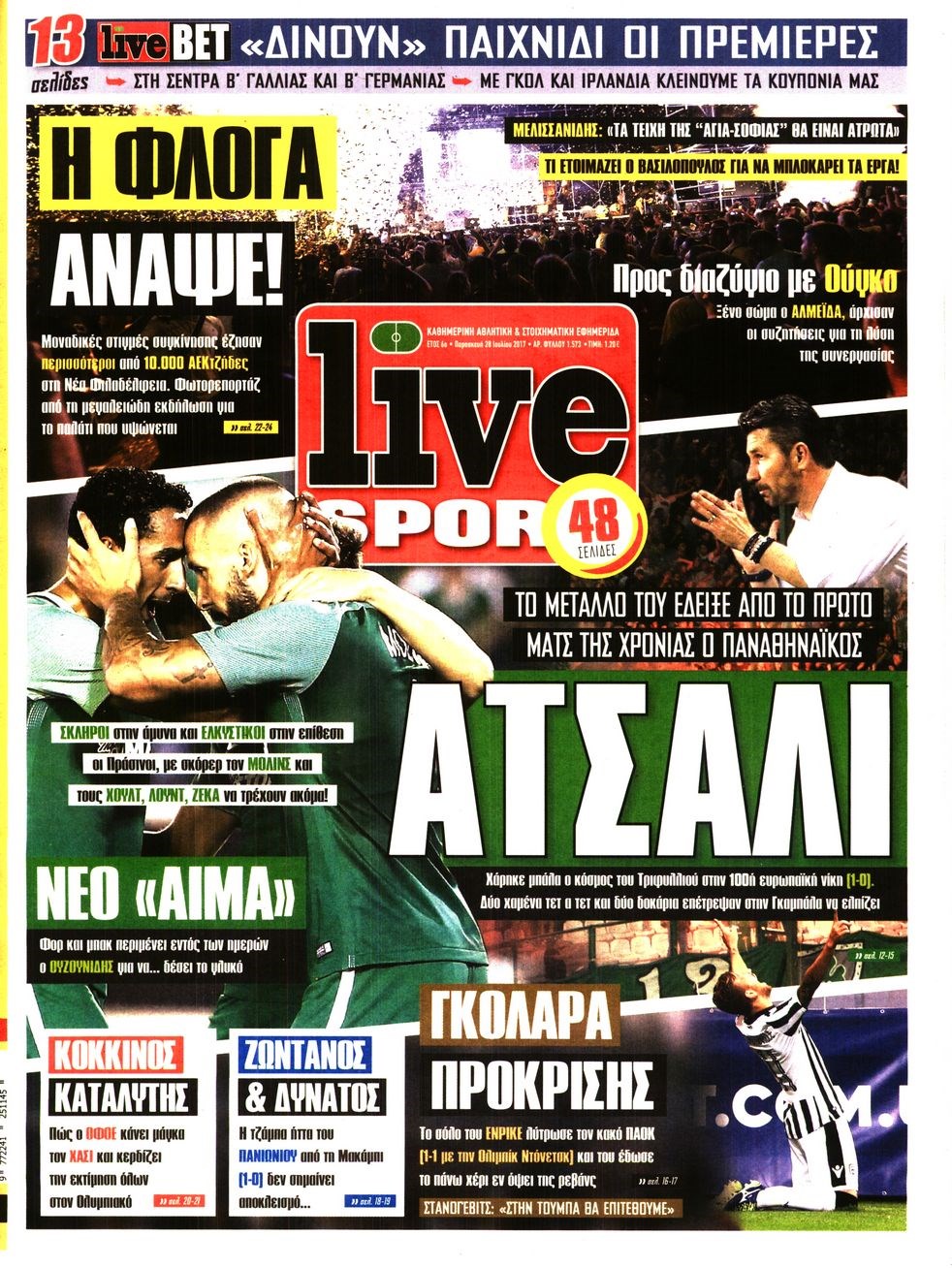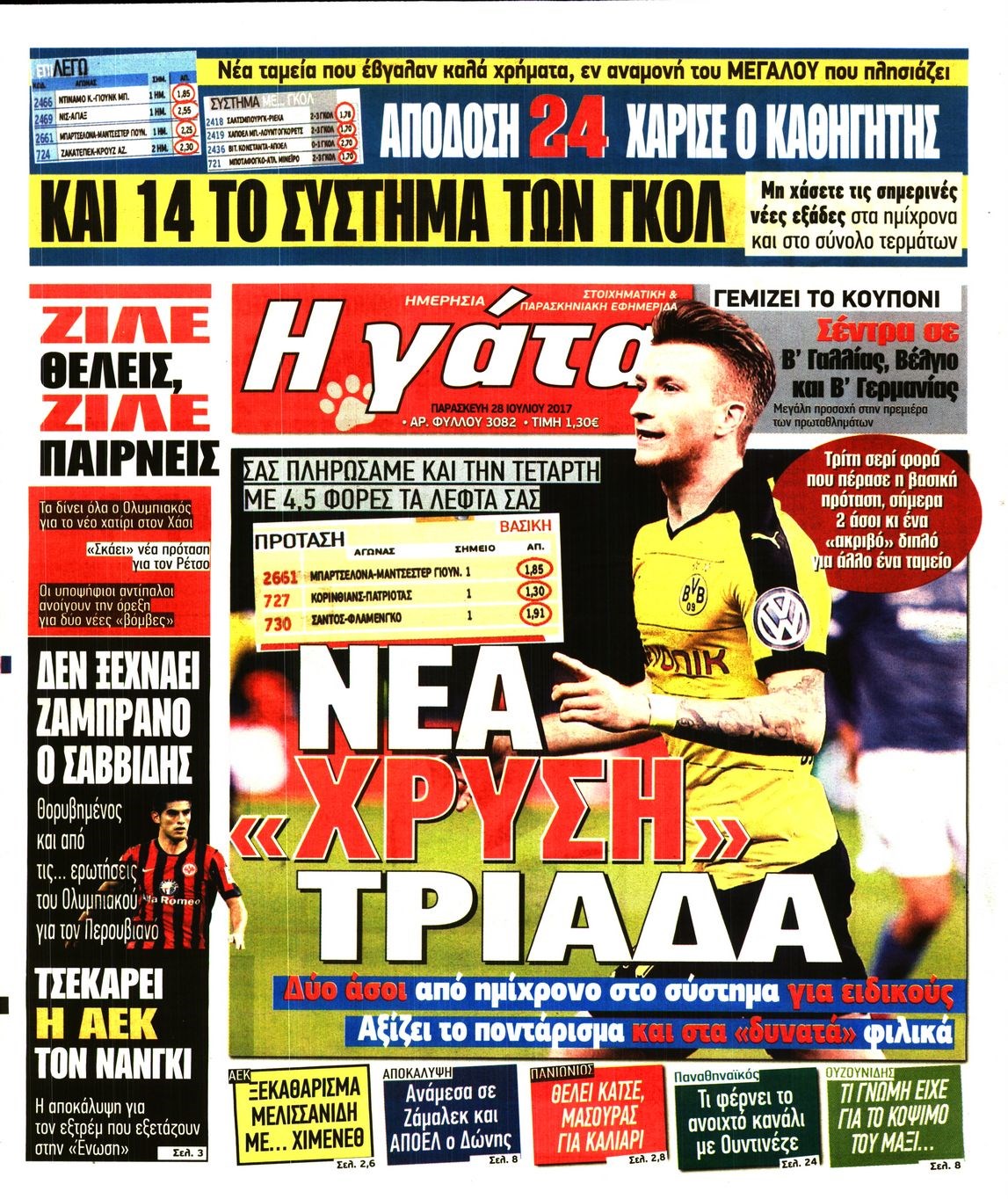 Οι αθλητικές εφημερίδες 28/7/2017 Enikos Newsroom 07:43, Παρασκευή 28 Ιουλίου 2017 Media Διαβάστε τα σημερινά πρωτοσέλιδα των αθλητικών εφημερίδων: ΑΘΛΗΤΙΚΕΣ ΕΦΗΜΕΡΙΔΕΣ ΠΡΩΤΟΣΕΛΙΔΑ Μοιράσου το: σχολίασε κι εσύ (0 σχόλια) Ακολουθήστε το enikos.gr στο Google News και μάθετε πρώτοι όλες τις ειδήσεις Δείτε όλες τις τελευταίες ειδήσεις από την Ελλάδα και τον Κόσμο στο enikos.gr Ειδήσεις Ροή Ειδήσεων 11 λεπτά πριν Χριστούγεννα στα μπλόκα: Επιμένουν στις κινητοποιήσεις τους οι αγρότες – Ανοίγουν τα διόδια το Σαββατοκύριακο 40 λεπτά πριν Τραμπ: Δεν αποκλείει την πιθανότητα ενός πολέμου στη Βενεζουέλα – «Ο Μαδούρο ξέρει καλύτερα από τον καθένα τι ακριβώς θέλω» 34 λεπτά πριν Ουκρανία: Η άνευ προηγουμένου επίθεση σε ρωσικό τάνκερ στη Μεσόγειο και το μήνυμα προς στον Πούτιν – Το «μακρύ χέρι» του Κιέβου 3 ώρες πριν Πούτιν: «Ναι, είμαι ερωτευμένος» – Βίντεο από τη σπάνια προσωπική παραδοχή του 1 ώρα πριν Συνεχίζει να προκαλεί ο Μίτσκοσκι: «Για μένα το όνομα Μακεδονία είναι ιερό» 2 ώρες πριν Αριθμολογία: Οι άνθρωποι που έχουν γεννηθεί αυτές τις 4 ημερομηνίες, συχνά παρεξηγούνται – «Η καλοσύνη τους κρύβει τεράστια δύναμη» 4 ώρες πριν Μήπως έχετε χάσει τον εαυτό σας στη σχέση σας; 7 «αθόρυβες» υποχωρήσεις που μάλλον κάνατε, χωρίς να το συνειδητοποιήσετε 3 ώρες πριν Ξεχάστε το καθάρισμα το Σαββατοκύριακο: Ο «κανόνας των 20 λεπτών» που θα σας λύσει τα χέρια 49 λεπτά πριν Ύπνος: Μια κρυφή κατάσταση του εγκεφάλου πριν από τον ύπνο μπορεί να είναι το “κλειδί” για υψηλή ευφυΐα και δημιουργικότητα 7 λεπτά πριν Γιώργος Γιαννόπουλος για “Το σόι σου”: “Είναι ευτυχία και ευλογία αυτή η σειρά” 11 λεπτά πριν Χριστούγεννα στα μπλόκα: Επιμένουν στις κινητοποιήσεις τους οι αγρότες – Ανοίγουν τα διόδια το Σαββατοκύριακο 23 λεπτά πριν Χάρι και Μέγκαν: Η σπάνια οικογενειακή φωτογραφία με τον Άρτσι και τη Λίλιμπετ – Τι σχεδιάζουν για τα Χριστούγεννα 30 λεπτά πριν Βασίλης Καρράς: «Είναι πάντα δίπλα μου, δεν έφυγε…», λέει ο αδελφός του 34 λεπτά πριν Ουκρανία: Η άνευ προηγουμένου επίθεση σε ρωσικό τάνκερ στη Μεσόγειο και το μήνυμα προς στον Πούτιν – Το «μακρύ χέρι» του Κιέβου ENIKOS NETWORK Το ΕΚΑΒ τιμήθηκε από την Ακαδημία Αθηνών για τα 40 χρόνια προσφοράς του Έχετε πραγματικά μεγάλη καρδιά; 10 χαρακτηριστικά όσων έχουν καλοσύνη Πλήρης επάρκεια προϊόντων στις λαϊκές της Αττικής, παρά τις αγροτικές κινητοποιήσεις – Τι απαντούν οι πωλητές ΑΑΔΕ: Νέες αναβαθμίσεις στο Ψηφιακό Πελατολόγιο και την εφαρμογή myDATAapp – Τι πρέπει να γνωρίζετε Χαρτογραφώντας το «σημείο χωρίς επιστροφή»: Για πρώτη φορά αποκαλύπτεται με λεπτομέρεια το ακανθώδες όριο της ατμόσφαιρας τ... Η Google καταργεί τη λειτουργία «dark web report» – Πώς θα μπορούν οι χρήστες να διαγράφουν τα δεδομένα τους περισσότερα 22:42 , Παρασκευή 19 Δεκεμβρίου 2025 Γιώργος Γιαννόπουλος για “Το σόι σου”: “Είναι ευτυχία και ευλογία αυτή η σειρά” «Είναι ευτυχία και ευλογία η συγκυρία αυτής της σειράς», θα πει ο Γιώργος Γιαννόπουλος -ο αγαπ... 20:37 , Παρασκευή 19 Δεκεμβρίου 2025 Don’t Forget The Lyrics: Η Έλλη Κοκκίνου υποδέχεται 4 παίκτες που θα κάνουν τα πάντα για να μη χάσουν ούτε… μισή λέξη από τους στίχους Το «Don’t Forget The Lyrics» επιστρέφει απόψε, Παρασκευή 19 Δεκεμβρίου, στις 21:00 με νέο επει... 19:31 , Παρασκευή 19 Δεκεμβρίου 2025 GNTM: Απόψε ο μεγάλος τελικός για τους 4 φιναλίστ Έπειτα από μήνες γεμάτους μόδα, δημιουργία και έντονες αναμετρήσεις, το GNTM 2025 κορυφώνεται,... 18:11 , Παρασκευή 19 Δεκεμβρίου 2025 Το σόι σου: Ο 