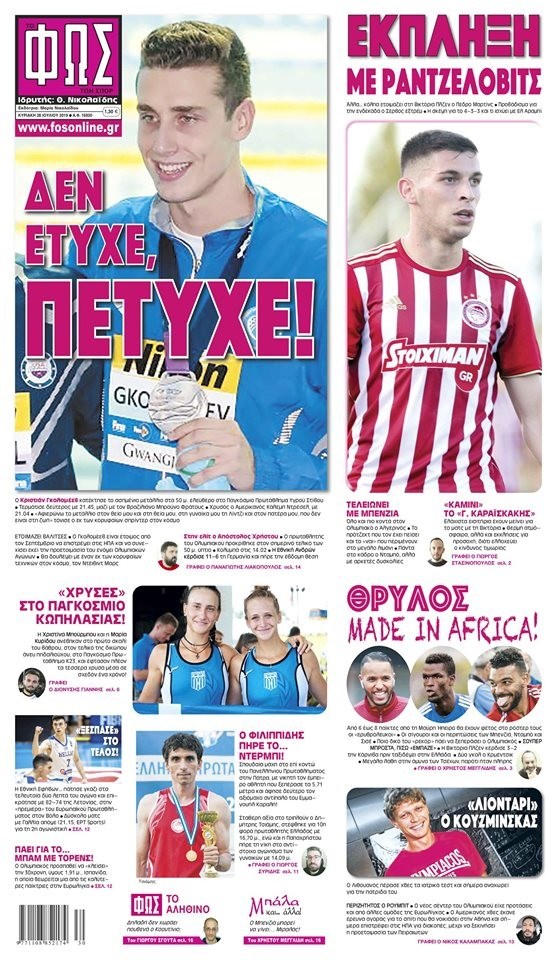 Οι αθλητικές εφημερίδες 28/7/2019 Enikos Newsroom 06:25, Κυριακή 28 Ιουλίου 2019 Media Διαβάστε τα πρωτοσέλιδα των αθλητικών εφημερίδων: ΑΘΛΗΤΙΚΕΣ ΕΦΗΜΕΡΙΔΕΣ ΠΡΩΤΟΣΕΛΙΔΑ Μοιράσου το: σχολίασε κι εσύ (0 σχόλια) Ακολουθήστε το enikos.gr στο Google News και μάθετε πρώτοι όλες τις ειδήσεις Δείτε όλες τις τελευταίες ειδήσεις από την Ελλάδα και τον Κόσμο στο enikos.gr Ειδήσεις Ροή Ειδήσεων 4 ώρες πριν Μεσόγειος: Η διαδρομή του ρωσικού τάνκερ «Qendil» και η στοχευμένη επίθεση της Ουκρανίας με drone – Ο Πούτιν προειδοποίησε για αντίποινα 43 λεπτά πριν Αγρότες: Έκλεισαν για μία ώρα την παρακαμπτήρια της Ιόνιας Οδού στη θέση Χαλίκι 2 ώρες πριν Εμπλοκή και αερομαχίες με οπλισμένα τουρκικά F-16 στο Αιγαίο 2 ώρες πριν Πούτιν: «Ναι, είμαι ερωτευμένος» – Βίντεο από τη σπάνια προσωπική παραδοχή του 47 λεπτά πριν Ανδρέας Λυκουρέντζος: Υπέβαλε την παραίτησή του ο πρόεδρος του ΕΛΓΑ, αλλά δεν έγινε δεκτή – Όλο το παρασκήνιο 57 λεπτά πριν Αριθμολογία: Οι άνθρωποι που έχουν γεννηθεί αυτές τις 4 ημερομηνίες, συχνά παρεξηγούνται – «Η καλοσύνη τους κρύβει τεράστια δύναμη» 3 ώρες πριν Μήπως έχετε χάσει τον εαυτό σας στη σχέση σας; 7 «αθόρυβες» υποχωρήσεις που μάλλον κάνατε, χωρίς να το συνειδητοποιήσετε 2 ώρες πριν Ξεχάστε το καθάρισμα το Σαββατοκύριακο: Ο «κανόνας των 20 λεπτών» που θα σας λύσει τα χέρια 5 ώρες πριν Κουίζ για την παλιά Αθήνα: Αναγνωρίζετε την περιοχή; Έχετε περάσει 100% από εκεί 3 λεπτά πριν ΕΕ: «Κάποια στιγμή θα χρησιμοποιήσουμε τα ρωσικά περιουσιακά στοιχεία» δήλωσε ο πρόεδρος του ΕΛΚ 6 λεπτά πριν Conference League: Καλύτερη επίθεση η ΑΕΚ στη διοργάνωση και 2η σε προσπάθειες στην εστία – Ξεχωρίζουν Πινέδα, Ελίασον και Ρότα 8 λεπτά πριν Έγκυος η Άννα Κορακάκη: «Η οικογένειά μας μεγαλώνει…» – Η αποκάλυψη για το φύλο του μωρού 16 λεπτά πριν Τραγωδία στο Βελεστίνο: Πέθανε ο αντιδήμαρχος Γιάννης Παπαϊωάννου 20 λεπτά πριν Ολυμπιακός – Βιλερμπάν: Μάτωσε στο πρόσωπο ο Παπανικολάου έπειτα από αγκωνιά του Βοτιέ – ΦΩΤΟ ENIKOS NETWORK Το ΕΚΑΒ τιμήθηκε από την Ακαδημία Αθηνών για τα 40 χρόνια προσφοράς του Έχετε πραγματικά μεγάλη καρδιά; 10 χαρακτηριστικά όσων έχουν καλοσύνη Έρχονται νέες προσλήψεις σε Δήμο – Όλες οι λεπτομέρειες Επίδομα παιδιού: Πότε ανοίγει ξανά η πλατφόρμα για τις αιτήσεις Χαρτογραφώντας το «σημείο χωρίς επιστροφή»: Για πρώτη φορά αποκαλύπτεται με λεπτομέρεια το ακανθώδες όριο της ατμόσφαιρας τ... Η Google καταργεί τη λειτουργία «dark web report» – Πώς θα μπορούν οι χρήστες να διαγράφουν τα δεδομένα τους περισσότερα 20:37 , Παρασκευή 19 Δεκεμβρίου 2025 Don’t Forget The Lyrics: Η Έλλη Κοκκίνου υποδέχεται 4 παίκτες που θα κάνουν τα πάντα για να μη χάσουν ούτε… μισή λέξη από τους στίχους Το «Don’t Forget The Lyrics» επιστρέφει απόψε, Παρασκευή 19 Δεκεμβρίου, στις 21:00 με νέο επει... 19:31 , Παρασκευή 19 Δεκεμβρίου 2025 GNTM: Απόψε ο μεγάλος τελικός για τους 4 φιναλίστ Έπειτα από μήνες γεμάτους μόδα, δημιουργία και έντονες αναμετρήσεις, το GNTM 2025 κορυφώνεται,... 18:11 , Παρασκευή 19 Δεκεμβρίου 2025 Το σόι σου: Ο Άρης έρχεται στην Ελλάδα για τις γιορτές των Χριστουγέννων – Τι θα δούμε στο αποψινό εορταστικό επεισόδιο Ένα απολαυστικό, εορταστικό επεισόδιο της σειράς “Το σόι σου”, γεμάτο ευτράπελα αλ... 15:15 , Παρασκευή 19 Δεκεμβρίου 2025 Την Κυριακή με τη Realnews: Ό,τι και αν αγοράσεις, σκανάρεις και κερδίζεις! Την Κυριακή με τη Realnews: Ό,τι και αν αγοράσεις, σκανάρεις και κερδίζεις! Με το PADU app, το... ΤΕΛΕΥΤΑΙΕΣ ΕΙΔΗΣΕΙΣ 3 λεπτά πριν ΕΕ: «Κάποια στιγμή θα χρησιμοποιήσουμε τα