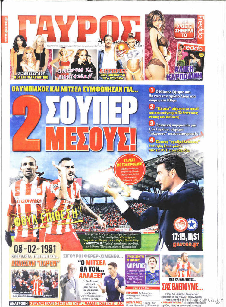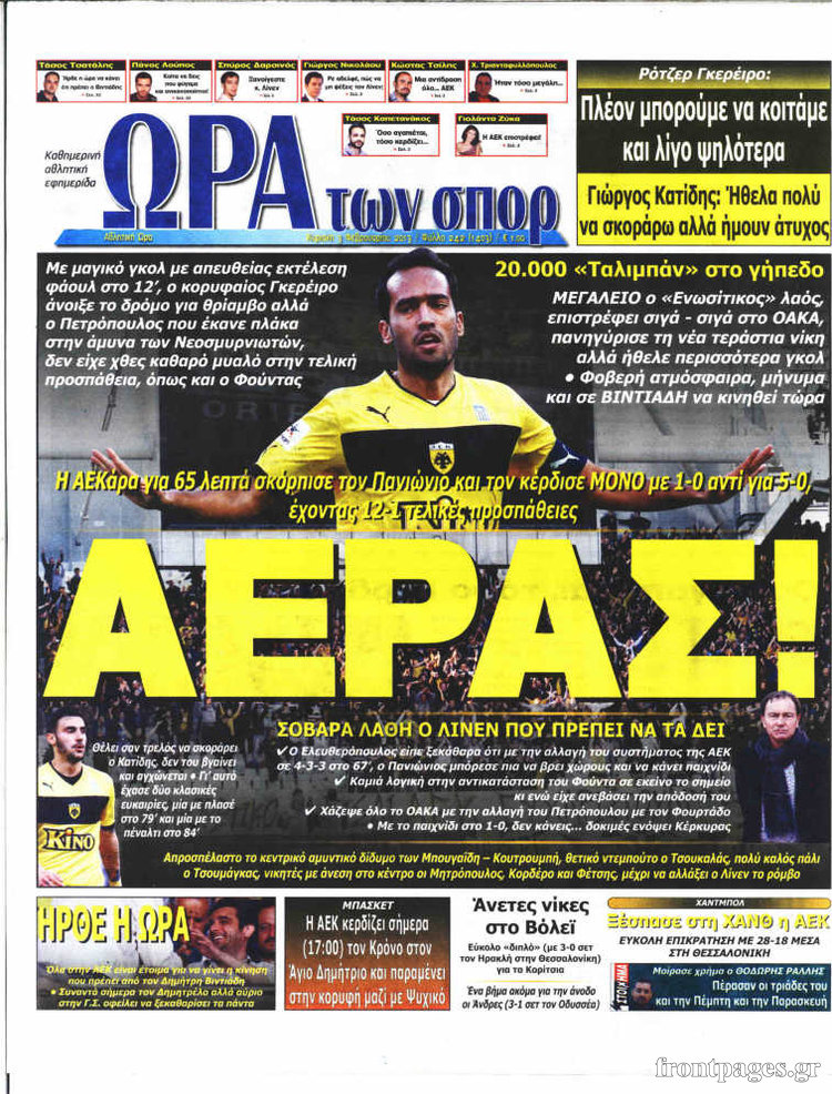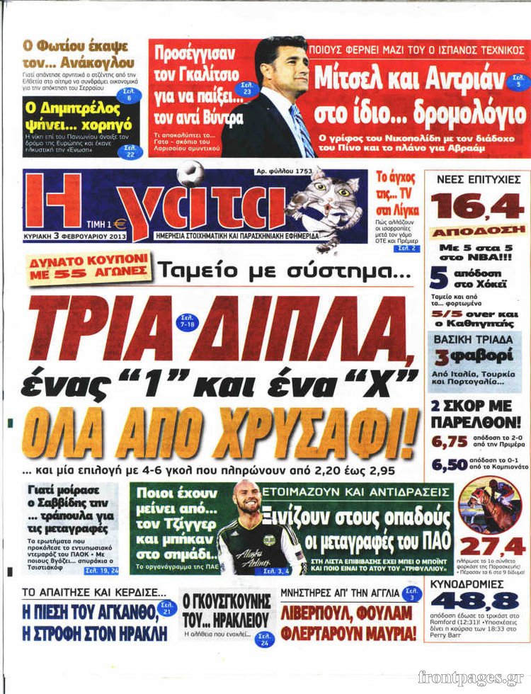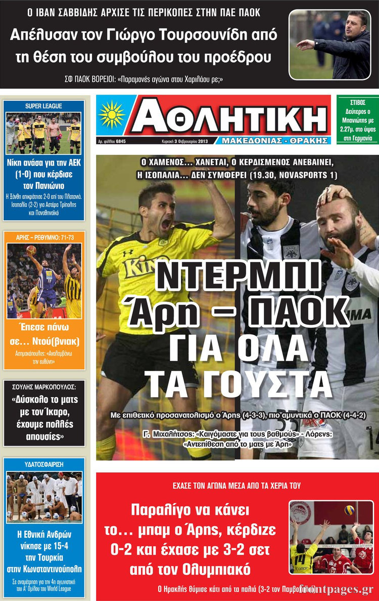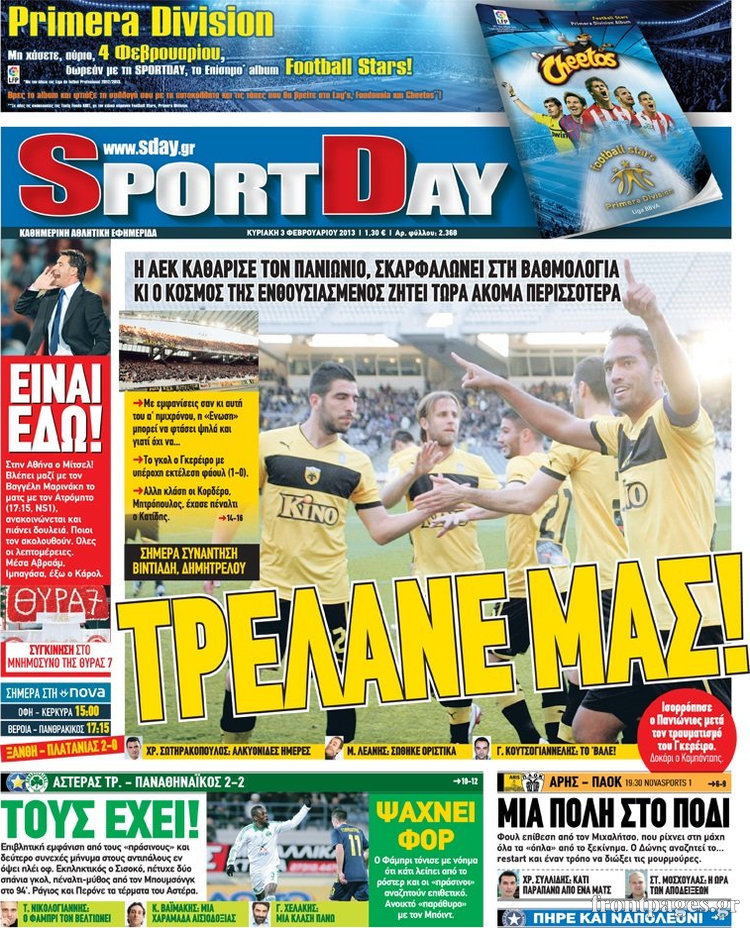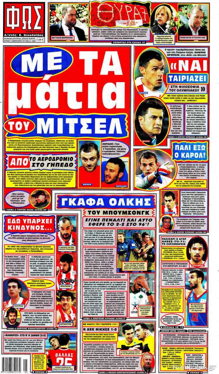 Οι αθλητικές εφημερίδες Enikos Newsroom 09:20, Κυριακή 03 Φεβρουαρίου 2013 Media Οι αθλητικές εφημερίδες ΑΘΛΗΤΙΚΕΣ ΕΦΗΜΕΡΙΔΕΣ ΕΦΗΜΕΡΙΔΕΣ Μοιράσου το: σχολίασε κι εσύ (0 σχόλια) Ακολουθήστε το enikos.gr στο Google News και μάθετε πρώτοι όλες τις ειδήσεις Δείτε όλες τις τελευταίες ειδήσεις από την Ελλάδα και τον Κόσμο στο enikos.gr Ειδήσεις Ροή Ειδήσεων 4 ώρες πριν Εκτός ευρωομάδας ΣΥΡΙΖΑ ο Νίκος Παππάς μετά την επίθεση στον δημοσιογράφο Νίκο Γιαννόπουλο – Η μήνυση και οι νέες δηλώσεις 4 ώρες πριν «Αγριεύουν» οι αγρότες: «Δεν συντρέχει λόγος συνάντησης με τον πρωθυπουργό» – Ώρα αποφάσεων στη σύσκεψη της Πέμπτης 4 ώρες πριν Κυψέλη: Χωρίς την οικογένειά της δίπλα της απολογήθηκε η 16χρονη – «Της είχε επιτεθεί κάποιος για να την βιάσει, φοβήθηκε και κυκλοφορούσε με μαχαίρι» 4 ώρες πριν Politico: Το πρόβλημα της Ευρώπης δεν είναι το Βέλγιο αλλά ο Ντόναλντ Τραμπ 5 ώρες πριν Αλεξανδρούπολη: Πολυοργανική ανεπάρκεια λόγω υποσιτισμού η αιτία θανάτου του 3χρονου αγοριού 4 ώρες πριν Μυστήριο με τεράστιες κυκλικές πέτρες 200 κιλών – Ανακαλύφθηκαν τυχαία κατά τη διάρκεια οδικών έργων και κανείς δεν ξέρει από πού προέρχονται 5 ώρες πριν Ύπνος: Ειδικός εξηγεί τον πραγματικό λόγο που ξυπνάτε στις 4 τα ξημερώματα – Ο ρόλος των ορμονών και του κιρκάδιου ρυθμού 6 ώρες πριν Αριθμολογία: Οι άνθρωποι που έχουν γεννηθεί αυτές τις 4 ημερομηνίες, είναι τρυφεροί και αγαπούν ανιδιοτελώς 17 ώρες πριν 20 χρόνια τα Χριστούγεννα ξεκινούν στα Public με μεγάλη ποικιλία σε δώρα! 4 λεπτά πριν Σουδάν: Επιδρομή drone σε χωριό του Νότιου Κορντοφάν – Οκτώ νεκροί 19 λεπτά πριν Αλ Τσαντίρι Νιουζ: Η κόρη της Πάολα στο κοινό – Η ατάκα Λαζόπουλου που την έκανε να «κοκκινήσει» 34 λεπτά πριν Ρωσία: Ουκρανικές δυνάμεις έπληξαν πλοίο στο λιμάνι του Ροστόφ – Αναφορές για θύματα 50 λεπτά πριν Βρυξέλλες: Νυχτερινό… μπλόκο αγροτών μπροστά από το κτίριο της Ευρωπαϊκής Επιτροπής – Πάνω από 100 τρακτέρ απέκλεισαν την λεωφόρο 1 ώρα πριν Euroleague: Απρόσμενη ήττα για την Μονακό του Βασίλη Σπανούλη – Η βαθμολογία μετά το τέλος της 16ης αγωνιστικής ENIKOS NETWORK Αϋπνία: Το κόλπο που θα σας βοηθήσει να κοιμηθείτε απόψε – Είναι απλό και έχει αποτέλεσμα 2,6 εκατομμύρια πολίτες έχουν ήδη εμβολιαστεί κατά της γρίπης ΕΛΣΤΑΤ: Τι δείχνουν τα νέα στοιχεία για τις ηλεκτρονικές παραγγελίες των επιχειρήσεων ΚΕΠΕ: Οι 3 διακριτές συμβολές των ΜμΕ και της μεταποίησης στην ελληνική οικονομία Χαρτογραφώντας το «σημείο χωρίς επιστροφή»: Για πρώτη φορά αποκαλύπτεται με λεπτομέρεια το ακανθώδες όριο της ατμόσφαιρας τ... Η Google καταργεί τη λειτουργία «dark web report» – Πώς θα μπορούν οι χρήστες να διαγράφουν τα δεδομένα τους περισσότερα 02:30 , Πέμπτη 18 Δεκεμβρίου 2025 Αλ Τσαντίρι Νιουζ: Η κόρη της Πάολα στο κοινό – Η ατάκα Λαζόπουλου που την έκανε να «κοκκινήσει» Γιορτινή διάθεση και ευχάριστες στιγμές γέμισε η αποψινή, τελευταία για το 2025, εκπομπή του «... 22:24 , Τετάρτη 17 Δεκεμβρίου 2025 Το Σπίτι Δίπλα Στο Ποτάμι: Σε κίνδυνο η υγεία του Απόστολου – Τι θα δούμε απόψε “Το Σπίτι Δίπλα στο Ποτάμι” ξετυλίγει το νήμα της ζωής των πέντε αδελφών με καταισ... 21:14 , Τετάρτη 17 Δεκεμβρίου 2025 Παιχνίδια Εκδίκησης: Θα καταφέρει ο Χρήστος να κλονίσει την εμπιστοσύνη της Μάγιας απέναντι στον Άγη; Τα «Παιχνίδια Εκδίκησης» έρχονται απόψε στις 22:30, στον Αντ1, με το τελευταίο επεισόδιο της χ... 20:57 , Τετάρτη 17 Δεκεμβρίου 2025 Άγιος Έρωτας: Η Χλόη καταθέτει εναντίον του πατέρα της και ο Χάρης αποκαλύπτει στον Κλε
