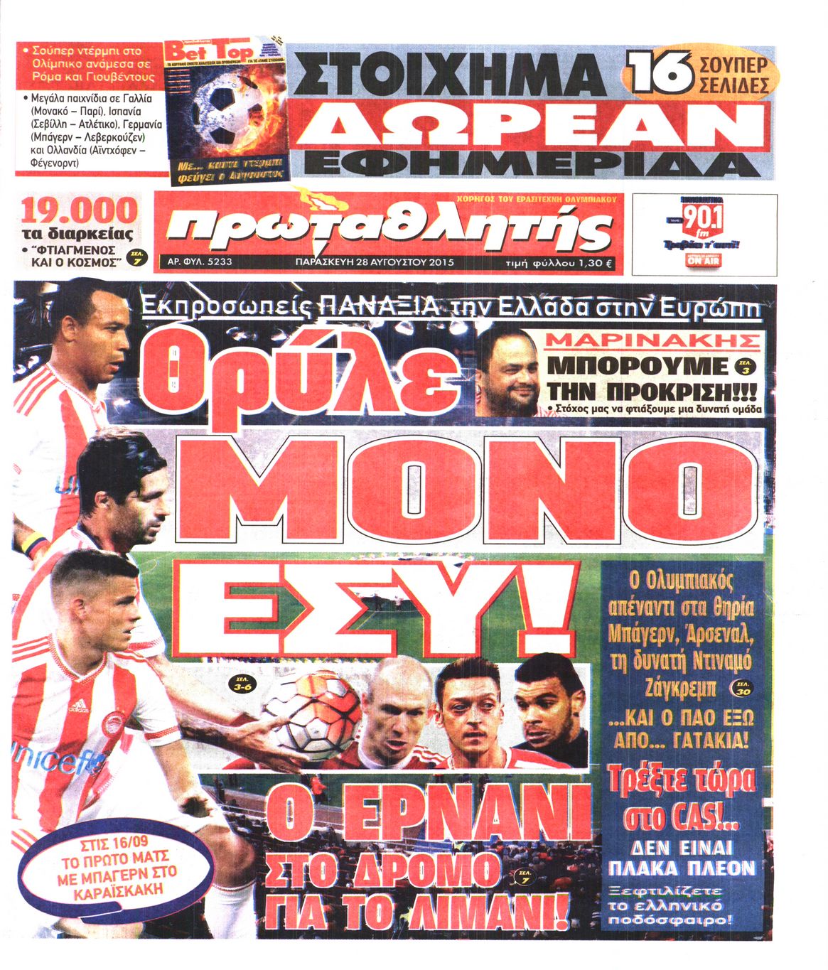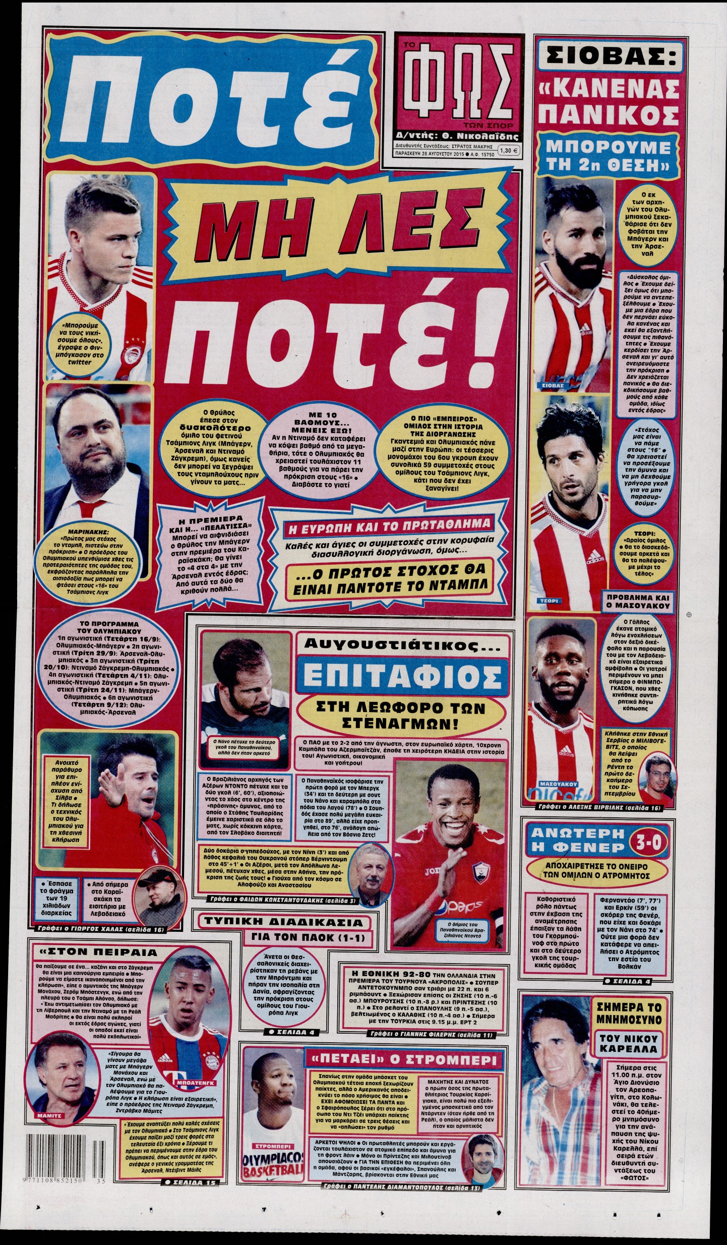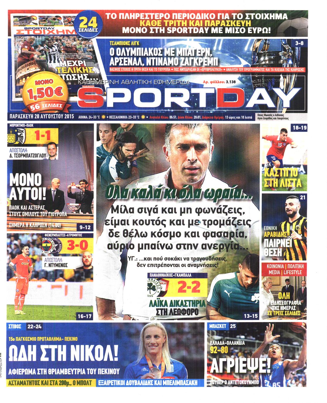 Οι αθλητικές εφημερίδες 28/8/2015 Enikos Newsroom 06:55, Παρασκευή 28 Αυγούστου 2015 Media Διαβάστε τα σημερινά πρωτοσέλιδα των αθλητικών εφημερίδων: ΑΘΛΗΤΙΚΕΣ ΕΦΗΜΕΡΙΔΕΣ ΠΡΩΤΟΣΕΛΙΔΑ Μοιράσου το: σχολίασε κι εσύ (0 σχόλια) Ακολουθήστε το enikos.gr στο Google News και μάθετε πρώτοι όλες τις ειδήσεις Δείτε όλες τις τελευταίες ειδήσεις από την Ελλάδα και τον Κόσμο στο enikos.gr Ειδήσεις Ροή Ειδήσεων 4 ώρες πριν Μεσόγειος: Η διαδρομή του ρωσικού τάνκερ «Qendil» και η στοχευμένη επίθεση της Ουκρανίας με drone – Ο Πούτιν προειδοποίησε για αντίποινα 29 λεπτά πριν Αγρότες: Έκλεισαν για μία ώρα την παρακαμπτήρια της Ιόνιας Οδού στη θέση Χαλίκι 2 ώρες πριν Εμπλοκή και αερομαχίες με οπλισμένα τουρκικά F-16 στο Αιγαίο 2 ώρες πριν Πούτιν: «Ναι, είμαι ερωτευμένος» – Βίντεο από τη σπάνια προσωπική παραδοχή του 32 λεπτά πριν Ανδρέας Λυκουρέντζος: Υπέβαλε την παραίτησή του ο πρόεδρος του ΕΛΓΑ, αλλά δεν έγινε δεκτή – Όλο το παρασκήνιο 42 λεπτά πριν Αριθμολογία: Οι άνθρωποι που έχουν γεννηθεί αυτές τις 4 ημερομηνίες, συχνά παρεξηγούνται – «Η καλοσύνη τους κρύβει τεράστια δύναμη» 3 ώρες πριν Μήπως έχετε χάσει τον εαυτό σας στη σχέση σας; 7 «αθόρυβες» υποχωρήσεις που μάλλον κάνατε, χωρίς να το συνειδητοποιήσετε 2 ώρες πριν Ξεχάστε το καθάρισμα το Σαββατοκύριακο: Ο «κανόνας των 20 λεπτών» που θα σας λύσει τα χέρια 5 ώρες πριν Κουίζ για την παλιά Αθήνα: Αναγνωρίζετε την περιοχή; Έχετε περάσει 100% από εκεί 1 λεπτό πριν Τραγωδία στο Βελεστίνο: Πέθανε ο αντιδήμαρχος Γιάννης Παπαϊωάννου 5 λεπτά πριν Ολυμπιακός – Βιλερμπάν: Μάτωσε στο πρόσωπο ο Παπανικολάου έπειτα από αγκωνιά του Βοτιέ – ΦΩΤΟ 13 λεπτά πριν Συνεχίζει να προκαλεί ο Μίτσκοσκι: «Για μένα το όνομα Μακεδονία είναι ιερό» 23 λεπτά πριν Ο Γιάννης Κακλέας σκηνοθετεί Βερόνικα Δαβάκη και Ιβάν Σβιτάιλο στη «Locandiera» 29 λεπτά πριν Αγρότες: Έκλεισαν για μία ώρα την παρακαμπτήρια της Ιόνιας Οδού στη θέση Χαλίκι ENIKOS NETWORK Το ΕΚΑΒ τιμήθηκε από την Ακαδημία Αθηνών για τα 40 χρόνια προσφοράς του Έχετε πραγματικά μεγάλη καρδιά; 10 χαρακτηριστικά όσων έχουν καλοσύνη Έρχονται νέες προσλήψεις σε Δήμο – Όλες οι λεπτομέρειες Επίδομα παιδιού: Πότε ανοίγει ξανά η πλατφόρμα για τις αιτήσεις Χαρτογραφώντας το «σημείο χωρίς επιστροφή»: Για πρώτη φορά αποκαλύπτεται με λεπτομέρεια το ακανθώδες όριο της ατμόσφαιρας τ... Η Google καταργεί τη λειτουργία «dark web report» – Πώς θα μπορούν οι χρήστες να διαγράφουν τα δεδομένα τους περισσότερα 20:37 , Παρασκευή 19 Δεκεμβρίου 2025 Don’t Forget The Lyrics: Η Έλλη Κοκκίνου υποδέχεται 4 παίκτες που θα κάνουν τα πάντα για να μη χάσουν ούτε… μισή λέξη από τους στίχους Το «Don’t Forget The Lyrics» επιστρέφει απόψε, Παρασκευή 19 Δεκεμβρίου, στις 21:00 με νέο επει... 19:31 , Παρασκευή 19 Δεκεμβρίου 2025 GNTM: Απόψε ο μεγάλος τελικός για τους 4 φιναλίστ Έπειτα από μήνες γεμάτους μόδα, δημιουργία και έντονες αναμετρήσεις, το GNTM 2025 κορυφώνεται,... 18:11 , Παρασκευή 19 Δεκεμβρίου 2025 Το σόι σου: Ο Άρης έρχεται στην Ελλάδα για τις γιορτές των Χριστουγέννων – Τι θα δούμε στο αποψινό εορταστικό επεισόδιο Ένα απολαυστικό, εορταστικό επεισόδιο της σειράς “Το σόι σου”, γεμάτο ευτράπελα αλ... 15:15 , Παρασκευή 19 Δεκεμβρίου 2025 Την Κυριακή με τη Realnews: Ό,τι και αν αγοράσεις, σκανάρεις και κερδίζεις! Την Κυριακή με τη Realnews: Ό,τι και αν αγοράσεις, σκανάρεις και κερδίζεις! Με το PADU app, το... ΤΕΛΕΥΤΑΙΕΣ ΕΙΔΗΣΕΙΣ 5 λεπτά πριν Ολυμπιακός – Βιλερμπάν: Μάτωσε στο πρόσωπο ο... 13 λεπτά πριν Συνεχίζει να προκαλεί ο Μίτσκοσκι: «Για μέν