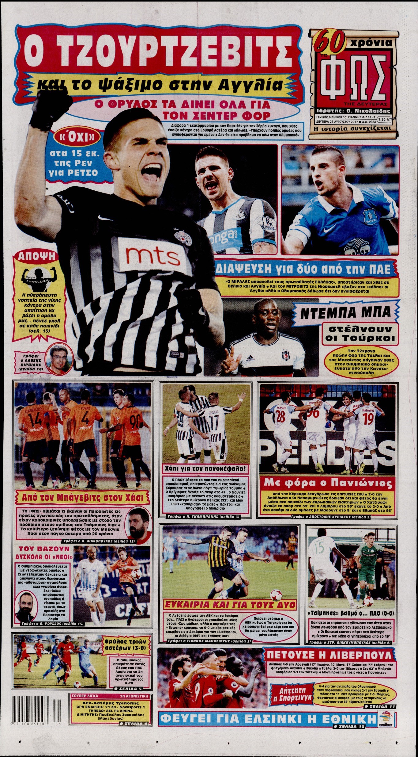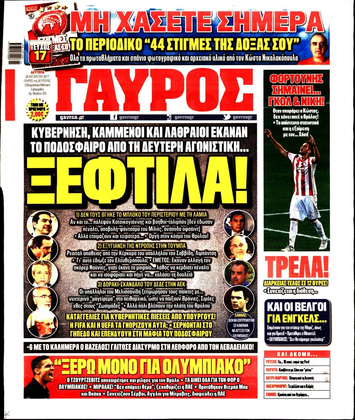 Οι αθλητικές εφημερίδες 28/8/2017 Enikos Newsroom 07:25, Δευτέρα 28 Αυγούστου 2017 Media Διαβάστε τα σημερινά πρωτοσέλιδα των αθλητικών εφημερίδων: ΑΘΛΗΤΙΚΕΣ ΕΦΗΜΕΡΙΔΕΣ ΠΡΩΤΟΣΕΛΙΔΑ Μοιράσου το: σχολίασε κι εσύ (0 σχόλια) Ακολουθήστε το enikos.gr στο Google News και μάθετε πρώτοι όλες τις ειδήσεις Δείτε όλες τις τελευταίες ειδήσεις από την Ελλάδα και τον Κόσμο στο enikos.gr Ειδήσεις Ροή Ειδήσεων 3 ώρες πριν Από το Ορμένιο ως τα Μάλγαρα κι από τη Σιάτιστα μέχρι τη Νίκαια: Μπλόκα σε όλη την Ελλάδα – Το Σάββατο ανοίγουν τα διόδια οι αγρότες 39 λεπτά πριν Εμπλοκή και αερομαχίες με οπλισμένα τουρκικά F-16 στο Αιγαίο 2 ώρες πριν Αττική: Θρίλερ με νεκρό βρέφος 5 μηνών – Κοιμόταν στο ίδιο κρεβάτι με τους γονείς του 29 λεπτά πριν Πούτιν: «Ναι, είμαι ερωτευμένος» – Βίντεο από τη σπάνια προσωπική παραδοχή του 2 ώρες πριν Μεσόγειος: Η διαδρομή του ρωσικού τάνκερ «Qendil» και η στοχευμένη επίθεση της Ουκρανίας με drone – Ο Πούτιν προειδοποίησε για αντίποινα 4 ώρες πριν Τα 5 ζώδια που ευνοούνται στην ερωτική ζωή τους την επόμενη εβδομάδα – «Η ενέργεια του Αιγόκερου φέρνει αγάπη και σταθερότητα» 5 ώρες πριν Αυτό το έξυπνο μαθηματικό κόλπο θα μπορούσε να αλλάξει τον τρόπο με τον οποίο οι επιστήμονες μελετούν τους σεισμούς 1 ώρα πριν Μήπως έχετε χάσει τον εαυτό σας στη σχέση σας; 7 «αθόρυβες» υποχωρήσεις που μάλλον κάνατε, χωρίς να το συνειδητοποιήσετε 3 ώρες πριν Κουίζ για την παλιά Αθήνα: Αναγνωρίζετε την περιοχή; Έχετε περάσει 100% από εκεί 1 λεπτό πριν Νίκος Γιαννόπουλος: «Μου επιτέθηκε ο Παππάς – Ήμουν νηφάλιος, δεν τον προκάλεσα» – ΒΙΝΤΕΟ 9 λεπτά πριν Γιώργος Τράγκας: Ανατροπή από το Πριγκιπάτο του Μονακό για την υπόθεση της κληρονομιάς – Η ανακοίνωση της δικηγόρου της Μαρίας Καρρά 17 λεπτά πριν Ξεχάστε το καθάρισμα το Σαββατοκύριακο: Ο «κανόνας των 20 λεπτών» που θα σας λύσει τα χέρια 18 λεπτά πριν Αγρότες: Έκλεισαν την υψηλή γέφυρα της Χαλκίδας – ΒΙΝΤΕΟ 22 λεπτά πριν Ρούμπιο: Έχει υπάρξει πρόοδος στις συνομιλίες για την Ουκρανία – Τα τελευταία ζητήματα είναι τα πιο δύσκολα ENIKOS NETWORK Έχετε πραγματικά μεγάλη καρδιά; 10 χαρακτηριστικά όσων έχουν καλοσύνη «Η σούπερ» γρίπη εξαπλώνεται στην Ευρώπη-Στοιχεία από το ECDC για την αποτελεσματικότητα του εμβολίου Επίδομα παιδιού: Πότε ανοίγει ξανά η πλατφόρμα για τις αιτήσεις Προκήρυξη ΑΣΕΠ για 397 μόνιμες προσλήψεις στο Δημόσιο: Βγήκαν τα προσωρινά αποτελέσματα – Πότε αρχίζει η υποβολή ενστάσεων Χαρτογραφώντας το «σημείο χωρίς επιστροφή»: Για πρώτη φορά αποκαλύπτεται με λεπτομέρεια το ακανθώδες όριο της ατμόσφαιρας τ... Η Google καταργεί τη λειτουργία «dark web report» – Πώς θα μπορούν οι χρήστες να διαγράφουν τα δεδομένα τους περισσότερα 19:31 , Παρασκευή 19 Δεκεμβρίου 2025 GNTM: Απόψε ο μεγάλος τελικός για τους 4 φιναλίστ Έπειτα από μήνες γεμάτους μόδα, δημιουργία και έντονες αναμετρήσεις, το GNTM 2025 κορυφώνεται,... 18:11 , Παρασκευή 19 Δεκεμβρίου 2025 Το σόι σου: Ο Άρης έρχεται στην Ελλάδα για τις γιορτές των Χριστουγέννων – Τι θα δούμε στο αποψινό εορταστικό επεισόδιο Ένα απολαυστικό, εορταστικό επεισόδιο της σειράς “Το σόι σου”, γεμάτο ευτράπελα αλ... 15:15 , Παρασκευή 19 Δεκεμβρίου 2025 Την Κυριακή με τη Realnews: Ό,τι και αν αγοράσεις, σκανάρεις και κερδίζεις! Την Κυριακή με τη Realnews: Ό,τι και αν αγοράσεις, σκανάρεις και κερδίζεις! Με το PADU app, το... 08:00 , Παρασκευή 19 Δεκεμβρίου 2025 Την Κυριακή με τη Realnews: Δωροεπιταγή 10€ Δωροεπιταγή αξίας 10€ για αγορές άνω των 60€ από τα πολυκαταστήματα FactoryOutlet H π
