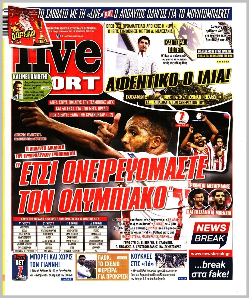 Οι αθλητικές εφημερίδες 28/8/2019 Διονύσης Νίκκας 06:20, Τετάρτη 28 Αυγούστου 2019 Media Διαβάστε τα πρωτοσέλιδα των αθλητικών εφημερίδων… ΑΘΛΗΤΙΚΩΝ ΕΦΗΜΕΡΙΔΩΝ ΠΡΩΤΟΣΕΛΙΔΑ Μοιράσου το: σχολίασε κι εσύ (0 σχόλια) Ακολουθήστε το enikos.gr στο Google News και μάθετε πρώτοι όλες τις ειδήσεις Δείτε όλες τις τελευταίες ειδήσεις από την Ελλάδα και τον Κόσμο στο enikos.gr Ειδήσεις Ροή Ειδήσεων 2 ώρες πριν Σίδνεϊ: Τουλάχιστον 10 νεκροί και 16 τραυματίες σε ένοπλη επίθεση – Βίντεο από «ήρωα» περαστικό που αφόπλισε έναν δράστη 44 λεπτά πριν ΟΠΕΚΕΠΕ: Ποινική δίωξη με βαρύτατες κατηγορίες για τους 15 συλληφθέντες στην Κρήτη για τις παράνομες επιδοτήσεις 2 ώρες πριν Σκληραίνουν τη στάση τους οι αγρότες: Αποφασίζουν τις δράσεις της εβδομάδας – Αύριο το συλλαλητήριο στα δικαστήρια της Λάρισας 3 ώρες πριν Στιγμές τρόμου για επιβάτες λεωφορείου στη Θεσσαλονίκη: Ο οδηγός πέρασε με κόκκινο σε σιδηροδρομική διάβαση ενώ ερχόταν τρένο και έσπασε την μπάρα 4 ώρες πριν Κυριάκος Μητσοτάκης μετά το «όχι» των αγροτών: Διάλογος δεν γίνεται με τελεσίγραφα και οι λύσεις προκύπτουν μόνο από συζήτηση 3 ώρες πριν Προπονήτρια ευεξίας που έχασε 24 κιλά αποκαλύπτει: «Αυτά είναι τα 6 ανησυχητικά σημάδια της υψηλής κορτιζόλης» 5 ώρες πριν Η ζωή γίνεται πολύ καλύτερη για 3 ζώδια – «Ίσως έχει έρθει η ώρα να κάνετε μια πραγματική και μόνιμη αλλαγή» 4 ώρες πριν Τα 8 πράγματα που τα ευτυχισμένα ζευγάρια δεν κάνουν ποτέ μπροστά στα παιδιά τους 5 ώρες πριν Ξέσπασε σε κλάματα με το χριστουγεννιάτικο δώρο του άνδρα της – «Μου είπε ότι είμαι το πιο αχάριστο άτομο που έχει γνωρίσει» 4 λεπτά πριν Κυριάκος Μητσοτάκης για το μακελειό στην Αυστραλία: «Είμαι βαθιά συγκλονισμένος – Ο αντισημιτισμός και το μίσος δεν έχουν θέση στις κοινωνίες μας» 12 λεπτά πριν Ζελένσκι: «Θα υπάρξουν συμβιβασμοί» – Ενόψει κρίσιμων συνομιλιών στο Βερολίνο πιέζει για «αξιοπρεπή» ειρήνη 20 λεπτά πριν Δημήτρης Αλεξάνδρου: Η νέα ανάρτηση – «καρφί» μετά το βίντεο της Ιωάννας Τούνη – «Η σιωπή είναι η καλύτερη εκδίκηση» 28 λεπτά πριν Κωνσταντοπούλου: Διέκοψε την τηλεφωνική σύνδεση στην εκπομπή της Χρηστίδου – Ερώτηση προκάλεσε ένταση on air και οδήγησε στην αποχώρησή της 36 λεπτά πριν Καιρός: Αλλάζει το σκηνικό το επόμενο Σαββατοκύριακο – Πώς θα γιορτάσουμε τα Χριστούγεννα ENIKOS NETWORK Άσκηση ή περισσότερος ύπνος: Τι είναι πιο σημαντικό για την υγεία όταν δεν έχετε χρόνο και για τα δύο; Σπλαχνικό λίπος: 3 υδατάνθρακες που μπορεί να σας βοηθήσουν να το χάσετε, σύμφωνα με ειδικό Αντέχουν οι ευρωπαϊκές και οι ελληνικές εξαγωγές στους δασμούς Τραμπ – Αυξάνονται οι εισαγωγές από Κίνα Ψηφιακό δελτίο αποστολής ελαιοκάρπου – Η νέα ημερομηνία έναρξης Σύγχρονος Νοστράδαμος: Προειδοποιεί για «μεγάλο γεγονός» τους επόμενους μήνες που θα συγκλονίσει τη Βρετανία και τον κόσμο Τεστ παρατηρητικότητας: Μπορείτε να βρείτε τις 3 διαφορές στις εικόνες με έναν πιγκουίνο σε 14 δευτερόλεπτα περισσότερα 12:46 , Κυριακή 14 Δεκεμβρίου 2025 Η Realnews στο www.pressreader.com Διαβάστε την ψηφιακή έκδοση της εφημερίδας στην οθόνη του κινητού, του tablet και του υπολογισ... 10:07 , Κυριακή 14 Δεκεμβρίου 2025 Η γη της ελιάς: Η αρχή του τέλους του Δημοσθένη πλησιάζει Η δραματική σειρά του MEGA «Η γη της ελιάς» επιφυλάσσει ακόμα μεγαλύτερες ανατροπές. Κάθε επει... 08:15 , Κυριακή 14 Δεκεμβρίου 2025 Σήμερα με τη Realnews: Food & Travel μαζί Beaute και Μαστορέματα Σήμερα με τη Realnews: Food & Travel μαζί Beaute και Μαστορέματα Food & Travel Ετοιμάζ...