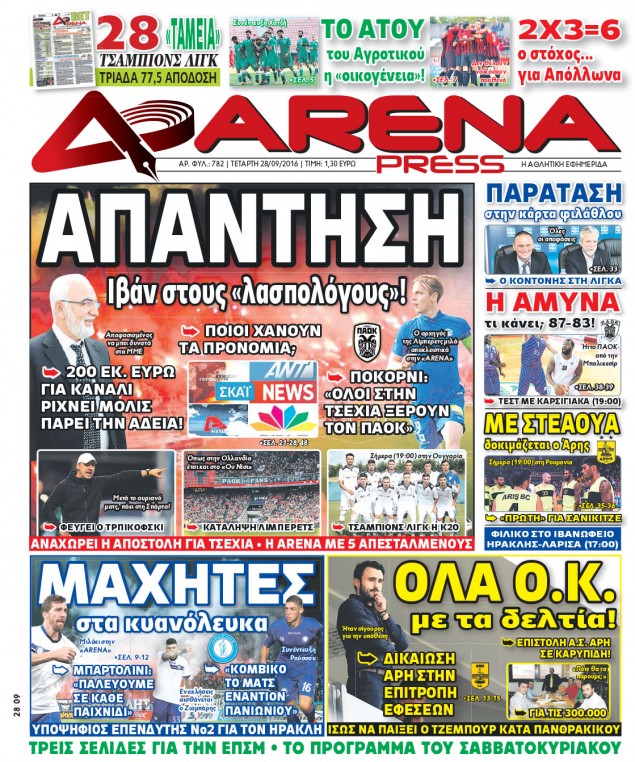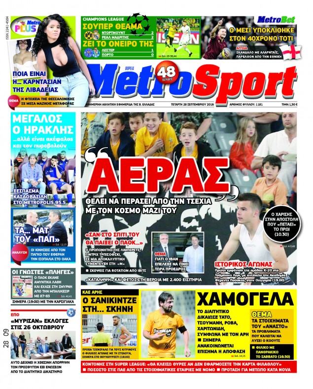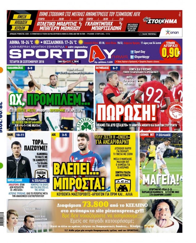Οι αθλητικές εφημερίδες 28/9/2016 Enikos Newsroom 03:52, Τετάρτη 28 Σεπτεμβρίου 2016 Media Διαβάστε τα σημερινά πρωτοσέλιδα των αθλητικών εφημερίδων: ΑΘΛΗΤΙΚΕΣ ΕΦΗΜΕΡΙΔΕΣ ΠΡΩΤΟΣΕΛΙΔΑ Μοιράσου το: σχολίασε κι εσύ (0 σχόλια) Ακολουθήστε το enikos.gr στο Google News και μάθετε πρώτοι όλες τις ειδήσεις Δείτε όλες τις τελευταίες ειδήσεις από την Ελλάδα και τον Κόσμο στο enikos.gr Ειδήσεις Ροή Ειδήσεων 4 ώρες πριν Εκτός ευρωομάδας ΣΥΡΙΖΑ ο Νίκος Παππάς μετά την επίθεση στον δημοσιογράφο Νίκο Γιαννόπουλο – Η μήνυση και οι νέες δηλώσεις 5 ώρες πριν «Αγριεύουν» οι αγρότες: «Δεν συντρέχει λόγος συνάντησης με τον πρωθυπουργό» – Ώρα αποφάσεων στη σύσκεψη της Πέμπτης 5 ώρες πριν Κυψέλη: Χωρίς την οικογένειά της δίπλα της απολογήθηκε η 16χρονη – «Της είχε επιτεθεί κάποιος για να την βιάσει, φοβήθηκε και κυκλοφορούσε με μαχαίρι» 4 ώρες πριν Politico: Το πρόβλημα της Ευρώπης δεν είναι το Βέλγιο αλλά ο Ντόναλντ Τραμπ 6 ώρες πριν Αλεξανδρούπολη: Πολυοργανική ανεπάρκεια λόγω υποσιτισμού η αιτία θανάτου του 3χρονου αγοριού 5 ώρες πριν Μυστήριο με τεράστιες κυκλικές πέτρες 200 κιλών – Ανακαλύφθηκαν τυχαία κατά τη διάρκεια οδικών έργων και κανείς δεν ξέρει από πού προέρχονται 6 ώρες πριν Ύπνος: Ειδικός εξηγεί τον πραγματικό λόγο που ξυπνάτε στις 4 τα ξημερώματα – Ο ρόλος των ορμονών και του κιρκάδιου ρυθμού 7 ώρες πριν Αριθμολογία: Οι άνθρωποι που έχουν γεννηθεί αυτές τις 4 ημερομηνίες, είναι τρυφεροί και αγαπούν ανιδιοτελώς 18 ώρες πριν 20 χρόνια τα Χριστούγεννα ξεκινούν στα Public με μεγάλη ποικιλία σε δώρα! 17 λεπτά πριν Βραζιλία: Το Κογκρέσο ενέκρινε σχέδιο νόμου για τη μείωση της ποινής του πρώην προέδρου Μπολσονάρου 32 λεπτά πριν Ένταση στο περιφερειακό συμβούλιο Δυτικής Μακεδονίας: Φωνές, σπρωξιές και διακοπή – Δείτε βίντεο 47 λεπτά πριν Σουδάν: Επιδρομή drone σε χωριό του Νότιου Κορντοφάν – Οκτώ νεκροί 1 ώρα πριν Αλ Τσαντίρι Νιουζ: Η κόρη της Πάολα στο κοινό – Η ατάκα Λαζόπουλου που την έκανε να «κοκκινήσει» 1 ώρα πριν Ρωσία: Ουκρανικές δυνάμεις έπληξαν πλοίο στο λιμάνι του Ροστόφ – Αναφορές για θύματα ENIKOS NETWORK Αϋπνία: Το κόλπο που θα σας βοηθήσει να κοιμηθείτε απόψε – Είναι απλό και έχει αποτέλεσμα 2,6 εκατομμύρια πολίτες έχουν ήδη εμβολιαστεί κατά της γρίπης ΕΛΣΤΑΤ: Τι δείχνουν τα νέα στοιχεία για τις ηλεκτρονικές παραγγελίες των επιχειρήσεων ΚΕΠΕ: Οι 3 διακριτές συμβολές των ΜμΕ και της μεταποίησης στην ελληνική οικονομία Χαρτογραφώντας το «σημείο χωρίς επιστροφή»: Για πρώτη φορά αποκαλύπτεται με λεπτομέρεια το ακανθώδες όριο της ατμόσφαιρας τ... Η Google καταργεί τη λειτουργία «dark web report» – Πώς θα μπορούν οι χρήστες να διαγράφουν τα δεδομένα τους περισσότερα 02:30 , Πέμπτη 18 Δεκεμβρίου 2025 Αλ Τσαντίρι Νιουζ: Η κόρη της Πάολα στο κοινό – Η ατάκα Λαζόπουλου που την έκανε να «κοκκινήσει» Γιορτινή διάθεση και ευχάριστες στιγμές γέμισε η αποψινή, τελευταία για το 2025, εκπομπή του «... 22:24 , Τετάρτη 17 Δεκεμβρίου 2025 Το Σπίτι Δίπλα Στο Ποτάμι: Σε κίνδυνο η υγεία του Απόστολου – Τι θα δούμε απόψε “Το Σπίτι Δίπλα στο Ποτάμι” ξετυλίγει το νήμα της ζωής των πέντε αδελφών με καταισ... 21:14 , Τετάρτη 17 Δεκεμβρίου 2025 Παιχνίδια Εκδίκησης: Θα καταφέρει ο Χρήστος να κλονίσει την εμπιστοσύνη της Μάγιας απέναντι στον Άγη; Τα «Παιχνίδια Εκδίκησης» έρχονται απόψε στις 22:30, στον Αντ1, με το τελευταίο επεισόδιο της χ... 20:57 , Τετάρτη 17 Δεκεμβρίου 2025 Άγιος Έρωτας: Η Χλόη καταθέτει εναντίον του πατέρα της και ο Χάρης αποκαλύπτει στον Κ
