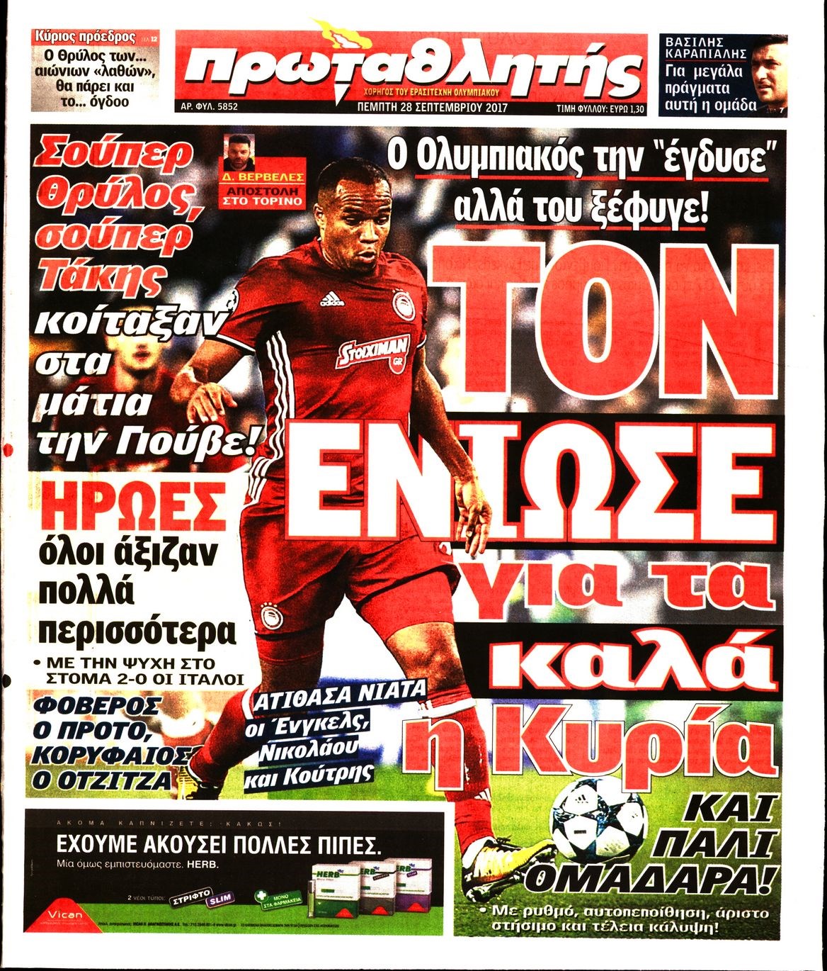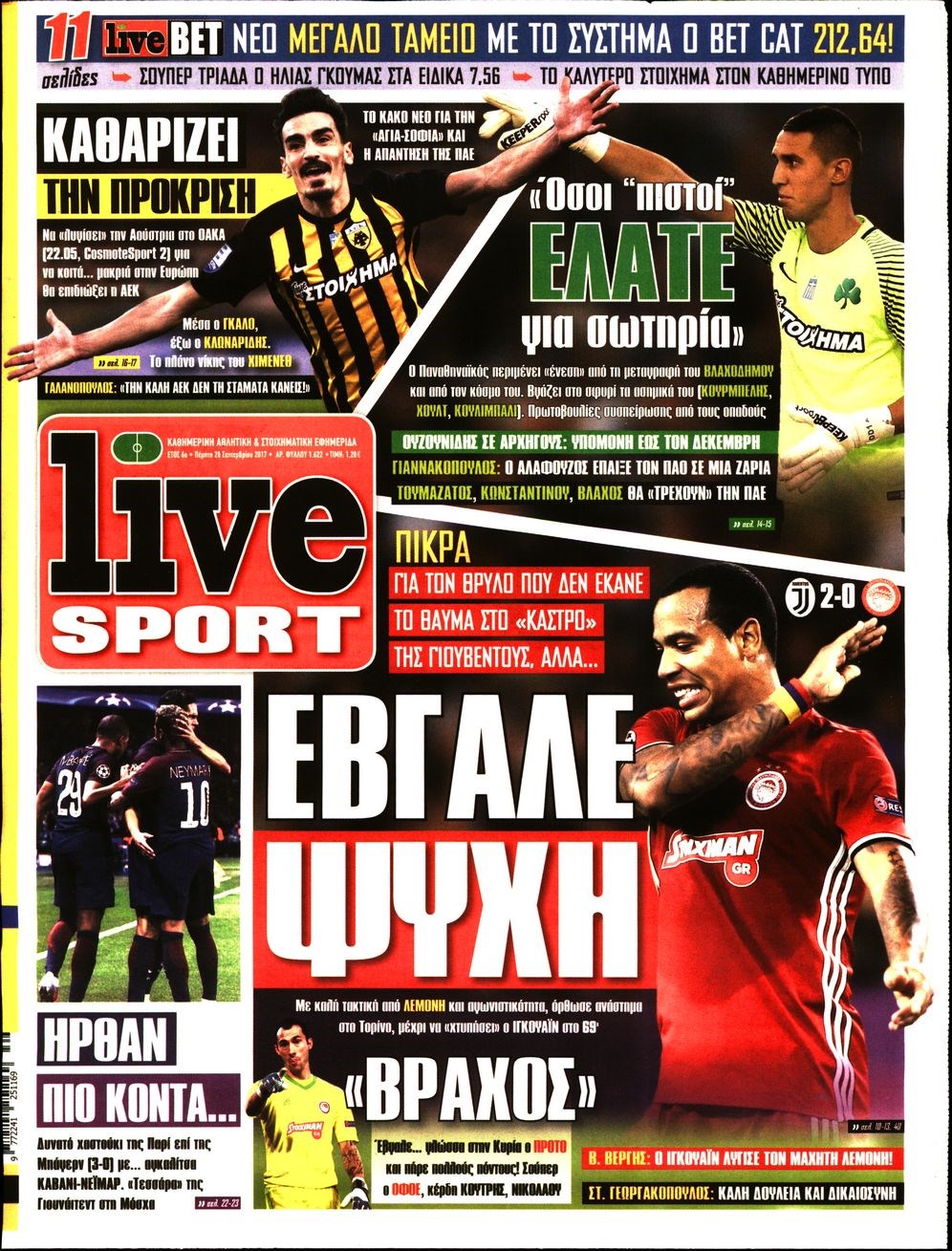 Οι αθλητικές εφημερίδες 28/9/2017 Enikos Newsroom 07:16, Πέμπτη 28 Σεπτεμβρίου 2017 Media Διαβάστε τα σημερινά πρωτοσέλιδα των αθλητικών εφημερίδων: ΑΘΛΗΤΙΚΕΣ ΕΦΗΜΕΡΙΔΕΣ ΠΡΩΤΟΣΕΛΙΔΑ Μοιράσου το: σχολίασε κι εσύ (0 σχόλια) Ακολουθήστε το enikos.gr στο Google News και μάθετε πρώτοι όλες τις ειδήσεις Δείτε όλες τις τελευταίες ειδήσεις από την Ελλάδα και τον Κόσμο στο enikos.gr Ειδήσεις Ροή Ειδήσεων 2 ώρες πριν Αγρότες: Πολύωροι αποκλεισμοί στα τελωνεία Προμαχώνα, Εξοχής, Ευζώνων και Νίκης – Κλείνουν τον κόμβο Φιλώτα οι παραγωγοί στη Δυτική Μακεδονία 1 ώρα πριν Νίκος Παππάς: Ζητώ συγγνώμη για αυτό το επεισόδιο – Δεν τον γρονθοκόπησα 3 ώρες πριν Ευρωπαϊκό Συμβούλιο: Όλες οι λεπτομέρειες για το δάνειο των 90 δισ. ευρώ στην Ουκρανία – Τα συμπεράσματα της Συνόδου Κορυφής 3 ώρες πριν Αίγιο: 22χρονη κατήγγειλε ότι έπεσε θύμα βιασμού και ληστείας από συγγενικά της πρόσωπα 1 ώρα πριν Τρομακτικό βίντεο: Η στιγμή της έκρηξης στο τζετ που μετέφερε τον οδηγό του NASCAR, Γκρεγκ Μπιφλ και την οικογένειά του 2 ώρες πριν Αλλαγή σελίδας για 3 ζώδια – «Μία δύσκολη περίοδος φτάνει στο τέλος της» 2 ημέρες πριν 20 χρόνια τα Χριστούγεννα ξεκινούν στα Public με μεγάλη ποικιλία σε δώρα! 3 ώρες πριν Ο σύζυγός της συμπεριφέρεται όπως το παιδί τους – «Χρησιμοποιεί αστείες δικαιολογίες για να μην κάνει δουλειές και να ξοδεύει λεφτά» 56 λεπτά πριν Γεμάτος νεροχύτης; 5 σοβαρές ευθύνες που «φοβίζουν» όσους αφήνουν άπλυτα πιάτα 4 λεπτά πριν Γονείς για πρώτη φορά ο Πιτ Ντέιβιντσον και η Έλσι Χιούιτ 9 λεπτά πριν Πούτιν: Η Ουκρανία δεν είναι έτοιμη για ειρηνευτικές συνομιλίες – ο ρωσικός στρατός προελαύνει σε όλα τα μέτωπα 15 λεπτά πριν Βουλή: Αποσύρθηκε προσθήκη για έργα του Ταμειακού Προγράμματος Ανάπτυξης της Γ.Γ. Αθλητισμού μετά τις αντιδράσεις της αντιπολίτευσης 21 λεπτά πριν Νορβηγία: Η πριγκίπισσα Μέτε-Μάριτ πιθανότατα θα υποβληθεί σε μεταμόσχευση πνεύμονα 32 λεπτά πριν Ενίσχυση δρομολογίων του Μετρό τις Κυριακές 21 και 28 Δεκεμβρίου – Κυκλοφοριακές ρυθμίσεις αύριο στη Γραμμή 7 του τραμ λόγω εορταστικών εκδηλώσεων ENIKOS NETWORK Κίνδυνος παραπλάνησης από διαφημίσεις οδοντικών εμφυτευμάτων Καρκίνος του πνεύμονα: Έως 8.000 ζωές μπορούν να σωθούν με την έγκαιρη διάγνωση Επιδόματα και παροχές από τον ΟΠΕΚΑ: Τι πιστώνεται σήμερα στους τραπεζικούς λογαριασμούς Απειλή για τον Προϋπολογισμό τα ληξιπρόθεσμα χρέη των ιδιωτών προς την εφορία – Τι δείχνουν τα στοιχεία Χαρτογραφώντας το «σημείο χωρίς επιστροφή»: Για πρώτη φορά αποκαλύπτεται με λεπτομέρεια το ακανθώδες όριο της ατμόσφαιρας τ... Η Google καταργεί τη λειτουργία «dark web report» – Πώς θα μπορούν οι χρήστες να διαγράφουν τα δεδομένα τους περισσότερα 08:00 , Παρασκευή 19 Δεκεμβρίου 2025 Την Κυριακή με τη Realnews: Δωροεπιταγή 10€ Δωροεπιταγή αξίας 10€ για αγορές άνω των 60€ από τα πολυκαταστήματα FactoryOutlet H προσφορά ι... 05:48 , Παρασκευή 19 Δεκεμβρίου 2025 Οι οικονομικές εφημερίδες 19/12/2025 Διαβάστε τα πρωτοσέλιδα από τις οικονομικές εφημερίδες, σήμερα 19/12/2025. 05:43 , Παρασκευή 19 Δεκεμβρίου 2025 Οι αθλητικές εφημερίδες 19/12/2025 Διαβάστε τα πρωτοσέλιδα από τις αθλητικές εφημερίδες, σήμερα 19/12/2025. 05:38 , Παρασκευή 19 Δεκεμβρίου 2025 Οι πολιτικές εφημερίδες 19/12/2025 Διαβάστε τα πρωτοσέλιδα από τις πολιτικές εφημερίδες, σήμερα 19/12/2025. ΤΕΛΕΥΤΑΙΕΣ ΕΙΔΗΣΕΙΣ 4 λεπτά πριν Γονείς για πρώτη φορά ο Πιτ Ντέιβιντσον και η Έλσι... 9 λεπτά πριν Πούτιν: Η Ουκρανία δεν είναι έτοιμη για ειρηνευτικές... 15 λεπτά πριν Βουλή: Αποσύρθηκε π