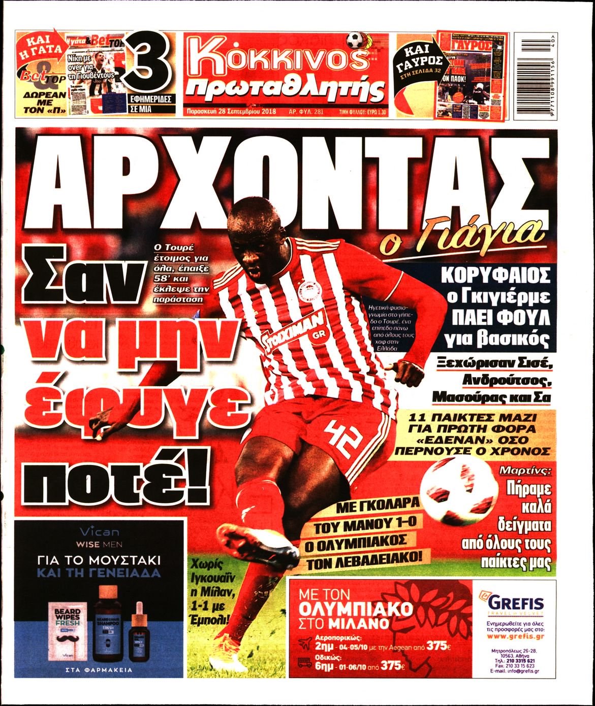Οι αθλητικές εφημερίδες 28/9/2018 Enikos Newsroom 06:33, Παρασκευή 28 Σεπτεμβρίου 2018 Media Διαβάστε τα πρωτοσέλιδα: ΑΘΛΗΤΙΚΕΣ ΕΦΗΜΕΡΙΔΕΣ ΠΡΩΤΟΣΕΛΙΔΑ Μοιράσου το: σχολίασε κι εσύ (0 σχόλια) Ακολουθήστε το enikos.gr στο Google News και μάθετε πρώτοι όλες τις ειδήσεις Δείτε όλες τις τελευταίες ειδήσεις από την Ελλάδα και τον Κόσμο στο enikos.gr Ειδήσεις Ροή Ειδήσεων 2 ώρες πριν Μπλόκα: Οι αγρότες σηκώνουν τις μπάρες σε διόδια για τους εκδρομείς των Χριστουγέννων και μοιράζουν προϊόντα – Βίντεο 3 ώρες πριν Τσιάρας προς αγρότες: Τα μπλόκα και τα πείσματα δεν ωφελούν – Οι λύσεις περνούν μέσα από τον διάλογο 4 ώρες πριν Αρχεία Έπσταϊν: Οι συγκλονιστικές φωτογραφίες – Ο Μάικλ Τζάκσον, ο Μικ Τζάγκερ και ο Κέβιν Σπέισι ανάμεσα στους διάσημους που απεικονίζονται 1 ώρα πριν Μαθητές διακινούσαν κοκαΐνη και χασίς σε σχολείο της Αττικής – 12 συλλήψεις 2 ώρες πριν Βέλγιο: Άγνωστοι έριξαν κόκκινη μπογιά στο προξενείο της Πολωνίας στις Βρυξέλλες 6 ώρες πριν Μία νέα «χρυσή» περίοδος αρχίζει για 3 ζώδια από σήμερα – «Μία αναπάντεχη ευκαιρία οδηγεί στην επιτυχία» 4 ώρες πριν Διαιτολόγος αποκαλύπτει 9 πρωινές συνήθειες που «λιώνουν» το κοιλιακό λίπος – «Υποστηρίζουν την υγιεινή απώλεια βάρους» 5 ώρες πριν Οι 7 φράσεις που δεν λένε ποτέ οι συναισθηματικά έξυπνοι άνθρωποι κατά τη διάρκεια ενός καβγά 7 ώρες πριν Enerwave: Το νέο «ρεύμα» στη λιανική ενέργειας που αλλάζει την εμπειρία του καταναλωτή 7 λεπτά πριν Στο νοσοκομείο ο Λευτέρης Πανταζής – Τι συνέβη 16 λεπτά πριν Super League: Με Κηφισιά ο Ολυμπιακός για να «κλείσει» το 2025 στην κορυφή – Αναλυτικά το πρόγραμμα της 15ης αγωνιστικής 21 λεπτά πριν ΕΛΑΣ: Συνελήφθησαν Υπαρχιπυροσβέστης και δύο ακόμη άτομα για κατοχή και διακίνηση ναρκωτικών ουσιών – Η καταγγελία και ο τιμοκατάλογος 29 λεπτά πριν Πακιστάν: Σε κάθειρξη 17 ετών καταδικάστηκαν ο πρώην πρωθυπουργός Ίμραν Χαν και η σύζυγός του 37 λεπτά πριν Μαρινάκης στον Realfm 97,8: Η κυβέρνηση σέβεται κάθε λογική διεκδίκηση των αγροτών, αλλά και το αίτημα των πολιτών να μην ταλαιπωρούνται ENIKOS NETWORK Η αποχή από την αναπαραγωγή παρατείνει τη ζωή στα ζώα, σύμφωνα με μελέτη – Τι ισχύει για τους ανθρώπους; Σημαντικές επαφές στις ΗΠΑ είχε ο υπουργός Υγείας Άδωνις Γεωργιάδης Επιτροπή Ανταγωνισμού: Στο μικροσκόπιο σχολικές τσάντες και επώνυμα brands – Τι ερευνάται Ευλογιά αιγοπροβάτων: Παρατεταμένη επιζωοτία, αυστηρά μέτρα – Τι ισχύει για τον εμβολιασμό και την ανασύσταση του ζωικού κε... Χαρτογραφώντας το «σημείο χωρίς επιστροφή»: Για πρώτη φορά αποκαλύπτεται με λεπτομέρεια το ακανθώδες όριο της ατμόσφαιρας τ... Η Google καταργεί τη λειτουργία «dark web report» – Πώς θα μπορούν οι χρήστες να διαγράφουν τα δεδομένα τους περισσότερα 14:04 , Σάββατο 20 Δεκεμβρίου 2025 Η Realnews αυτής της Κυριακής (21/12/2025) Με τίτλο: «Ασπίδα προστασίας για την Ελλάδα» κυκλοφορεί, αυτήν την Κυριακή, η Realnews. Σημαντ... 12:53 , Σάββατο 20 Δεκεμβρίου 2025 Να μ’ αγαπάς: Το παρελθόν έρχεται στο φως – Καταιγιστικές εξελίξεις στα τελευταία επεισόδια του 2025 Ο Άγγελος αποκαλύπτεται, η Φωτεινή ανησυχεί για τον Λευτέρη και η Ζωή έρχεται αντιμέτωπη με το... 11:41 , Σάββατο 20 Δεκεμβρίου 2025 «Η αγάπη δεν χάνεται ποτέ»: Η μικρού μήκους ταινία κινουμένων σχεδίων που θέτει ερωτήματα για τη ζωή και τον θάνατο Ο θάνατος είναι ένα από τα πιο σκληρά θέματα που καλείται να διαχειριστεί κάποιος στη διάρκεια... 09:30 , Σάββατο 20 Δεκεμβρίου 2025 «Porto Leone: Στη γειτονιά με τα κόκκινα φανάρια» – Ο Χρόνης αποκ