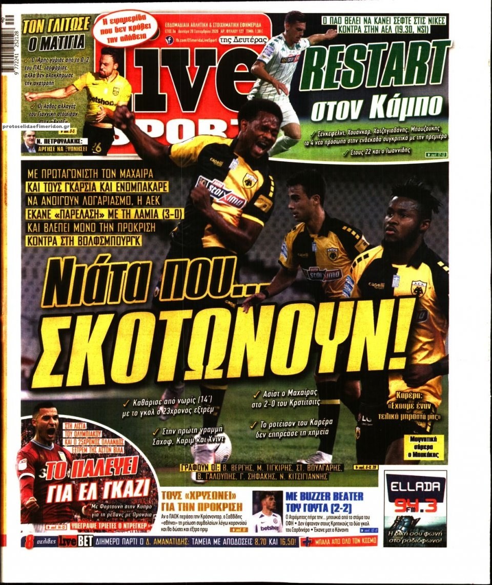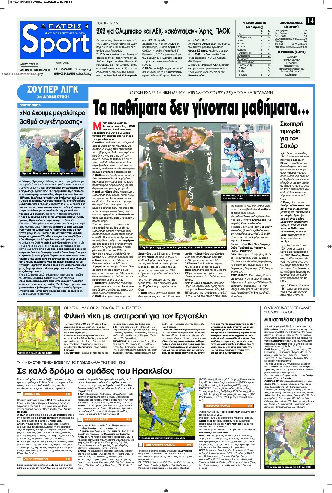 Οι αθλητικές εφημερίδες 28/9/2020 Σήφης Γαρυφαλάκης 06:27, Δευτέρα 28 Σεπτεμβρίου 2020 Media Διαβάστε τα πρωτοσέλιδα των αθλητικών εφημερίδων… ΑΘΛΗΤΙΚΕΣ ΕΦΗΜΕΡΙΔΕΣ ΕΦΗΜΕΡΙΔΕΣ ΠΡΩΤΟΣΕΛΙΔΑ ΠΡΩΤΟΣΕΛΙΔΑ ΕΦΗΜΕΡΙΔΩΝ Μοιράσου το: σχολίασε κι εσύ (0 σχόλια) Ακολουθήστε το enikos.gr στο Google News και μάθετε πρώτοι όλες τις ειδήσεις Δείτε όλες τις τελευταίες ειδήσεις από την Ελλάδα και τον Κόσμο στο enikos.gr Ειδήσεις Ροή Ειδήσεων 43 λεπτά πριν Φοροδιαφυγή: Ποιοι φορολογούμενοι κινδυνεύουν να πληρώσουν «τσουχτερά» πρόστιμα 5 λεπτά πριν Φοινικούντα: Παραδόθηκε 30χρονος στην Καλαμάτα για τη διπλή δολοφονία 21 λεπτά πριν Αγρότες: Ανυποχώρητοι στα μπλόκα – Στις Σέρρες σήμερα η κρίσιμη συνεδρίαση της Πανελλαδικής Επιτροπής 34 λεπτά πριν Τα επίσημα χρονοδιαγράμματα που η Τουρκία θα παραλάβει τα Eurofighter 9 ώρες πριν «Θύελλα» αντιδράσεων για τον Νίκο Παππά μετά την επίθεση στον δημοσιογράφο Νίκο Γιαννόπουλο – Η μήνυση, οι δηλώσεις και η έξοδος από την ευρωομάδα του ΣΥΡΙΖΑ 2 ώρες πριν Καούρα: Το μπαχαρικό που είναι «εξίσου αποτελεσματικό» με την ομεπραζόλη, σύμφωνα με ειδικούς 3 ώρες πριν Τα ζώδια σήμερα, Πέμπτη 18 Δεκεμβρίου: Λέοντες, η καρδιά σας θέλει να εκφραστεί 2 ώρες πριν Οπτική ψευδαίσθηση: Μόνο οι πιο έξυπνοι άνθρωποι θα βρουν 7 ξωτικά 15 δευτερόλεπτα 23 ώρες πριν 20 χρόνια τα Χριστούγεννα ξεκινούν στα Public με μεγάλη ποικιλία σε δώρα! 2 λεπτά πριν Την Κυριακή με τη Realnews: Δωροεπιταγή 10€ 5 λεπτά πριν Φοινικούντα: Παραδόθηκε 30χρονος στην Καλαμάτα για τη διπλή δολοφονία 7 λεπτά πριν Έδεσσα: Χωρίς τις αισθήσεις ανασύρθηκε ηλικιωμένη έπειτα από φωτιά σε μονοκατοικία 12 λεπτά πριν «Το σόι σου»: Backstage στα γυρίσματα για το εορταστικό επεισόδιο 19 λεπτά πριν e-ΕΦΚΑ και ΔΥΠΑ: Προτελευταία ημέρα πληρωμών σήμερα ENIKOS NETWORK Ουρική αρθρίτιδα: Μεγάλη μελέτη αποκαλύπτει τι μπορεί να προκαλεί τη νόσο Τι σημαίνει όταν ο σκύλος σας σάς φέρνει τυχαία αντικείμενα, σύμφωνα με εκπαιδεύτρια Οφειλές προς το Δημόσιο: «Φρένο» στα σενάρια για νέα ρύθμιση – Τι απαντά το υπουργείο Εθνικής Οικονομίας και Οικονομικών Φοροδιαφυγή: Ποιοι φορολογούμενοι κινδυνεύουν να πληρώσουν «τσουχτερά» πρόστιμα Χαρτογραφώντας το «σημείο χωρίς επιστροφή»: Για πρώτη φορά αποκαλύπτεται με λεπτομέρεια το ακανθώδες όριο της ατμόσφαιρας τ... Η Google καταργεί τη λειτουργία «dark web report» – Πώς θα μπορούν οι χρήστες να διαγράφουν τα δεδομένα τους περισσότερα 08:00 , Πέμπτη 18 Δεκεμβρίου 2025 Την Κυριακή με τη Realnews: Δωροεπιταγή 10€ Δωροεπιταγή αξίας 10€ για αγορές άνω των 60€ από τα πολυκαταστήματα FactoryOutlet H προσφορά ι... 07:50 , Πέμπτη 18 Δεκεμβρίου 2025 «Το σόι σου»: Backstage στα γυρίσματα για το εορταστικό επεισόδιο «Το σόι σου» φορά τα γιορτινά του για τα Χριστούγεννα και η Όλγα Λαφαζάνη, με την κάμερα του «... 07:36 , Πέμπτη 18 Δεκεμβρίου 2025 Οι αθλητικές μεταδόσεις 18/12/2025 – Πού θα δείτε τον αγώνα της ΑΕΚ με την Κραϊόβα για το Conference League Τα ματς ΑΕΚ – Ουνιβερσιτάτεα Κραϊόβα για το Conference League και Παναθηναϊκός – Χάποελ Τελ Αβ... 05:48 , Πέμπτη 18 Δεκεμβρίου 2025 Οι οικονομικές εφημερίδες 18/12/2025 Διαβάστε τα πρωτοσέλιδα από τις οικονομικές εφημερίδες, σήμερα 18/12/2025. ΤΕΛΕΥΤΑΙΕΣ ΕΙΔΗΣΕΙΣ 5 λεπτά πριν Φοινικούντα: Παραδόθηκε 30χρονος στην Καλαμάτα για τη... 7 λεπτά πριν Έδεσσα: Χωρίς τις αισθήσεις ανασύρθηκε ηλικιωμένη... 12 λεπτά πριν «Το σόι σου»: Backstage στα γυρίσματα για το εορταστικό... 19 λεπτά πριν e-ΕΦΚΑ και ΔΥΠΑ: Προτελευταία ημέρα πληρωμών σήμερα 21 λεπτά πριν Αγρότες: Ανυποχώρ
