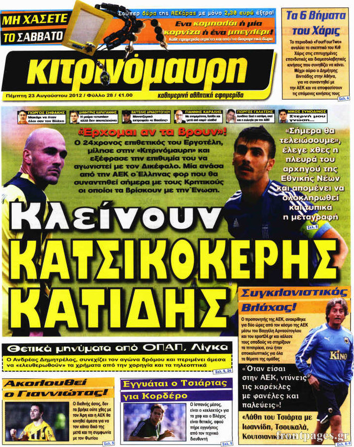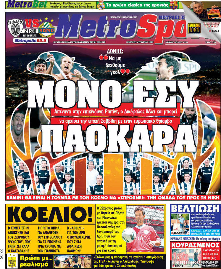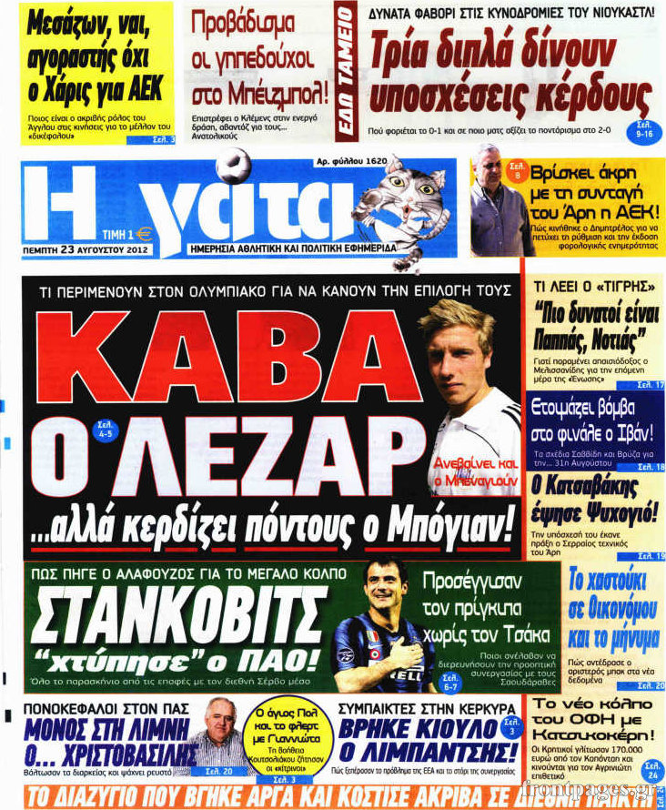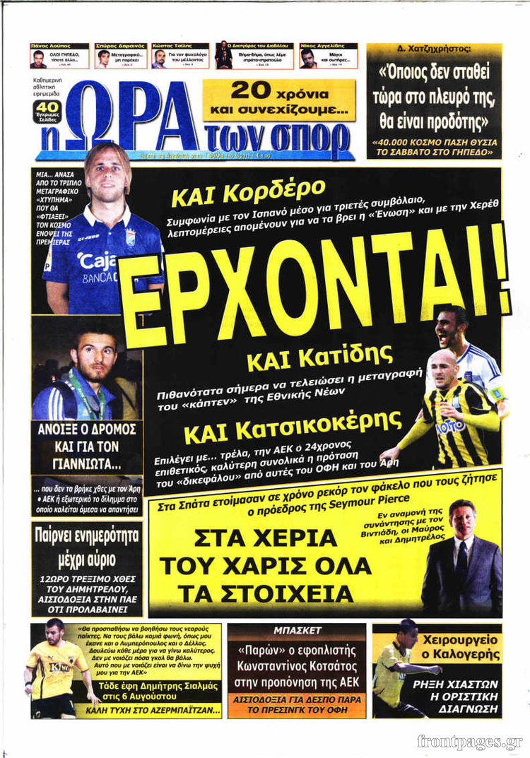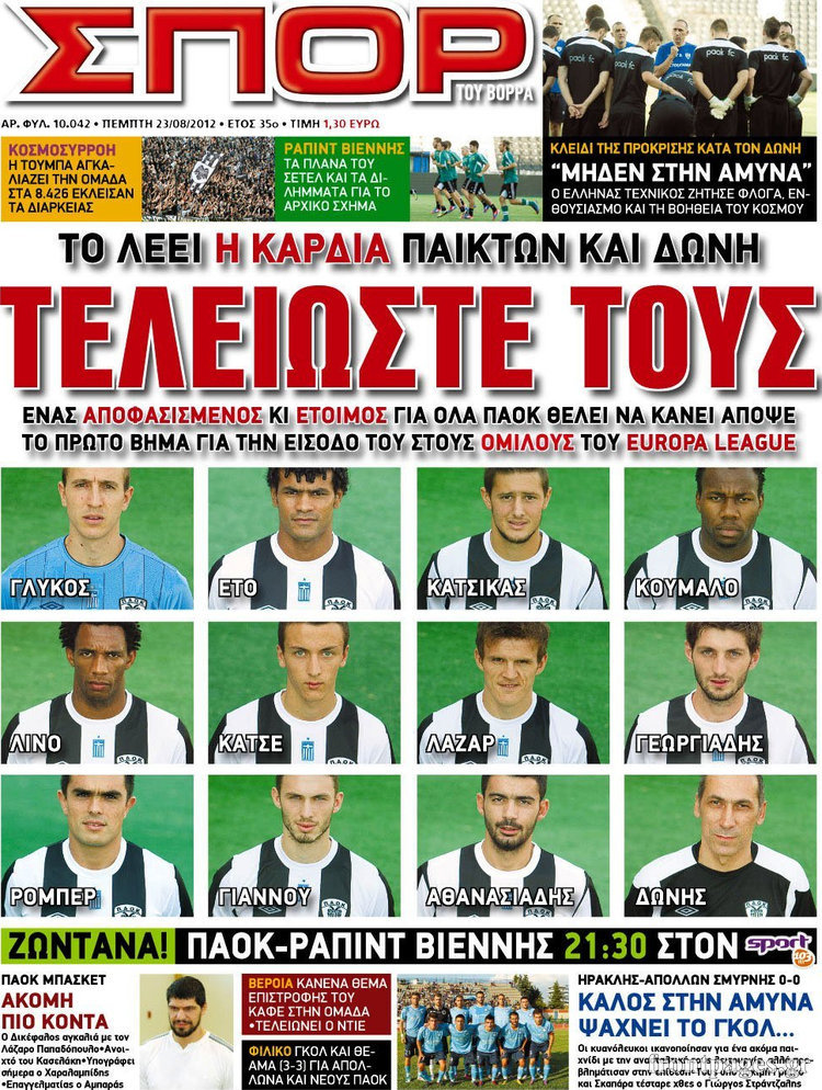 Τα πρωτοσέλιδα των σημερινών αθλητικών εφημερίδων.