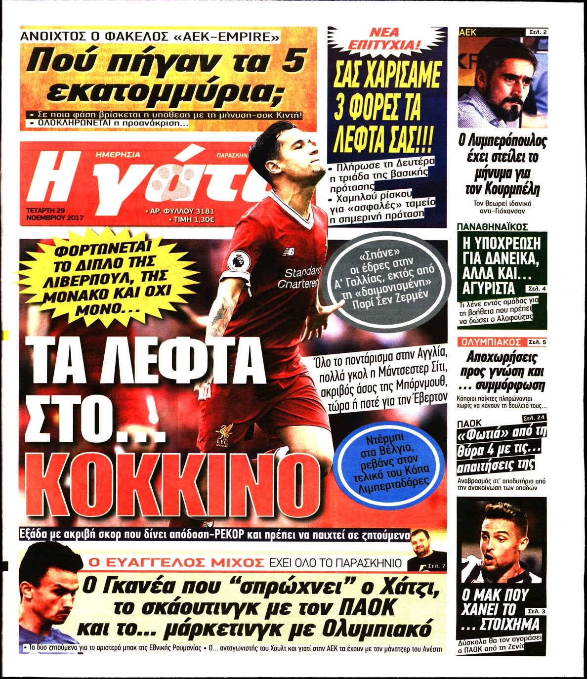 Οι αθλητικές εφημερίδες 29/11/2017 Enikos Newsroom 07:33, Τετάρτη 29 Νοεμβρίου 2017 Media Διαβάστε τα σημερινά πρωτοσέλιδα των αθλητικών εφημερίδων: ΑΘΛΗΤΙΚΕΣ ΕΦΗΜΕΡΙΔΕΣ ΠΡΩΤΟΣΕΛΙΔΑ Μοιράσου το: σχολίασε κι εσύ (0 σχόλια) Ακολουθήστε το enikos.gr στο Google News και μάθετε πρώτοι όλες τις ειδήσεις Δείτε όλες τις τελευταίες ειδήσεις από την Ελλάδα και τον Κόσμο στο enikos.gr Ειδήσεις Ροή Ειδήσεων 1 ώρα πριν Η Ουκρανία χτύπησε τάνκερ του σκιώδους στόλου της Ρωσίας στη Μεσόγειο – Έπλεε νότια της Κρήτης 3 ώρες πριν Πούτιν: Η Ουκρανία δεν είναι έτοιμη για ειρηνευτικές συνομιλίες – Ο ρωσικός στρατός προελαύνει σε όλα τα μέτωπα 12 λεπτά πριν Θεσσαλονίκη: Στη φυλακή ο 44χρονος που κατηγορείται ότι προσπάθησε να πνίξει με κορδόνι την 34χρονη σύντροφό του 30 λεπτά πριν Εξώδικο επιχειρηματία στον Γιώργο Μαζωνάκη – Τι απαντά στις καταγγελίες του τραγουδιστή 1 ώρα πριν Βουλή: Υπερψηφίστηκε το νομοσχέδιο για την ένταξη του ΟΠΕΚΕΠΕ στην ΑΑΔΕ 5 ώρες πριν Αλλαγή σελίδας για 3 ζώδια – «Μία δύσκολη περίοδος φτάνει στο τέλος της» 2 ημέρες πριν 20 χρόνια τα Χριστούγεννα ξεκινούν στα Public με μεγάλη ποικιλία σε δώρα! 4 ώρες πριν Γεμάτος νεροχύτης; 5 σοβαρές ευθύνες που «φοβίζουν» όσους αφήνουν άπλυτα πιάτα 3 ώρες πριν Ειδικός μοιράζεται 6 κόλπα για να διατηρείστε σε φόρμα με πάνω από 40 ώρες εργασίας την εβδομάδα: «Προπονηθείτε πριν από τη δουλειά, όχι μετά» 6 λεπτά πριν ΝΒΑ: Η πρώτη… πεντάδα του Γιάννη Αντετοκούνμπο 8 λεπτά πριν Η Σάντυ Χατζηϊωάννου στο Game Time: Το παιδικό όνειρο με τον Αντώνη Νικοπολίδη και το ντουέτο με την Ευγενία Σαμαρά 12 λεπτά πριν Θεσσαλονίκη: Στη φυλακή ο 44χρονος που κατηγορείται ότι προσπάθησε να πνίξει με κορδόνι την 34χρονη σύντροφό του 16 λεπτά πριν Αυτό το έξυπνο μαθηματικό κόλπο θα μπορούσε να αλλάξει τον τρόπο με τον οποίο οι επιστήμονες μελετούν τους σεισμούς 19 λεπτά πριν Αυτιάς σε Επίτροπο Ενέργειας: «Ρίξτε τις τιμές του ρεύματος για να πέσει η ακρίβεια» ENIKOS NETWORK Τάξη στις ιατρικές διαφημίσεις για την προστασία των πολιτών βάζει ο ΙΣΑ Μακροζωία: Τι παίζει πιο σημαντικό ρόλο ακόμα και από την διατροφή και την άσκηση, σύμφωνα με μελέτη ΕΥΔΑΠ: Οδηγός για τις αλλαγές στα τιμολόγια του νερού – 17 ερωτήσεις και απαντήσεις e-ΕΦΚΑ: Νέα παράταση της προθεσμίας υποβολής για τις ΑΠΔ – Ποιες επιχειρήσεις αφορά Χαρτογραφώντας το «σημείο χωρίς επιστροφή»: Για πρώτη φορά αποκαλύπτεται με λεπτομέρεια το ακανθώδες όριο της ατμόσφαιρας τ... Η Google καταργεί τη λειτουργία «dark web report» – Πώς θα μπορούν οι χρήστες να διαγράφουν τα δεδομένα τους περισσότερα 08:00 , Παρασκευή 19 Δεκεμβρίου 2025 Την Κυριακή με τη Realnews: Δωροεπιταγή 10€ Δωροεπιταγή αξίας 10€ για αγορές άνω των 60€ από τα πολυκαταστήματα FactoryOutlet H προσφορά ι... 05:48 , Παρασκευή 19 Δεκεμβρίου 2025 Οι οικονομικές εφημερίδες 19/12/2025 Διαβάστε τα πρωτοσέλιδα από τις οικονομικές εφημερίδες, σήμερα 19/12/2025. 05:43 , Παρασκευή 19 Δεκεμβρίου 2025 Οι αθλητικές εφημερίδες 19/12/2025 Διαβάστε τα πρωτοσέλιδα από τις αθλητικές εφημερίδες, σήμερα 19/12/2025. 05:38 , Παρασκευή 19 Δεκεμβρίου 2025 Οι πολιτικές εφημερίδες 19/12/2025 Διαβάστε τα πρωτοσέλιδα από τις πολιτικές εφημερίδες, σήμερα 19/12/2025. ΤΕΛΕΥΤΑΙΕΣ ΕΙΔΗΣΕΙΣ 6 λεπτά πριν ΝΒΑ: Η πρώτη… πεντάδα του Γιάννη Αντετοκούνμπο 8 λεπτά πριν Η Σάντυ Χατζηϊωάννου στο Game Time: Το παιδικό όνειρο με... 12 λεπτά πριν Θεσσαλονίκη: Στη φυλακή ο 44χρονος που κατηγορείται... 16 λεπτά πριν Αυτό το έξυπνο μαθηματικό κόλπο θα μπορούσε να... 19 λεπτά πριν Αυτιάς σε Επί