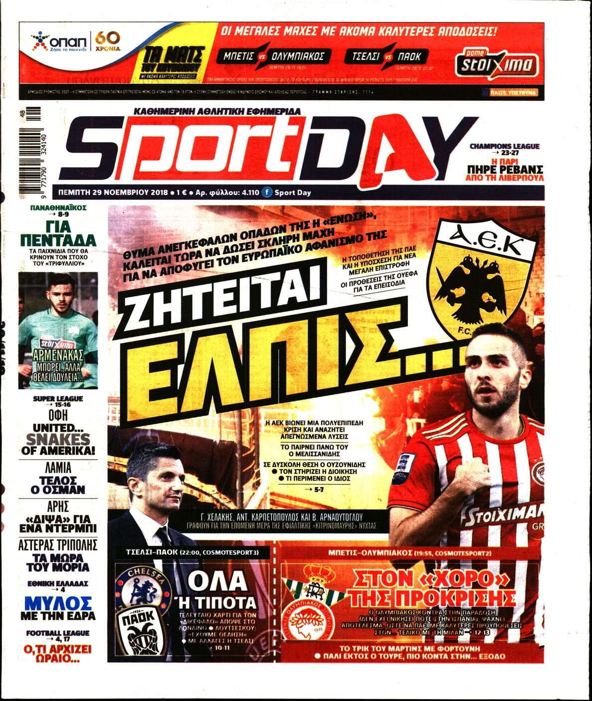 Οι αθλητικές εφημερίδες 29/11/2018 Enikos Newsroom 06:31, Πέμπτη 29 Νοεμβρίου 2018 Media Διαβάστε τα πρωτοσέλιδα: ΑΘΛΗΤΙΚΕΣ ΕΦΗΜΕΡΙΔΕΣ ΠΡΩΤΟΣΕΛΙΔΑ Μοιράσου το: σχολίασε κι εσύ (0 σχόλια) Ακολουθήστε το enikos.gr στο Google News και μάθετε πρώτοι όλες τις ειδήσεις Δείτε όλες τις τελευταίες ειδήσεις από την Ελλάδα και τον Κόσμο στο enikos.gr Ειδήσεις Ροή Ειδήσεων 9 ώρες πριν Χριστούγεννα στα μπλόκα: Επιμένουν στις κινητοποιήσεις τους οι αγρότες – Ανοίγουν τα διόδια το Σαββατοκύριακο 1 ώρα πριν Σαρωτικοί οι έλεγχοι στους δρόμους ενόψει εορτών – Μπλόκα της τροχαίας σε κεντρικές αρτηρίες της Αττικής 8 ώρες πριν Πούτιν: Τα μηνύματα σε Ευρώπη και ΝΑΤΟ από το μαραθώνιο «σόου» του – Η απαίτηση για «σεβασμό» και η ειρήνη «με τους όρους» της Μόσχας 7 ώρες πριν ΗΠΑ: Η κυβέρνηση του Ντόναλντ Τραμπ άρχισε να δημοσιοποιεί τα αρχεία Έπσταϊν 8 ώρες πριν Άνω Λιόσια: Πυροβολισμοί σε επιχείρηση με χαλιά – Εντοπίστηκαν 10 κάλυκες 1 ώρα πριν Αυγά: Πόσα μπορείτε να τρώτε την ημέρα με ασφάλεια για μέγιστη πρόσληψη πρωτεΐνης 2 ώρες πριν Τα ζώδια σήμερα, Σάββατο 20 Δεκεμβρίου: Παρθένοι, το σύμπαν σας δίνει το κλειδί 8 ώρες πριν Ανακαλύφθηκαν αρχαία χρυσά νομίσματα 2.200 ετών που απεικονίζουν τον θεό Απόλλωνα – Η άγνωστη σύνδεση με τον Φίλιππο Β΄ της Μακεδονίας 1 ώρα πριν Οπτική ψευδαίσθηση: Μόνο αν είσαι ο Σέρλοκ Χολμς θα βρεις τον αριθμό «87» σε 7 δευτερόλεπτα 4 λεπτά πριν Οι αθλητικές μεταδόσεις 20/12/2025 14 λεπτά πριν Εορτολόγιο: Ποιοι γιορτάζουν σήμερα 20 Δεκεμβρίου 21 λεπτά πριν Συρία: Μπαράζ αμερικανικών επιδρομών εναντίον του ISIS – «Πλήττουμε δυνατά οχυρά του ΙΚ» λέει ο Ντόναλντ Τραμπ 29 λεπτά πριν Αναβολή συμφωνίας ΕΕ-Mercosur: Ο χρόνος «δεν είναι απεριόριστος» προειδοποιεί η Παραγουάη 44 λεπτά πριν Κίριλ Ντμίτριεφ: Στις ΗΠΑ ο απεσταλμένος της Ρωσίας για συνομιλίες με τους ομολόγους του, Γουίτκοφ και Κούσνερ ENIKOS NETWORK Πρέπει να αποδέχεστε ή να απορρίπτετε όλα τα cookies; Ένας ειδικός εξηγεί Η αγαπημένη λιχουδιά των πόνι που μπορεί να ενισχύσει όραση, εγκέφαλο και ανοσοποιητικό Αναστολή μέτρων αναγκαστικής εκτέλεσης για κτηνοτρόφους που πλήττονται από την ευλογιά των αιγοπροβάτων Πλήρης επάρκεια προϊόντων στις λαϊκές της Αττικής, παρά τις αγροτικές κινητοποιήσεις – Τι απαντούν οι πωλητές Χαρτογραφώντας το «σημείο χωρίς επιστροφή»: Για πρώτη φορά αποκαλύπτεται με λεπτομέρεια το ακανθώδες όριο της ατμόσφαιρας τ... Η Google καταργεί τη λειτουργία «dark web report» – Πώς θα μπορούν οι χρήστες να διαγράφουν τα δεδομένα τους περισσότερα 05:48 , Σάββατο 20 Δεκεμβρίου 2025 Οι οικονομικές εφημερίδες 20/12/2025 Διαβάστε τα πρωτοσέλιδα από τις οικονομικές εφημερίδες, σήμερα 20/12/2025. 05:43 , Σάββατο 20 Δεκεμβρίου 2025 Οι αθλητικές εφημερίδες 20/12/2025 Διαβάστε τα πρωτοσέλιδα από τις αθλητικές εφημερίδες, σήμερα 20/12/2025. 05:38 , Σάββατο 20 Δεκεμβρίου 2025 Οι πολιτικές εφημερίδες 20/12/2025 Διαβάστε τα πρωτοσέλιδα από τις πολιτικές εφημερίδες, σήμερα 20/12/2025. 04:20 , Σάββατο 20 Δεκεμβρίου 2025 Αγγελική Νικολούλη: Τα συλλυπητήρια για την απώλεια της Ειρήνης Μαρινάκη Τα συλληπητήρια στον πρόεδρο του Mega, τον Βαγγέλη Μαρινάκη, για την απώλεια της μητέρας του Ε... ΤΕΛΕΥΤΑΙΕΣ ΕΙΔΗΣΕΙΣ 4 λεπτά πριν Οι αθλητικές μεταδόσεις 20/12/2025 14 λεπτά πριν Εορτολόγιο: Ποιοι γιορτάζουν σήμερα 20 Δεκεμβρίου 21 λεπτά πριν Συρία: Μπαράζ αμερικανικών επιδρομών εναντίον του ISIS... 29 λεπτά πριν Αναβολή συμφωνίας ΕΕ-Mercosur: Ο χρόνος «δεν είναι... 44 λεπτά πριν Κίριλ Ντμίτριεφ: Στις ΗΠΑ ο απεσταλμένος της Ρω