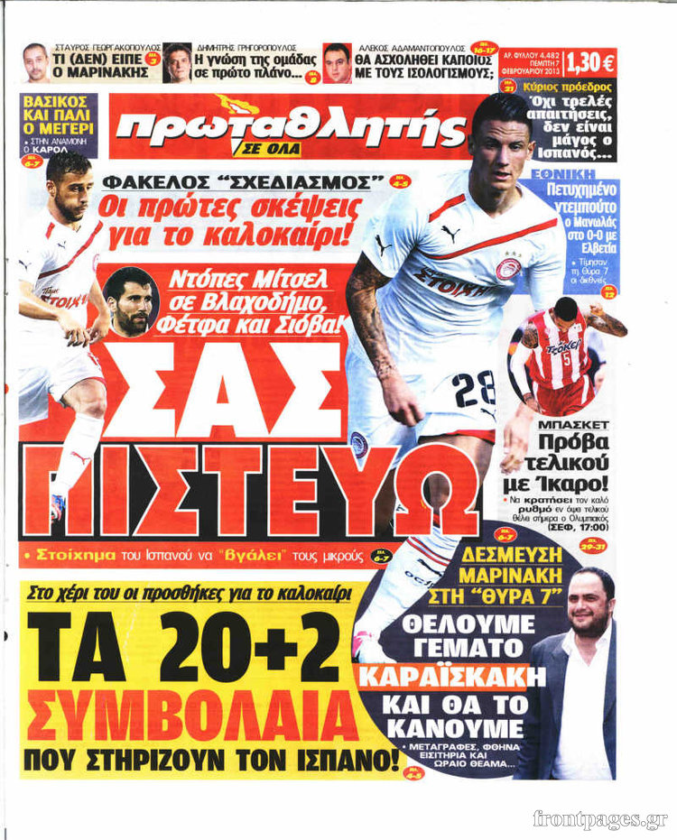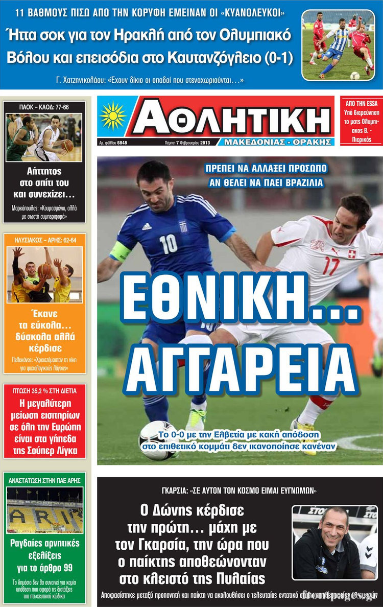 Οι αθλητικές εφημερίδες Enikos Newsroom 09:08, Πέμπτη 07 Φεβρουαρίου 2013 Media Οι αθλητικές εφημερίδες ΑΘΛΗΤΙΚΕΣ ΕΦΗΜΕΡΙΔΕΣ ΕΦΗΜΕΡΙΔΕΣ ΠΡΩΤΟΣΕΛΙΔΑ Μοιράσου το: σχολίασε κι εσύ (0 σχόλια) Ακολουθήστε το enikos.gr στο Google News και μάθετε πρώτοι όλες τις ειδήσεις Δείτε όλες τις τελευταίες ειδήσεις από την Ελλάδα και τον Κόσμο στο enikos.gr Ειδήσεις Ροή Ειδήσεων 3 ώρες πριν Ακίλα Σάλεχ: «Άκυρο» το τουρκολιβυκό μνημόνιο λέει ο πρόεδρος της λιβυκής Βουλής – Ανοίγει ο διάλογος με Ελλάδα, Αίγυπτο και Τουρκία 7 ώρες πριν Αγρότες: Την Τρίτη η απόφαση για διάλογο ή κλιμάκωση των κινητοποιήσεών τους – Πώς χαρακτηρίζουν τις ανακοινώσεις Τσιάρα και οι επόμενες κινήσεις 7 ώρες πριν Τραμπ για Ουκρανία: «Είμαστε πιο κοντά σε συμφωνία από ποτέ» – «Πολυεθνική δύναμη» προτείνουν οι Ευρωπαίοι 7 ώρες πριν Κυψέλη: Η 16χρονη που μαχαίρωσε την 14χρονη είχε συλληφθεί 3 φορές στο παρελθόν – Έβριζε καθηγητές, έβαζε φωτιές σε κάδους και εκβίαζε συμμαθητές της 6 ώρες πριν Τρομοκρατική επίθεση στο Σίδνεϊ: Θλίψη για τα 15 θύματα – Οργή στην εβραϊκή κοινότητα που προειδοποιούσε επί δύο χρόνια 7 ώρες πριν Επιστήμονες ίσως έλυσαν το μυστήριο γύρω από τα Χόμπιτ – Νέα έρευνα αποκαλύπτει πώς εξαφανίστηκαν 8 ώρες πριν Ύπνος: Η αρχαία μορφή άσκησης που αποδεικνύεται αποτελεσματική στην αντιμετώπιση της αϋπνίας, σύμφωνα με μελέτη 9 ώρες πριν Αριθμολογία: Ο τυχερός σας αριθμός, ανάλογα με τον μήνα γέννησής σας 10 ώρες πριν Πώς να μην μαραίνονται γρήγορα τα κομμένα λουλούδια: Το λάθος στην τοποθέτηση του βάζου που πρέπει να αποφεύγετε 5 λεπτά πριν Οι αθλητικές εφημερίδες 16/12/2025 10 λεπτά πριν Οι πολιτικές εφημερίδες 16/12/2025 17 λεπτά πριν Τα ζώδια σήμερα, Τρίτη 16 Δεκεμβρίου: Ιχθύες, δεν χρειάζεται να έχετε όλες τις απαντήσεις 25 λεπτά πριν Εφημερεύοντα φαρμακεία σε Αθήνα και Θεσσαλονίκη (16/12) 32 λεπτά πριν Οκτώ νεκροί σε πλήγματα των ΗΠΑ κατά τριών σκαφών που φέρεται να μετέφεραν ναρκωτικά στον Ανατολικό Ειρηνικό ENIKOS NETWORK Πότε το χρόνιο ροχαλητό να αποτελέσει ένδειξη κινδύνου για την καρδιά; Τι λένε οι ειδικοί Μάριος Θεμιστοκλέους: Το ΕΣΥ ενισχύεται, εκσυγχρονίζεται, αλλάζει ΕΒΕΠ για αγροτικές κινητοποιήσεις: Κάθε επιπλέον εβδομάδα προσθέτει περίπου 200 εκατ. ευρώ ζημιά Τι προβλέπει το νομοσχέδιο του υπουργείου Εθνικής Άμυνας – Oι αλλαγές στους μισθούς Σύγχρονος Νοστράδαμος: Προειδοποιεί για «μεγάλο γεγονός» τους επόμενους μήνες που θα συγκλονίσει τη Βρετανία και τον κόσμο Τεστ παρατηρητικότητας: Μπορείτε να βρείτε τις 3 διαφορές στις εικόνες με έναν πιγκουίνο σε 14 δευτερόλεπτα περισσότερα 05:43 , Τρίτη 16 Δεκεμβρίου 2025 Οι αθλητικές εφημερίδες 16/12/2025 Διαβάστε τα πρωτοσέλιδα από τις αθλητικές εφημερίδες, σήμερα 16/12/2025. 05:38 , Τρίτη 16 Δεκεμβρίου 2025 Οι πολιτικές εφημερίδες 16/12/2025 Διαβάστε τα πρωτοσέλιδα από τις πολιτικές εφημερίδες, σήμερα 16/12/2025. 21:35 , Δευτέρα 15 Δεκεμβρίου 2025 Το Σπίτι Δίπλα Στο Ποτάμι: Η Ιουλία και ο Φωκάς μετακομίζουν στη Ρόδο – Δύο νέοι χαρακτήρες μπαίνουν στη σειρά Δύο νέοι, κομβικοί χαρακτήρες κάνουν την εμφάνισή τους αυτή την εβδομάδα στην αγαπημένη σειρά ... 19:46 , Δευτέρα 15 Δεκεμβρίου 2025 Άγιος έρωτας: Η Χριστίνα λέει την αλήθεια στον Αντρέα Ο Βασίλης δέχεται επίθεση από τους συμμαθητές του, η Αναστασία είναι συντετριμμένη με την απώλ... ΤΕΛΕΥΤΑΙΕΣ ΕΙΔΗΣΕΙΣ 5 λεπτά πριν Οι αθλητικές εφημερίδες 16/12/2025 10 λεπτά πριν Οι πολιτικές εφημερίδες 16/12/2025 17 λεπτά πριν Τα ζώδια σήμερα, Τρίτη 16 Δεκεμβρίου: Ιχθύες, δε