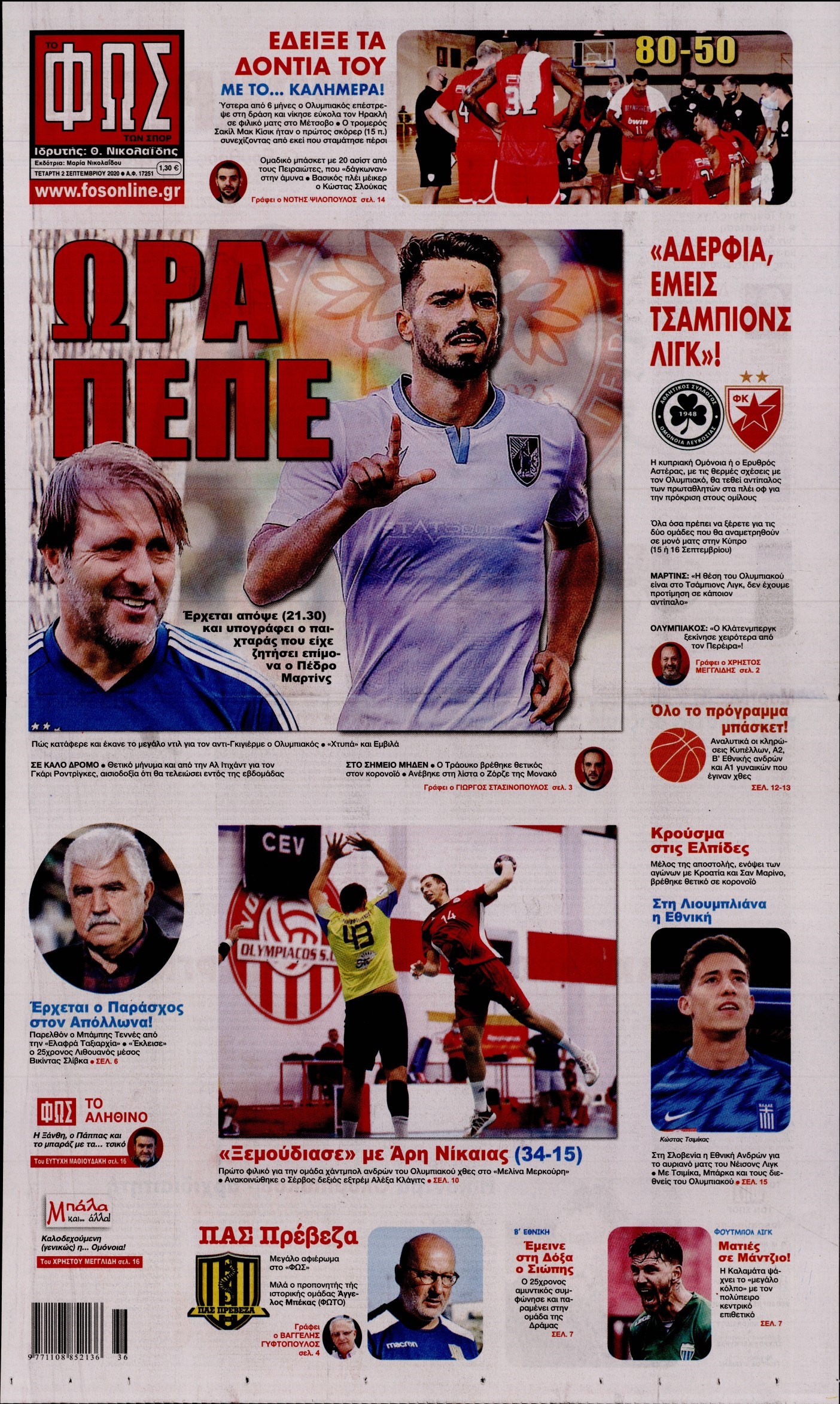 Οι αθλητικές εφημερίδες 2/9/2020 Διονύσης Νίκκας 06:50, Τετάρτη 02 Σεπτεμβρίου 2020 Media Διαβάστε τα πρωτοσέλιδα των αθλητικών εφημερίδων… ΑΘΛΗΤΙΚΕΣ ΕΦΗΜΕΡΙΔΕΣ Μοιράσου το: σχολίασε κι εσύ (0 σχόλια) Ακολουθήστε το enikos.gr στο Google News και μάθετε πρώτοι όλες τις ειδήσεις Δείτε όλες τις τελευταίες ειδήσεις από την Ελλάδα και τον Κόσμο στο enikos.gr Ειδήσεις Ροή Ειδήσεων 4 ώρες πριν Μεσόγειος: Η διαδρομή του ρωσικού τάνκερ «Qendil» και η στοχευμένη επίθεση της Ουκρανίας με drone – Ο Πούτιν προειδοποίησε για αντίποινα 43 λεπτά πριν Αγρότες: Έκλεισαν για μία ώρα την παρακαμπτήρια της Ιόνιας Οδού στη θέση Χαλίκι 2 ώρες πριν Εμπλοκή και αερομαχίες με οπλισμένα τουρκικά F-16 στο Αιγαίο 2 ώρες πριν Πούτιν: «Ναι, είμαι ερωτευμένος» – Βίντεο από τη σπάνια προσωπική παραδοχή του 47 λεπτά πριν Ανδρέας Λυκουρέντζος: Υπέβαλε την παραίτησή του ο πρόεδρος του ΕΛΓΑ, αλλά δεν έγινε δεκτή – Όλο το παρασκήνιο 57 λεπτά πριν Αριθμολογία: Οι άνθρωποι που έχουν γεννηθεί αυτές τις 4 ημερομηνίες, συχνά παρεξηγούνται – «Η καλοσύνη τους κρύβει τεράστια δύναμη» 3 ώρες πριν Μήπως έχετε χάσει τον εαυτό σας στη σχέση σας; 7 «αθόρυβες» υποχωρήσεις που μάλλον κάνατε, χωρίς να το συνειδητοποιήσετε 2 ώρες πριν Ξεχάστε το καθάρισμα το Σαββατοκύριακο: Ο «κανόνας των 20 λεπτών» που θα σας λύσει τα χέρια 5 ώρες πριν Κουίζ για την παλιά Αθήνα: Αναγνωρίζετε την περιοχή; Έχετε περάσει 100% από εκεί 3 λεπτά πριν ΕΕ: «Κάποια στιγμή θα χρησιμοποιήσουμε τα ρωσικά περιουσιακά στοιχεία» δήλωσε ο πρόεδρος του ΕΛΚ 6 λεπτά πριν Conference League: Καλύτερη επίθεση η ΑΕΚ στη διοργάνωση και 2η σε προσπάθειες στην εστία – Ξεχωρίζουν Πινέδα, Ελίασον και Ρότα 8 λεπτά πριν Έγκυος η Άννα Κορακάκη: «Η οικογένειά μας μεγαλώνει…» – Η αποκάλυψη για το φύλο του μωρού 15 λεπτά πριν Τραγωδία στο Βελεστίνο: Πέθανε ο αντιδήμαρχος Γιάννης Παπαϊωάννου 19 λεπτά πριν Ολυμπιακός – Βιλερμπάν: Μάτωσε στο πρόσωπο ο Παπανικολάου έπειτα από αγκωνιά του Βοτιέ – ΦΩΤΟ ENIKOS NETWORK Το ΕΚΑΒ τιμήθηκε από την Ακαδημία Αθηνών για τα 40 χρόνια προσφοράς του Έχετε πραγματικά μεγάλη καρδιά; 10 χαρακτηριστικά όσων έχουν καλοσύνη Έρχονται νέες προσλήψεις σε Δήμο – Όλες οι λεπτομέρειες Επίδομα παιδιού: Πότε ανοίγει ξανά η πλατφόρμα για τις αιτήσεις Χαρτογραφώντας το «σημείο χωρίς επιστροφή»: Για πρώτη φορά αποκαλύπτεται με λεπτομέρεια το ακανθώδες όριο της ατμόσφαιρας τ... Η Google καταργεί τη λειτουργία «dark web report» – Πώς θα μπορούν οι χρήστες να διαγράφουν τα δεδομένα τους περισσότερα 20:37 , Παρασκευή 19 Δεκεμβρίου 2025 Don’t Forget The Lyrics: Η Έλλη Κοκκίνου υποδέχεται 4 παίκτες που θα κάνουν τα πάντα για να μη χάσουν ούτε… μισή λέξη από τους στίχους Το «Don’t Forget The Lyrics» επιστρέφει απόψε, Παρασκευή 19 Δεκεμβρίου, στις 21:00 με νέο επει... 19:31 , Παρασκευή 19 Δεκεμβρίου 2025 GNTM: Απόψε ο μεγάλος τελικός για τους 4 φιναλίστ Έπειτα από μήνες γεμάτους μόδα, δημιουργία και έντονες αναμετρήσεις, το GNTM 2025 κορυφώνεται,... 18:11 , Παρασκευή 19 Δεκεμβρίου 2025 Το σόι σου: Ο Άρης έρχεται στην Ελλάδα για τις γιορτές των Χριστουγέννων – Τι θα δούμε στο αποψινό εορταστικό επεισόδιο Ένα απολαυστικό, εορταστικό επεισόδιο της σειράς “Το σόι σου”, γεμάτο ευτράπελα αλ... 15:15 , Παρασκευή 19 Δεκεμβρίου 2025 Την Κυριακή με τη Realnews: Ό,τι και αν αγοράσεις, σκανάρεις και κερδίζεις! Την Κυριακή με τη Realnews: Ό,τι και αν αγοράσεις, σκανάρεις και κερδίζεις! Με το PADU app, το... ΤΕΛΕΥΤΑΙΕΣ ΕΙΔΗΣΕΙΣ 3 λεπτά πριν ΕΕ: «Κάποια στιγμή θα χρησιμοποιήσουμε τα