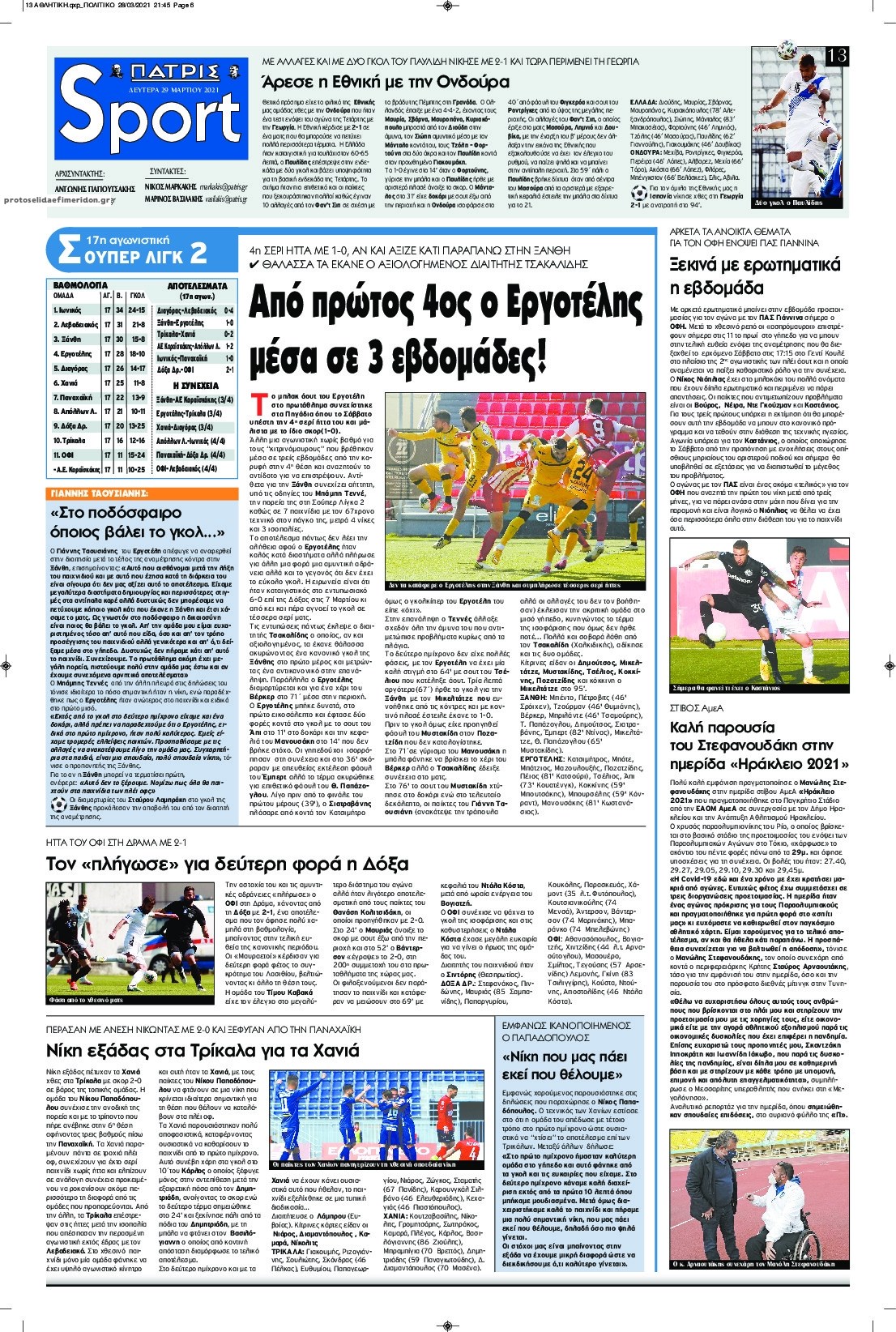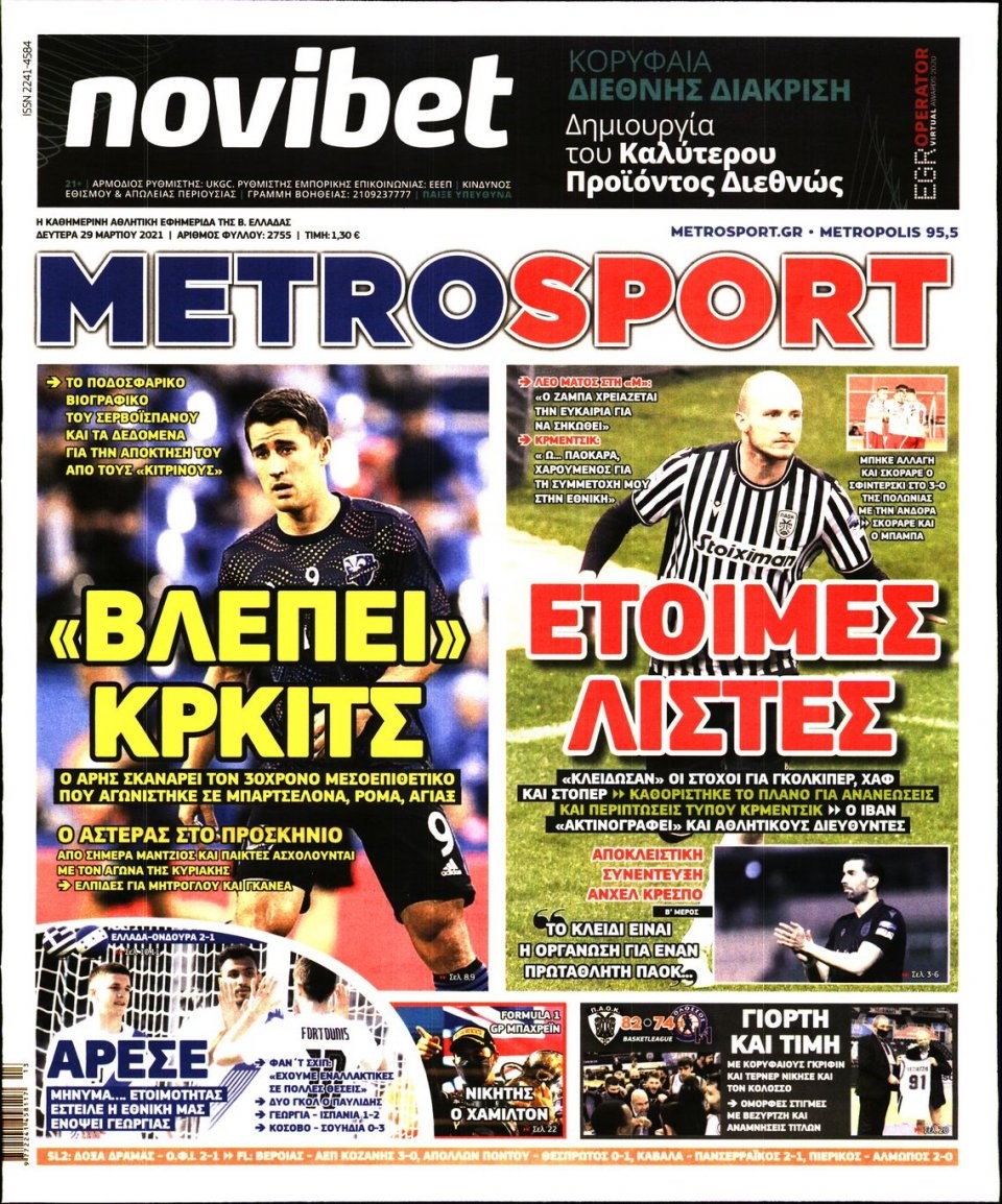 Οι αθλητικές εφημερίδες 29/3/2021 Σήφης Γαρυφαλάκης 06:22, Δευτέρα 29 Μαρτίου 2021 Media Διαβάστε τα πρωτοσέλιδα των αθλητικών εφημερίδων… ΑΘΛΗΤΙΚΕΣ ΕΦΗΜΕΡΙΔΕΣ ΕΦΗΜΕΡΙΔΕΣ ΠΡΩΤΟΣΕΛΙΔΑ ΠΡΩΤΟΣΕΛΙΔΑ ΕΦΗΜΕΡΙΔΩΝ Μοιράσου το: σχολίασε κι εσύ (0 σχόλια) Ακολουθήστε το enikos.gr στο Google News και μάθετε πρώτοι όλες τις ειδήσεις Δείτε όλες τις τελευταίες ειδήσεις από την Ελλάδα και τον Κόσμο στο enikos.gr Ειδήσεις Ροή Ειδήσεων 1 ώρα πριν Πούτιν: «Ανοησίες» και «υστερίες» οι ισχυρισμοί της Ευρώπης για πιθανή σύγκρουση με τη Ρωσία – «Κάνουν πλύση εγκεφάλου» 5 ώρες πριν Έρευνα MRB: Η πρόθεση ψήφου και τα σημαντικότερα προβλήματα – Οι «λέξεις» που εκφράζουν τους πολίτες 2 ώρες πριν Αμοργός: «Θα προσπαθήσω να το κάνω κάθε μέρα» – Ποιος είναι ο αγρότης που έστησε μόνος του το πρώτο μπλόκο στο νησί 17 λεπτά πριν Τραγωδία στην Αλεξανδρούπολη: Παιδάκι 3 ετών μεταφέρθηκε νεκρό από τη μητέρα του στο νοσοκομείο 58 λεπτά πριν Συνάντηση Μητσοτάκη με την Κ.Ο. της ΝΔ: Οι αφίξεις των βουλευτών, τα γλυκά και τα «πηγαδάκια» 5 ώρες πριν Τα 4 ζώδια που ξαναβρίσκουν τον εαυτό τους – «Μπαίνετε επιτέλους στην ουσία των πραγμάτων» 6 ώρες πριν 20 χρόνια τα Χριστούγεννα ξεκινούν στα Public με μεγάλη ποικιλία σε δώρα! 4 ώρες πριν «Δεν είχα κλάψει από τότε που διαγνώστηκα με καρκίνο, ώσπου ένα τηλεφώνημα με έκανε να λυγίσω» – Η συγκλονιστική εξομολόγηση ενός άνδρα 3 ώρες πριν Τα 7 σπάνια χαρακτηριστικά που κάνουν κάποιους ανθρώπους ακαταμάχητους 5 λεπτά πριν Παραμένουν στα μπλόκα οι αγρότες της Μεσσηνίας – Κλειστή η εθνική οδός Καλαμάτας- Αθήνας 11 λεπτά πριν Φον ντερ Λάιεν: Επιστολή για το μεταναστευτικό ενόψει της Συνόδου Κορυφής – «Υπήρξε πρόοδος, αλλά έχουμε σημαντική δουλειά μπροστά μας» 16 λεπτά πριν Χριστουγεννιάτικη γιορτή με τον Σάκη Ρούβα στον ξενώνα «Μαριάννα Β. Βαρδινογιάννη-ΕΛΠΙΔΑ» 17 λεπτά πριν Τραγωδία στην Αλεξανδρούπολη: Παιδάκι 3 ετών μεταφέρθηκε νεκρό από τη μητέρα του στο νοσοκομείο 18 λεπτά πριν Βουλή: Άρση της ασυλίας της Ζωής Κωνσταντοπούλου για μήνυση συκοφαντικής δυσφήμισης ENIKOS NETWORK 5 πράγματα που αποφεύγει γαστρεντερολόγος για να μειώσει τον κίνδυνο καρκίνου του εντέρου Ανησυχητική αύξηση της υπέρτασης στα παιδιά – Πώς θα τα προστατέψουμε; ΕΛΕΤΑΕΝ: Πόσα χρήματα θα δοθούν σε δήμους και νοικοκυριά από τις ΑΠΕ «IRIS Παντού»: Στην κορυφή της Ευρώπης η Ελλάδα με 120 εκατ. ευρώ συναλλαγές το 2025 – Η σύγκριση με τις άλλες χώρες της Ευ... Σύγχρονος Νοστράδαμος: Προειδοποιεί για «μεγάλο γεγονός» τους επόμενους μήνες που θα συγκλονίσει τη Βρετανία και τον κόσμο Τεστ παρατηρητικότητας: Μπορείτε να βρείτε τις 3 διαφορές στις εικόνες με έναν πιγκουίνο σε 14 δευτερόλεπτα περισσότερα 12:35 , Τετάρτη 17 Δεκεμβρίου 2025 Μίρκα Παπακωνσταντίνου: «Δεν ήμουν αισιόδοξη για τα νούμερα – Είμαι ρεαλίστρια» Στα γυρίσματα του εορταστικού επεισοδίου της αγαπημένης σειράς “Το Σόι Σου”, βρέθηκε η κάμερα ... 12:12 , Τετάρτη 17 Δεκεμβρίου 2025 Ακούστε την εκπομπή του Νίκου Χατζηνικολάου 17/12/2025 Ακούστε την εκπομπή του Νίκου Χατζηνικολάου στον ραδιοφωνικό σταθμό RealFm 97,8, την Τετάρτη 1... 11:35 , Τετάρτη 17 Δεκεμβρίου 2025 Home Alone: Το σπίτι της ταινίας θα ανακαινιστεί – Επιστροφή στην αισθητική της δεκαετίας του ’90 Οι νέοι ιδιοκτήτες του πραγματικού σπιτιού που παρουσιάζεται στην κλασική ταινία του 1990 «Hom... 11:25 , Τετάρτη 17 Δεκεμβρίου 2025 Grand Hotel: Απόψε το τελευταίο επεισόδιο της χρονιάς – Όλα τα μυστικά μένουν εδώ Το τελευταίο επεισόδιο τ