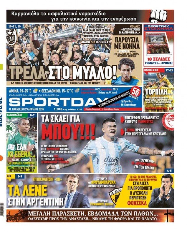 Οι αθλητικές εφημερίδες 29/4/2016 Enikos Newsroom 05:22, Παρασκευή 29 Απριλίου 2016 Media Διαβάστε τα σημερινά πρωτοσέλιδα των αθλητικών εφημερίδων: ΑΘΛΗΤΙΚΕΣ ΕΦΗΜΕΡΙΔΕΣ ΠΡΩΤΟΣΕΛΙΔΑ Μοιράσου το: σχολίασε κι εσύ (0 σχόλια) Ακολουθήστε το enikos.gr στο Google News και μάθετε πρώτοι όλες τις ειδήσεις Δείτε όλες τις τελευταίες ειδήσεις από την Ελλάδα και τον Κόσμο στο enikos.gr Ειδήσεις Ροή Ειδήσεων 1 ώρα πριν Αυξάνουν την πίεση προς την κυβέρνηση οι αγρότες: Κλείνουν παρακαμπτήριους και ανοίγουν διόδια – Τι θα γίνει τις γιορτές 8 λεπτά πριν ΟΠΕΚΕΠΕ: Προφυλακιστέος ο φερόμενος αρχηγός και ο λογιστής της εγκληματικής οργάνωσης 1 ώρα πριν Φοινικούντα: Το Σάββατο απολογείται ο 30χρονος γιος γνωστού επιχειρηματία της Πλάκας που παραδόθηκε – Όσα είπε στους αστυνομικούς και ο ρόλος του στο έγκλημα 49 λεπτά πριν Μπορεί ο Μαδούρο να αντέξει τον αποκλεισμό του Τραμπ; Τι θα χρειαστεί η Ουάσινγκτον για να τον ανατρέψει 2 ώρες πριν Πρίγκιπας Ουίλιαμ – Κέιτ: Η νέα οικογενειακή φωτογραφία για τις Χριστουγεννιάτικες κάρτες του 2025 2 ώρες πριν Ύπνος: Η απλή βραδινή ρουτίνα για να προστατεύσετε τα μαλλιά σας από το κρύο κατά τη διάρκεια του χειμώνα 3 ώρες πριν Manifesting: Πώς να συναντήσετε τον σύντροφο της ζωής σας, ανάλογα με τον μήνα γέννησής σας 2 ημέρες πριν 20 χρόνια τα Χριστούγεννα ξεκινούν στα Public με μεγάλη ποικιλία σε δώρα! 52 λεπτά πριν Αρχαιολόγοι ανακάλυψαν ρωμαϊκά τεχνουργήματα από μια πόλη που δεν υπήρξε ποτέ – Τα τρία εντυπωσιακά κτίρια και ο αμφορέας με τις… σαρδέλες 8 λεπτά πριν ΟΠΕΚΕΠΕ: Προφυλακιστέος ο φερόμενος αρχηγός και ο λογιστής της εγκληματικής οργάνωσης 18 λεπτά πριν Αθηνά Μαξίμου: Η τρυφερή ανάρτηση για τα γενέθλια του Αιμίλιου Χειλάκη – «Είναι η εκλεκτική συγγένειά μου, η επιλογή και η ευθύνη μου» 33 λεπτά πριν Παναθηναϊκός – Χάποελ Τελ Αβίβ 93-82: Με… φόρα από την Κωνσταντινούπολη 49 λεπτά πριν Μπορεί ο Μαδούρο να αντέξει τον αποκλεισμό του Τραμπ; Τι θα χρειαστεί η Ουάσινγκτον για να τον ανατρέψει 52 λεπτά πριν Αρχαιολόγοι ανακάλυψαν ρωμαϊκά τεχνουργήματα από μια πόλη που δεν υπήρξε ποτέ – Τα τρία εντυπωσιακά κτίρια και ο αμφορέας με τις… σαρδέλες ENIKOS NETWORK Σε περίοδο αυξημένης δραστηριότητας η γρίπη στην Ελλάδα-Μέτρα προστασίας από τον ΕΟΔΥ Σκέφτεστε συνέχεια συζητήσεις που έχετε κάνει; Τι σημαίνει αυτό, σύμφωνα με ειδικό Στεγαστικό: Τι λέει η ΠΟΜΙΔΑ για τα νέα μέτρα που ανακοίνωσε ο Κυριάκος Μητσοτάκης Λαγκάρντ: Αισιόδοξη για την ανάπτυξη της Ευρωζώνης, αβέβαιη για τον πληθωρισμό Χαρτογραφώντας το «σημείο χωρίς επιστροφή»: Για πρώτη φορά αποκαλύπτεται με λεπτομέρεια το ακανθώδες όριο της ατμόσφαιρας τ... Η Google καταργεί τη λειτουργία «dark web report» – Πώς θα μπορούν οι χρήστες να διαγράφουν τα δεδομένα τους περισσότερα 17:45 , Πέμπτη 18 Δεκεμβρίου 2025 ROUK ZOUK: Εορταστικό επεισόδιο με καλεσμένους τους πρωταγωνιστές του «Γιατί ρε πατέρα» Το Σάββατο 20 Δεκεμβρίου στις 21:00, η Ζέτα Μακρυπούλια υποδέχεται εκλεκτούς ηθοποιούς που όλο... 17:20 , Πέμπτη 18 Δεκεμβρίου 2025 Άγιος έρωτας: Η Χριστίνα εξομολογείται στον πατέρα Νικόλαο, απόψε στις 21:00 στον Alpha Η Νότα αποφασίζει να εκδικηθεί τον Πέτρο και τον Στέφανο, για χάρη του Λούη, όμως τα πράγματα ... 16:50 , Πέμπτη 18 Δεκεμβρίου 2025 Να μ’ αγαπάς: Ζωή και Φωτεινή συμφιλιώνονται ως μάνα με κόρη, απόψε στις 20:00 Η ταυτότητα του Άγγελου αποκαλύπτεται στο νέο επεισόδιο της σειράς “Να μ’ αγαπάς... 15:52 , Πέμπτη 18 Δεκεμβρίου 2025 Το Σπίτι Δίπλα Στο Ποτάμι: Το καθηλωτ