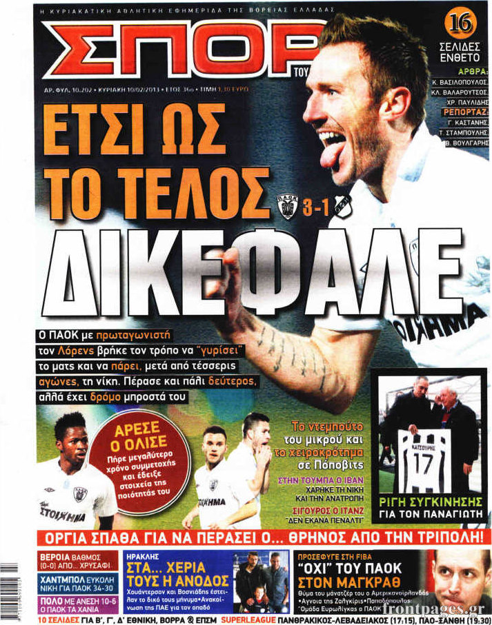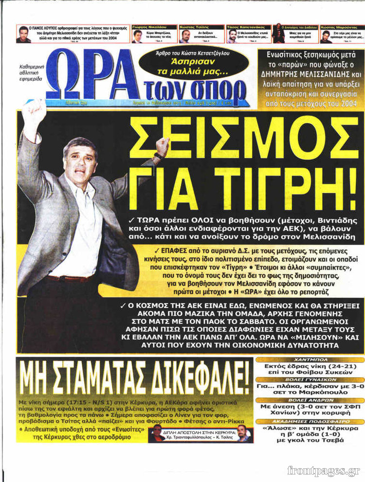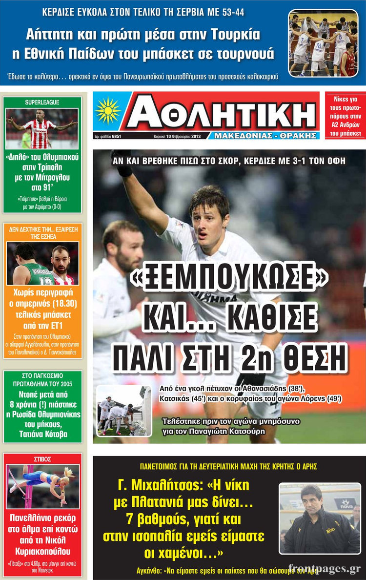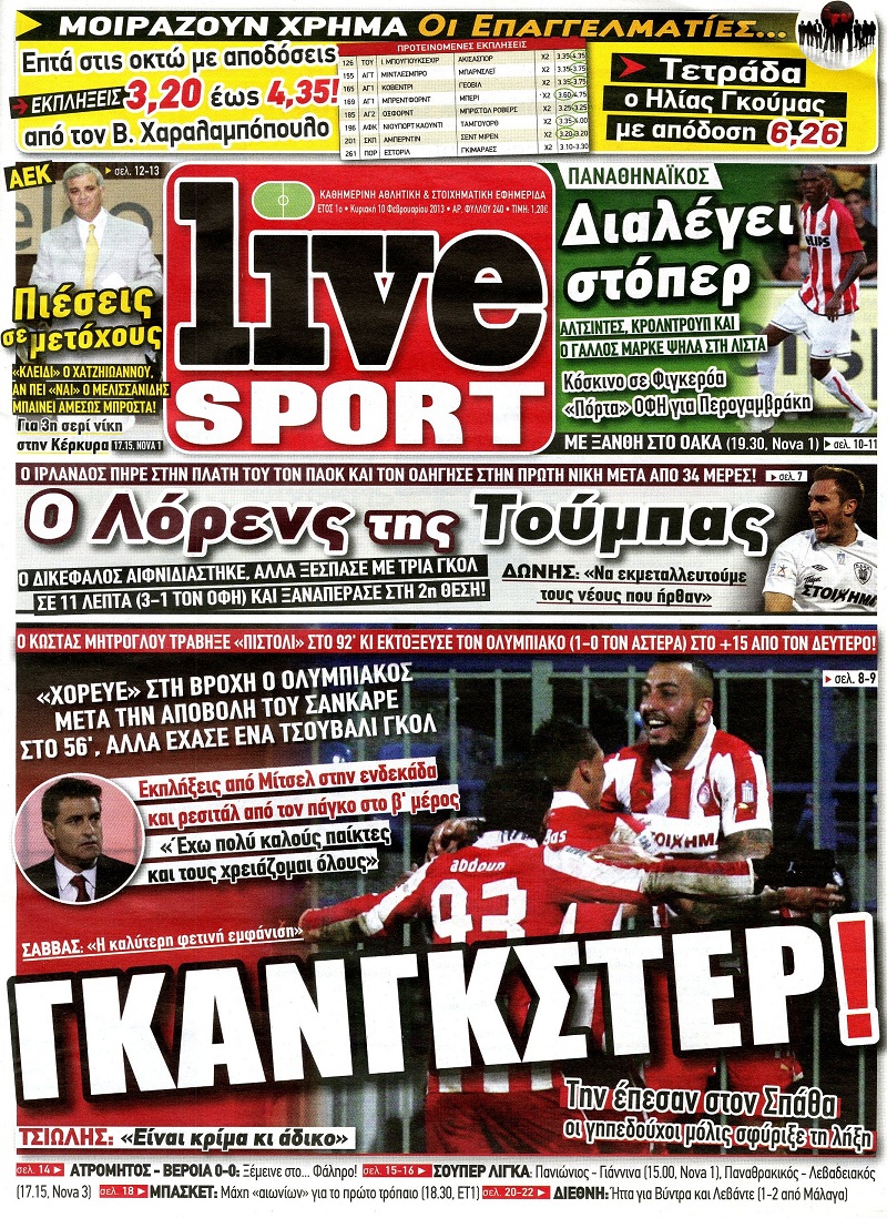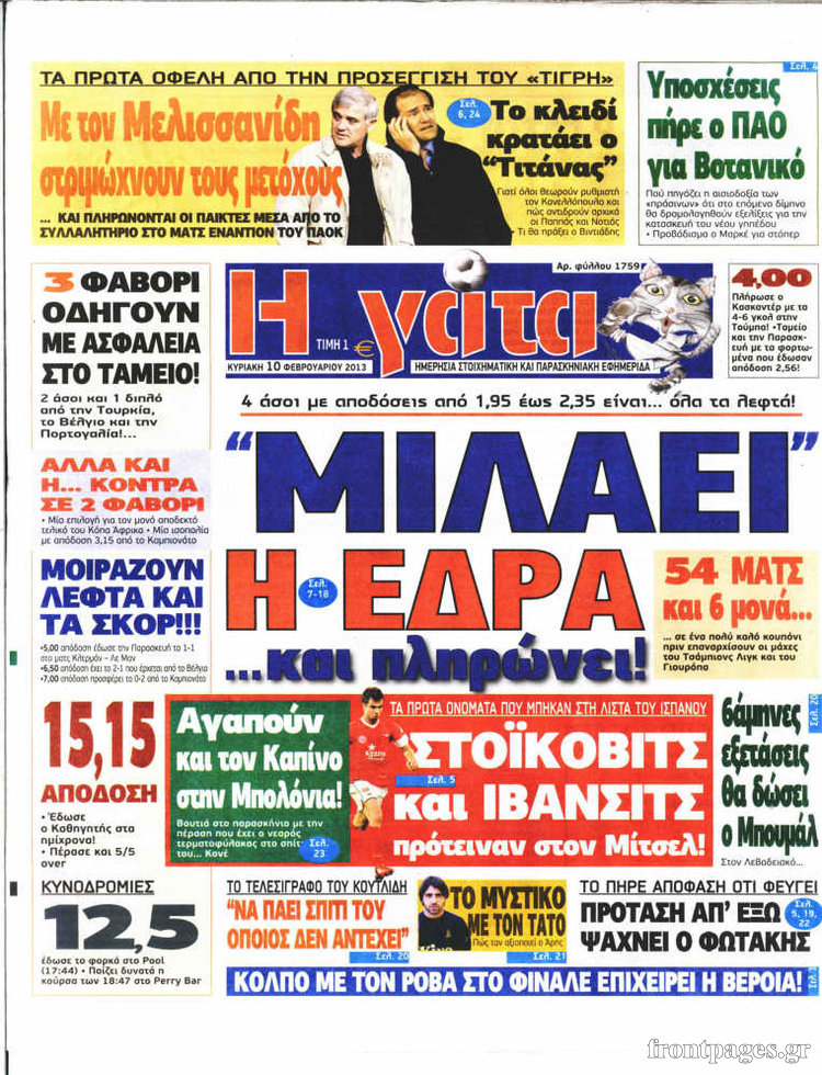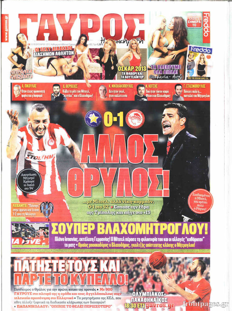 Οι αθλητικές εφημερίδες Enikos Newsroom 08:45, Κυριακή 10 Φεβρουαρίου 2013 Media Οι αθλητικές εφημερίδες Τα πρωτοσέλιδα των αθλητικών εφημερίδων. ΑΘΛΗΤΙΚΕΣ ΕΦΗΜΕΡΙΔΕΣ ΠΡΩΤΟΣΕΛΙΔΑ Μοιράσου το: σχολίασε κι εσύ (0 σχόλια) Ακολουθήστε το enikos.gr στο Google News και μάθετε πρώτοι όλες τις ειδήσεις Δείτε όλες τις τελευταίες ειδήσεις από την Ελλάδα και τον Κόσμο στο enikos.gr Ειδήσεις Ροή Ειδήσεων 2 ώρες πριν Αγρότες: Πολύωροι αποκλεισμοί στα τελωνεία Προμαχώνα, Εξοχής, Ευζώνων και Νίκης – Κλείνουν τον κόμβο Φιλώτα οι παραγωγοί στη Δυτική Μακεδονία 1 ώρα πριν Νίκος Παππάς: Ζητώ συγγνώμη για αυτό το επεισόδιο – Δεν τον γρονθοκόπησα 3 ώρες πριν Ευρωπαϊκό Συμβούλιο: Όλες οι λεπτομέρειες για το δάνειο των 90 δισ. ευρώ στην Ουκρανία – Τα συμπεράσματα της Συνόδου Κορυφής 3 ώρες πριν Αίγιο: 22χρονη κατήγγειλε ότι έπεσε θύμα βιασμού και ληστείας από συγγενικά της πρόσωπα 1 ώρα πριν Τρομακτικό βίντεο: Η στιγμή της έκρηξης στο τζετ που μετέφερε τον οδηγό του NASCAR, Γκρεγκ Μπιφλ και την οικογένειά του 2 ώρες πριν Αλλαγή σελίδας για 3 ζώδια – «Μία δύσκολη περίοδος φτάνει στο τέλος της» 2 ημέρες πριν 20 χρόνια τα Χριστούγεννα ξεκινούν στα Public με μεγάλη ποικιλία σε δώρα! 3 ώρες πριν Ο σύζυγός της συμπεριφέρεται όπως το παιδί τους – «Χρησιμοποιεί αστείες δικαιολογίες για να μην κάνει δουλειές και να ξοδεύει λεφτά» 55 λεπτά πριν Γεμάτος νεροχύτης; 5 σοβαρές ευθύνες που «φοβίζουν» όσους αφήνουν άπλυτα πιάτα 8 λεπτά πριν Πούτιν: Η Ουκρανία δεν είναι έτοιμη για ειρηνευτικές συνομιλίες – ο ρωσικός στρατός προελαύνει σε όλα τα μέτωπα 13 λεπτά πριν Βουλή: Αποσύρθηκε προσθήκη για έργα του Ταμειακού Προγράμματος Ανάπτυξης της Γ.Γ. Αθλητισμού μετά τις αντιδράσεις της αντιπολίτευσης 19 λεπτά πριν Νορβηγία: Η πριγκίπισσα Μέτε-Μάριτ πιθανότατα θα υποβληθεί σε μεταμόσχευση πνεύμονα 30 λεπτά πριν Ενίσχυση δρομολογίων του Μετρό τις Κυριακές 21 και 28 Δεκεμβρίου – Κυκλοφοριακές ρυθμίσεις αύριο στη Γραμμή 7 του τραμ λόγω εορταστικών εκδηλώσεων 34 λεπτά πριν Βλαντίμιρ Πούτιν: LIVE η συνέντευξη Τύπου για τον απολογισμό της χρονιάς ENIKOS NETWORK Καρκίνος του πνεύμονα: Έως 8.000 ζωές μπορούν να σωθούν με την έγκαιρη διάγνωση Καρδιοπαθείς: Οι νέες συστάσεις για τα εμβόλια που πρέπει να κάνουν τον χειμώνα Επιδόματα και παροχές από τον ΟΠΕΚΑ: Τι πιστώνεται σήμερα στους τραπεζικούς λογαριασμούς Απειλή για τον Προϋπολογισμό τα ληξιπρόθεσμα χρέη των ιδιωτών προς την εφορία – Τι δείχνουν τα στοιχεία Χαρτογραφώντας το «σημείο χωρίς επιστροφή»: Για πρώτη φορά αποκαλύπτεται με λεπτομέρεια το ακανθώδες όριο της ατμόσφαιρας τ... Η Google καταργεί τη λειτουργία «dark web report» – Πώς θα μπορούν οι χρήστες να διαγράφουν τα δεδομένα τους περισσότερα 08:00 , Παρασκευή 19 Δεκεμβρίου 2025 Την Κυριακή με τη Realnews: Δωροεπιταγή 10€ Δωροεπιταγή αξίας 10€ για αγορές άνω των 60€ από τα πολυκαταστήματα FactoryOutlet H προσφορά ι... 05:48 , Παρασκευή 19 Δεκεμβρίου 2025 Οι οικονομικές εφημερίδες 19/12/2025 Διαβάστε τα πρωτοσέλιδα από τις οικονομικές εφημερίδες, σήμερα 19/12/2025. 05:43 , Παρασκευή 19 Δεκεμβρίου 2025 Οι αθλητικές εφημερίδες 19/12/2025 Διαβάστε τα πρωτοσέλιδα από τις αθλητικές εφημερίδες, σήμερα 19/12/2025. 05:38 , Παρασκευή 19 Δεκεμβρίου 2025 Οι πολιτικές εφημερίδες 19/12/2025 Διαβάστε τα πρωτοσέλιδα από τις πολιτικές εφημερίδες, σήμερα 19/12/2025. ΤΕΛΕΥΤΑΙΕΣ ΕΙΔΗΣΕΙΣ 8 λεπτά πριν Πούτιν: Η Ουκρανία δεν είναι έτοιμη για ειρηνευτικές... 13 λεπτά πριν Βουλή: Αποσύρθηκε προσθήκη για έργα του Ταμειακού..