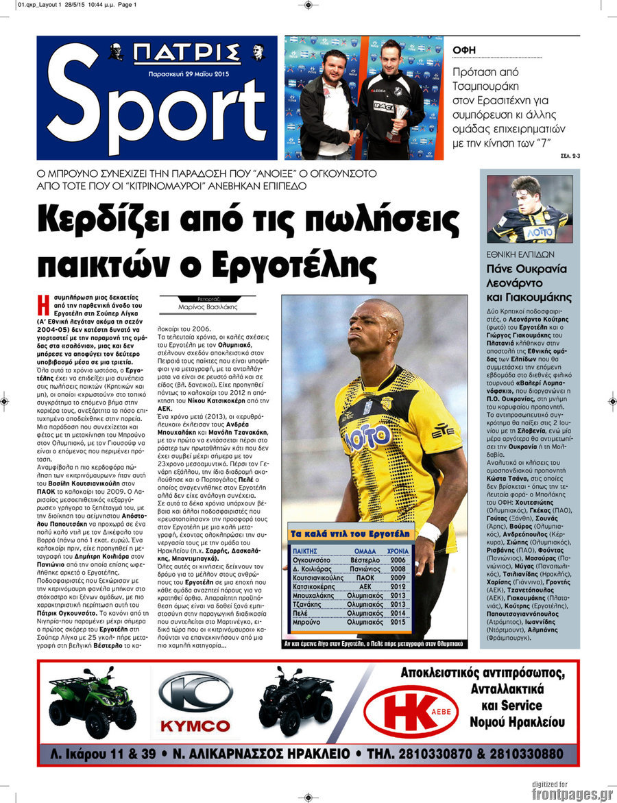 Οι αθλητικές εφημερίδες 29/5/2015 Enikos Newsroom 07:09, Παρασκευή 29 Μαΐου 2015 Media Διαβάστε τα σημερινά πρωτοσέλιδα των αθλητικών εφημερίδων: ΑΘΛΗΤΙΚΕΣ ΕΦΗΜΕΡΙΔΕΣ ΠΡΩΤΟΣΕΛΙΔΑ Μοιράσου το: σχολίασε κι εσύ (0 σχόλια) Ακολουθήστε το enikos.gr στο Google News και μάθετε πρώτοι όλες τις ειδήσεις Δείτε όλες τις τελευταίες ειδήσεις από την Ελλάδα και τον Κόσμο στο enikos.gr Ειδήσεις Ροή Ειδήσεων 6 ώρες πριν Χριστούγεννα στα μπλόκα: Επιμένουν στις κινητοποιήσεις τους οι αγρότες – Ανοίγουν τα διόδια το Σαββατοκύριακο 7 ώρες πριν Ουκρανία: Η άνευ προηγουμένου επίθεση σε ρωσικό τάνκερ στη Μεσόγειο και το μήνυμα προς στον Πούτιν – Το «μακρύ χέρι» του Κιέβου 6 ώρες πριν Πούτιν: Τα μηνύματα σε Ευρώπη και ΝΑΤΟ από το μαραθώνιο «σόου» του – Η απαίτηση για «σεβασμό» και η ειρήνη «με τους όρους» της Μόσχας 7 ώρες πριν Τραμπ: Δεν αποκλείει την πιθανότητα ενός πολέμου στη Βενεζουέλα – «Ο Μαδούρο ξέρει καλύτερα από τον καθένα τι ακριβώς θέλω» 8 ώρες πριν Συνεχίζει να προκαλεί ο Μίτσκοσκι: «Για μένα το όνομα Μακεδονία είναι ιερό» 6 ώρες πριν Ανακαλύφθηκαν αρχαία χρυσά νομίσματα 2.200 ετών που απεικονίζουν τον θεό Απόλλωνα – Η άγνωστη σύνδεση με τον Φίλιππο Β΄ της Μακεδονίας 7 ώρες πριν Ύπνος: Μια κρυφή κατάσταση του εγκεφάλου πριν από τον ύπνο μπορεί να είναι το “κλειδί” για υψηλή ευφυΐα και δημιουργικότητα 8 ώρες πριν Αριθμολογία: Οι άνθρωποι που έχουν γεννηθεί αυτές τις 4 ημερομηνίες, συχνά παρεξηγούνται – «Η καλοσύνη τους κρύβει τεράστια δύναμη» 9 ώρες πριν Ξεχάστε το καθάρισμα το Σαββατοκύριακο: Ο «κανόνας των 20 λεπτών» που θα σας λύσει τα χέρια 12 λεπτά πριν Μοχάμεντ Σαλάχ: Ζήτησε «συγγνώμη» από τους συμπαίκτες του στη Λίβερπουλ για το ξέσπασμά του 26 λεπτά πριν Μάρκο Ρούμπιο: Ανθρωπιστική κατάπαυση του πυρός στο Σουδάν ζητά ο Αμερικανός υπουργός Εξωτερικών 41 λεπτά πριν Αγγελική Νικολούλη: Τα συλλυπητήρια για την απώλεια της Ειρήνης Μαρινάκη 56 λεπτά πριν Βολιβία: Μαζική διαδηλώσεις εναντίον της κατάργησης των επιδοτήσεων των τιμών των καυσίμων 1 ώρα πριν Φως στο Τούνελ: Έφτασε η ώρα της αλήθειας για την δολοφονία της χήρας του πρώην υπουργού στο Κολωνάκι ENIKOS NETWORK Το ΕΚΑΒ τιμήθηκε από την Ακαδημία Αθηνών για τα 40 χρόνια προσφοράς του Έχετε πραγματικά μεγάλη καρδιά; 10 χαρακτηριστικά όσων έχουν καλοσύνη Αναστολή μέτρων αναγκαστικής εκτέλεσης για κτηνοτρόφους που πλήττονται από την ευλογιά των αιγοπροβάτων Πλήρης επάρκεια προϊόντων στις λαϊκές της Αττικής, παρά τις αγροτικές κινητοποιήσεις – Τι απαντούν οι πωλητές Χαρτογραφώντας το «σημείο χωρίς επιστροφή»: Για πρώτη φορά αποκαλύπτεται με λεπτομέρεια το ακανθώδες όριο της ατμόσφαιρας τ... Η Google καταργεί τη λειτουργία «dark web report» – Πώς θα μπορούν οι χρήστες να διαγράφουν τα δεδομένα τους περισσότερα 04:20 , Σάββατο 20 Δεκεμβρίου 2025 Αγγελική Νικολούλη: Τα συλλυπητήρια για την απώλεια της Ειρήνης Μαρινάκη Τα συλληπητήρια στον πρόεδρο του Mega, τον Βαγγέλη Μαρινάκη, για την απώλεια της μητέρας του Ε... 02:50 , Σάββατο 20 Δεκεμβρίου 2025 GNTM: Η Ξένια Τσίρκοβα αναδείχθηκε μεγάλη νικήτρια και πήρε τις 50.000 ευρώ – Ποιος βρέθηκε σε απόσταση αναπνοής; Με φαντασμαγορικό τρόπο ολοκληρώθηκε το βράδυ της Παρασκευής ο μεγάλος τελικός του GNTM, μέσα ... 22:42 , Παρασκευή 19 Δεκεμβρίου 2025 Γιώργος Γιαννόπουλος για “Το σόι σου”: “Είναι ευτυχία και ευλογία αυτή η σειρά” «Είναι ευτυχία και ευλογία η συγκυρία αυτής της σειράς», θα πει ο Γιώργος Γιαννόπουλος -ο αγαπ... 20:37 , 