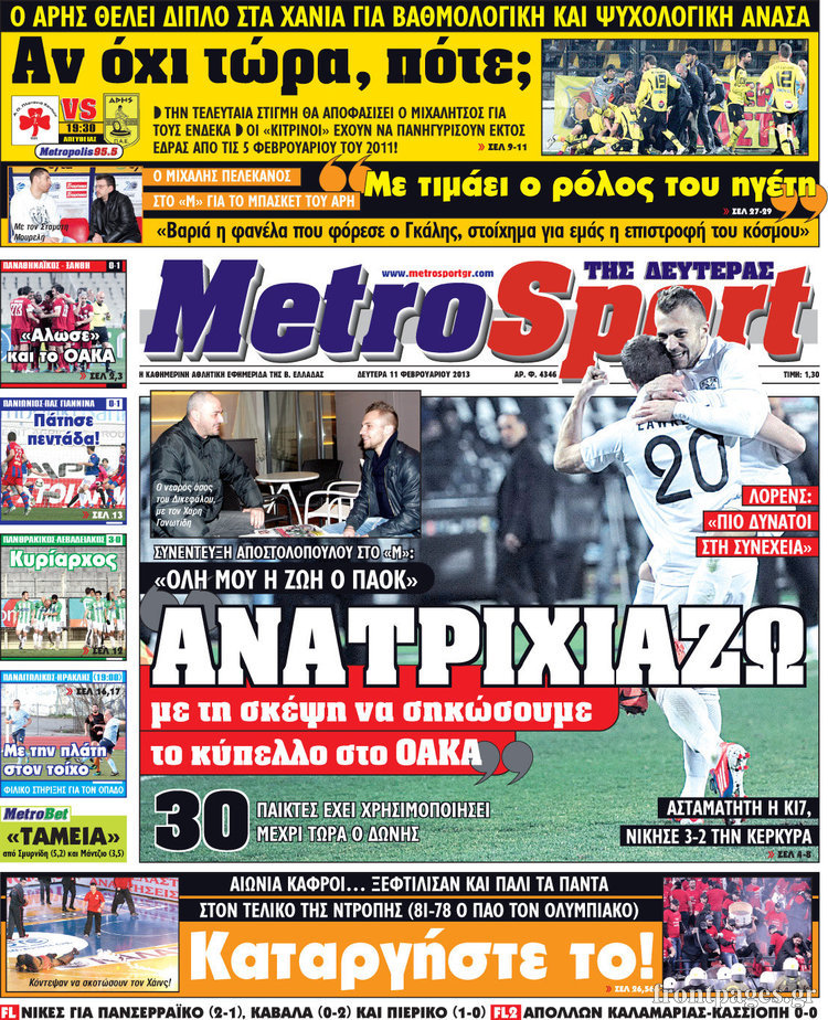 Οι αθλητικές εφημερίδες Enikos Newsroom 09:00, Δευτέρα 11 Φεβρουαρίου 2013 Media Οι αθλητικές εφημερίδες ΑΘΛΗΤΙΚΕΣ ΕΦΗΜΕΡΙΔΕΣ ΕΦΗΜΕΡΙΔΕΣ ΠΡΩΤΟΣΕΛΙΔΑ Μοιράσου το: σχολίασε κι εσύ (0 σχόλια) Ακολουθήστε το enikos.gr στο Google News και μάθετε πρώτοι όλες τις ειδήσεις Δείτε όλες τις τελευταίες ειδήσεις από την Ελλάδα και τον Κόσμο στο enikos.gr Ειδήσεις Ροή Ειδήσεων 5 ώρες πριν Εκτός ευρωομάδας ΣΥΡΙΖΑ ο Νίκος Παππάς μετά την επίθεση στον δημοσιογράφο Νίκο Γιαννόπουλο – Η μήνυση και οι νέες δηλώσεις 6 ώρες πριν «Αγριεύουν» οι αγρότες: «Δεν συντρέχει λόγος συνάντησης με τον πρωθυπουργό» – Ώρα αποφάσεων στη σύσκεψη της Πέμπτης 5 ώρες πριν Κυψέλη: Χωρίς την οικογένειά της δίπλα της απολογήθηκε η 16χρονη – «Της είχε επιτεθεί κάποιος για να την βιάσει, φοβήθηκε και κυκλοφορούσε με μαχαίρι» 5 ώρες πριν Politico: Το πρόβλημα της Ευρώπης δεν είναι το Βέλγιο αλλά ο Ντόναλντ Τραμπ 7 ώρες πριν Αλεξανδρούπολη: Πολυοργανική ανεπάρκεια λόγω υποσιτισμού η αιτία θανάτου του 3χρονου αγοριού 5 ώρες πριν Μυστήριο με τεράστιες κυκλικές πέτρες 200 κιλών – Ανακαλύφθηκαν τυχαία κατά τη διάρκεια οδικών έργων και κανείς δεν ξέρει από πού προέρχονται 6 ώρες πριν Ύπνος: Ειδικός εξηγεί τον πραγματικό λόγο που ξυπνάτε στις 4 τα ξημερώματα – Ο ρόλος των ορμονών και του κιρκάδιου ρυθμού 7 ώρες πριν Αριθμολογία: Οι άνθρωποι που έχουν γεννηθεί αυτές τις 4 ημερομηνίες, είναι τρυφεροί και αγαπούν ανιδιοτελώς 19 ώρες πριν 20 χρόνια τα Χριστούγεννα ξεκινούν στα Public με μεγάλη ποικιλία σε δώρα! 17 λεπτά πριν Αλ Τσαντίρι Νιουζ: «Λύγισε» ο Δημήτρης Λάλος για τον Δημήτρη Ήμελλο – «Τον μνημονεύω, να ‘ναι καλά εκεί που είναι» 32 λεπτά πριν GNTM: Με δάκρυα τον αποχαιρέτησε η Ηλιάνα Παπαγεωργίου πριν από τον ημιτελικό – «Αισθάνομαι πολύ παράξενα» 47 λεπτά πριν Αμερικανικά στρατεύματα στον Ισημερινό για «προσωρινή» επιχείρηση κατά των ναρκωτικών 1 ώρα πριν Βραζιλία: Το Κογκρέσο ενέκρινε σχέδιο νόμου για τη μείωση της ποινής του πρώην προέδρου Μπολσονάρου 1 ώρα πριν Ένταση στο περιφερειακό συμβούλιο Δυτικής Μακεδονίας: Φωνές, σπρωξιές και διακοπή – Δείτε βίντεο ENIKOS NETWORK Αϋπνία: Το κόλπο που θα σας βοηθήσει να κοιμηθείτε απόψε – Είναι απλό και έχει αποτέλεσμα 2,6 εκατομμύρια πολίτες έχουν ήδη εμβολιαστεί κατά της γρίπης ΕΛΣΤΑΤ: Τι δείχνουν τα νέα στοιχεία για τις ηλεκτρονικές παραγγελίες των επιχειρήσεων ΚΕΠΕ: Οι 3 διακριτές συμβολές των ΜμΕ και της μεταποίησης στην ελληνική οικονομία Χαρτογραφώντας το «σημείο χωρίς επιστροφή»: Για πρώτη φορά αποκαλύπτεται με λεπτομέρεια το ακανθώδες όριο της ατμόσφαιρας τ... Η Google καταργεί τη λειτουργία «dark web report» – Πώς θα μπορούν οι χρήστες να διαγράφουν τα δεδομένα τους περισσότερα 02:30 , Πέμπτη 18 Δεκεμβρίου 2025 Αλ Τσαντίρι Νιουζ: Η κόρη της Πάολα στο κοινό – Η ατάκα Λαζόπουλου που την έκανε να «κοκκινήσει» Γιορτινή διάθεση και ευχάριστες στιγμές γέμισε η αποψινή, τελευταία για το 2025, εκπομπή του «... 22:24 , Τετάρτη 17 Δεκεμβρίου 2025 Το Σπίτι Δίπλα Στο Ποτάμι: Σε κίνδυνο η υγεία του Απόστολου – Τι θα δούμε απόψε “Το Σπίτι Δίπλα στο Ποτάμι” ξετυλίγει το νήμα της ζωής των πέντε αδελφών με καταισ... 21:14 , Τετάρτη 17 Δεκεμβρίου 2025 Παιχνίδια Εκδίκησης: Θα καταφέρει ο Χρήστος να κλονίσει την εμπιστοσύνη της Μάγιας απέναντι στον Άγη; Τα «Παιχνίδια Εκδίκησης» έρχονται απόψε στις 22:30, στον Αντ1, με το τελευταίο επεισόδιο της χ... 20:57 , Τετάρτη 17 Δεκεμβρίου 2025 Άγιος Έρωτας: Η Χλόη καταθέτει εναντίον του πατέρα 