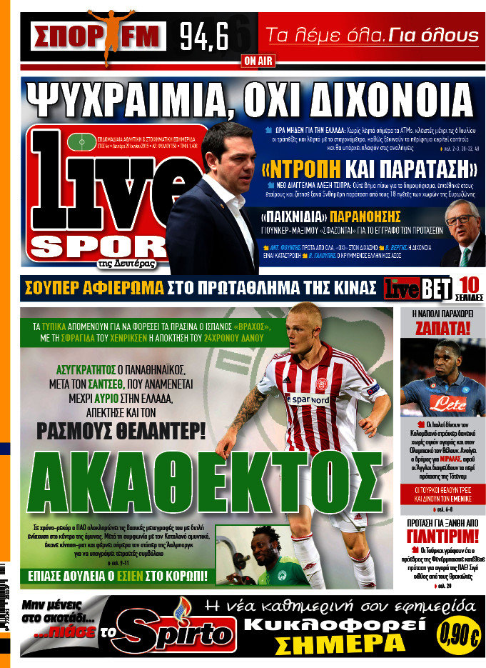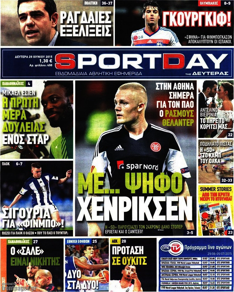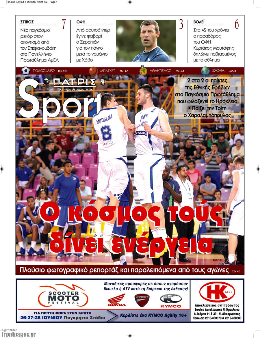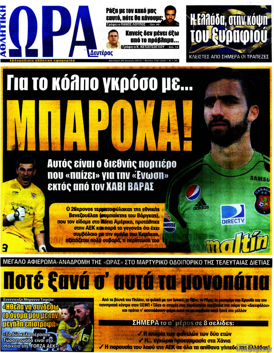 Οι αθλητικές εφημερίδες 29/6/2015 Enikos Newsroom 08:35, Δευτέρα 29 Ιουνίου 2015 Media Διαβάστε τα σημερινά πρωτοσέλιδα των αθλητικών εφημερίδων: ΑΘΛΗΤΙΚΕΣ ΕΦΗΜΕΡΙΔΕΣ ΠΡΩΤΟΣΕΛΙΔΑ Μοιράσου το: σχολίασε κι εσύ (0 σχόλια) Ακολουθήστε το enikos.gr στο Google News και μάθετε πρώτοι όλες τις ειδήσεις Δείτε όλες τις τελευταίες ειδήσεις από την Ελλάδα και τον Κόσμο στο enikos.gr Ειδήσεις Ροή Ειδήσεων 4 ώρες πριν Χριστούγεννα στα μπλόκα: Επιμένουν στις κινητοποιήσεις τους οι αγρότες – Ανοίγουν τα διόδια το Σαββατοκύριακο 5 ώρες πριν Ουκρανία: Η άνευ προηγουμένου επίθεση σε ρωσικό τάνκερ στη Μεσόγειο και το μήνυμα προς στον Πούτιν – Το «μακρύ χέρι» του Κιέβου 4 ώρες πριν Πούτιν: Τα μηνύματα σε Ευρώπη και ΝΑΤΟ από το μαραθώνιο «σόου» του – Η απαίτηση για «σεβασμό» και η ειρήνη «με τους όρους» της Μόσχας 5 ώρες πριν Τραμπ: Δεν αποκλείει την πιθανότητα ενός πολέμου στη Βενεζουέλα – «Ο Μαδούρο ξέρει καλύτερα από τον καθένα τι ακριβώς θέλω» 5 ώρες πριν Συνεχίζει να προκαλεί ο Μίτσκοσκι: «Για μένα το όνομα Μακεδονία είναι ιερό» 4 ώρες πριν Ανακαλύφθηκαν αρχαία χρυσά νομίσματα 2.200 ετών που απεικονίζουν τον θεό Απόλλωνα – Η άγνωστη σύνδεση με τον Φίλιππο Β΄ της Μακεδονίας 5 ώρες πριν Ύπνος: Μια κρυφή κατάσταση του εγκεφάλου πριν από τον ύπνο μπορεί να είναι το “κλειδί” για υψηλή ευφυΐα και δημιουργικότητα 6 ώρες πριν Αριθμολογία: Οι άνθρωποι που έχουν γεννηθεί αυτές τις 4 ημερομηνίες, συχνά παρεξηγούνται – «Η καλοσύνη τους κρύβει τεράστια δύναμη» 7 ώρες πριν Ξεχάστε το καθάρισμα το Σαββατοκύριακο: Ο «κανόνας των 20 λεπτών» που θα σας λύσει τα χέρια 13 λεπτά πριν Θεσσαλονίκη: Εξαφανίστηκε 13χρονος από χώρο φιλοξενίας ασυνόδευτων ανηλίκων στο Ωραιόκαστρο 24 λεπτά πριν Ντόναλντ Τραμπ: «Πολύ βαριά αντίποινα» στη Συρία – «Πλήττουμε πολύ δυνατά οχυρά του Ισλαμικού Κράτους» 38 λεπτά πριν Εξάρχεια: Ένταση με μολότοφ, χημικά και κρότου λάμψης 54 λεπτά πριν ΗΠΑ: Τραγωδία στην Αλαμπάμα – Σκότωσε την δημοσιογράφο σύζυγό του και αυτοκτόνησε μπροστά στον 3χρονο γιο τους 1 ώρα πριν Πρόταση γάμου στο ΣΕΦ κατά την διάρκεια του αγώνα Ολυμπιακός-Βιλερμπάν – Δείτε βίντεο ENIKOS NETWORK Το ΕΚΑΒ τιμήθηκε από την Ακαδημία Αθηνών για τα 40 χρόνια προσφοράς του Έχετε πραγματικά μεγάλη καρδιά; 10 χαρακτηριστικά όσων έχουν καλοσύνη Αναστολή μέτρων αναγκαστικής εκτέλεσης για κτηνοτρόφους που πλήττονται από την ευλογιά των αιγοπροβάτων Πλήρης επάρκεια προϊόντων στις λαϊκές της Αττικής, παρά τις αγροτικές κινητοποιήσεις – Τι απαντούν οι πωλητές Χαρτογραφώντας το «σημείο χωρίς επιστροφή»: Για πρώτη φορά αποκαλύπτεται με λεπτομέρεια το ακανθώδες όριο της ατμόσφαιρας τ... Η Google καταργεί τη λειτουργία «dark web report» – Πώς θα μπορούν οι χρήστες να διαγράφουν τα δεδομένα τους περισσότερα 22:42 , Παρασκευή 19 Δεκεμβρίου 2025 Γιώργος Γιαννόπουλος για “Το σόι σου”: “Είναι ευτυχία και ευλογία αυτή η σειρά” «Είναι ευτυχία και ευλογία η συγκυρία αυτής της σειράς», θα πει ο Γιώργος Γιαννόπουλος -ο αγαπ... 20:37 , Παρασκευή 19 Δεκεμβρίου 2025 Don’t Forget The Lyrics: Η Έλλη Κοκκίνου υποδέχεται 4 παίκτες που θα κάνουν τα πάντα για να μη χάσουν ούτε… μισή λέξη από τους στίχους Το «Don’t Forget The Lyrics» επιστρέφει απόψε, Παρασκευή 19 Δεκεμβρίου, στις 21:00 με νέο επει... 19:31 , Παρασκευή 19 Δεκεμβρίου 2025 GNTM: Απόψε ο μεγάλος τελικός για τους 4 φιναλίστ Έπειτα από μήνες γεμάτους μόδα, δημιουργία και έντονες αναμετρήσεις, το GNTM 2025 κορυφώνεται,... 18:11 , Παρασκευή 19 Δεκεμβρίου 2025 Το 