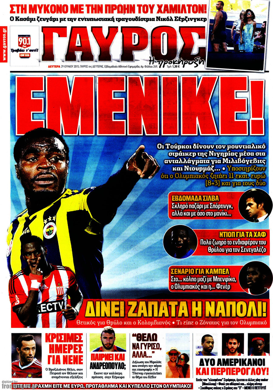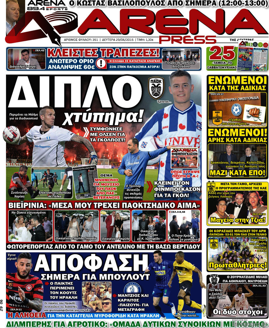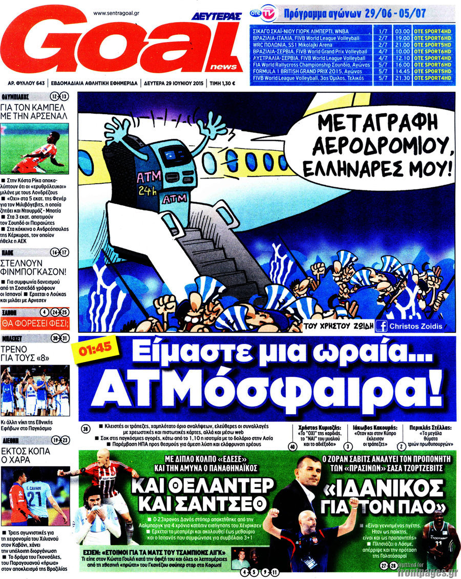 Οι αθλητικές εφημερίδες 29/6/2015 Enikos Newsroom 08:35, Δευτέρα 29 Ιουνίου 2015 Media Διαβάστε τα σημερινά πρωτοσέλιδα των αθλητικών εφημερίδων: ΑΘΛΗΤΙΚΕΣ ΕΦΗΜΕΡΙΔΕΣ ΠΡΩΤΟΣΕΛΙΔΑ Μοιράσου το: σχολίασε κι εσύ (0 σχόλια) Ακολουθήστε το enikos.gr στο Google News και μάθετε πρώτοι όλες τις ειδήσεις Δείτε όλες τις τελευταίες ειδήσεις από την Ελλάδα και τον Κόσμο στο enikos.gr Ειδήσεις Ροή Ειδήσεων 4 ώρες πριν Χριστούγεννα στα μπλόκα: Επιμένουν στις κινητοποιήσεις τους οι αγρότες – Ανοίγουν τα διόδια το Σαββατοκύριακο 5 ώρες πριν Ουκρανία: Η άνευ προηγουμένου επίθεση σε ρωσικό τάνκερ στη Μεσόγειο και το μήνυμα προς στον Πούτιν – Το «μακρύ χέρι» του Κιέβου 4 ώρες πριν Πούτιν: Τα μηνύματα σε Ευρώπη και ΝΑΤΟ από το μαραθώνιο «σόου» του – Η απαίτηση για «σεβασμό» και η ειρήνη «με τους όρους» της Μόσχας 5 ώρες πριν Τραμπ: Δεν αποκλείει την πιθανότητα ενός πολέμου στη Βενεζουέλα – «Ο Μαδούρο ξέρει καλύτερα από τον καθένα τι ακριβώς θέλω» 5 ώρες πριν Συνεχίζει να προκαλεί ο Μίτσκοσκι: «Για μένα το όνομα Μακεδονία είναι ιερό» 4 ώρες πριν Ανακαλύφθηκαν αρχαία χρυσά νομίσματα 2.200 ετών που απεικονίζουν τον θεό Απόλλωνα – Η άγνωστη σύνδεση με τον Φίλιππο Β΄ της Μακεδονίας 5 ώρες πριν Ύπνος: Μια κρυφή κατάσταση του εγκεφάλου πριν από τον ύπνο μπορεί να είναι το “κλειδί” για υψηλή ευφυΐα και δημιουργικότητα 6 ώρες πριν Αριθμολογία: Οι άνθρωποι που έχουν γεννηθεί αυτές τις 4 ημερομηνίες, συχνά παρεξηγούνται – «Η καλοσύνη τους κρύβει τεράστια δύναμη» 7 ώρες πριν Ξεχάστε το καθάρισμα το Σαββατοκύριακο: Ο «κανόνας των 20 λεπτών» που θα σας λύσει τα χέρια 13 λεπτά πριν Θεσσαλονίκη: Εξαφανίστηκε 13χρονος από χώρο φιλοξενίας ασυνόδευτων ανηλίκων στο Ωραιόκαστρο 24 λεπτά πριν Ντόναλντ Τραμπ: «Πολύ βαριά αντίποινα» στη Συρία – «Πλήττουμε πολύ δυνατά οχυρά του Ισλαμικού Κράτους» 38 λεπτά πριν Εξάρχεια: Ένταση με μολότοφ, χημικά και κρότου λάμψης 54 λεπτά πριν ΗΠΑ: Τραγωδία στην Αλαμπάμα – Σκότωσε την δημοσιογράφο σύζυγό του και αυτοκτόνησε μπροστά στον 3χρονο γιο τους 1 ώρα πριν Πρόταση γάμου στο ΣΕΦ κατά την διάρκεια του αγώνα Ολυμπιακός-Βιλερμπάν – Δείτε βίντεο ENIKOS NETWORK Το ΕΚΑΒ τιμήθηκε από την Ακαδημία Αθηνών για τα 40 χρόνια προσφοράς του Έχετε πραγματικά μεγάλη καρδιά; 10 χαρακτηριστικά όσων έχουν καλοσύνη Αναστολή μέτρων αναγκαστικής εκτέλεσης για κτηνοτρόφους που πλήττονται από την ευλογιά των αιγοπροβάτων Πλήρης επάρκεια προϊόντων στις λαϊκές της Αττικής, παρά τις αγροτικές κινητοποιήσεις – Τι απαντούν οι πωλητές Χαρτογραφώντας το «σημείο χωρίς επιστροφή»: Για πρώτη φορά αποκαλύπτεται με λεπτομέρεια το ακανθώδες όριο της ατμόσφαιρας τ... Η Google καταργεί τη λειτουργία «dark web report» – Πώς θα μπορούν οι χρήστες να διαγράφουν τα δεδομένα τους περισσότερα 22:42 , Παρασκευή 19 Δεκεμβρίου 2025 Γιώργος Γιαννόπουλος για “Το σόι σου”: “Είναι ευτυχία και ευλογία αυτή η σειρά” «Είναι ευτυχία και ευλογία η συγκυρία αυτής της σειράς», θα πει ο Γιώργος Γιαννόπουλος -ο αγαπ... 20:37 , Παρασκευή 19 Δεκεμβρίου 2025 Don’t Forget The Lyrics: Η Έλλη Κοκκίνου υποδέχεται 4 παίκτες που θα κάνουν τα πάντα για να μη χάσουν ούτε… μισή λέξη από τους στίχους Το «Don’t Forget The Lyrics» επιστρέφει απόψε, Παρασκευή 19 Δεκεμβρίου, στις 21:00 με νέο επει... 19:31 , Παρασκευή 19 Δεκεμβρίου 2025 GNTM: Απόψε ο μεγάλος τελικός για τους 4 φιναλίστ Έπειτα από μήνες γεμάτους μόδα, δημιουργία και έντονες αναμετρήσεις, το GNTM 2025 κορυφώνεται,... 18:11 , Παρασκευή 19 Δεκεμβρίου 2025 Το 