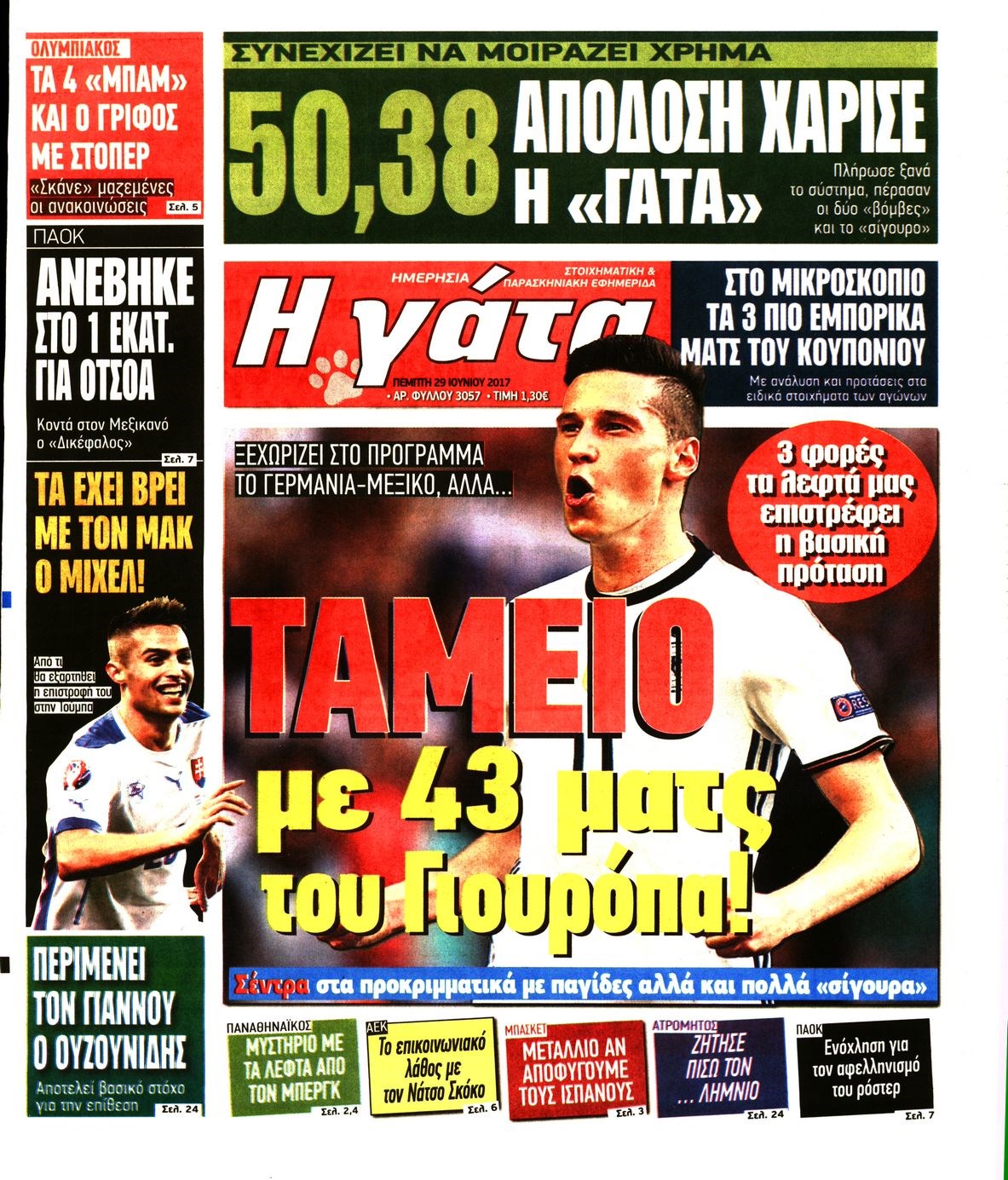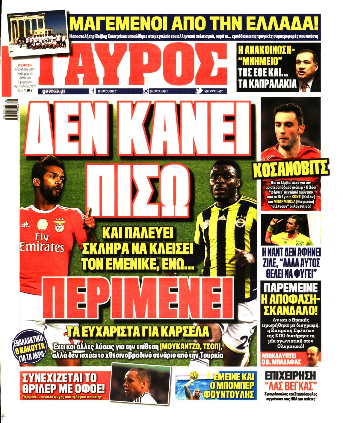 Οι αθλητικές εφημερίδες 29/6/2017 Enikos Newsroom 07:08, Πέμπτη 29 Ιουνίου 2017 Media Διαβάστε τα σημερινά πρωτοσέλιδα των αθλητικών εφημερίδων: ΑΘΛΗΤΙΚΕΣ ΜΕΤΑΔΟΣΕΙΣ ΠΡΩΤΟΣΕΛΙΔΑ Μοιράσου το: σχολίασε κι εσύ (0 σχόλια) Ακολουθήστε το enikos.gr στο Google News και μάθετε πρώτοι όλες τις ειδήσεις Δείτε όλες τις τελευταίες ειδήσεις από την Ελλάδα και τον Κόσμο στο enikos.gr Ειδήσεις Ροή Ειδήσεων 1 ώρα πριν Υπόθεση Έπσταϊν: Το Υπουργείο Δικαιοσύνης δημοσιοποίησε μια σειρά από εξαιρετικά επεξεργασμένα αρχεία – «Λείπουν τα πιο σημαντικά έγγραφα», λένε οι Δημοκρατικοί 3 ώρες πριν Σαρωτικοί οι έλεγχοι στους δρόμους ενόψει εορτών – Μπλόκα της τροχαίας σε κεντρικές αρτηρίες της Αττικής 1 ώρα πριν ΟΝΕΧ – MEGATUGS: Ξεκίνησε η ναυπήγηση ρυμουλκών στην Ελλάδα – Προθάλαμος πολεμικών πλοίων – Δείτε φωτογραφίες και βίντεο 1 ώρα πριν Καιρός: Αλλαγή σκηνικού σήμερα με βροχές και πτώση της θερμοκρασίας – Οι προβλέψεις των μετεωρολόγων για τα Χριστούγεννα 10 ώρες πριν Χριστούγεννα στα μπλόκα: Επιμένουν στις κινητοποιήσεις τους οι αγρότες – Ανοίγουν τα διόδια το Σαββατοκύριακο 3 ώρες πριν Αυγά: Πόσα μπορείτε να τρώτε την ημέρα με ασφάλεια για μέγιστη πρόσληψη πρωτεΐνης 3 ώρες πριν Τα ζώδια σήμερα, Σάββατο 20 Δεκεμβρίου: Παρθένοι, το σύμπαν σας δίνει το κλειδί 3 ώρες πριν Οπτική ψευδαίσθηση: Μόνο αν είσαι ο Σέρλοκ Χολμς θα βρεις τον αριθμό «87» σε 7 δευτερόλεπτα 46 λεπτά πριν Αρχαιολόγοι ανακάλυψαν σε χωράφι απεικόνιση 600 ετών ενός Αγίου – Τα στοιχεία που δείχνουν ότι μαρτύρησε 7 λεπτά πριν Αμαλία Κωστοπούλου: Το μήνυμα για το χειρουργείο στο γόνατο – «Αυτός ο τραυματισμός μού στέρησε πολλά…» 15 λεπτά πριν Ο «χάρτης» με τις αυξήσεις και τις φοροελαφρύνσεις του 2026 – Ποιοι και πόσα κερδίζουν 22 λεπτά πριν Η τέλεια συνταγή για cookies με κομμάτια σοκολάτας 30 λεπτά πριν MyHealth App: Τα στοιχεία για τον Προσωπικό Βοηθό Υγείας Πολίτη – Τι ερωτήματα έγιναν μέσα σε 7 ημέρες 38 λεπτά πριν Τρομεροί γονείς: Η Μαρία Καβογιάννη εισβάλλει στο σπίτι της οικογένειας Στεφανίδη ENIKOS NETWORK Το τεστ των 10 δευτερολέπτων που μπορεί να προβλέψει το προσδόκιμο ζωής σας – Τι λέει ειδικός του Cleveland Επιλέξτε καρέκλα για να μάθετε ποια είναι τα κρυφά χαρακτηριστικά σας – Τι αποκάλυψε για εσάς αυτό το τεστ προσωπικότητας; Mega χριστουγεννιάτικη φορολοταρία: «Κλείδωσε» η ημερομηνία για την κλήρωση – Ερωτήσεις και απαντήσεις Αναστολή μέτρων αναγκαστικής εκτέλεσης για κτηνοτρόφους που πλήττονται από την ευλογιά των αιγοπροβάτων Χαρτογραφώντας το «σημείο χωρίς επιστροφή»: Για πρώτη φορά αποκαλύπτεται με λεπτομέρεια το ακανθώδες όριο της ατμόσφαιρας τ... Η Google καταργεί τη λειτουργία «dark web report» – Πώς θα μπορούν οι χρήστες να διαγράφουν τα δεδομένα τους περισσότερα 08:14 , Σάββατο 20 Δεκεμβρίου 2025 Τρομεροί γονείς: Η Μαρία Καβογιάννη εισβάλλει στο σπίτι της οικογένειας Στεφανίδη Όσα θα δούμε στο νέο διπλό επεισόδιο της σειράς «Τρομεροί γονείς», σήμερα Σάββατο 20 Δεκεμβρίο... 05:48 , Σάββατο 20 Δεκεμβρίου 2025 Οι οικονομικές εφημερίδες 20/12/2025 Διαβάστε τα πρωτοσέλιδα από τις οικονομικές εφημερίδες, σήμερα 20/12/2025. 05:43 , Σάββατο 20 Δεκεμβρίου 2025 Οι αθλητικές εφημερίδες 20/12/2025 Διαβάστε τα πρωτοσέλιδα από τις αθλητικές εφημερίδες, σήμερα 20/12/2025. 05:38 , Σάββατο 20 Δεκεμβρίου 2025 Οι πολιτικές εφημερίδες 20/12/2025 Διαβάστε τα πρωτοσέλιδα από τις πολιτικές εφημερίδες, σήμερα 20/12/2025. ΤΕΛΕΥΤΑΙΕΣ ΕΙΔΗΣΕΙΣ 7 λεπτά πριν Αμαλία Κωστοπούλου: Το μήνυμα για το χειρουργείο στο...