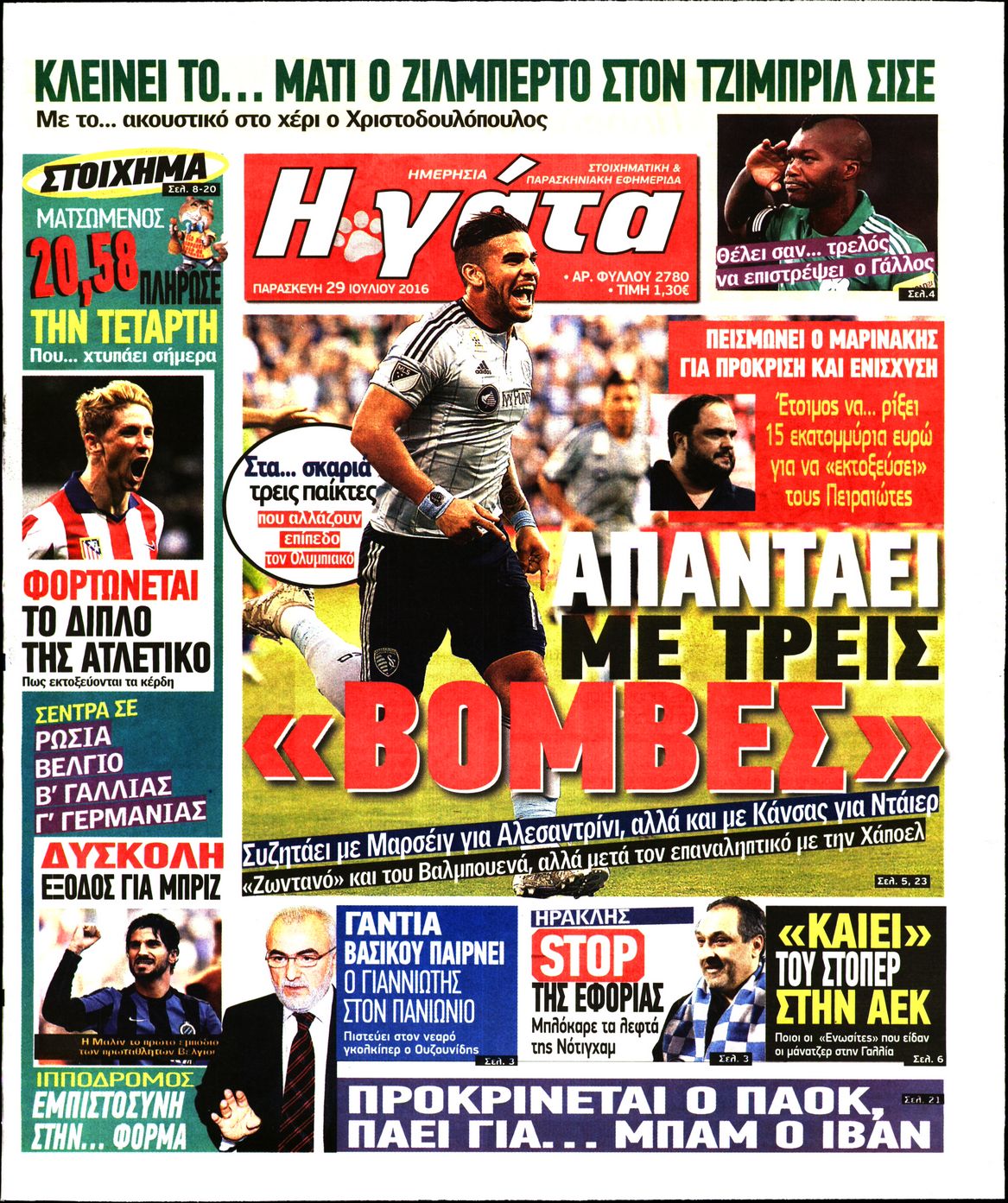 Oι αθλητικές εφημερίδες 29/7/2016 Enikos Newsroom 03:53, Παρασκευή 29 Ιουλίου 2016 Media Διαβάστε τα σημερινά πρωτοσέλιδα των αθλητικών εφημερίδων: ΑΘΛΗΤΙΚΕΣ ΕΦΗΜΕΡΙΔΕΣ ΠΡΩΤΟΣΕΛΙΔΑ Μοιράσου το: σχολίασε κι εσύ (0 σχόλια) Ακολουθήστε το enikos.gr στο Google News και μάθετε πρώτοι όλες τις ειδήσεις Δείτε όλες τις τελευταίες ειδήσεις από την Ελλάδα και τον Κόσμο στο enikos.gr Ειδήσεις Ροή Ειδήσεων 3 ώρες πριν Νίκος Παππάς: «Είχα λάθος αντίδραση στη δική του δράση-πρόκληση – Δεν θα αναλύσω σε τι κατάσταση ήταν ο δημοσιογράφος» 50 λεπτά πριν Νίκος Γιαννόπουλος για Νίκο Παππά: «Είναι επικίνδυνος, θα του κάνω ασφαλιστικά» – ΒΙΝΤΕΟ 2 ώρες πριν Αλεξανδρούπολη: Πολυοργανική ανεπάρκεια λόγω υποσιτισμού η αιτία θανάτου του 3χρονου αγοριού 2 ώρες πριν Δημοσκόπηση Pulse: Η διαφορά ΝΔ-ΠΑΣΟΚ – Με ποια κριτήρια θα ψηφίσουν οι πολίτες στις επόμενες εκλογές 4 ώρες πριν Συγκλονιστικό βίντεο: Τρόμος για τουρίστες που σώθηκαν την τελευταία στιγμή από λεωφορείο που κατρακυλούσε σε φαράγγι 1 ώρα πριν Ύπνος: Ειδικός εξηγεί τον πραγματικό λόγο που ξυπνάτε στις 4 τα ξημερώματα – Ο ρόλος των ορμονών και του κιρκάδιου ρυθμού 2 ώρες πριν Αριθμολογία: Οι άνθρωποι που έχουν γεννηθεί αυτές τις 4 ημερομηνίες, είναι τρυφεροί και αγαπούν ανιδιοτελώς 3 ώρες πριν Καθρέφτες μπάνιου: Το απλό κόλπο με την οδοντόκρεμα για να μην θολώνουν 14 ώρες πριν 20 χρόνια τα Χριστούγεννα ξεκινούν στα Public με μεγάλη ποικιλία σε δώρα! 5 λεπτά πριν Μυστήριο με τεράστιες κυκλικές πέτρες 200 κιλών – Ανακαλύφθηκαν τυχαία κατά τη διάρκεια οδικών έργων και κανείς δεν ξέρει από πού προέρχονται 8 λεπτά πριν Τάκης Ζαχαράτος και Έλενα Παπαρίζου μαζί στη σκηνή – Πότε κάνουν πρεμιέρα; 15 λεπτά πριν Κυψέλη: Χωρίς την οικογένειά της δίπλα της απολογήθηκε η 16χρονη – «Της είχε επιτεθεί κάποιος για να την βιάσει, φοβήθηκε και κυκλοφορούσε με μαχαίρι» 21 λεπτά πριν «Αγριεύουν» οι αγρότες: «Δεν συντρέχει λόγος συνάντησης με τον πρωθυπουργό» – Ώρα αποφάσεων στη σύσκεψη της Πέμπτης 26 λεπτά πριν Χρίστος Αντωνιάδης: «Όποιος δεν έχει κάνει δίδυμα, δεν δικαιούται διά να ομιλεί» ENIKOS NETWORK Αϋπνία: Το κόλπο που θα σας βοηθήσει να κοιμηθείτε απόψε – Είναι απλό και έχει αποτέλεσμα 2,6 εκατομμύρια πολίτες έχουν ήδη εμβολιαστεί κατά της γρίπης ΚΕΠΕ: Οι 3 διακριτές συμβολές των ΜμΕ και της μεταποίησης στην ελληνική οικονομία Χειμερινές εκπτώσεις: Πότε αρχίζουν και τι πρέπει να προσέξουν οι καταναλωτές Χαρτογραφώντας το «σημείο χωρίς επιστροφή»: Για πρώτη φορά αποκαλύπτεται με λεπτομέρεια το ακανθώδες όριο της ατμόσφαιρας τ... Η Google καταργεί τη λειτουργία «dark web report» – Πώς θα μπορούν οι χρήστες να διαγράφουν τα δεδομένα τους περισσότερα 22:24 , Τετάρτη 17 Δεκεμβρίου 2025 Το Σπίτι Δίπλα Στο Ποτάμι: Σε κίνδυνο η υγεία του Απόστολου – Τι θα δούμε απόψε “Το Σπίτι Δίπλα στο Ποτάμι” ξετυλίγει το νήμα της ζωής των πέντε αδελφών με καταισ... 21:14 , Τετάρτη 17 Δεκεμβρίου 2025 Παιχνίδια Εκδίκησης: Θα καταφέρει ο Χρήστος να κλονίσει την εμπιστοσύνη της Μάγιας απέναντι στον Άγη; Τα «Παιχνίδια Εκδίκησης» έρχονται απόψε στις 22:30, στον Αντ1, με το τελευταίο επεισόδιο της χ... 20:57 , Τετάρτη 17 Δεκεμβρίου 2025 Άγιος Έρωτας: Η Χλόη καταθέτει εναντίον του πατέρα της και ο Χάρης αποκαλύπτει στον Κλεάνθη ότι δεν είναι ο βιολογικός του πατέρας. Γεμάτο αποκαλύψεις είναι το νέο επεισόδιο της σειράς “Άγιος Έρωτας” απόψε στις 21:... 20:15 , Τετάρτη 17 Δεκεμβρίου 2025 Η ανακοίνωση της ΕΣΗΕΑ για την επίθεση του Ευρωβ