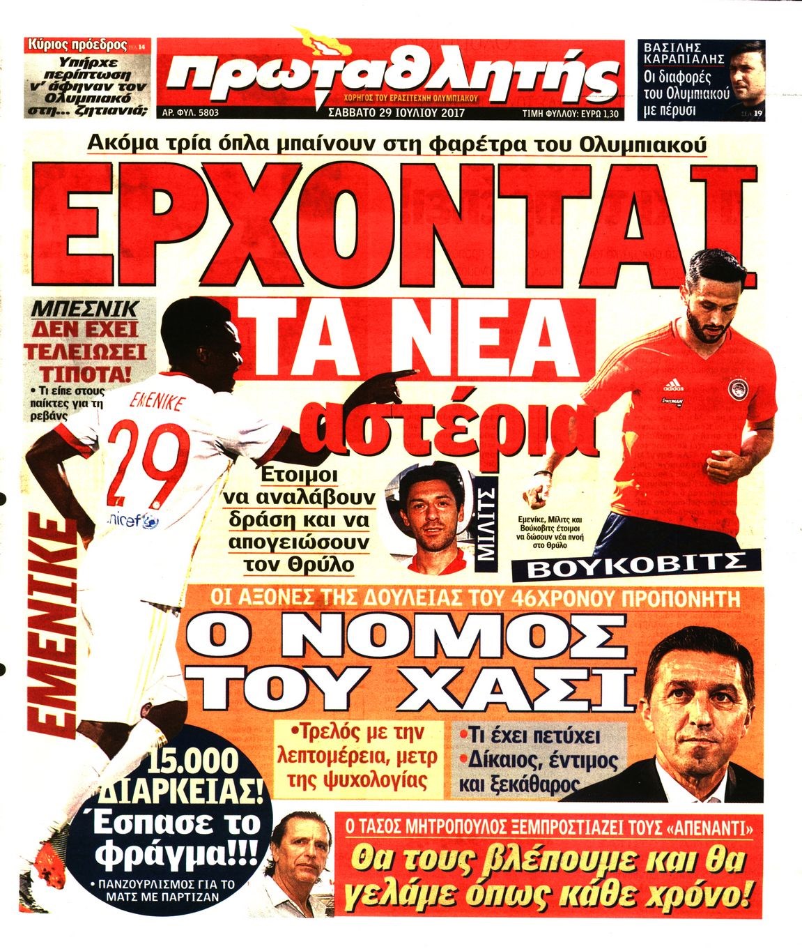 Οι αθλητικές εφημερίδες 29/7/2017 Enikos Newsroom 07:40, Σάββατο 29 Ιουλίου 2017 Media Διαβάστε τα σημερινά πρωτοσέλιδα των αθλητικών εφημερίδων: ΑΘΛΗΤΙΚΕΣ ΕΦΗΜΕΡΙΔΕΣ ΠΡΩΤΟΣΕΛΙΔΑ Μοιράσου το: σχολίασε κι εσύ (0 σχόλια) Ακολουθήστε το enikos.gr στο Google News και μάθετε πρώτοι όλες τις ειδήσεις Δείτε όλες τις τελευταίες ειδήσεις από την Ελλάδα και τον Κόσμο στο enikos.gr Ειδήσεις Ροή Ειδήσεων 26 λεπτά πριν Μεσόγειος: Η διαδρομή του ρωσικού τάνκερ «Qendil» και η στοχευμένη επίθεση της Ουκρανίας με drone – Ο Πούτιν προειδοποίησε για αντίποινα 2 ημέρες πριν 20 χρόνια τα Χριστούγεννα ξεκινούν στα Public με μεγάλη ποικιλία σε δώρα! 1 ώρα πριν Από το Ορμένιο ως τα Μάλγαρα κι από τη Σιάτιστα μέχρι τη Νίκαια: Μπλόκα σε όλη την Ελλάδα – Το Σάββατο ανοίγουν τα διόδια οι αγρότες 1 ώρα πριν «Έλληνας Εσκομπάρ»: Φωτογραφίες με τους 4 τόνους κοκαΐνης που κατασχέθηκαν από το σκάφος «Ουρανία» 3 ώρες πριν Πούτιν: Σαρκαστικά μηνύματα, παράπονα και απρόοπτα στη συνέντευξη Τύπου – Η πρόταση γάμου on air και οι ερωτήσεις για τα αγγούρια και τους… εξωγήινους 2 ώρες πριν Τα 5 ζώδια που ευνοούνται στην ερωτική ζωή τους την επόμενη εβδομάδα – «Η ενέργεια του Αιγόκερου φέρνει αγάπη και σταθερότητα» 7 ώρες πριν Γεμάτος νεροχύτης; 5 σοβαρές ευθύνες που «φοβίζουν» όσους αφήνουν άπλυτα πιάτα 6 ώρες πριν Ειδικός μοιράζεται 6 κόλπα για να διατηρείστε σε φόρμα με πάνω από 40 ώρες εργασίας την εβδομάδα: «Προπονηθείτε πριν από τη δουλειά, όχι μετά» 20 λεπτά πριν Αττική: Θρίλερ με νεκρό βρέφος 5 μηνών – Κοιμόταν στο ίδιο κρεβάτι με τους γονείς του 6 λεπτά πριν Κερατσίνι: Αστυνομικός εκτός υπηρεσίας απέτρεψε κλοπή μηχανών – Συνελήφθησαν τρεις ανήλικοι 9 λεπτά πριν Το σόι σου: Ο Άρης έρχεται στην Ελλάδα για τις γιορτές των Χριστουγέννων – Τι θα δούμε στο αποψινό εορταστικό επεισόδιο 16 λεπτά πριν ΠΑΣΟΚ σε Μαρινάκη: Δεν νομιμοποιούμε πολιτικές επιλογές που μεταφέρουν το πρόβλημα από υπηρεσία σε υπηρεσία 20 λεπτά πριν Αττική: Θρίλερ με νεκρό βρέφος 5 μηνών – Κοιμόταν στο ίδιο κρεβάτι με τους γονείς του 26 λεπτά πριν Μεσόγειος: Η διαδρομή του ρωσικού τάνκερ «Qendil» και η στοχευμένη επίθεση της Ουκρανίας με drone – Ο Πούτιν προειδοποίησε για αντίποινα ENIKOS NETWORK «Η σούπερ» γρίπη εξαπλώνεται στην Ευρώπη-Στοιχεία για την αποτελεσματικότητα του εμβολίου από το ECDC ΕΛΣΤΑΤ: Αύξηση κατά 1,7% των επαγγελματιών υγείας το 2024 Η απάντηση της κυβέρνησης στα αιτήματα των αγροτών: 16 έχουν ικανοποιηθεί, 4 βρίσκονται υπό επεξεργασία και 7 δεν είναι εφι... Μισθολογική διαφάνεια: Το 68% των εργαζομένων αγνοεί τη νέα οδηγία – Αναλυτικά τα στοιχεία έρευνας Χαρτογραφώντας το «σημείο χωρίς επιστροφή»: Για πρώτη φορά αποκαλύπτεται με λεπτομέρεια το ακανθώδες όριο της ατμόσφαιρας τ... Η Google καταργεί τη λειτουργία «dark web report» – Πώς θα μπορούν οι χρήστες να διαγράφουν τα δεδομένα τους περισσότερα 18:11 , Παρασκευή 19 Δεκεμβρίου 2025 Το σόι σου: Ο Άρης έρχεται στην Ελλάδα για τις γιορτές των Χριστουγέννων – Τι θα δούμε στο αποψινό εορταστικό επεισόδιο Ένα απολαυστικό, εορταστικό επεισόδιο της σειράς “Το σόι σου”, γεμάτο ευτράπελα αλ... 15:15 , Παρασκευή 19 Δεκεμβρίου 2025 Την Κυριακή με τη Realnews: Ό,τι και αν αγοράσεις, σκανάρεις και κερδίζεις! Την Κυριακή με τη Realnews: Ό,τι και αν αγοράσεις, σκανάρεις και κερδίζεις! Με το PADU app, το... 08:00 , Παρασκευή 19 Δεκεμβρίου 2025 Την Κυριακή με τη Realnews: Δωροεπιταγή 10€ Δωροεπιταγή αξίας 10€ για αγορές άνω των 60€ από τα πολυκαταστήματα FactoryOutlet H προσφορά 