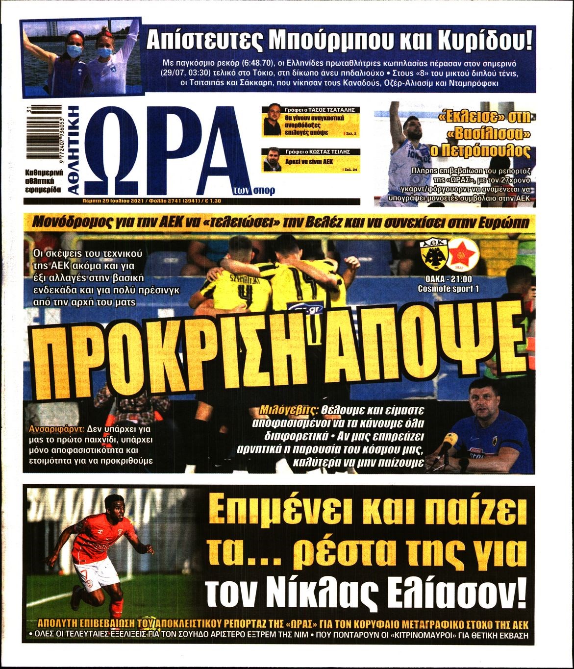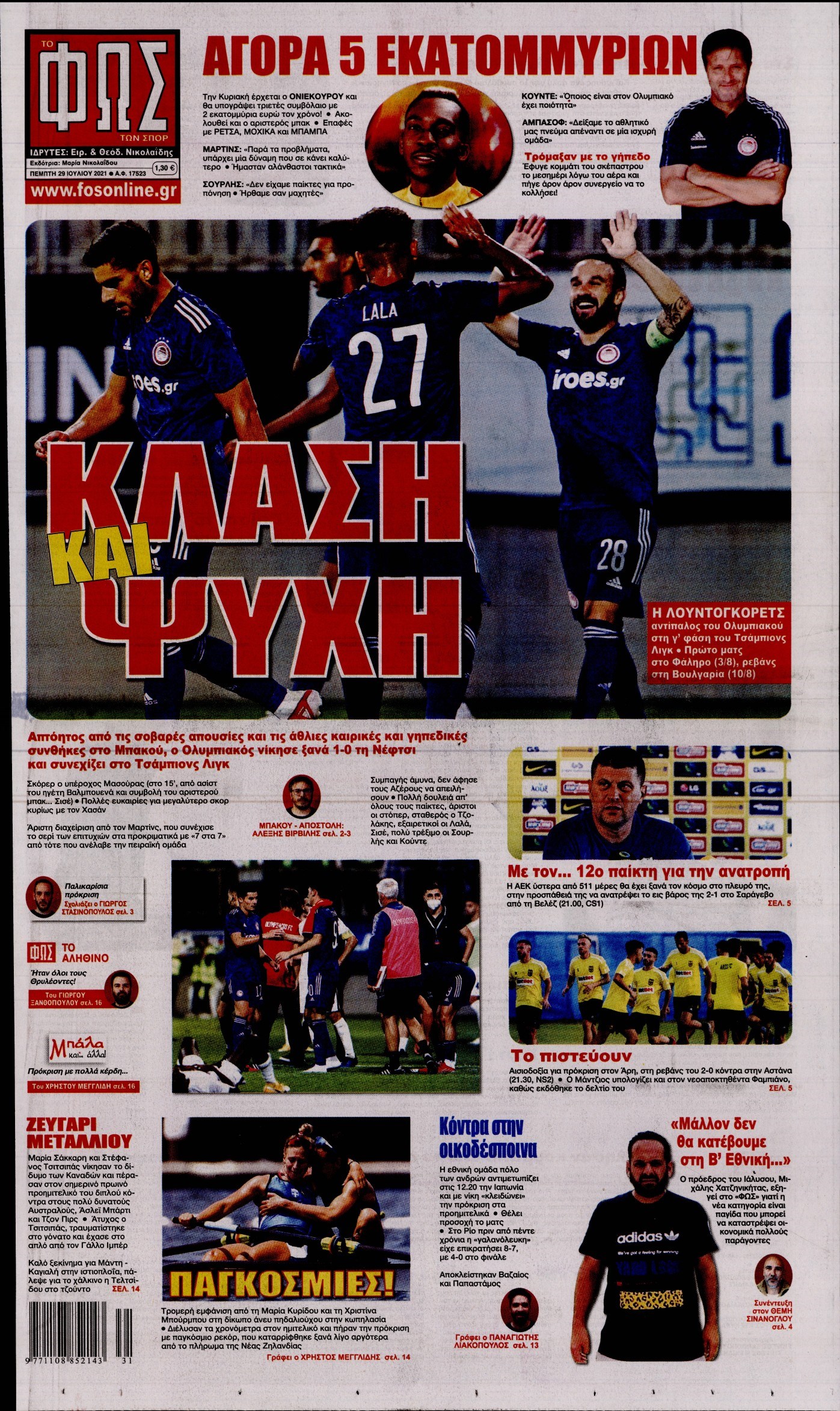 Οι αθλητικές εφημερίδες 29/7/2021 Διονύσης Νίκκας 06:43, Πέμπτη 29 Ιουλίου 2021 Media Διαβάστε τα πρωτοσέλιδα των αθλητικών εφημερίδων… ΑΘΛΗΤΙΚΕΣ ΕΦΗΜΕΡΙΔΕΣ Μοιράσου το: σχολίασε κι εσύ (0 σχόλια) Ακολουθήστε το enikos.gr στο Google News και μάθετε πρώτοι όλες τις ειδήσεις Δείτε όλες τις τελευταίες ειδήσεις από την Ελλάδα και τον Κόσμο στο enikos.gr Ειδήσεις Ροή Ειδήσεων 17 λεπτά πριν Χριστούγεννα στα μπλόκα: Επιμένουν στις κινητοποιήσεις τους οι αγρότες – Ανοίγουν τα διόδια το Σαββατοκύριακο 45 λεπτά πριν Τραμπ: Δεν αποκλείει την πιθανότητα ενός πολέμου στη Βενεζουέλα – «Ο Μαδούρο ξέρει καλύτερα από τον καθένα τι ακριβώς θέλω» 40 λεπτά πριν Ουκρανία: Η άνευ προηγουμένου επίθεση σε ρωσικό τάνκερ στη Μεσόγειο και το μήνυμα προς στον Πούτιν – Το «μακρύ χέρι» του Κιέβου 3 ώρες πριν Πούτιν: «Ναι, είμαι ερωτευμένος» – Βίντεο από τη σπάνια προσωπική παραδοχή του 1 ώρα πριν Συνεχίζει να προκαλεί ο Μίτσκοσκι: «Για μένα το όνομα Μακεδονία είναι ιερό» 2 ώρες πριν Αριθμολογία: Οι άνθρωποι που έχουν γεννηθεί αυτές τις 4 ημερομηνίες, συχνά παρεξηγούνται – «Η καλοσύνη τους κρύβει τεράστια δύναμη» 4 ώρες πριν Μήπως έχετε χάσει τον εαυτό σας στη σχέση σας; 7 «αθόρυβες» υποχωρήσεις που μάλλον κάνατε, χωρίς να το συνειδητοποιήσετε 3 ώρες πριν Ξεχάστε το καθάρισμα το Σαββατοκύριακο: Ο «κανόνας των 20 λεπτών» που θα σας λύσει τα χέρια 55 λεπτά πριν Ύπνος: Μια κρυφή κατάσταση του εγκεφάλου πριν από τον ύπνο μπορεί να είναι το “κλειδί” για υψηλή ευφυΐα και δημιουργικότητα 7 λεπτά πριν Παναθηναϊκός: «Μέσα» οι Σφιντέρσκι και Τουμπά για το ματς με τον ΠΑΟΚ – Τι έδειξε η μαγνητική του Πάντοβιτς 13 λεπτά πριν Γιώργος Γιαννόπουλος για “Το σόι σου”: “Είναι ευτυχία και ευλογία αυτή η σειρά” 17 λεπτά πριν Χριστούγεννα στα μπλόκα: Επιμένουν στις κινητοποιήσεις τους οι αγρότες – Ανοίγουν τα διόδια το Σαββατοκύριακο 28 λεπτά πριν Χάρι και Μέγκαν: Η σπάνια οικογενειακή φωτογραφία με τον Άρτσι και τη Λίλιμπετ – Τι σχεδιάζουν για τα Χριστούγεννα 35 λεπτά πριν Βασίλης Καρράς: «Είναι πάντα δίπλα μου, δεν έφυγε…», λέει ο αδελφός του ENIKOS NETWORK Το ΕΚΑΒ τιμήθηκε από την Ακαδημία Αθηνών για τα 40 χρόνια προσφοράς του Έχετε πραγματικά μεγάλη καρδιά; 10 χαρακτηριστικά όσων έχουν καλοσύνη Πλήρης επάρκεια προϊόντων στις λαϊκές της Αττικής, παρά τις αγροτικές κινητοποιήσεις – Τι απαντούν οι πωλητές ΑΑΔΕ: Νέες αναβαθμίσεις στο Ψηφιακό Πελατολόγιο και την εφαρμογή myDATAapp – Τι πρέπει να γνωρίζετε Χαρτογραφώντας το «σημείο χωρίς επιστροφή»: Για πρώτη φορά αποκαλύπτεται με λεπτομέρεια το ακανθώδες όριο της ατμόσφαιρας τ... Η Google καταργεί τη λειτουργία «dark web report» – Πώς θα μπορούν οι χρήστες να διαγράφουν τα δεδομένα τους περισσότερα 22:42 , Παρασκευή 19 Δεκεμβρίου 2025 Γιώργος Γιαννόπουλος για “Το σόι σου”: “Είναι ευτυχία και ευλογία αυτή η σειρά” «Είναι ευτυχία και ευλογία η συγκυρία αυτής της σειράς», θα πει ο Γιώργος Γιαννόπουλος -ο αγαπ... 20:37 , Παρασκευή 19 Δεκεμβρίου 2025 Don’t Forget The Lyrics: Η Έλλη Κοκκίνου υποδέχεται 4 παίκτες που θα κάνουν τα πάντα για να μη χάσουν ούτε… μισή λέξη από τους στίχους Το «Don’t Forget The Lyrics» επιστρέφει απόψε, Παρασκευή 19 Δεκεμβρίου, στις 21:00 με νέο επει... 19:31 , Παρασκευή 19 Δεκεμβρίου 2025 GNTM: Απόψε ο μεγάλος τελικός για τους 4 φιναλίστ Έπειτα από μήνες γεμάτους μόδα, δημιουργία και έντονες αναμετρήσεις, το GNTM 2025 κορυφώνεται,... 18:11 , Παρασκευή 19 Δεκεμβρίου 2025 Το σόι σου: Ο Άρης έρχεται στην Ελλάδα για τις γιο