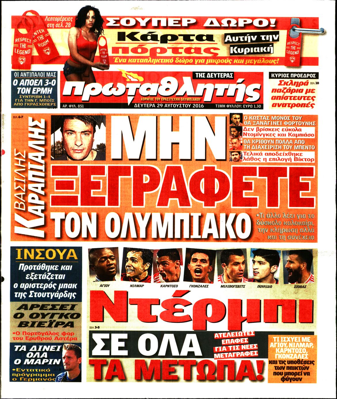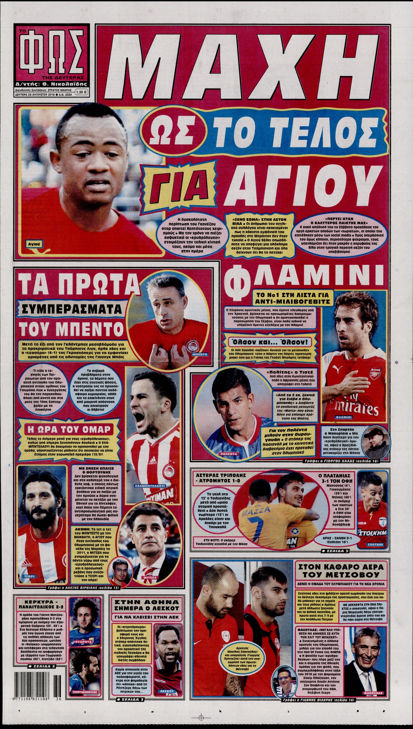 Οι αθλητικές εφημερίδες 29/8/2016 Enikos Newsroom 06:36, Δευτέρα 29 Αυγούστου 2016 Media Διαβάστε τα σημερινά πρωτοσέλιδα των αθλητικών εφημερίδων: ΑΘΛΗΤΙΚΕΣ ΕΦΗΜΕΡΙΔΕΣ ΠΡΩΤΟΣΕΛΙΔΑ Μοιράσου το: σχολίασε κι εσύ (0 σχόλια) Ακολουθήστε το enikos.gr στο Google News και μάθετε πρώτοι όλες τις ειδήσεις Δείτε όλες τις τελευταίες ειδήσεις από την Ελλάδα και τον Κόσμο στο enikos.gr Ειδήσεις Ροή Ειδήσεων 46 λεπτά πριν Ευρωπαϊκή Ένωση: Συμφωνία για δάνειο 90 δισ. ευρώ στην Ουκρανία τη διετία 2026-2027 5 ώρες πριν ΟΠΕΚΕΠΕ: Προφυλακιστέος ο φερόμενος αρχηγός και ο λογιστής της εγκληματικής οργάνωσης 6 ώρες πριν Αυξάνουν την πίεση προς την κυβέρνηση οι αγρότες: Κλείνουν παρακαμπτήριους και ανοίγουν διόδια – Τι θα γίνει τις γιορτές 6 ώρες πριν Φοινικούντα: Το Σάββατο απολογείται ο 30χρονος γιος γνωστού επιχειρηματία της Πλάκας που παραδόθηκε – Όσα είπε στους αστυνομικούς και ο ρόλος του στο έγκλημα 5 ώρες πριν ΑΕΚ – Κραϊόβα 3-2: Επική ανατροπή και πρόκριση στους «16» του Conference League η Ένωση 6 ώρες πριν Αρχαιολόγοι ανακάλυψαν ρωμαϊκά τεχνουργήματα από μια πόλη που δεν υπήρξε ποτέ – Τα τρία εντυπωσιακά κτίρια και ο αμφορέας με τις… σαρδέλες 7 ώρες πριν Ύπνος: Η απλή βραδινή ρουτίνα για να προστατεύσετε τα μαλλιά σας από το κρύο κατά τη διάρκεια του χειμώνα 8 ώρες πριν Manifesting: Πώς να συναντήσετε τον σύντροφο της ζωής σας, ανάλογα με τον μήνα γέννησής σας 2 ημέρες πριν 20 χρόνια τα Χριστούγεννα ξεκινούν στα Public με μεγάλη ποικιλία σε δώρα! 9 λεπτά πριν Αυστραλία: Κήρυξε την Κυριακή (21/12) ημέρα εθνικού πένθους για τη φονική επίθεση στην παραλία Μπόνταϊ 19 λεπτά πριν Ρόδος: Δάσκαλος καράτε καταδικάστηκε για ασέλγεια σε ανήλικες αθλήτριες – Μαρτυρίες για αγγίγματα σε ευαίσθητα σημεία 34 λεπτά πριν Γουατεμάλα: Εξαρθρώθηκε κύκλωμα διακίνησης μεταναστών προς τις ΗΠΑ – Συνελήφθησαν 14 άτομα 38 λεπτά πριν Βουλγαρία: Χιλιάδες πολίτες στους δρόμους κατά της απερχόμενης κυβέρνησης και της διαφθοράς 46 λεπτά πριν Ευρωπαϊκή Ένωση: Συμφωνία για δάνειο 90 δισ. ευρώ στην Ουκρανία τη διετία 2026-2027 ENIKOS NETWORK Σε περίοδο αυξημένης δραστηριότητας η γρίπη στην Ελλάδα-Μέτρα προστασίας από τον ΕΟΔΥ Σκέφτεστε συνέχεια συζητήσεις που έχετε κάνει; Τι σημαίνει αυτό, σύμφωνα με ειδικό Στεγαστικό: Τι λέει η ΠΟΜΙΔΑ για τα νέα μέτρα που ανακοίνωσε ο Κυριάκος Μητσοτάκης Λαγκάρντ: Αισιόδοξη για την ανάπτυξη της Ευρωζώνης, αβέβαιη για τον πληθωρισμό Χαρτογραφώντας το «σημείο χωρίς επιστροφή»: Για πρώτη φορά αποκαλύπτεται με λεπτομέρεια το ακανθώδες όριο της ατμόσφαιρας τ... Η Google καταργεί τη λειτουργία «dark web report» – Πώς θα μπορούν οι χρήστες να διαγράφουν τα δεδομένα τους περισσότερα 02:50 , Παρασκευή 19 Δεκεμβρίου 2025 GNTM: «Κλείδωσαν» οι τέσσερις φιναλίστ – Μεγάλη ανατροπή στις τελευταίες αποχωρήσεις Για προτελευταία φορά εμφανίστηκαν στο πλατό του GNTM οι φιναλίστ του φετινού κύκλου, το βράδυ... 17:45 , Πέμπτη 18 Δεκεμβρίου 2025 ROUK ZOUK: Εορταστικό επεισόδιο με καλεσμένους τους πρωταγωνιστές του «Γιατί ρε πατέρα» Το Σάββατο 20 Δεκεμβρίου στις 21:00, η Ζέτα Μακρυπούλια υποδέχεται εκλεκτούς ηθοποιούς που όλο... 17:20 , Πέμπτη 18 Δεκεμβρίου 2025 Άγιος έρωτας: Η Χριστίνα εξομολογείται στον πατέρα Νικόλαο, απόψε στις 21:00 στον Alpha Η Νότα αποφασίζει να εκδικηθεί τον Πέτρο και τον Στέφανο, για χάρη του Λούη, όμως τα πράγματα ... 16:50 , Πέμπτη 18 Δεκεμβρίου 2025 Να μ’ αγαπάς: Ζωή και Φωτεινή συμφιλιώνονται ως μάνα με κόρη, απόψε στις 20:00 Η ταυτότητα του Άγγελου αποκαλύπτεται στο ν