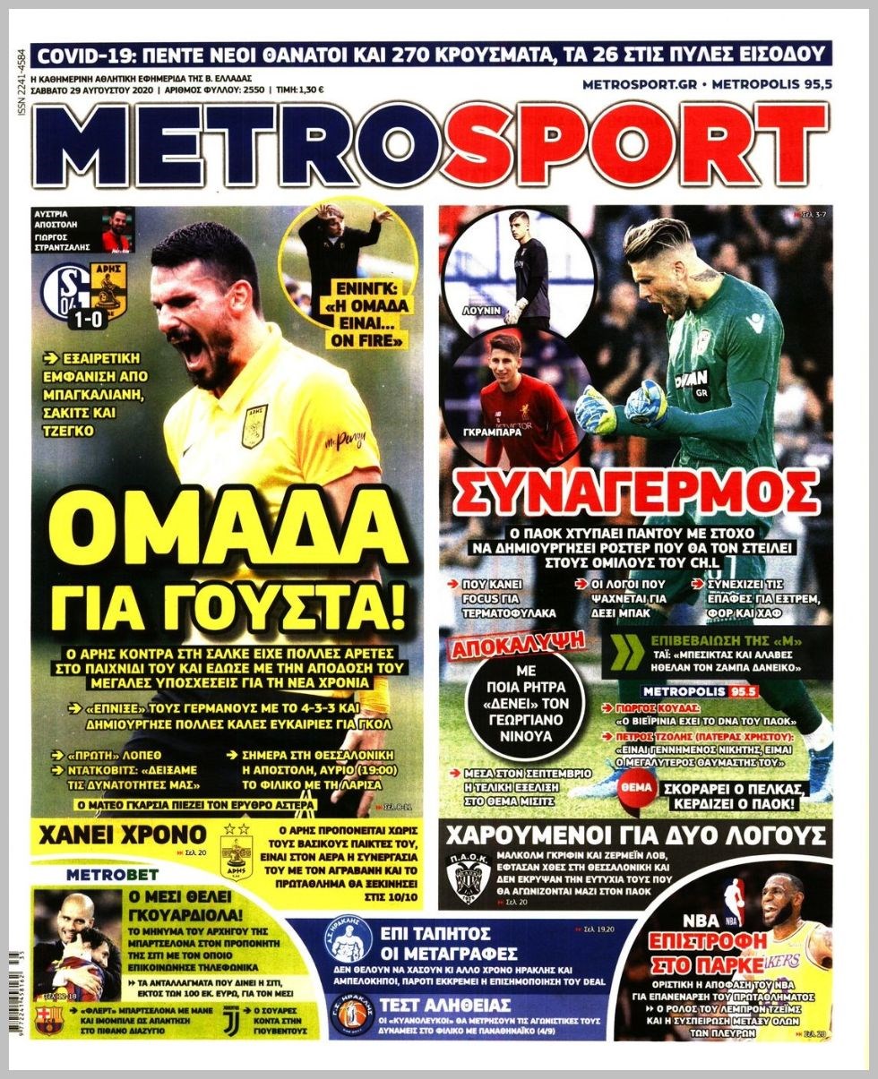 Οι αθλητικές εφημερίδες 29/8/2020 Διονύσης Νίκκας 07:49, Σάββατο 29 Αυγούστου 2020 Media Διαβάστε τα πρωτοσέλιδα των αθλητικών εφημερίδων… ΑΘΛΗΤΙΚΕΣ ΕΦΗΜΕΡΙΔΕΣ Μοιράσου το: σχολίασε κι εσύ (0 σχόλια) Ακολουθήστε το enikos.gr στο Google News και μάθετε πρώτοι όλες τις ειδήσεις Δείτε όλες τις τελευταίες ειδήσεις από την Ελλάδα και τον Κόσμο στο enikos.gr Ειδήσεις Ροή Ειδήσεων 4 ώρες πριν Χριστούγεννα στα μπλόκα: Επιμένουν στις κινητοποιήσεις τους οι αγρότες – Ανοίγουν τα διόδια το Σαββατοκύριακο 4 ώρες πριν Ουκρανία: Η άνευ προηγουμένου επίθεση σε ρωσικό τάνκερ στη Μεσόγειο και το μήνυμα προς στον Πούτιν – Το «μακρύ χέρι» του Κιέβου 3 ώρες πριν Πούτιν: Τα μηνύματα σε Ευρώπη και ΝΑΤΟ από το μαραθώνιο «σόου» του – Η απαίτηση για «σεβασμό» και η ειρήνη «με τους όρους» της Μόσχας 4 ώρες πριν Τραμπ: Δεν αποκλείει την πιθανότητα ενός πολέμου στη Βενεζουέλα – «Ο Μαδούρο ξέρει καλύτερα από τον καθένα τι ακριβώς θέλω» 5 ώρες πριν Συνεχίζει να προκαλεί ο Μίτσκοσκι: «Για μένα το όνομα Μακεδονία είναι ιερό» 3 ώρες πριν Ανακαλύφθηκαν αρχαία χρυσά νομίσματα 2.200 ετών που απεικονίζουν τον θεό Απόλλωνα – Η άγνωστη σύνδεση με τον Φίλιππο Β΄ της Μακεδονίας 4 ώρες πριν Ύπνος: Μια κρυφή κατάσταση του εγκεφάλου πριν από τον ύπνο μπορεί να είναι το “κλειδί” για υψηλή ευφυΐα και δημιουργικότητα 5 ώρες πριν Αριθμολογία: Οι άνθρωποι που έχουν γεννηθεί αυτές τις 4 ημερομηνίες, συχνά παρεξηγούνται – «Η καλοσύνη τους κρύβει τεράστια δύναμη» 6 ώρες πριν Ξεχάστε το καθάρισμα το Σαββατοκύριακο: Ο «κανόνας των 20 λεπτών» που θα σας λύσει τα χέρια 14 λεπτά πριν Εξάρχεια: Ένταση με μολότοφ, χημικά και κρότου λάμψης 29 λεπτά πριν ΗΠΑ: Τραγωδία στην Αλαμπάμα – Σκότωσε την δημοσιογράφο σύζυγό του και αυτοκτόνησε μπροστά στον 3χρονο γιο τους 44 λεπτά πριν Πρόταση γάμου στο ΣΕΦ κατά την διάρκεια του αγώνα Ολυμπιακός-Βιλερμπάν – Δείτε βίντεο 59 λεπτά πριν Euroleague: Επέστρεψε στις νίκες ο Ολυμπιακός, πήρε την ματσάρα της χρονιάς η Μπάρτσα – Τα αποτελέσματα και η βαθμολογία 1 ώρα πριν Συρία: Μαζικά πλήγματα των ΗΠΑ σε θέσεις του Ισλαμικού Κράτους – Χέγκσεθ: «Δεν είναι αρχή πολέμου, είναι μια δήλωση εκδίκησης» για το θάνατο των στρατιωτών μας ENIKOS NETWORK Το ΕΚΑΒ τιμήθηκε από την Ακαδημία Αθηνών για τα 40 χρόνια προσφοράς του Έχετε πραγματικά μεγάλη καρδιά; 10 χαρακτηριστικά όσων έχουν καλοσύνη Αναστολή μέτρων αναγκαστικής εκτέλεσης για κτηνοτρόφους που πλήττονται από την ευλογιά των αιγοπροβάτων Πλήρης επάρκεια προϊόντων στις λαϊκές της Αττικής, παρά τις αγροτικές κινητοποιήσεις – Τι απαντούν οι πωλητές Χαρτογραφώντας το «σημείο χωρίς επιστροφή»: Για πρώτη φορά αποκαλύπτεται με λεπτομέρεια το ακανθώδες όριο της ατμόσφαιρας τ... Η Google καταργεί τη λειτουργία «dark web report» – Πώς θα μπορούν οι χρήστες να διαγράφουν τα δεδομένα τους περισσότερα 22:42 , Παρασκευή 19 Δεκεμβρίου 2025 Γιώργος Γιαννόπουλος για “Το σόι σου”: “Είναι ευτυχία και ευλογία αυτή η σειρά” «Είναι ευτυχία και ευλογία η συγκυρία αυτής της σειράς», θα πει ο Γιώργος Γιαννόπουλος -ο αγαπ... 20:37 , Παρασκευή 19 Δεκεμβρίου 2025 Don’t Forget The Lyrics: Η Έλλη Κοκκίνου υποδέχεται 4 παίκτες που θα κάνουν τα πάντα για να μη χάσουν ούτε… μισή λέξη από τους στίχους Το «Don’t Forget The Lyrics» επιστρέφει απόψε, Παρασκευή 19 Δεκεμβρίου, στις 21:00 με νέο επει... 19:31 , Παρασκευή 19 Δεκεμβρίου 2025 GNTM: Απόψε ο μεγάλος τελικός για τους 4 φιναλίστ Έπειτα από μήνες γεμάτους μόδα, δημιουργία και έντονες αναμ